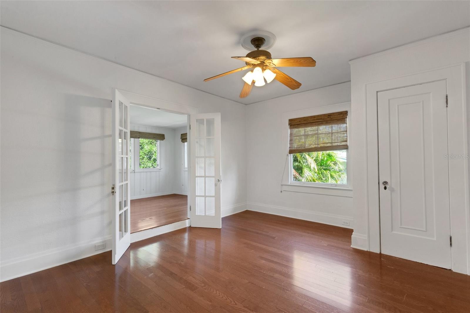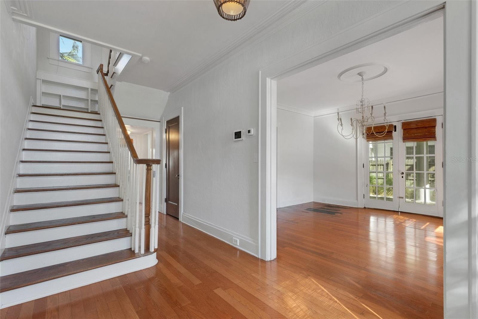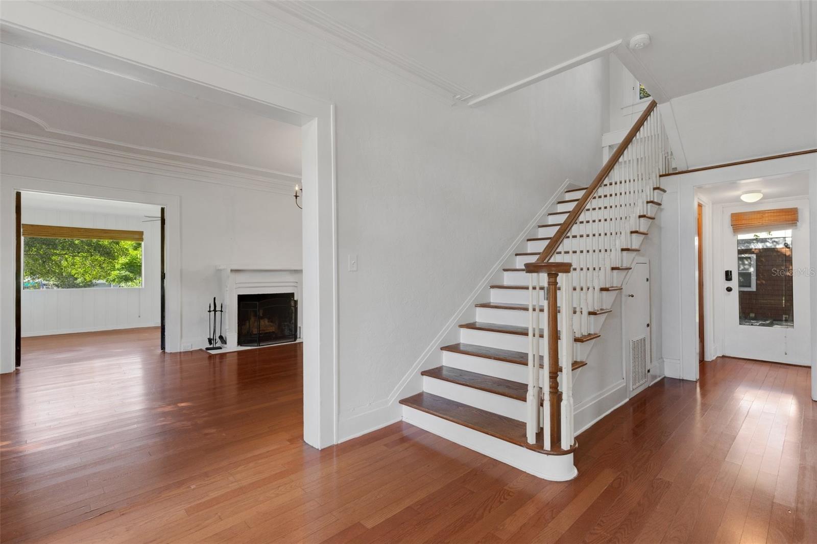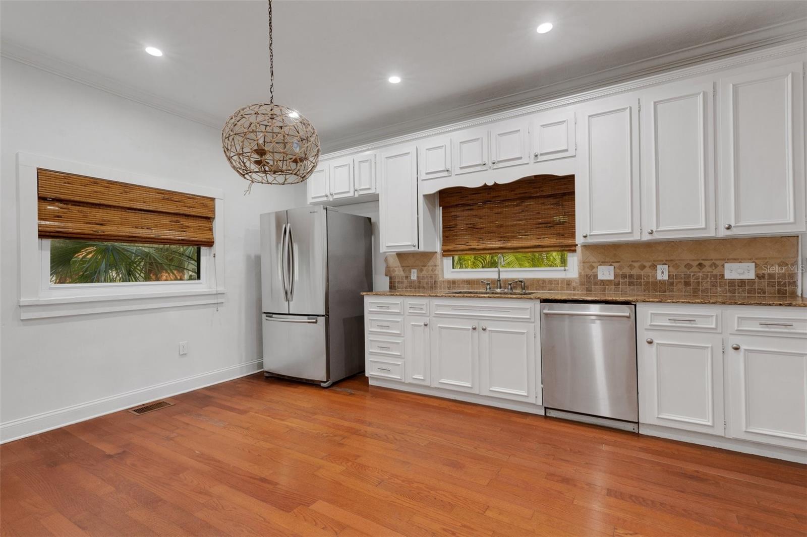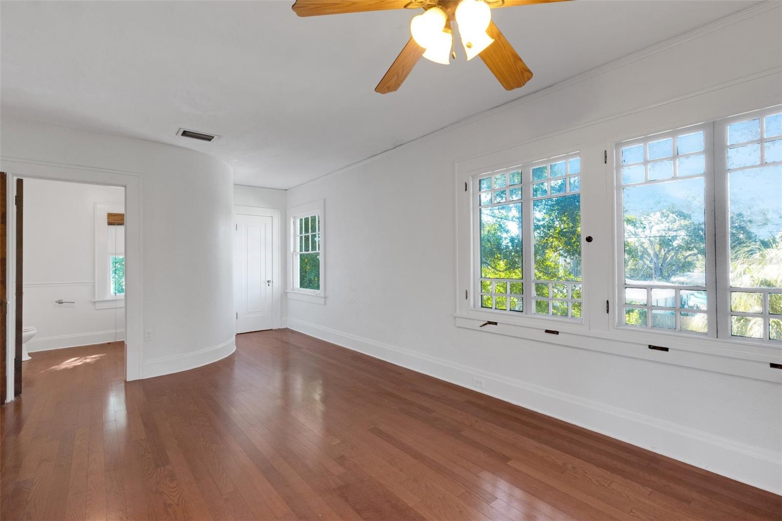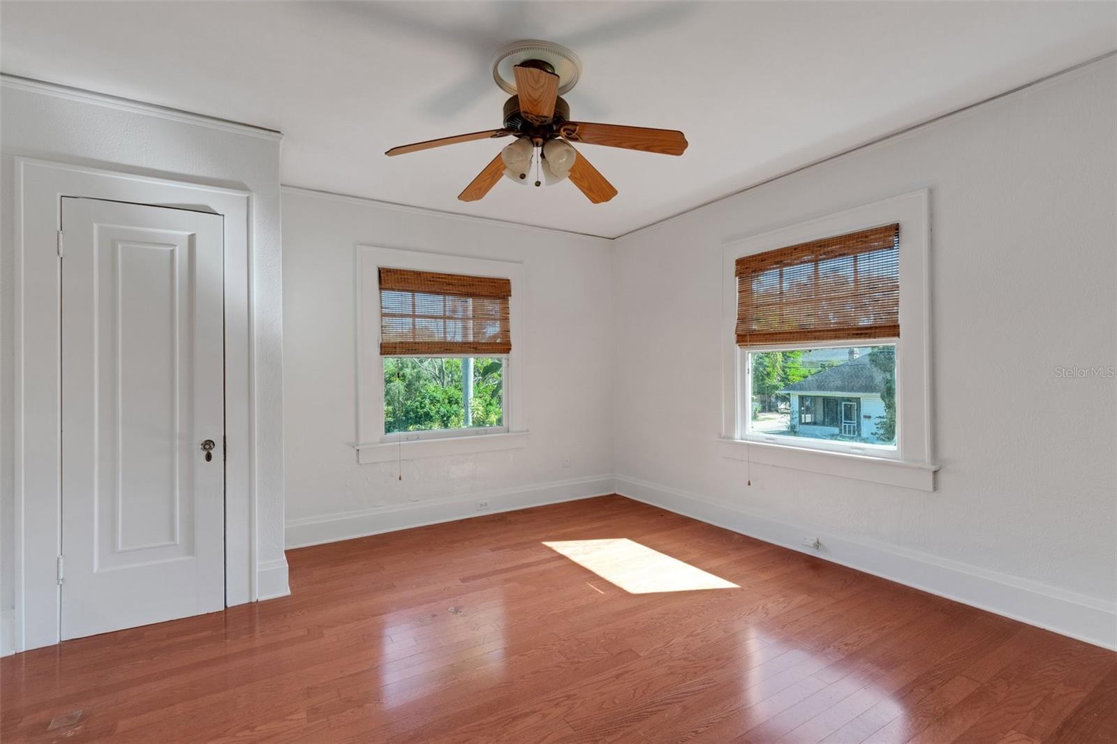 Located in the heart of Historic Wares Creek, this 1935 Craftsman style home is located on a corner lot surrounded by mature trees and landscape. The home features a wood burning fireplace, crown molding, separate dining room, large separate living room, large foyer and beautiful staircase leading to the second floor. The large kitchen has stainless appliances, granite counters, double sink & built in hutch and pantry. A large, screened porch off the kitchen is convenient for entertaining & access to the courtyard. The upstairs has 3 bedrooms, 2 baths & sunporch. The primary has a separate bath with a claw foot tub and walk in closet. A detached Mother-in-law suite with up dated kitchen & bath, Artist Studio & garage are separated from the main home by the courtyard. Many possibilities. Only a few short blocks to downtown Bradenton & the Manatee River, 15 minutes to the Gulf beaches of Anna Maria Island, Robinson Preserve & Desoto National Memorial Park. Walk downtown to the farmers markets, restaurants, shops & River Walk Park