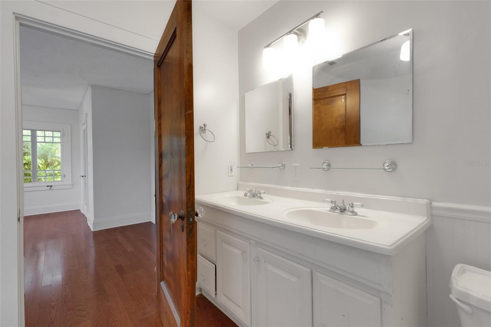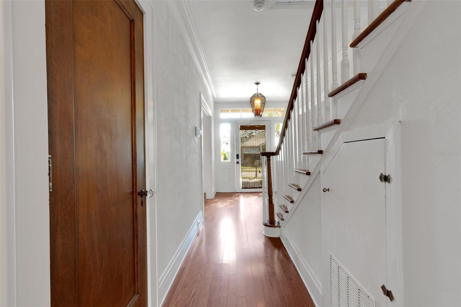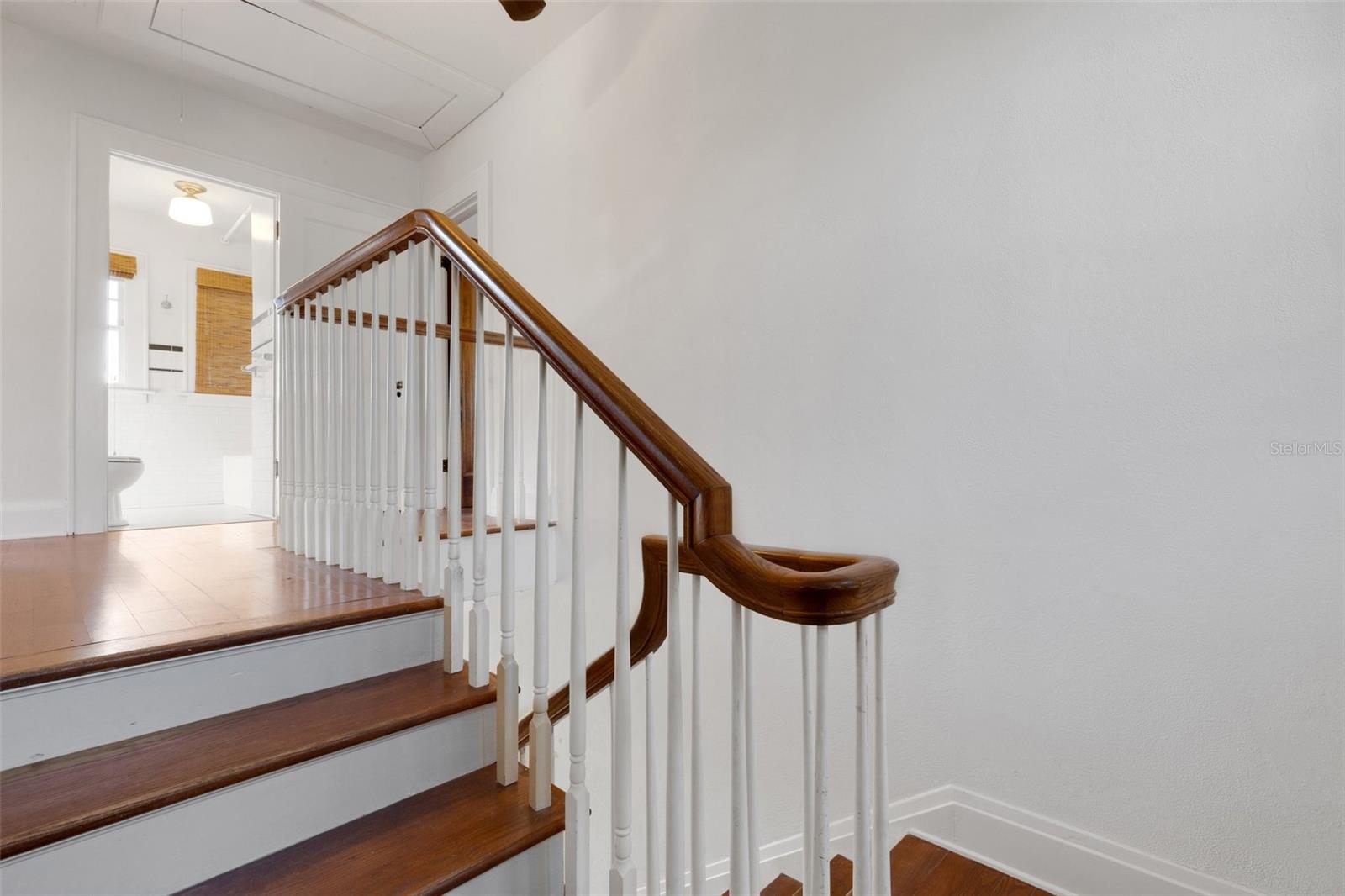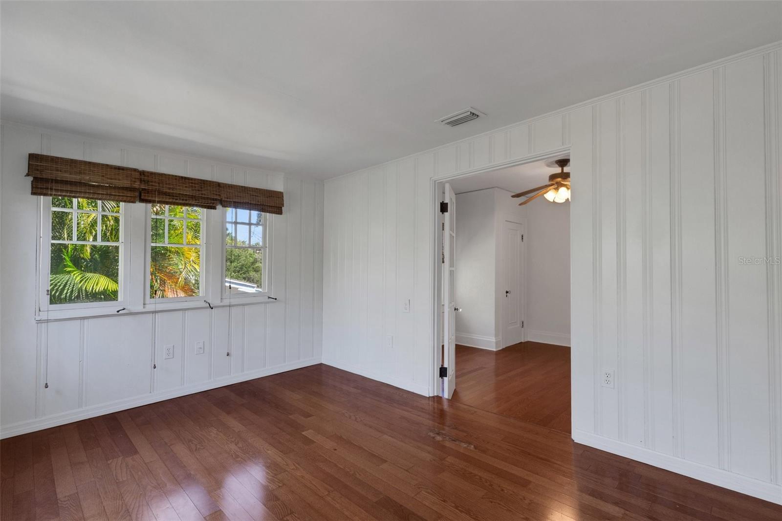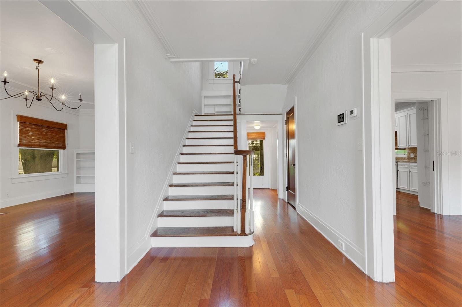 Located in the heart of Historic Wares Creek, this 1935 Craftsman style home is located on a corner lot surrounded by mature trees and landscape. The home features a wood burning fireplace, crown molding, separate dining room, large separate living room, large foyer and beautiful staircase leading to the second floor. The large kitchen has stainless appliances, granite counters, double sink & built in hutch and pantry. A large, screened porch off the kitchen is convenient for entertaining & access to the courtyard. The upstairs has 3 bedrooms, 2 baths & sunporch. The primary has a separate bath with a claw foot tub and walk in closet. A detached Mother-in-law suite with up dated kitchen & bath, Artist Studio & garage are separated from the main home by the courtyard. Many possibilities. Only a few short blocks to downtown Bradenton & the Manatee River, 15 minutes to the Gulf beaches of Anna Maria Island, Robinson Preserve & Desoto National Memorial Park. Walk downtown to the farmers markets, restaurants, shops & River Walk Park