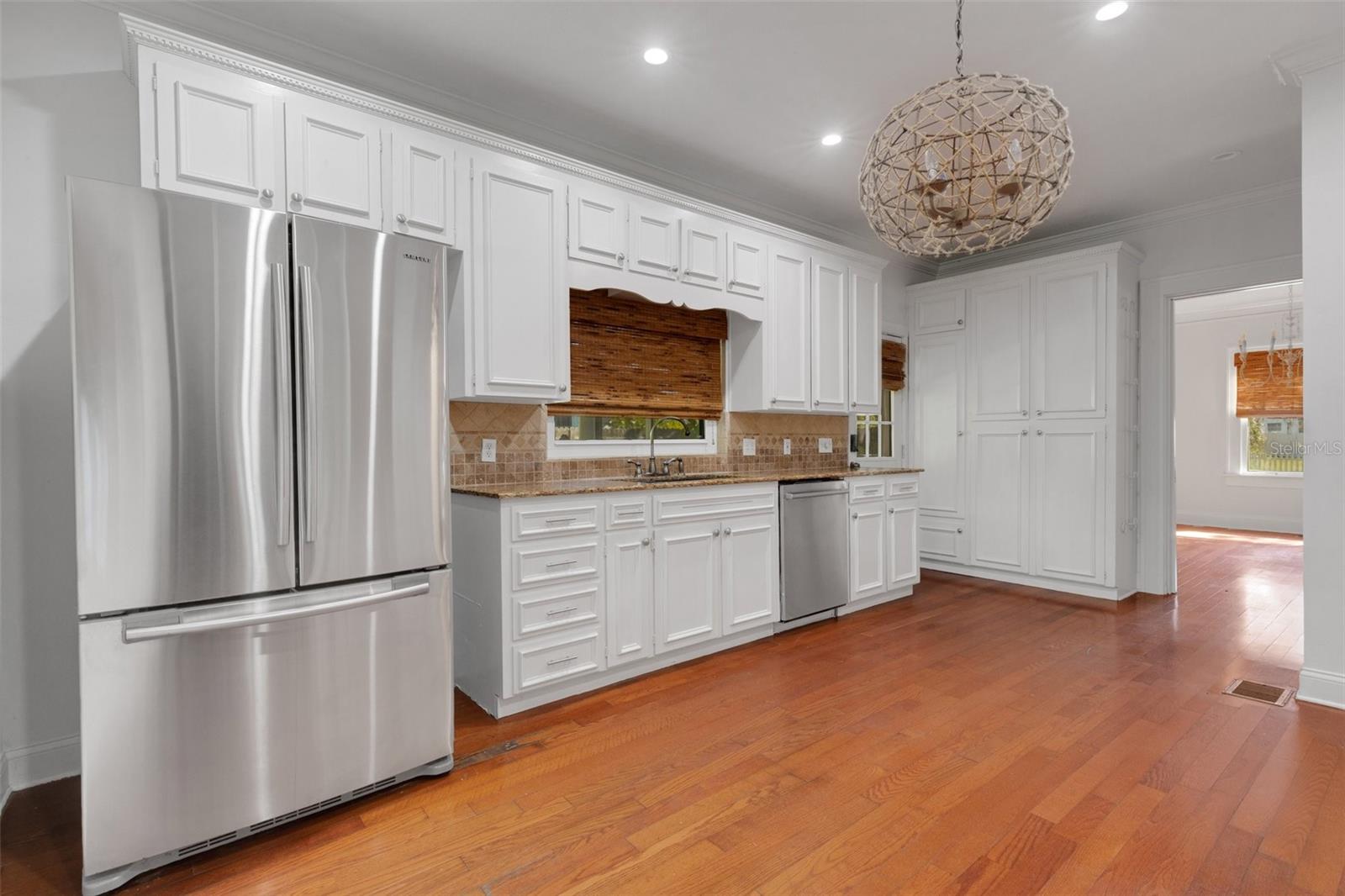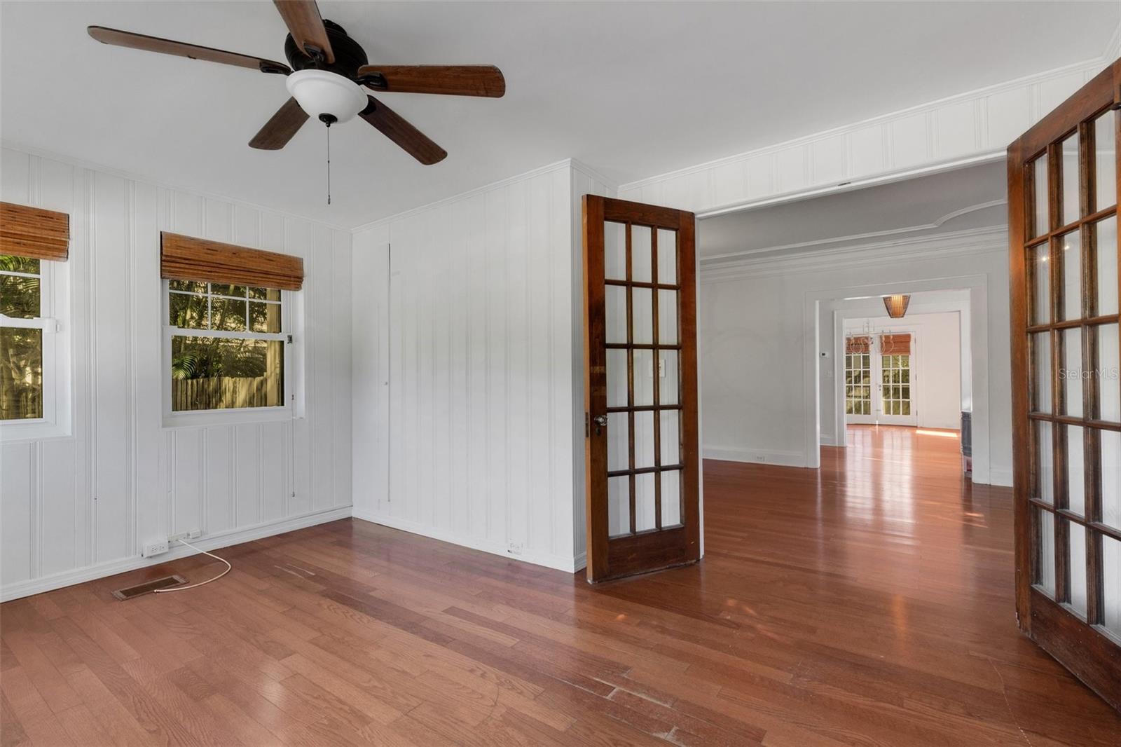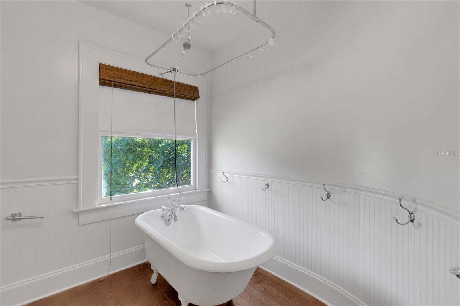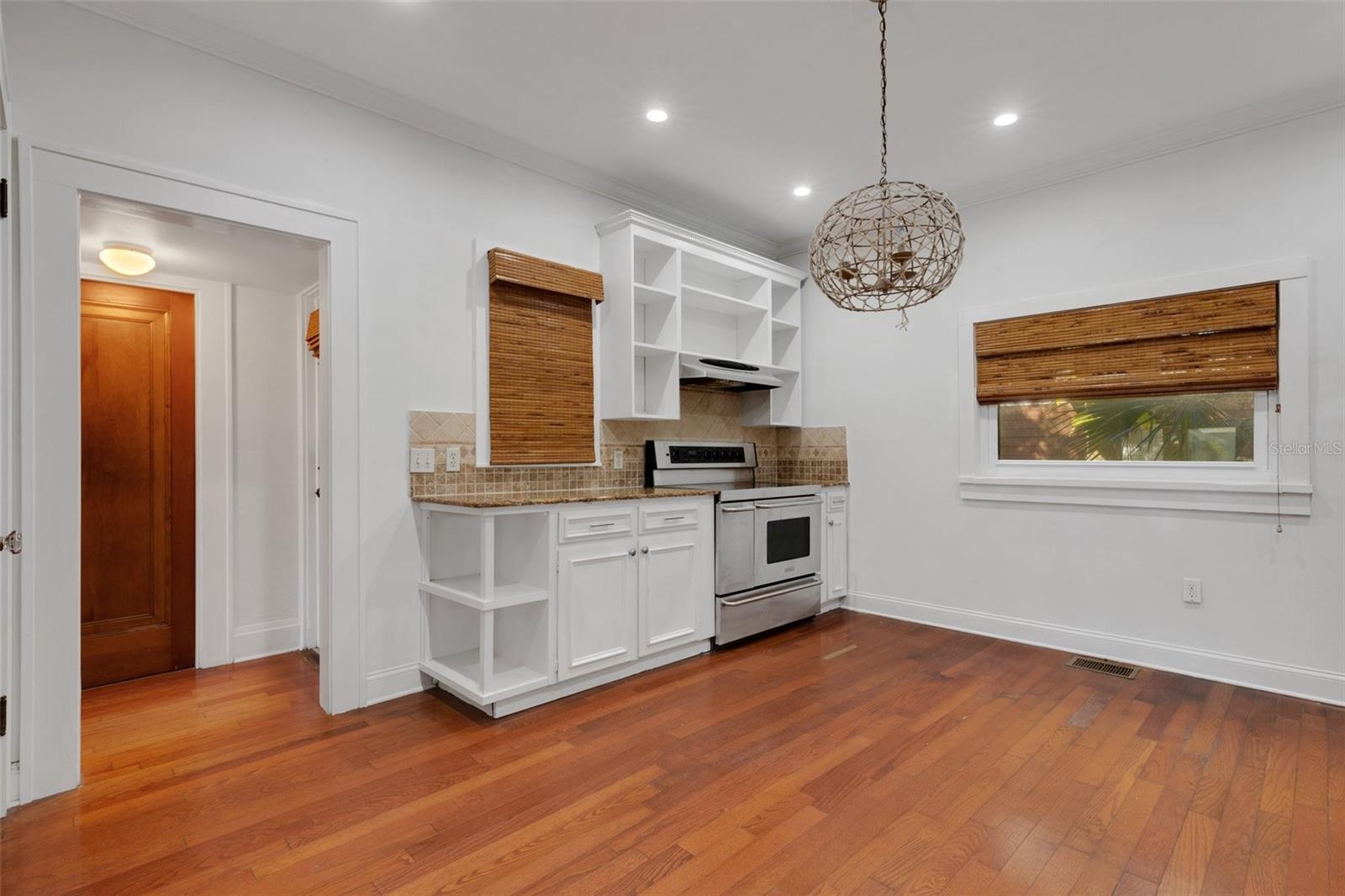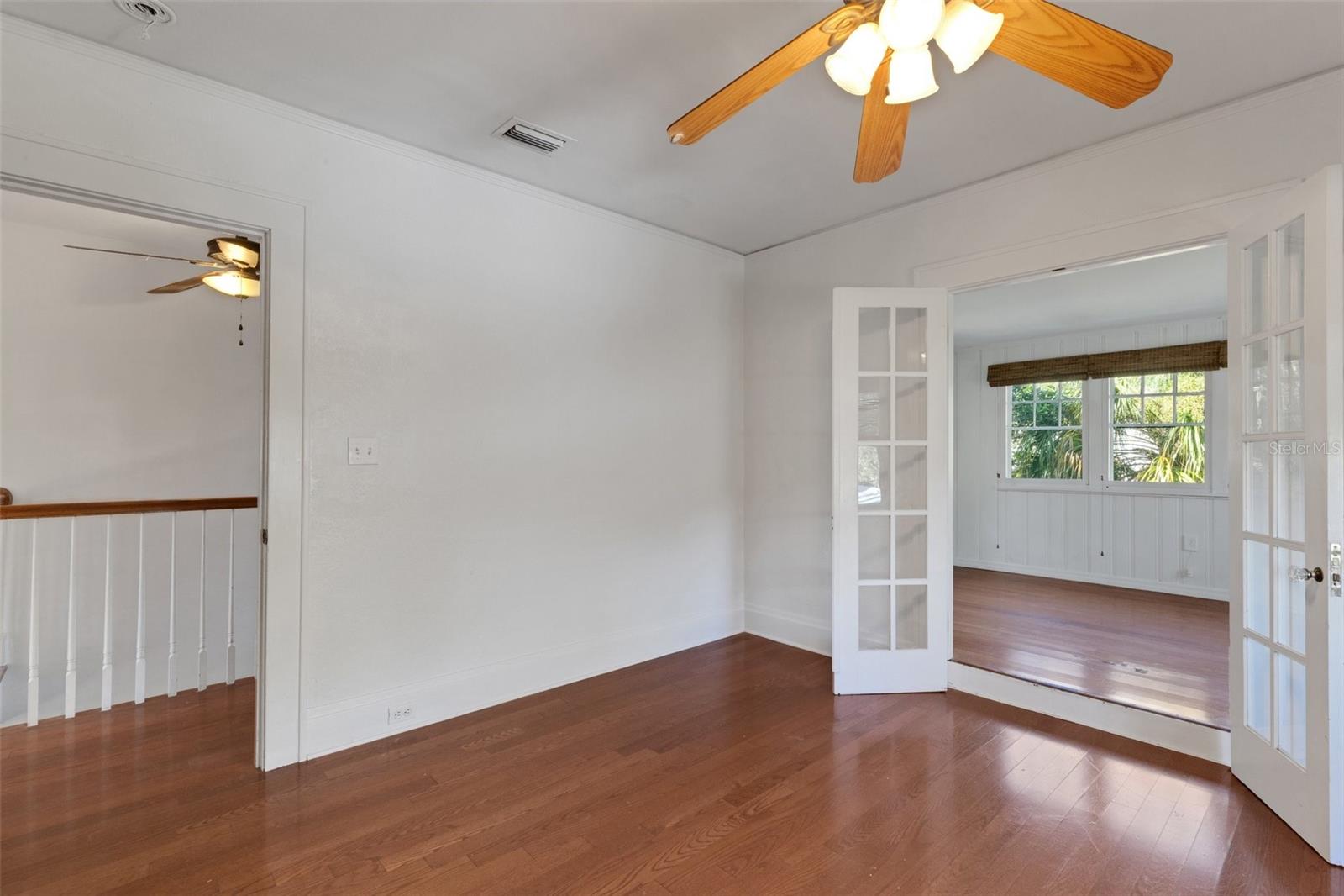 Located in the heart of Historic Wares Creek, this 1935 Craftsman style home is located on a corner lot surrounded by mature trees and landscape. The home features a wood burning fireplace, crown molding, separate dining room, large separate living room, large foyer and beautiful staircase leading to the second floor. The large kitchen has stainless appliances, granite counters, double sink & built in hutch and pantry. A large, screened porch off the kitchen is convenient for entertaining & access to the courtyard. The upstairs has 3 bedrooms, 2 baths & sunporch. The primary has a separate bath with a claw foot tub and walk in closet. A detached Mother-in-law suite with up dated kitchen & bath, Artist Studio & garage are separated from the main home by the courtyard. Many possibilities. Only a few short blocks to downtown Bradenton & the Manatee River, 15 minutes to the Gulf beaches of Anna Maria Island, Robinson Preserve & Desoto National Memorial Park. Walk downtown to the farmers markets, restaurants, shops & River Walk Park