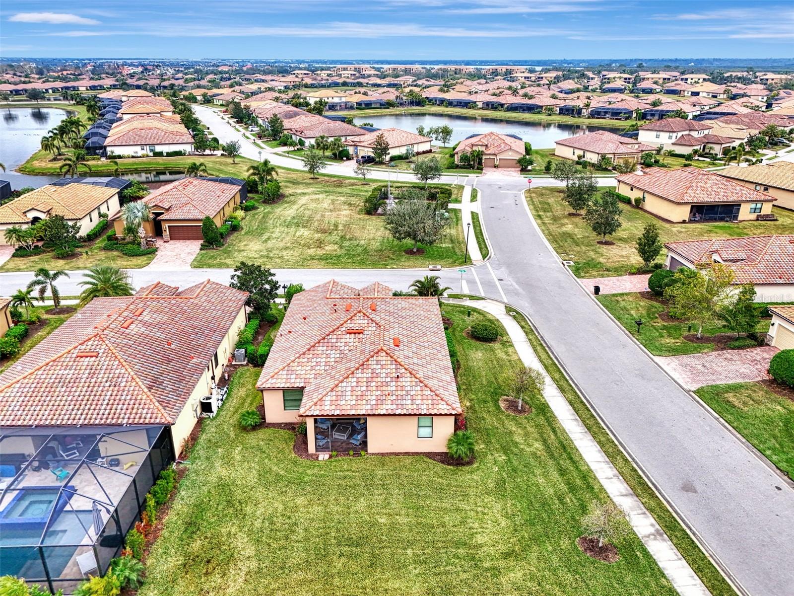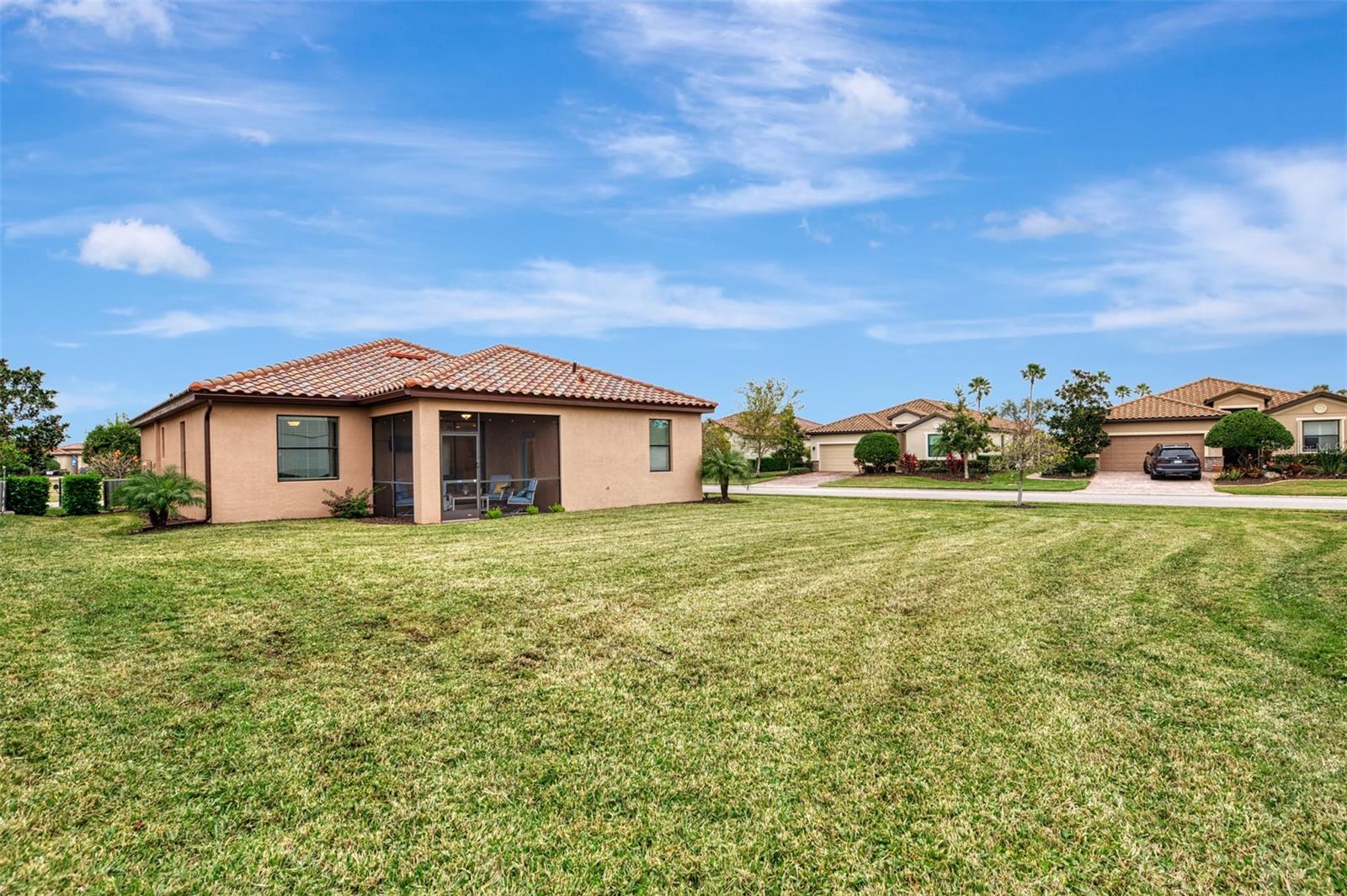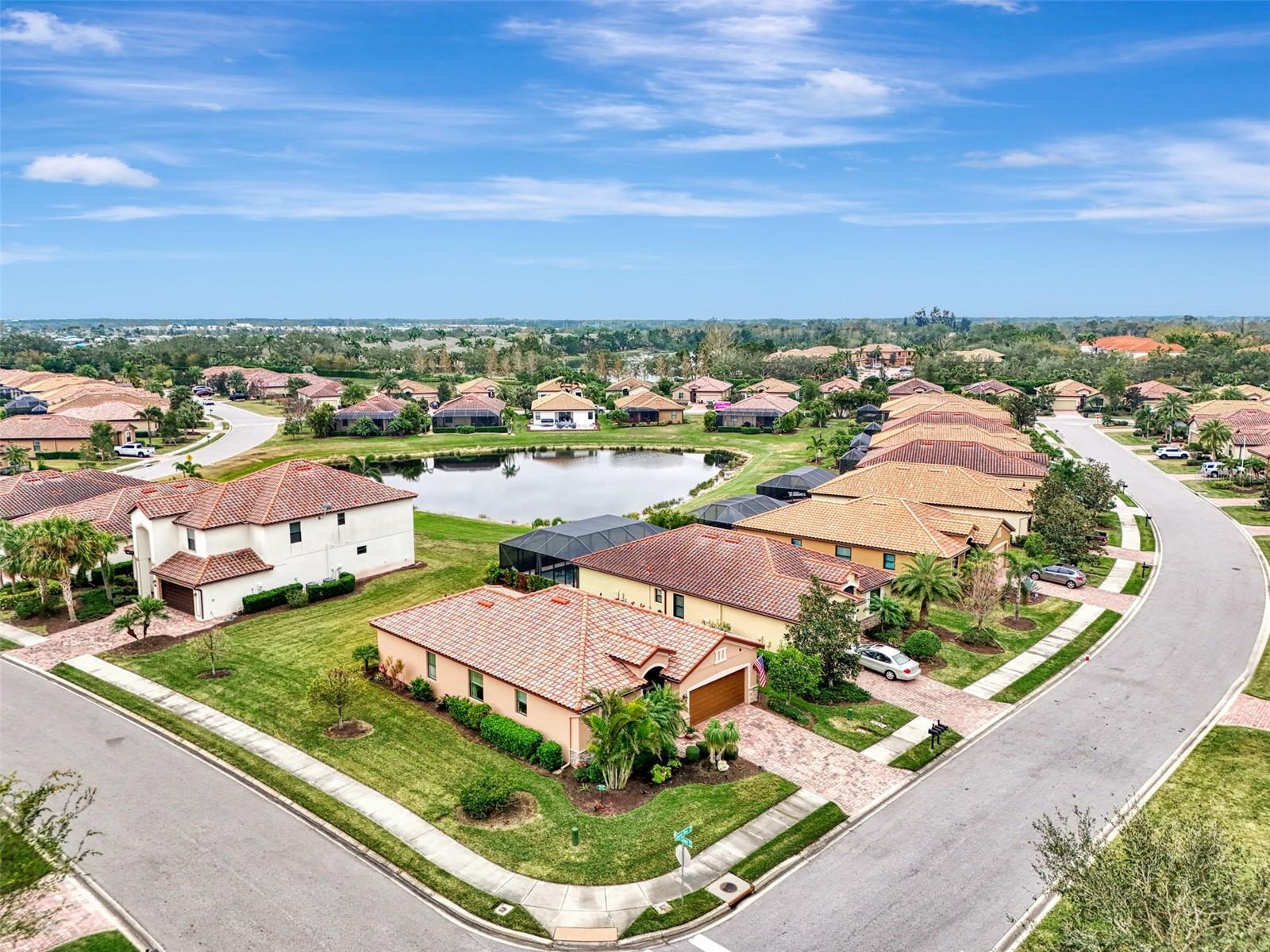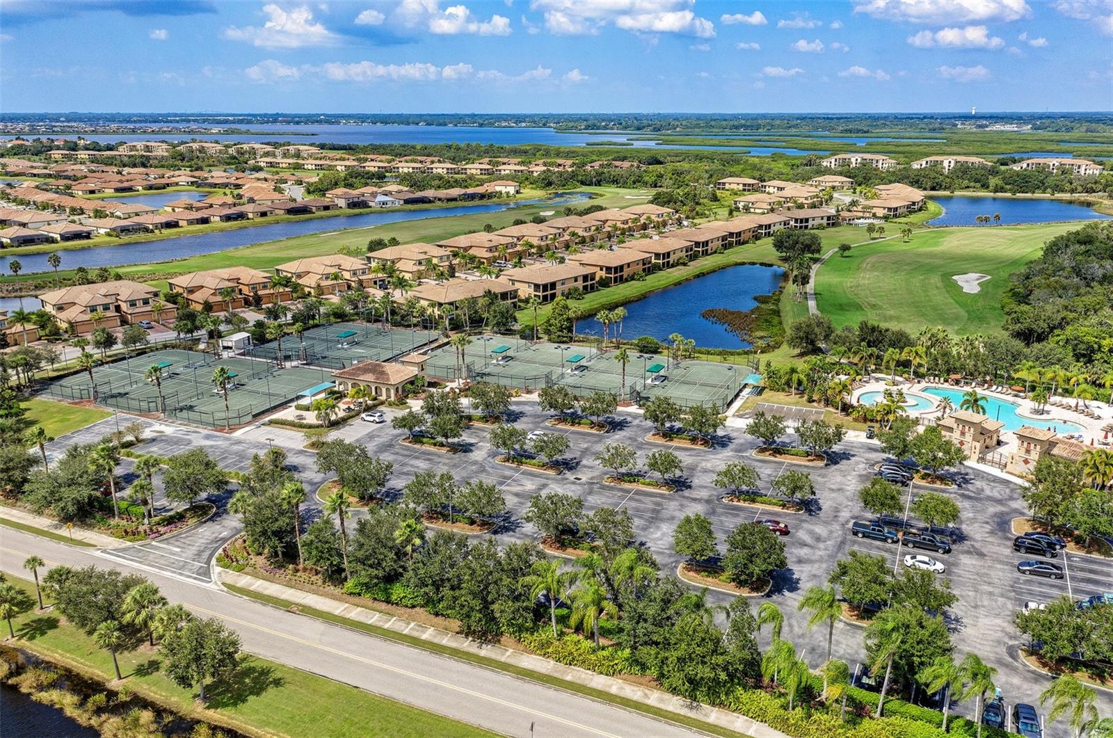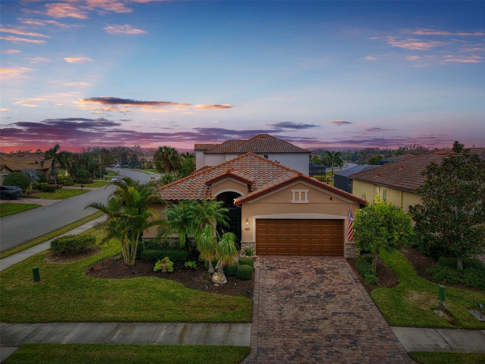 NO DAMAGE OR FLOODING FROM HURRICANE MILTON or Helene. WELCOME to this Stunning and IMMACULATELY maintained move-in ready home features an over abundance of natural light. This single story home is located in the highly sought after River Strand Golf and Country Club with 1628 sqft of living space and plenty of room for a pool. As you begin your tour you will notice the gorgeous tile floors and volume ceilings as you enter through the inviting foyer, passing through the foyer you will enter into the dining room which opens to both the kitchen and living room giving the home that open spacious floor plan. If cooking is your passion you will not be disappointed, this kitchen is equipped with stainless steel appliances, and gorgous gleaming stone countertops with plenty of space to move around with comfort, a large breakfast bar completes the space. The roomy master bedroom has an en-suite bathroom with dual sinks, a large garden soaking tub, separate shower and large walk-in closet. Additionally, you will find two spacious guest bedrooms and a guest bath with lanai access, upgraded fans and lighting throughout. Step outside into the cozy screened in outdoor space and relax as you take in the beautiful water views. FRESHLY PAINTED EXTERIOR 2024. Your life at River Strand is like being on vacation every day. Your social membership offers you access to the clubhouse/ restaurant, 2 community pools and spas, Tiki Bar, 6 satellite pools, 2 fitness centers, tennis, pickle-ball, and year-round social activities. HOA Fee includes Lawn Care, Cable, Internet and security of a Gated Community. Convenient to I-75, dining, shopping, Costco and our Beautiful Gulf coast beaches.