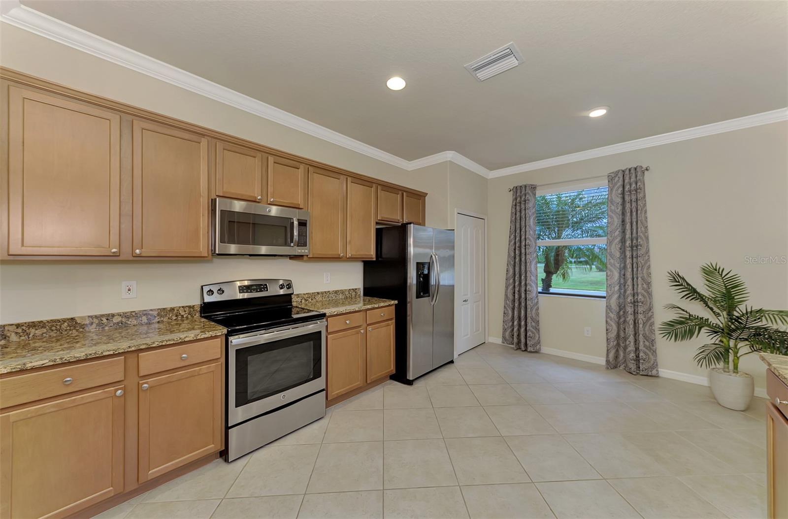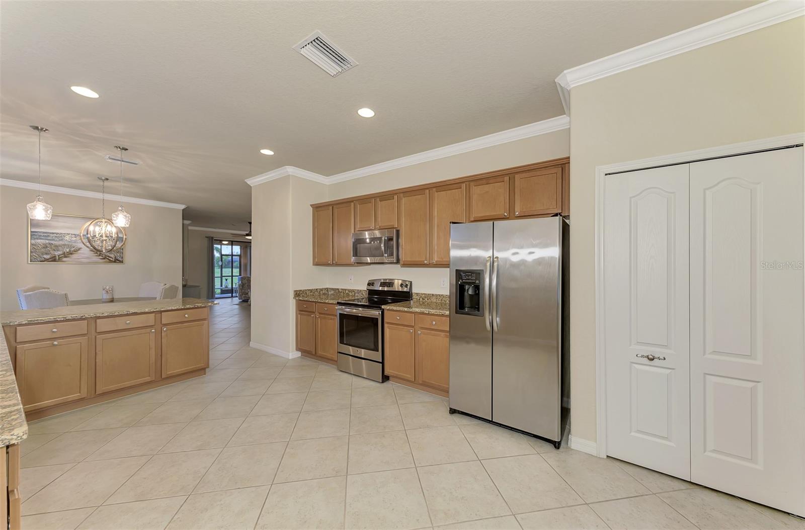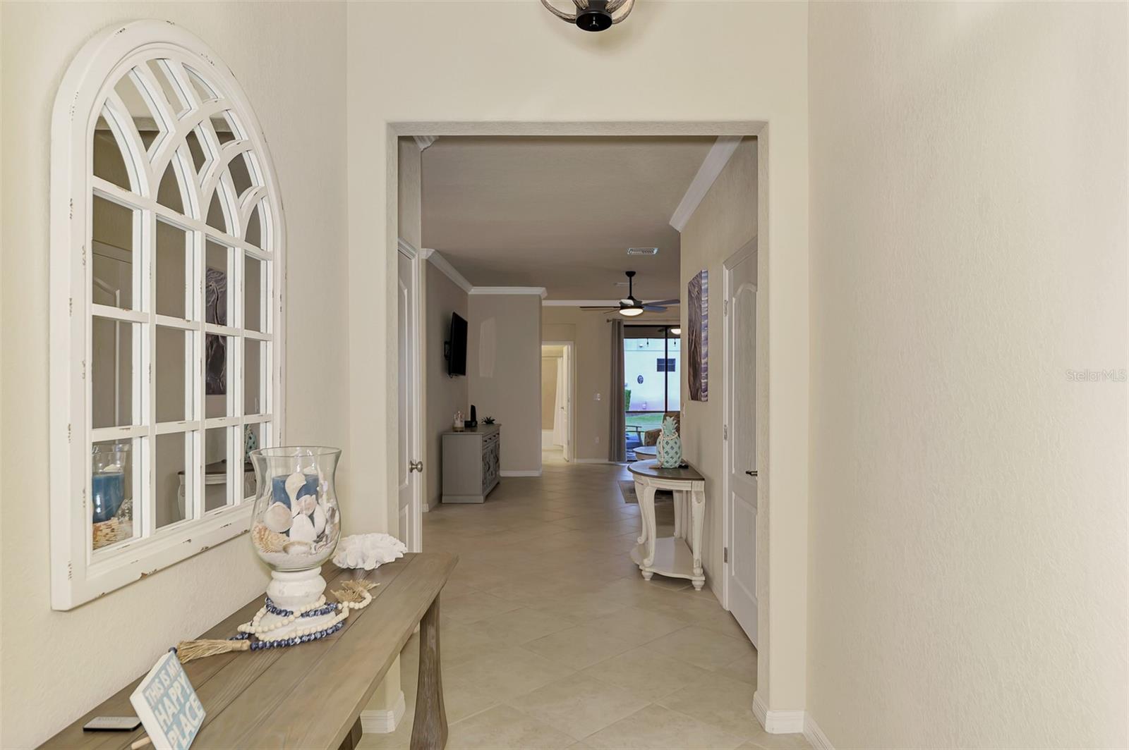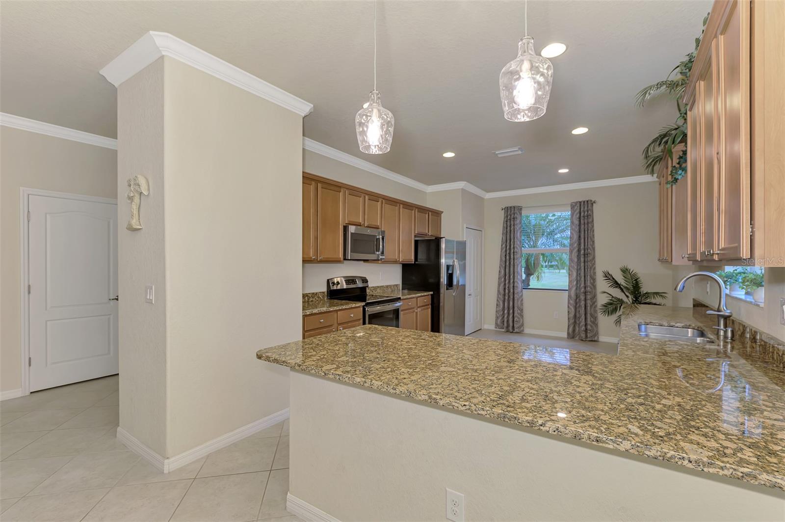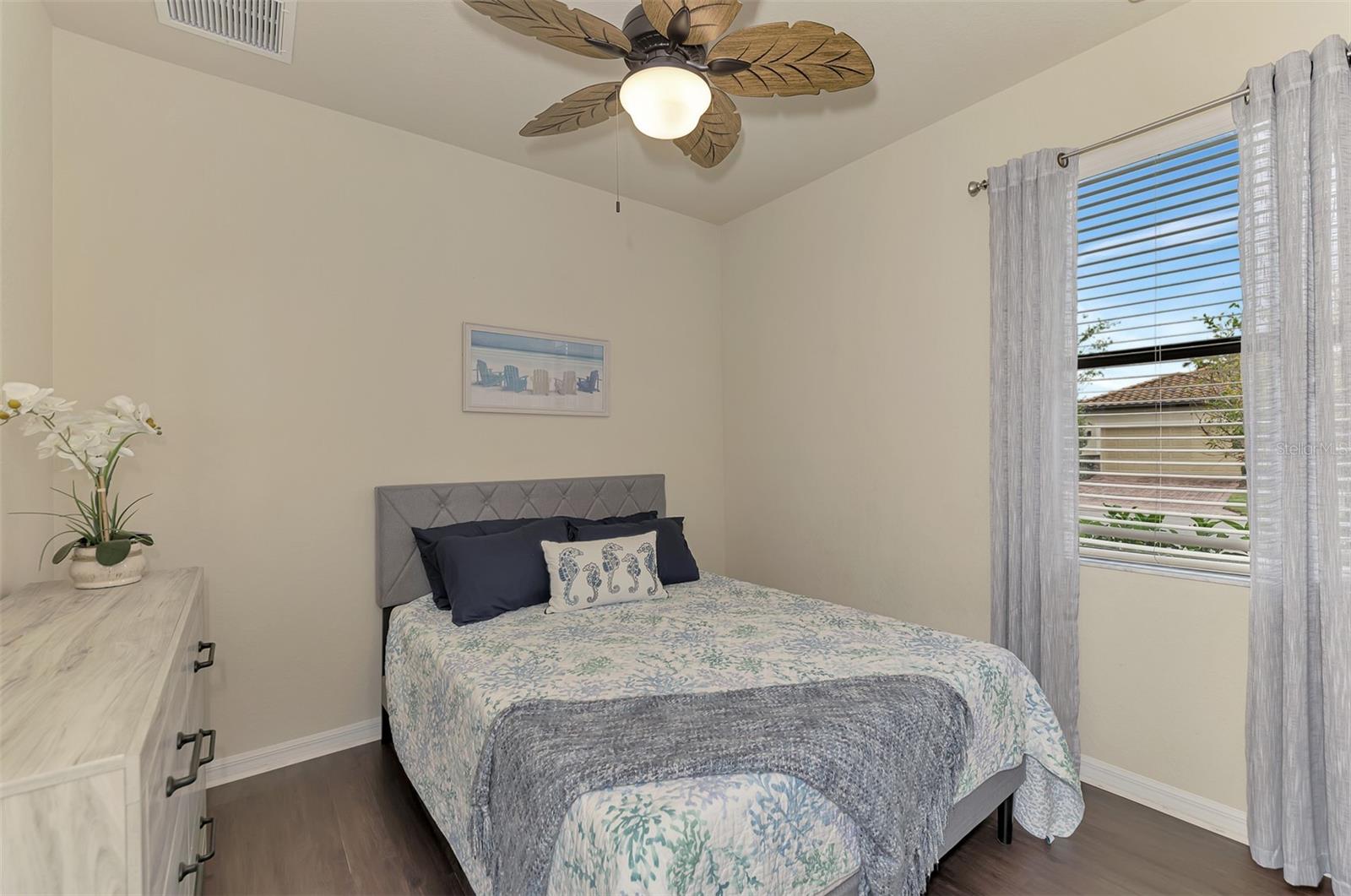 NO DAMAGE OR FLOODING FROM HURRICANE MILTON or Helene. WELCOME to this Stunning and IMMACULATELY maintained move-in ready home features an over abundance of natural light. This single story home is located in the highly sought after River Strand Golf and Country Club with 1628 sqft of living space and plenty of room for a pool. As you begin your tour you will notice the gorgeous tile floors and volume ceilings as you enter through the inviting foyer, passing through the foyer you will enter into the dining room which opens to both the kitchen and living room giving the home that open spacious floor plan. If cooking is your passion you will not be disappointed, this kitchen is equipped with stainless steel appliances, and gorgous gleaming stone countertops with plenty of space to move around with comfort, a large breakfast bar completes the space. The roomy master bedroom has an en-suite bathroom with dual sinks, a large garden soaking tub, separate shower and large walk-in closet. Additionally, you will find two spacious guest bedrooms and a guest bath with lanai access, upgraded fans and lighting throughout. Step outside into the cozy screened in outdoor space and relax as you take in the beautiful water views. FRESHLY PAINTED EXTERIOR 2024. Your life at River Strand is like being on vacation every day. Your social membership offers you access to the clubhouse/ restaurant, 2 community pools and spas, Tiki Bar, 6 satellite pools, 2 fitness centers, tennis, pickle-ball, and year-round social activities. HOA Fee includes Lawn Care, Cable, Internet and security of a Gated Community. Convenient to I-75, dining, shopping, Costco and our Beautiful Gulf coast beaches.