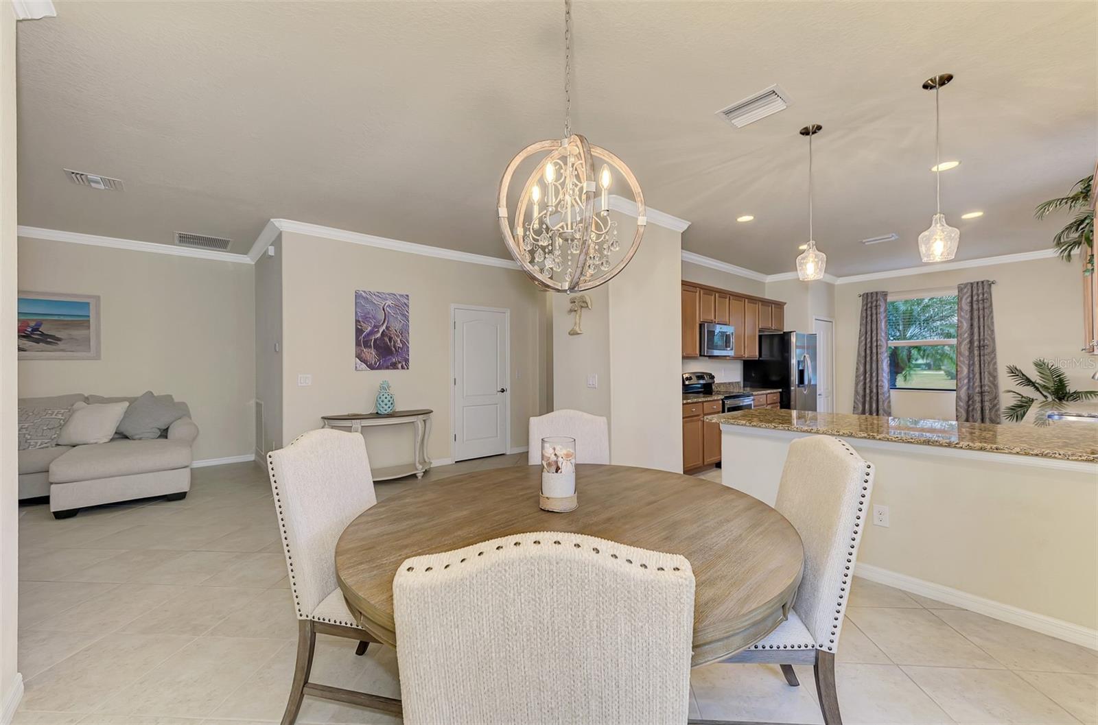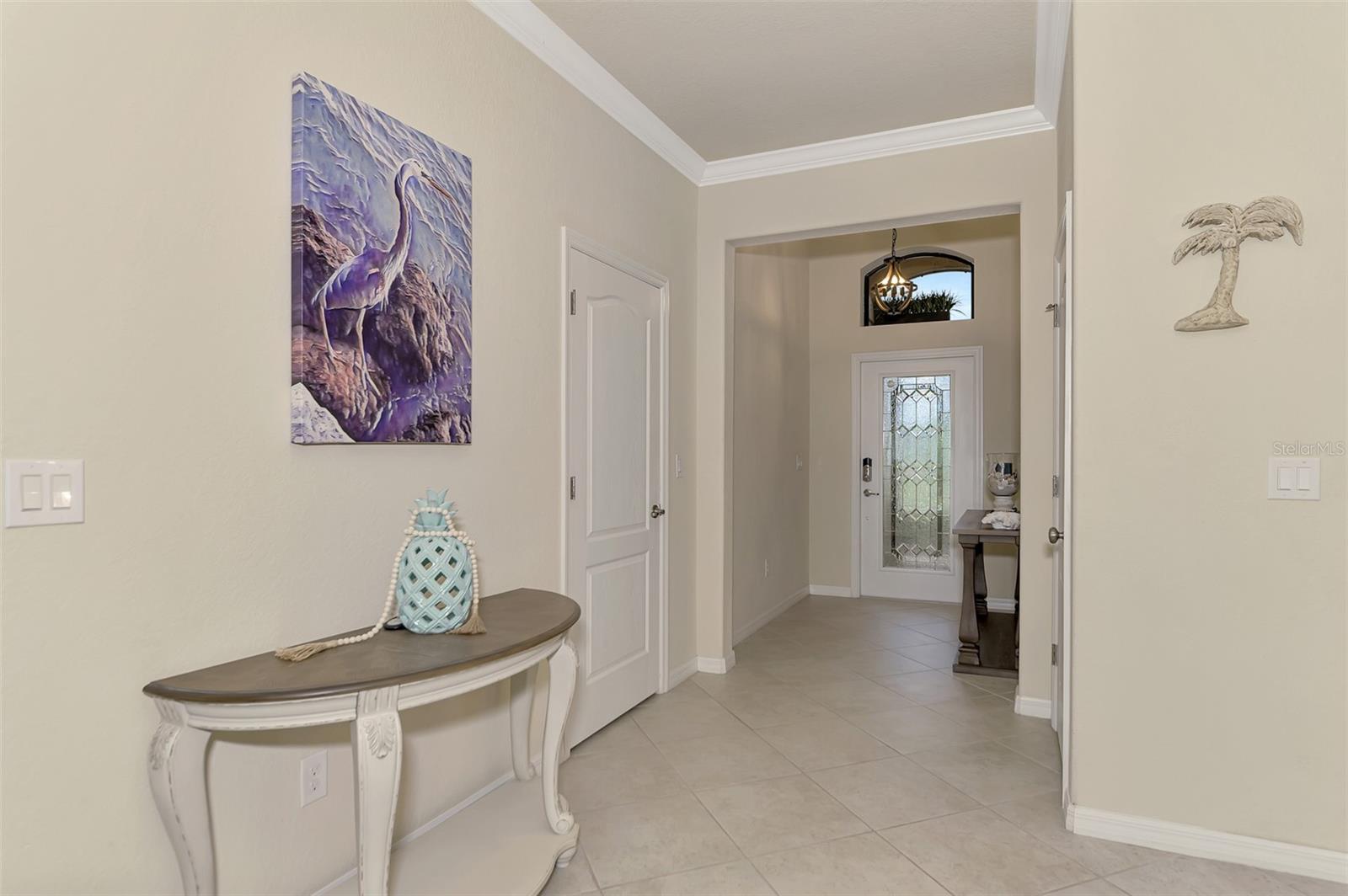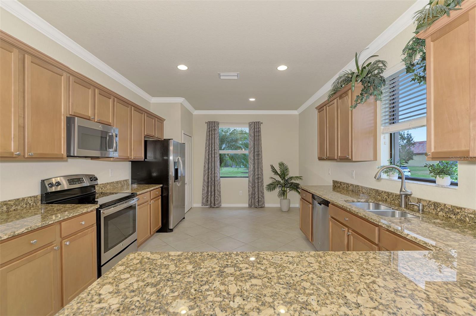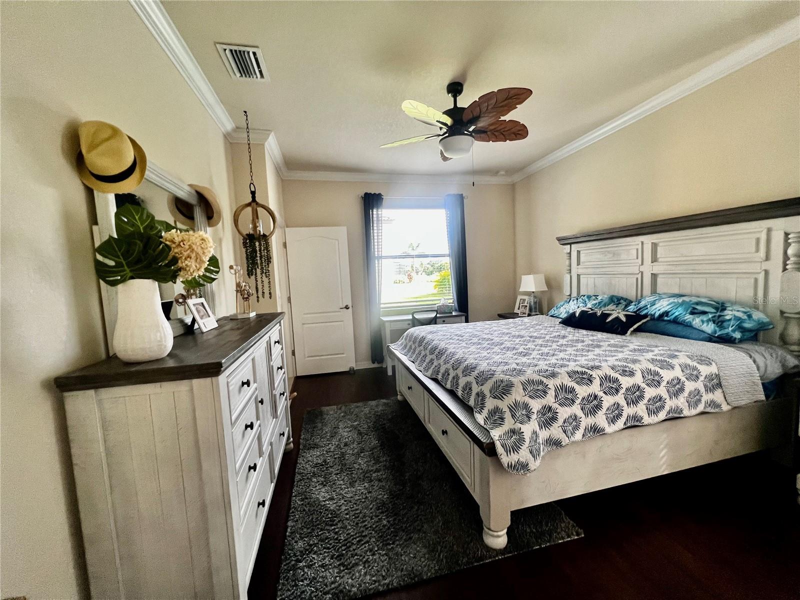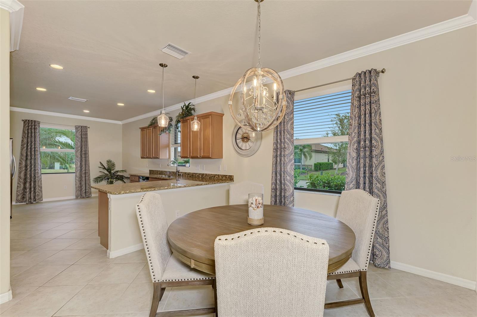 NO DAMAGE OR FLOODING FROM HURRICANE MILTON or Helene. WELCOME to this Stunning and IMMACULATELY maintained move-in ready home features an over abundance of natural light. This single story home is located in the highly sought after River Strand Golf and Country Club with 1628 sqft of living space and plenty of room for a pool. As you begin your tour you will notice the gorgeous tile floors and volume ceilings as you enter through the inviting foyer, passing through the foyer you will enter into the dining room which opens to both the kitchen and living room giving the home that open spacious floor plan. If cooking is your passion you will not be disappointed, this kitchen is equipped with stainless steel appliances, and gorgous gleaming stone countertops with plenty of space to move around with comfort, a large breakfast bar completes the space. The roomy master bedroom has an en-suite bathroom with dual sinks, a large garden soaking tub, separate shower and large walk-in closet. Additionally, you will find two spacious guest bedrooms and a guest bath with lanai access, upgraded fans and lighting throughout. Step outside into the cozy screened in outdoor space and relax as you take in the beautiful water views. FRESHLY PAINTED EXTERIOR 2024. Your life at River Strand is like being on vacation every day. Your social membership offers you access to the clubhouse/ restaurant, 2 community pools and spas, Tiki Bar, 6 satellite pools, 2 fitness centers, tennis, pickle-ball, and year-round social activities. HOA Fee includes Lawn Care, Cable, Internet and security of a Gated Community. Convenient to I-75, dining, shopping, Costco and our Beautiful Gulf coast beaches.