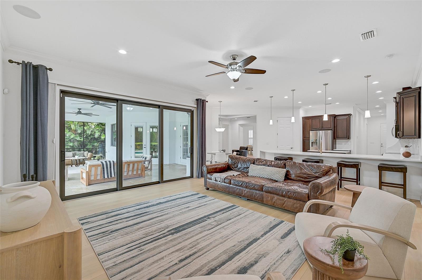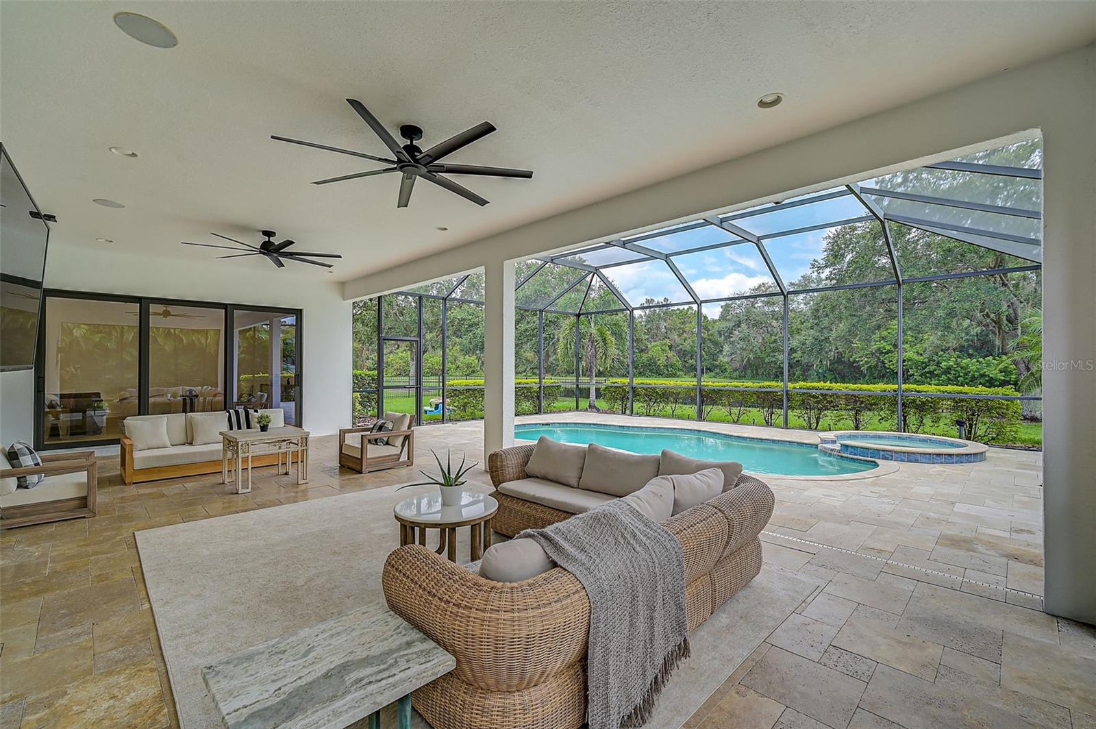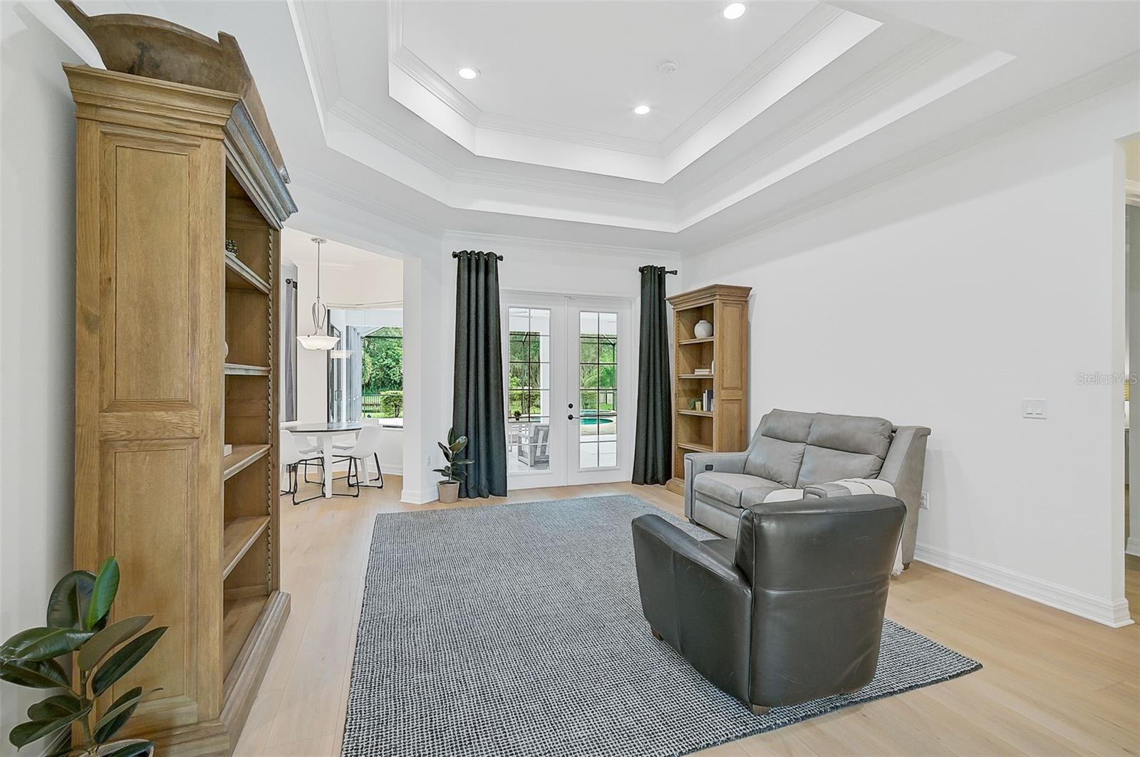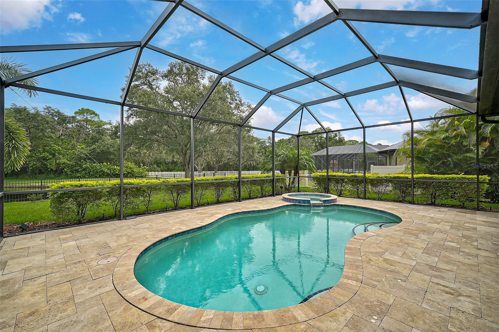 This stunning, updated POOL home is located in the highly sought-after Mill Creek neighborhood and offers nearly 3,900 square feet of living space. With 4 bedrooms, 3.5 baths, and an office/den, this home is perfect for those seeking both style and functionality. Inside, you'll find tray ceilings, new luxury vinyl plank floors, updated fixtures, and impact windows adorned with plantation shutters. The split-bedroom plan ensures privacy, while the magnificent owner's suite boasts French doors leading to the lanai and custom California closet systems. The kitchen is beautifully upgraded with stainless steel appliances, quartz countertops, and abundant natural light. The family room is equipped with surround sound, and in-ceiling stereo speakers extend to the lanai, creating the perfect ambiance for indoor and outdoor entertaining. The saltwater pool features a fountain, hot tub, and a picturesque view of the beautifully landscaped and fenced backyard. Additional highlights include under-stair storage, an expansive laundry room, and a versatile bonus room/4th bedroom upstairs with a full bath, ideal for a media room, private gym, or playroom. The 2.5-car garage offers epoxy floors and overhead storage for added convenience. Don’t miss the chance to live in one of Bradenton's most desirable neighborhoods with a low HOA and proximity to shopping, dining, entertainment, beaches, and more.
