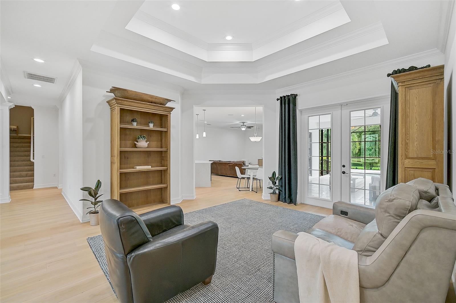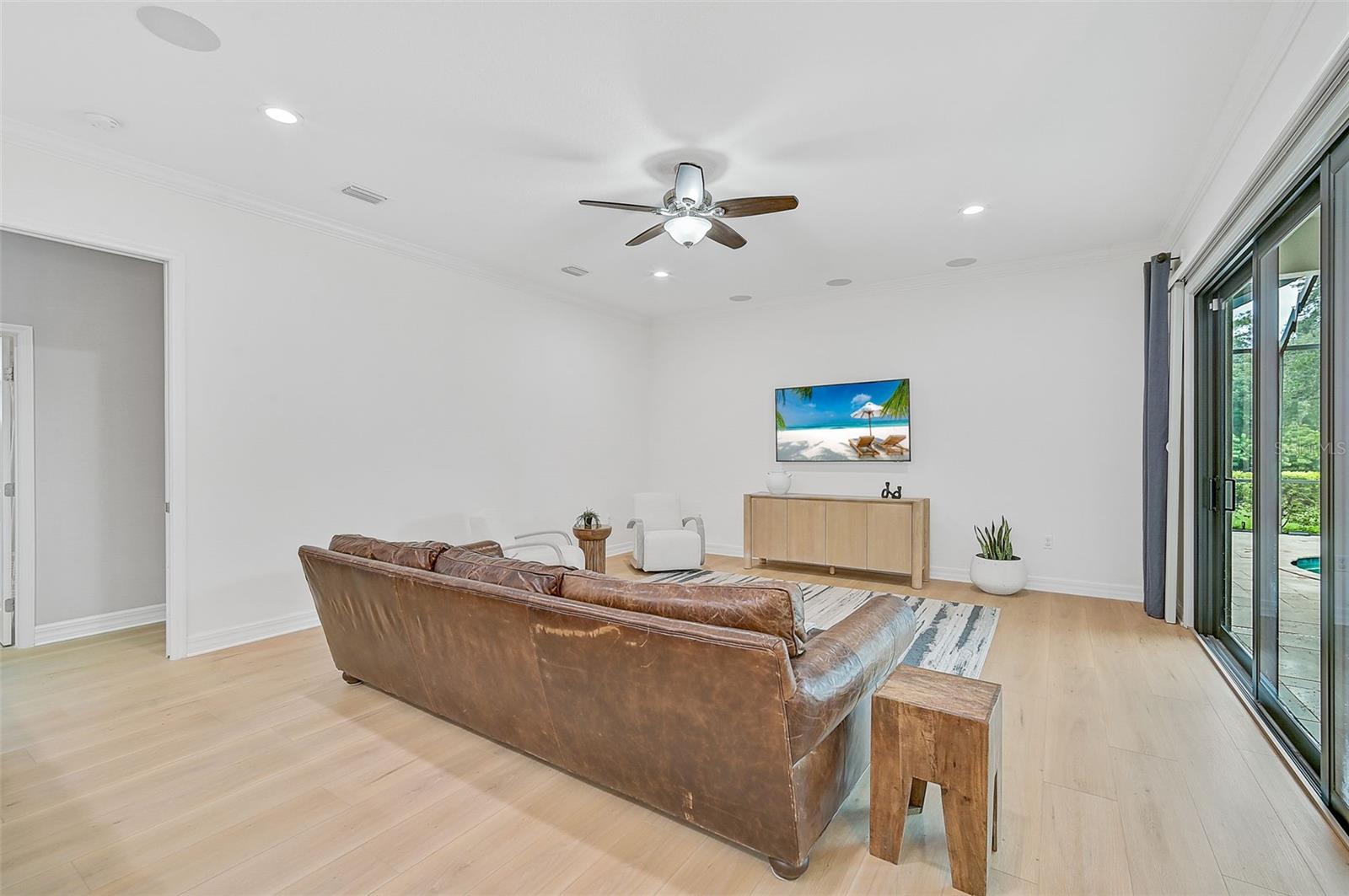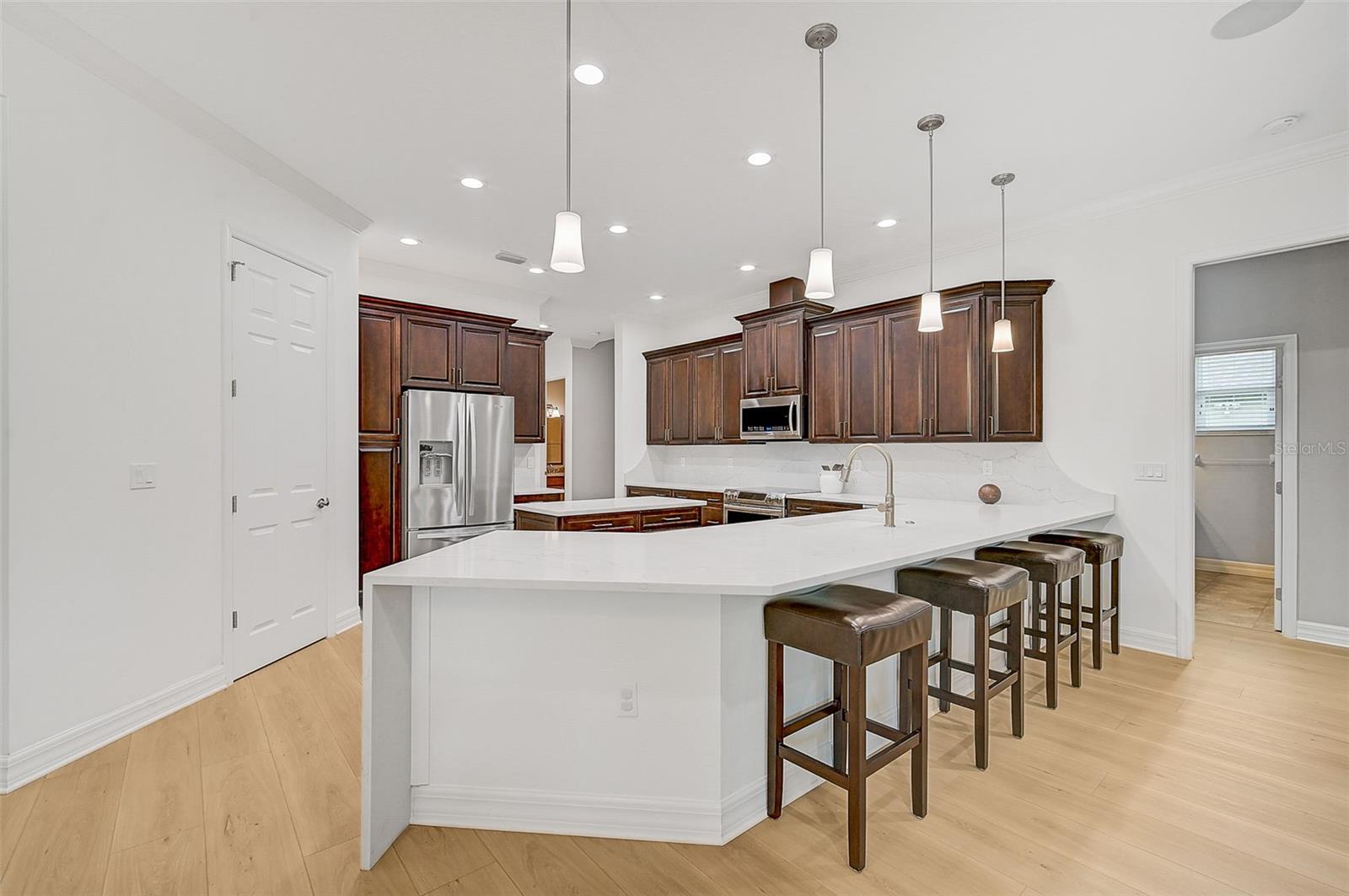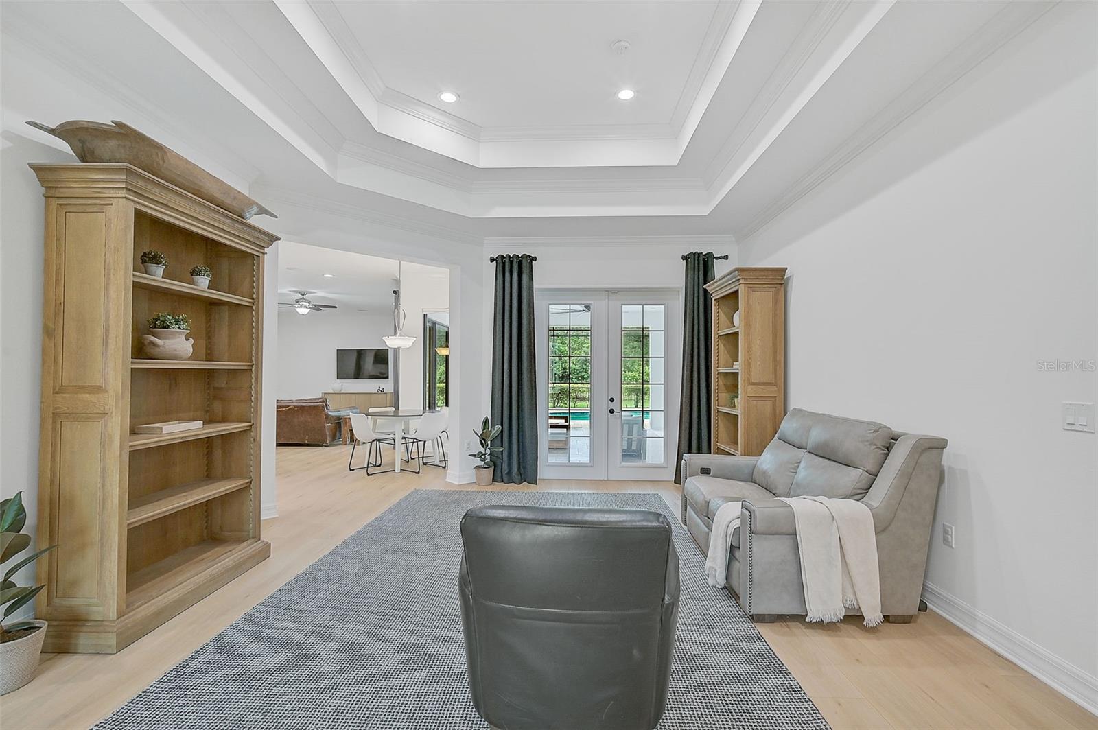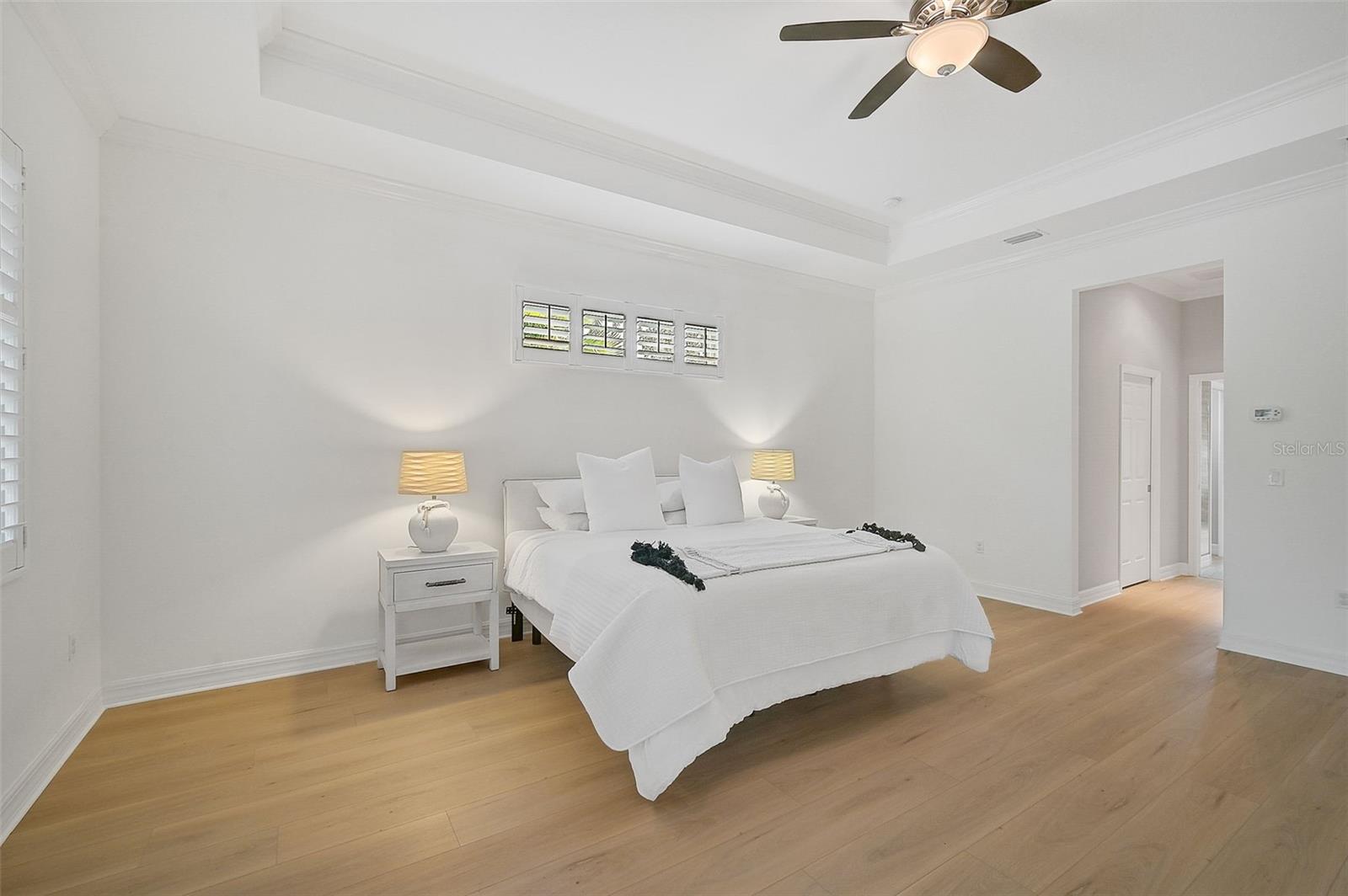This stunning, updated POOL home is located in the highly sought-after Mill Creek neighborhood and offers nearly 3,900 square feet of living space. With 4 bedrooms, 3.5 baths, and an office/den, this home is perfect for those seeking both style and functionality. Inside, you'll find tray ceilings, new luxury vinyl plank floors, updated fixtures, and impact windows adorned with plantation shutters. The split-bedroom plan ensures privacy, while the magnificent owner's suite boasts French doors leading to the lanai and custom California closet systems. The kitchen is beautifully upgraded with stainless steel appliances, quartz countertops, and abundant natural light. The family room is equipped with surround sound, and in-ceiling stereo speakers extend to the lanai, creating the perfect ambiance for indoor and outdoor entertaining. The saltwater pool features a fountain, hot tub, and a picturesque view of the beautifully landscaped and fenced backyard. Additional highlights include under-stair storage, an expansive laundry room, and a versatile bonus room/4th bedroom upstairs with a full bath, ideal for a media room, private gym, or playroom. The 2.5-car garage offers epoxy floors and overhead storage for added convenience. Don’t miss the chance to live in one of Bradenton's most desirable neighborhoods with a low HOA and proximity to shopping, dining, entertainment, beaches, and more.