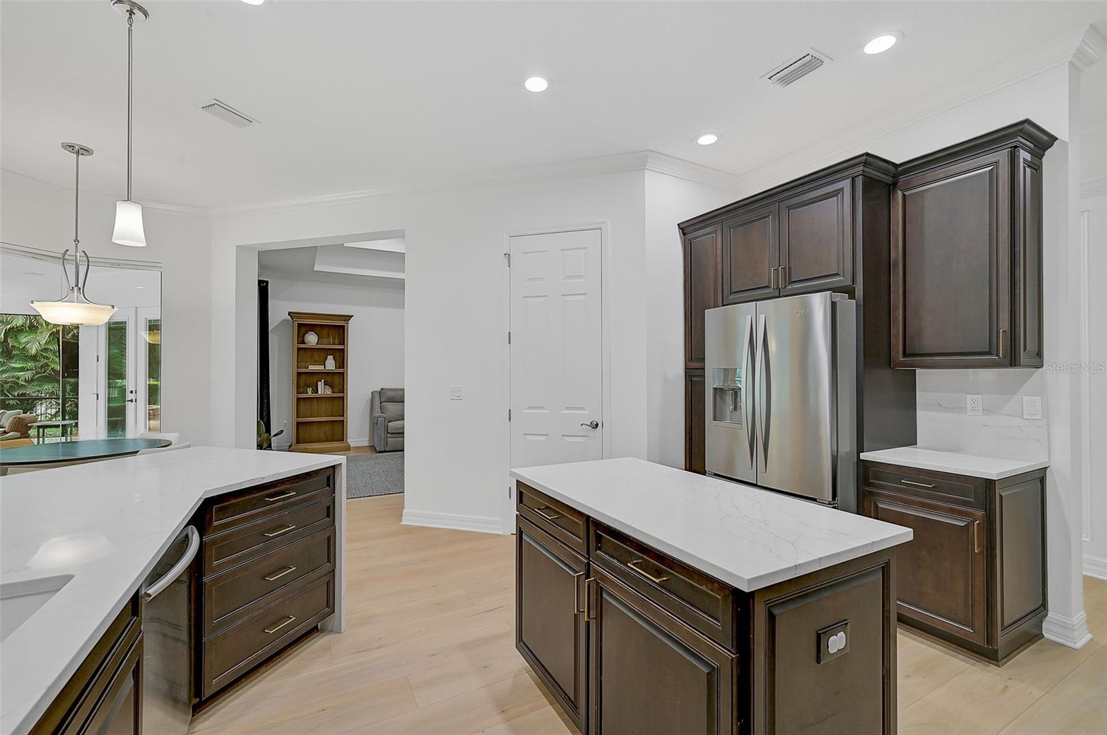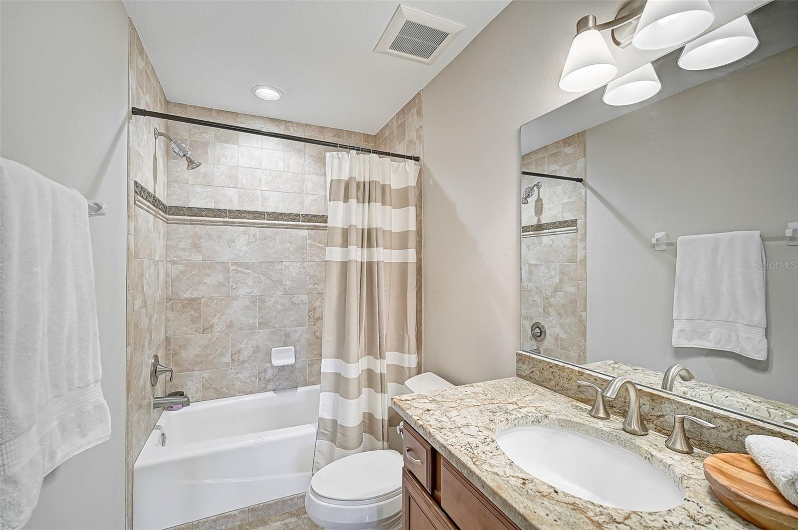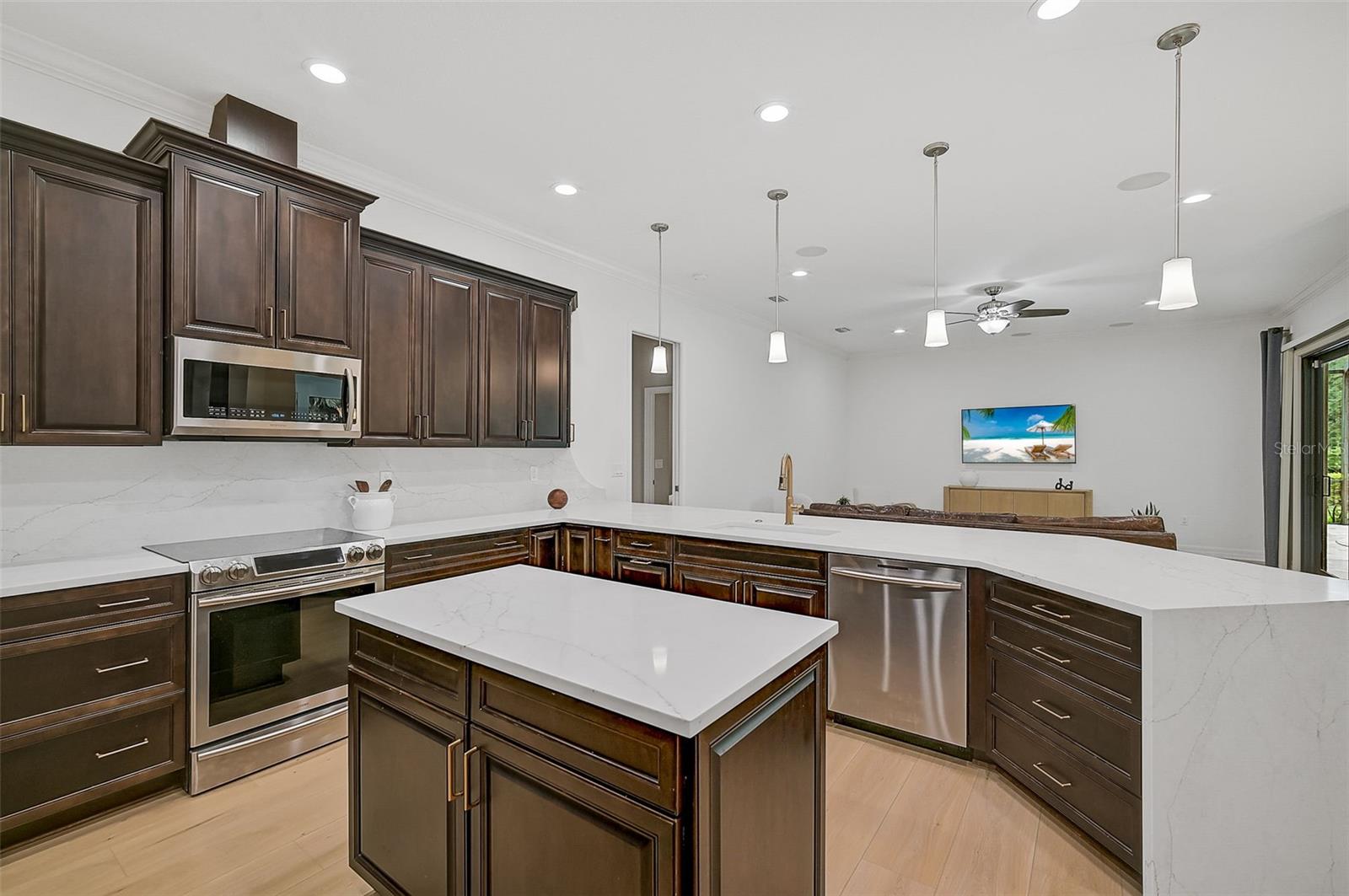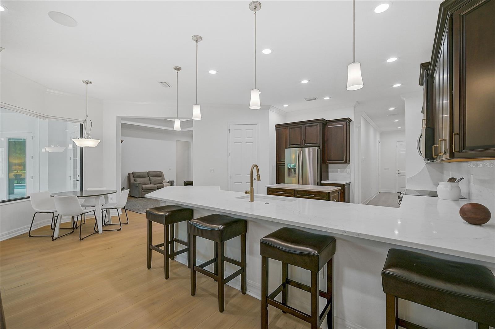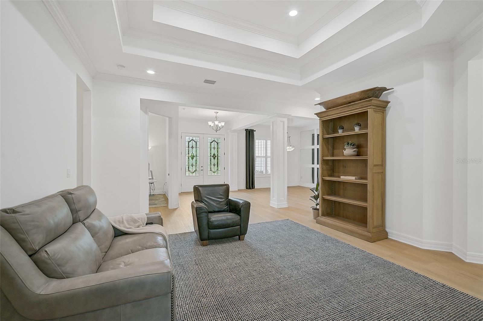 This stunning, updated POOL home is located in the highly sought-after Mill Creek neighborhood and offers nearly 3,900 square feet of living space. With 4 bedrooms, 3.5 baths, and an office/den, this home is perfect for those seeking both style and functionality. Inside, you'll find tray ceilings, new luxury vinyl plank floors, updated fixtures, and impact windows adorned with plantation shutters. The split-bedroom plan ensures privacy, while the magnificent owner's suite boasts French doors leading to the lanai and custom California closet systems. The kitchen is beautifully upgraded with stainless steel appliances, quartz countertops, and abundant natural light. The family room is equipped with surround sound, and in-ceiling stereo speakers extend to the lanai, creating the perfect ambiance for indoor and outdoor entertaining. The saltwater pool features a fountain, hot tub, and a picturesque view of the beautifully landscaped and fenced backyard. Additional highlights include under-stair storage, an expansive laundry room, and a versatile bonus room/4th bedroom upstairs with a full bath, ideal for a media room, private gym, or playroom. The 2.5-car garage offers epoxy floors and overhead storage for added convenience. Don’t miss the chance to live in one of Bradenton's most desirable neighborhoods with a low HOA and proximity to shopping, dining, entertainment, beaches, and more.