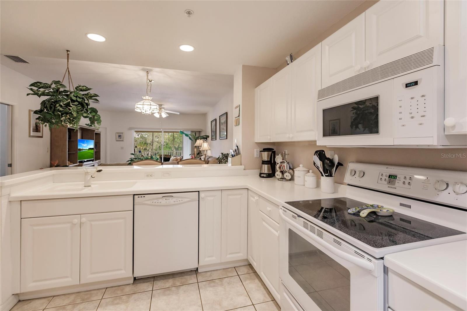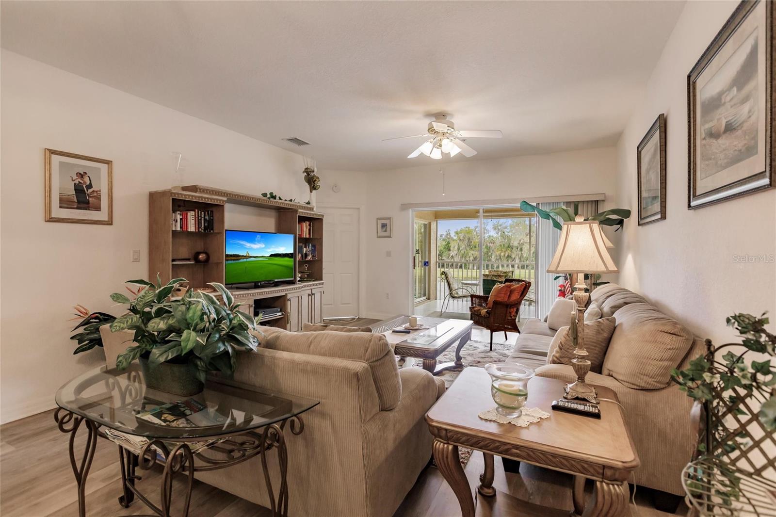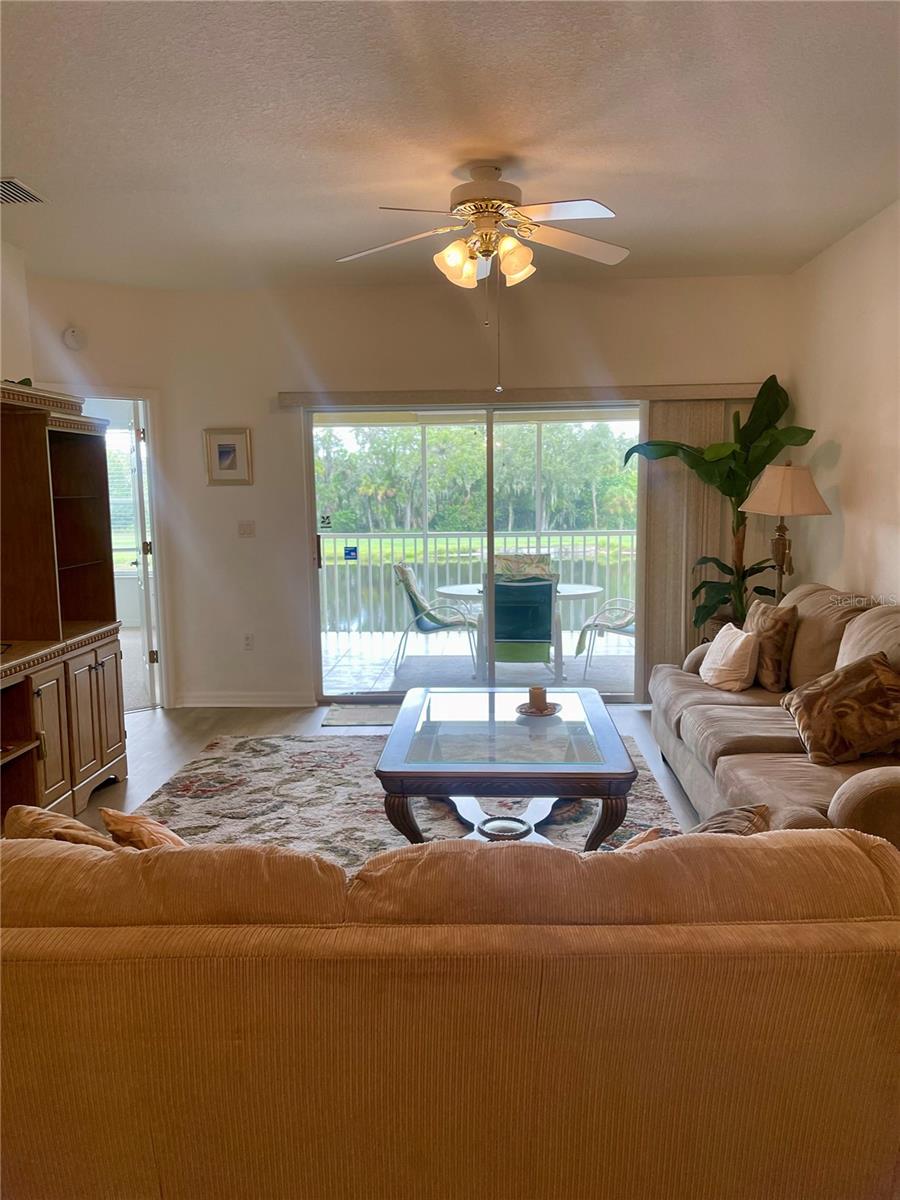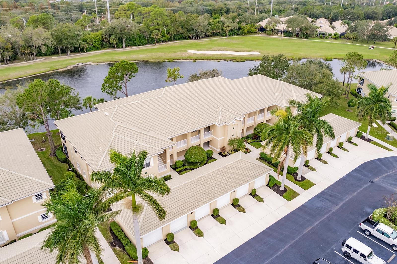 NEW FLOORS IN LIVING AREA! Picture yourself living in a serene retreat designed for both comfort and leisure. This captivating, two-bedroom, two-bathroom condo with an expansive den offers a private balcony showcasing breathtaking pristine golf course views and reflective water views. This condo effortlessly meets practical design, recently updated with brand-new luxury vinyl flooring in the living area. The well-appointed kitchen boasts ample storage, expansive counter space, and a charming breakfast nook. The primary bedroom features an en-suite bathroom and generous closets, ensuring a private sanctuary of convenience and style. An additional spacious bedroom and a versatile den provide endless relaxation and functional living possibilities. From dishes to linens to TVs, this property is truly move-in ready, providing everything you need for immediate comfort and ease. Private garage and separate storage unit included. Located in the desirable Tara Preserve, residents enjoy lush, well-manicured landscapes, one of Florida's premier 18-hole championship golf courses- golf is optional, and tennis and pickleball courts. Enhance your leisure time with a visit to the heated pool or the recreational facility. Nestled in a prime location near major highways, shopping centers, restaurants, and the highly sought-after Gulf Coast beaches, this community offers unparalleled accessibility. You'll enjoy a hassle-free lifestyle with affordable fees covering water, sewer, pest control, cable TV, internet, ground maintenance, pool maintenance, recreational facilities, and insurance. Don't miss the chance to call this exceptional condo your own!