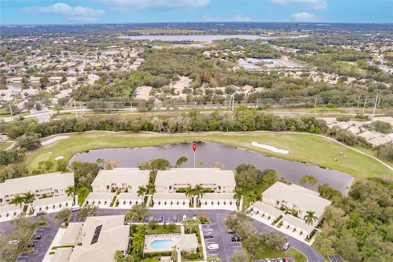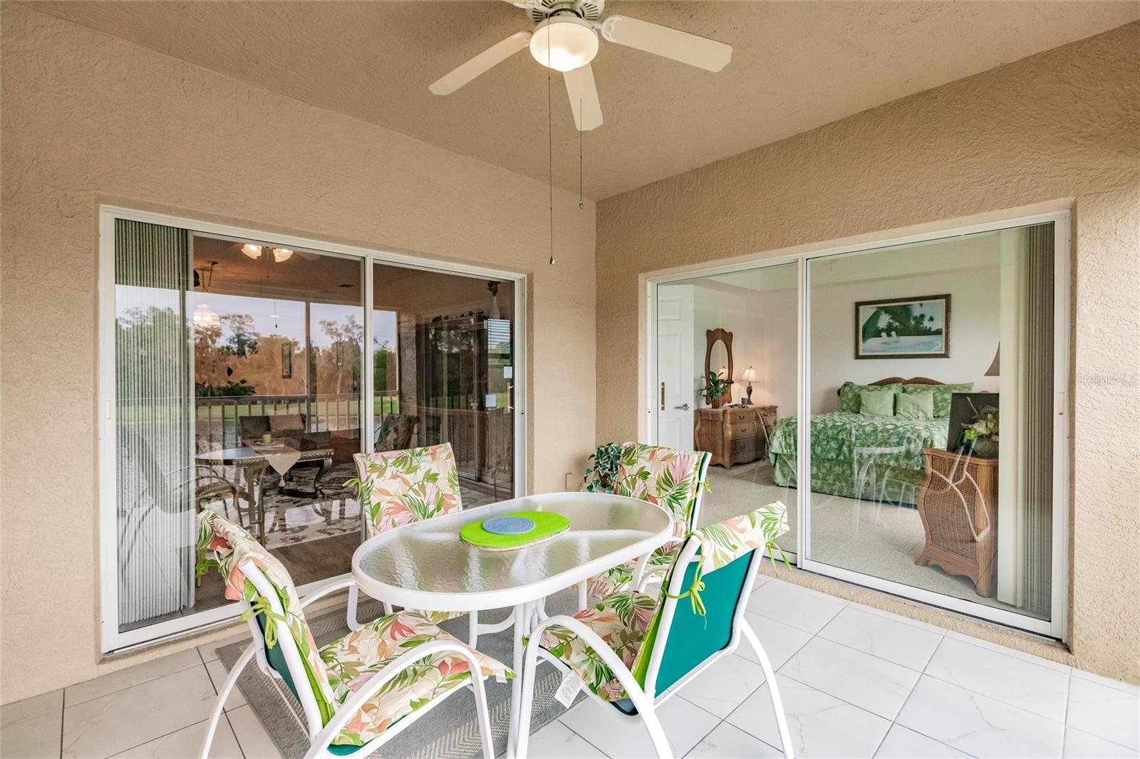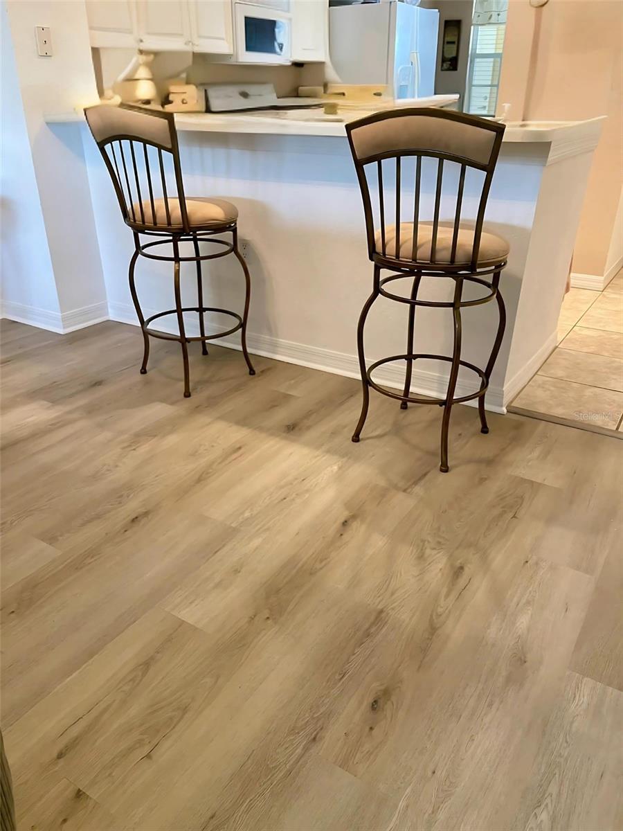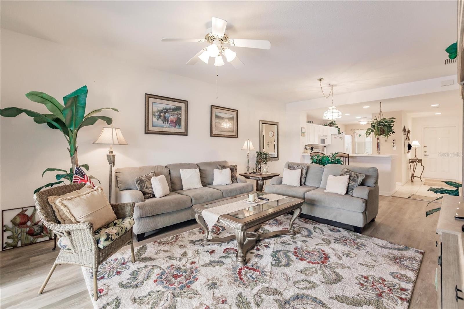 NEW FLOORS IN LIVING AREA! Picture yourself living in a serene retreat designed for both comfort and leisure. This captivating, two-bedroom, two-bathroom condo with an expansive den offers a private balcony showcasing breathtaking pristine golf course views and reflective water views. This condo effortlessly meets practical design, recently updated with brand-new luxury vinyl flooring in the living area. The well-appointed kitchen boasts ample storage, expansive counter space, and a charming breakfast nook. The primary bedroom features an en-suite bathroom and generous closets, ensuring a private sanctuary of convenience and style. An additional spacious bedroom and a versatile den provide endless relaxation and functional living possibilities. From dishes to linens to TVs, this property is truly move-in ready, providing everything you need for immediate comfort and ease. Private garage and separate storage unit included. Located in the desirable Tara Preserve, residents enjoy lush, well-manicured landscapes, one of Florida's premier 18-hole championship golf courses- golf is optional, and tennis and pickleball courts. Enhance your leisure time with a visit to the heated pool or the recreational facility. Nestled in a prime location near major highways, shopping centers, restaurants, and the highly sought-after Gulf Coast beaches, this community offers unparalleled accessibility. You'll enjoy a hassle-free lifestyle with affordable fees covering water, sewer, pest control, cable TV, internet, ground maintenance, pool maintenance, recreational facilities, and insurance. Don't miss the chance to call this exceptional condo your own!