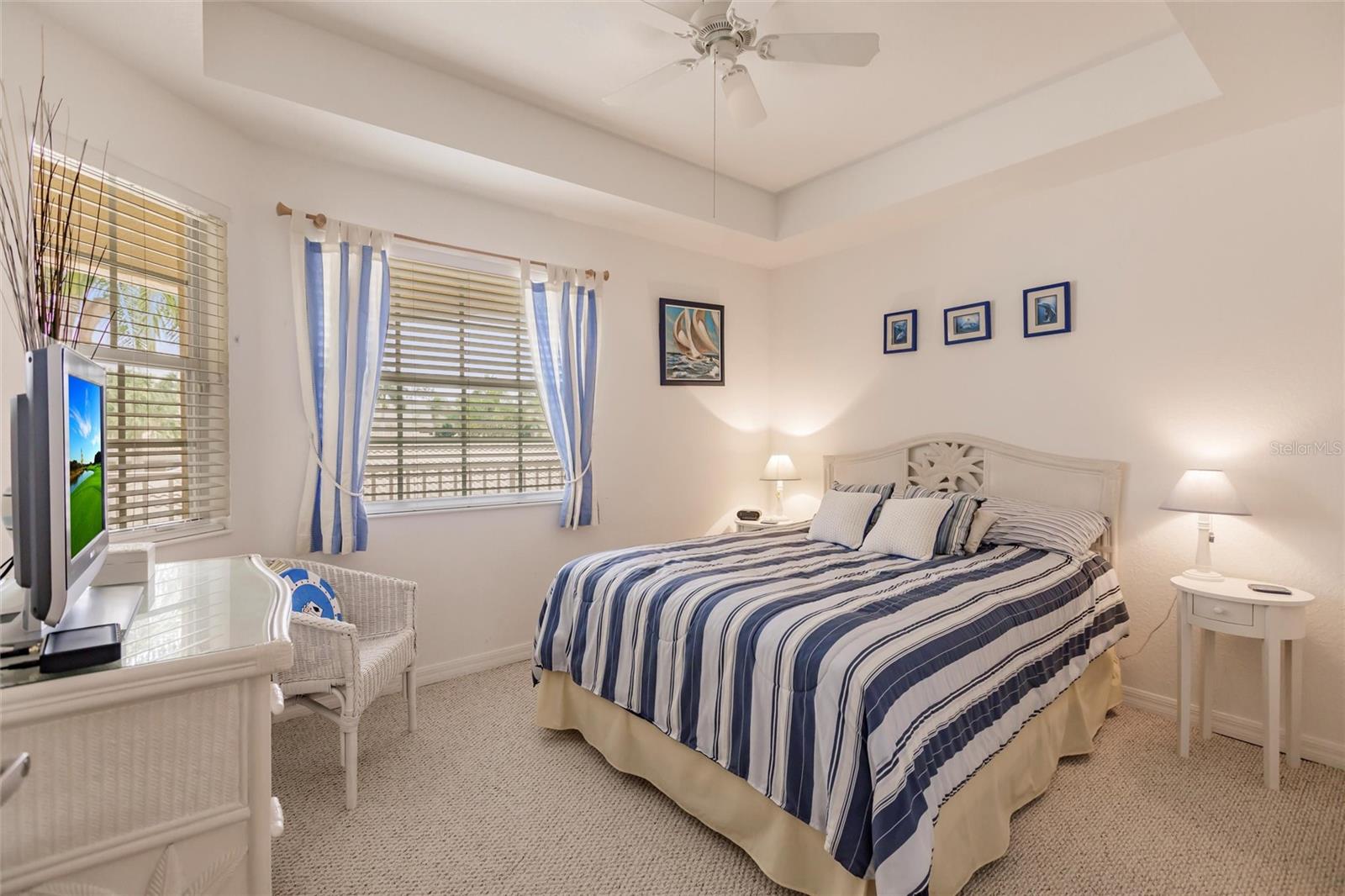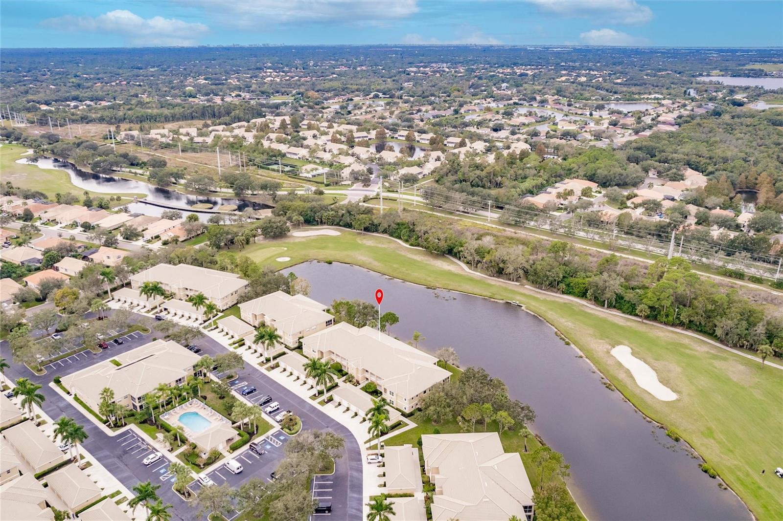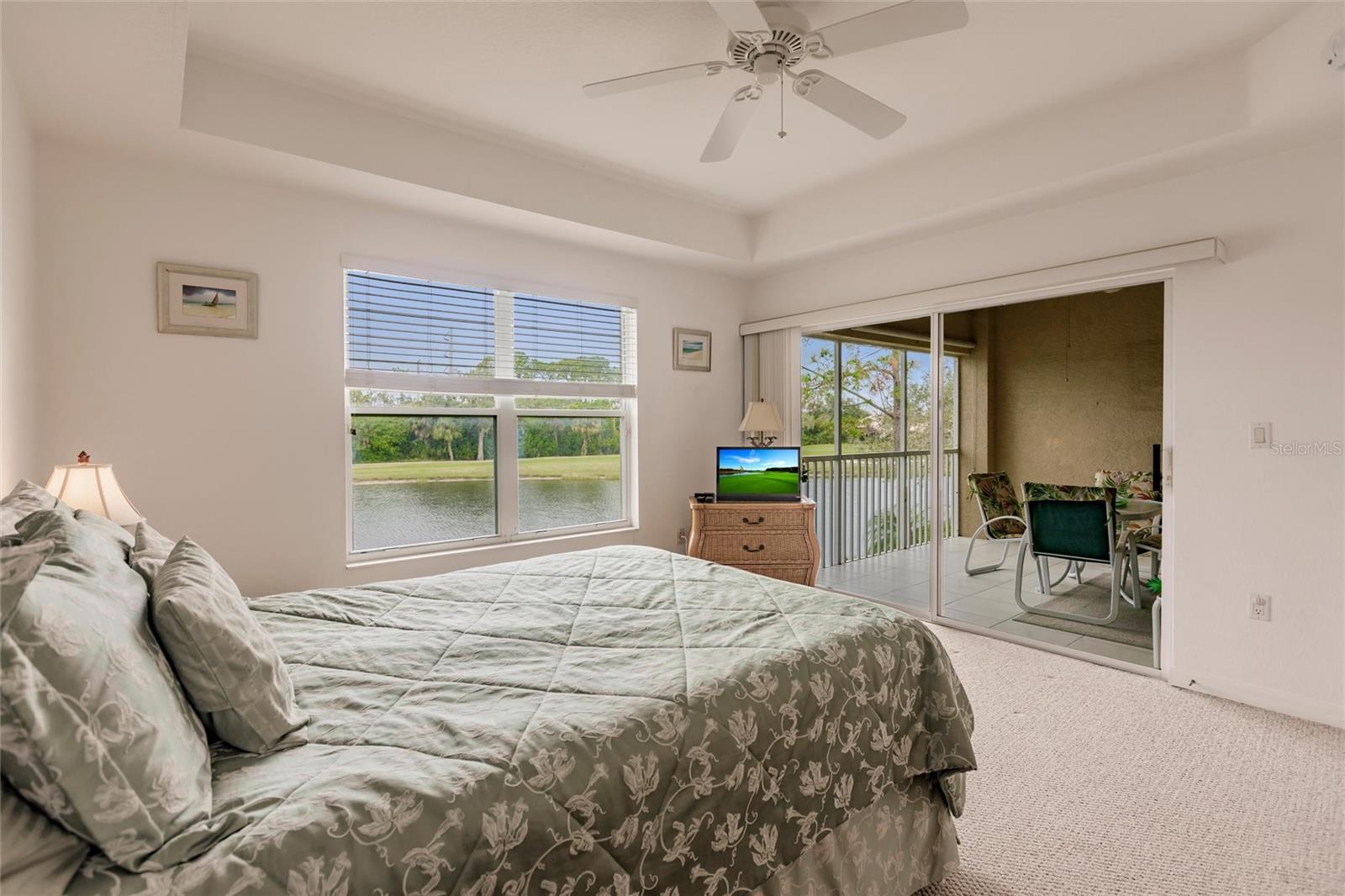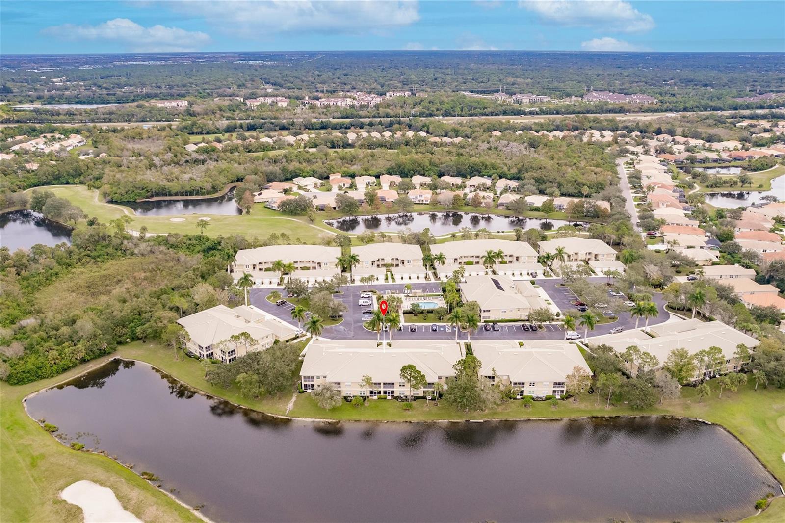 NEW FLOORS IN LIVING AREA! Picture yourself living in a serene retreat designed for both comfort and leisure. This captivating, two-bedroom, two-bathroom condo with an expansive den offers a private balcony showcasing breathtaking pristine golf course views and reflective water views. This condo effortlessly meets practical design, recently updated with brand-new luxury vinyl flooring in the living area. The well-appointed kitchen boasts ample storage, expansive counter space, and a charming breakfast nook. The primary bedroom features an en-suite bathroom and generous closets, ensuring a private sanctuary of convenience and style. An additional spacious bedroom and a versatile den provide endless relaxation and functional living possibilities. From dishes to linens to TVs, this property is truly move-in ready, providing everything you need for immediate comfort and ease. Private garage and separate storage unit included. Located in the desirable Tara Preserve, residents enjoy lush, well-manicured landscapes, one of Florida's premier 18-hole championship golf courses- golf is optional, and tennis and pickleball courts. Enhance your leisure time with a visit to the heated pool or the recreational facility. Nestled in a prime location near major highways, shopping centers, restaurants, and the highly sought-after Gulf Coast beaches, this community offers unparalleled accessibility. You'll enjoy a hassle-free lifestyle with affordable fees covering water, sewer, pest control, cable TV, internet, ground maintenance, pool maintenance, recreational facilities, and insurance. Don't miss the chance to call this exceptional condo your own!