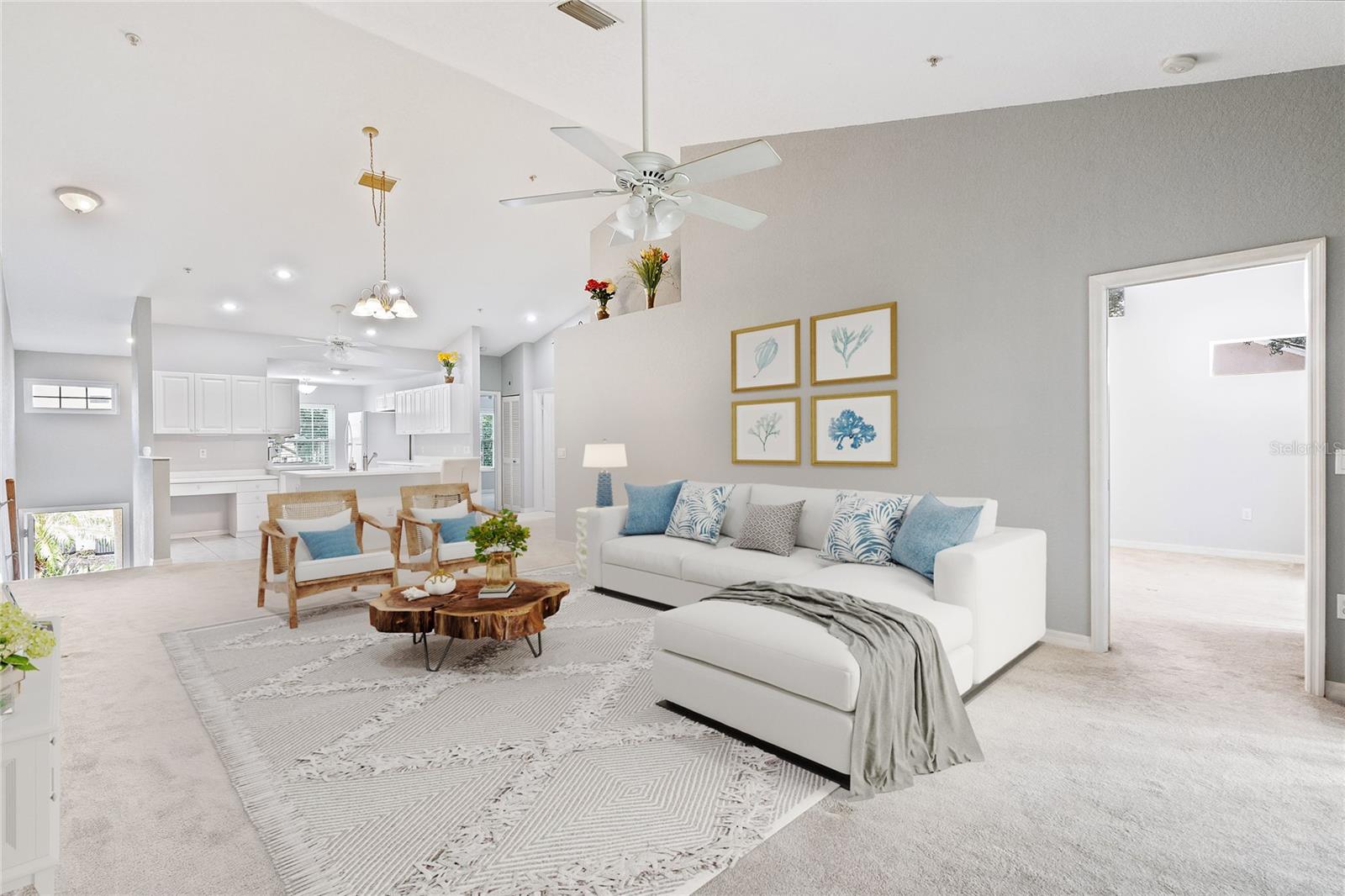 One or more photo(s) has been virtually staged. With NO MANDATORY GOLF OR SOCIAL MEMBERSHIP REQUIRED this beautiful residence is a great choice for both part or full time living. This 2BR/2BA and 1 car (with additional storage) garage townhome has an open floor plan with vaulted ceilings and plenty of space. The kitchen has light cabinetry and countertops with ample surface and storage, work desk and breakfast nook. The main bedroom is complete with generous walk-in closet and a spa-like bathroom. The second bedroom offers comfort and flexibility for guests or family. Both living room and main bedroom lead to a large private balcony. FAIRWAY GARDENS AT TARA offers a nice community pool, access to the community golf and club house (if you decide to purchase membership). Centrally located with quick access to I-75, shopping, dining, short drive to SRQ Airport, UTC Mall and some of the best beaches in Florida.