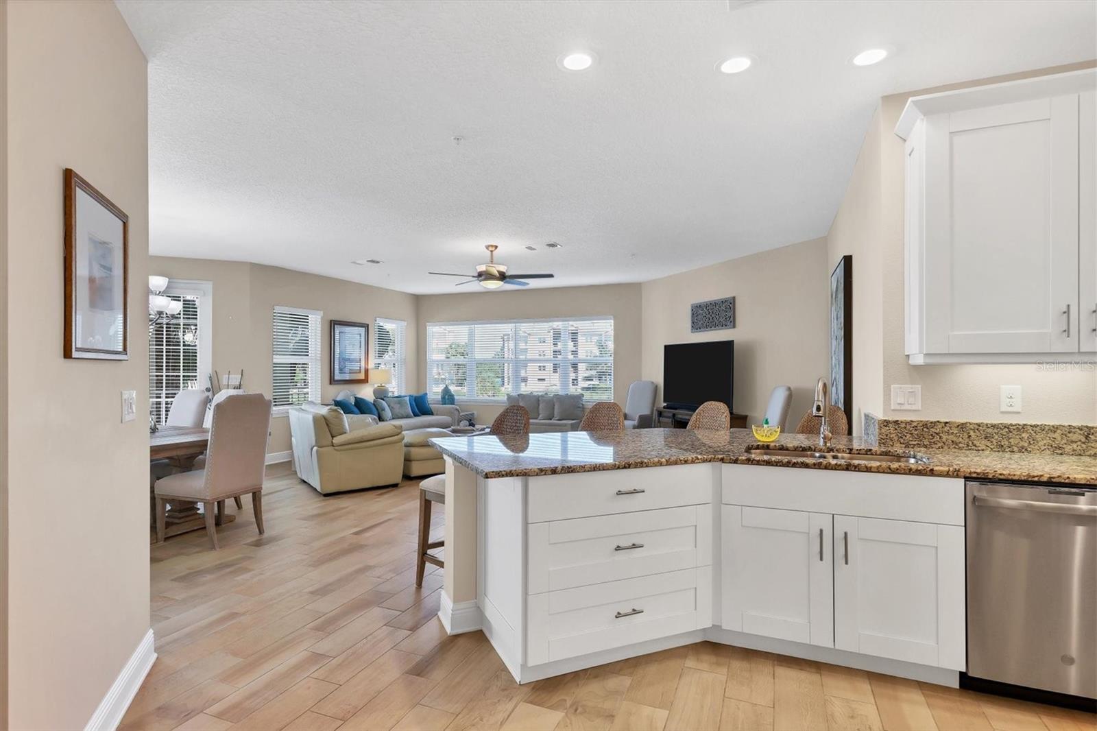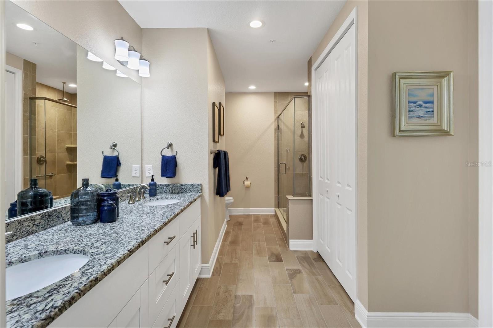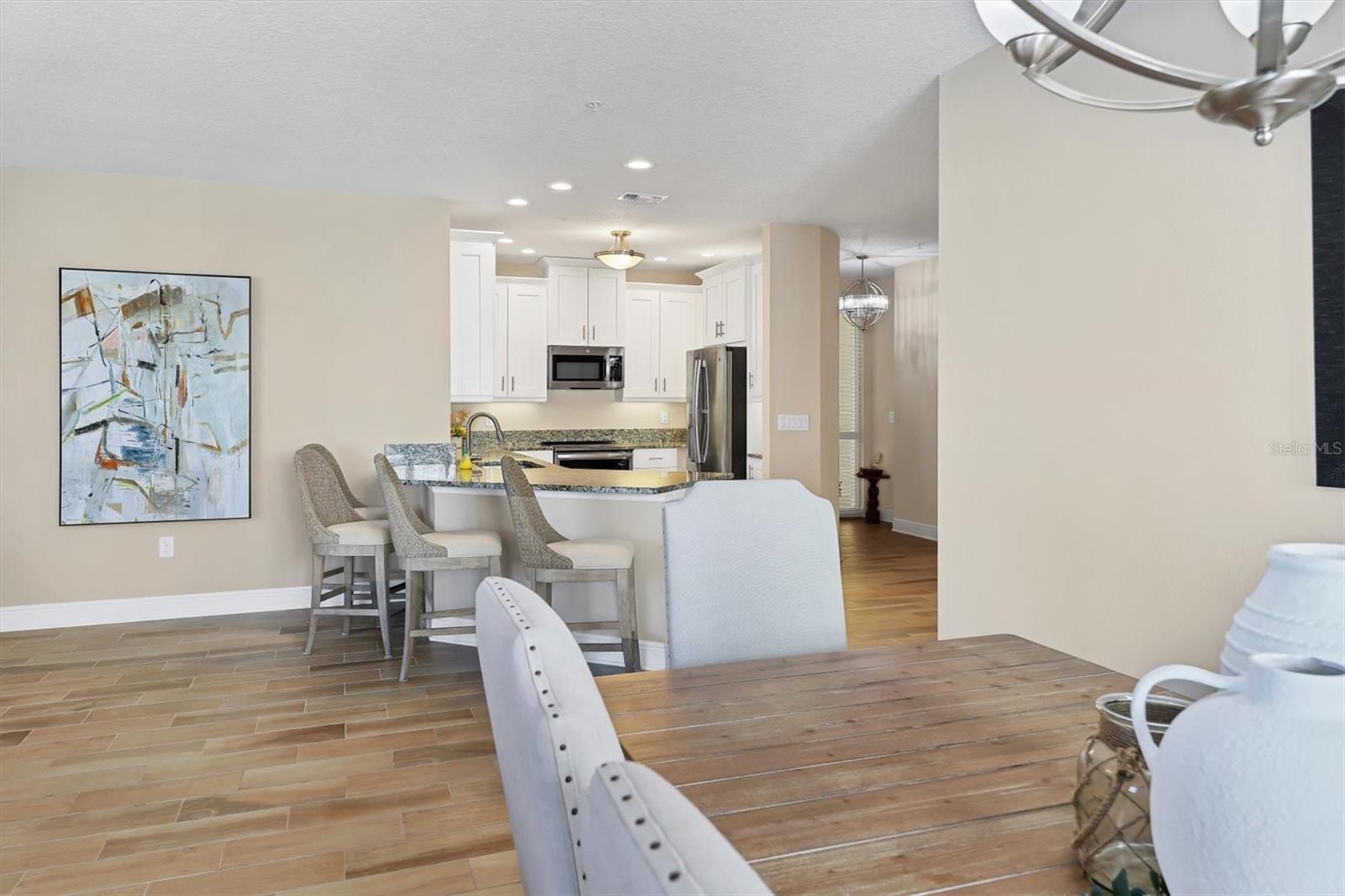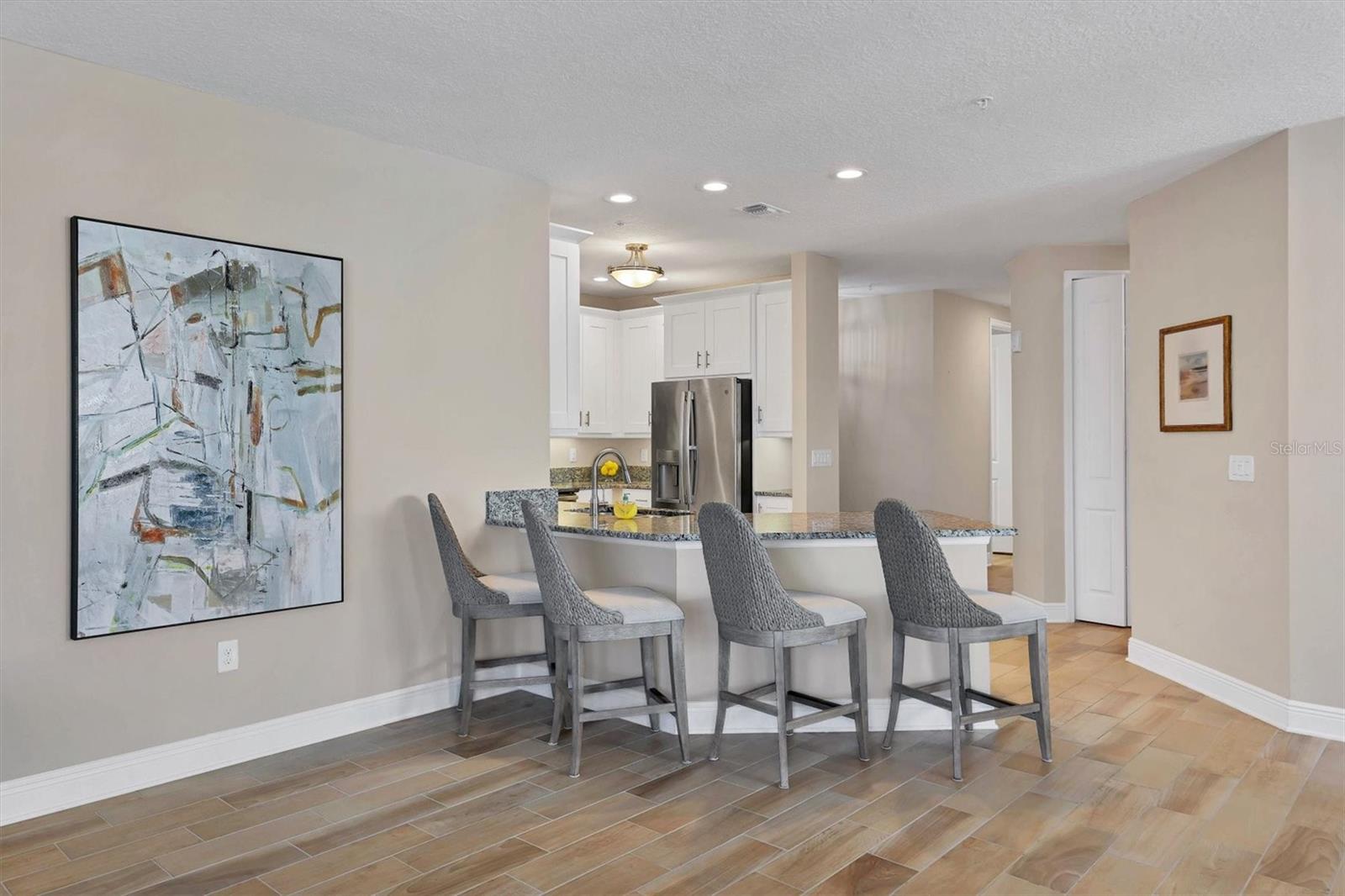 With it’s endless supply of exquisite sunsets, this Key West floor plan lives beautifully. The kitchen island was designed with one level making the kitchen flow seamlessly between the dining area and gathering room. Additionally, the sellers chose not to have a garden tub in the primary suite and instead chose to have an oversized linen closet. While the vast majority of the floors are wood look porcelain tile; the carpet was removed from the Primary and guest bedrooms and luxury vinyl plank was installed. The large interior laundry room has room for a wine cooler and enough cabinets for a butler pantry. There is a good-sized walk-in pantry and a half bath for guests. A balcony off the primary bedroom is perfect for morning coffee and overlooks the dog park. The balcony off the gathering room is perfect for cocktails and sunsets. Downstairs, a big walk in fenced storage room, a rack for kayak and paddleboard storage and there are two dedicated parking spots under the building. Located within the Palma Sola Bay Club, this gated community offers resort-style amenities including a two-story clubhouse with a fitness center, billiards table, social room, and multiple outdoor spaces like a heated pool, fire pit, putting green, kayak launch, fishing pier and dog park. The condo is just a few miles from the beaches of the Gulf of Mexico, including Anna Maria Island, and minutes from shopping, dining, and recreational options. Seller loved this condo but family has called him back north.