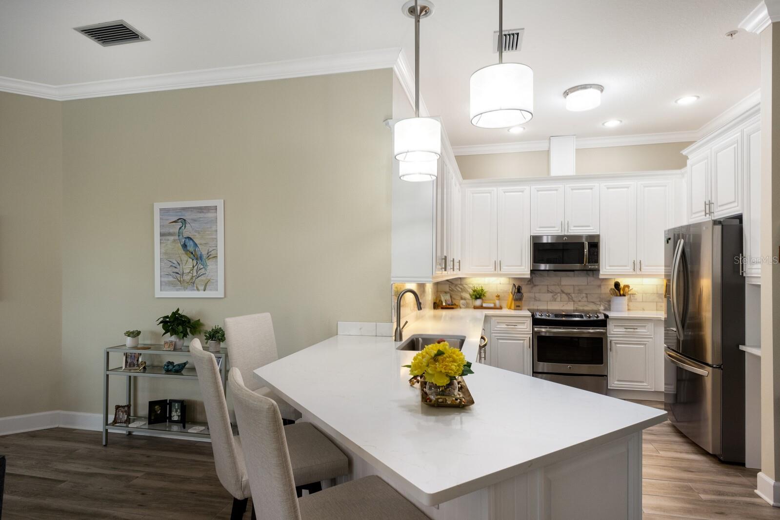 Easily the nicest penthouse unit available in PSBC. Completely updated and unique, not builder stock like all the others. Beautiful 180 degree long sunset views over water everyday, forever. Enjoy 10' ceilings (9' in other units), a large wrap around balcony for that evening glass of wine, and tons of storage. This unit lives very much like a single family home, but in the sky. Fantastic community to live in, location is prime. Cadence Bank offers special financing on PSBC units from the upper 5's available to qualified buyers as well, happy to connect you.