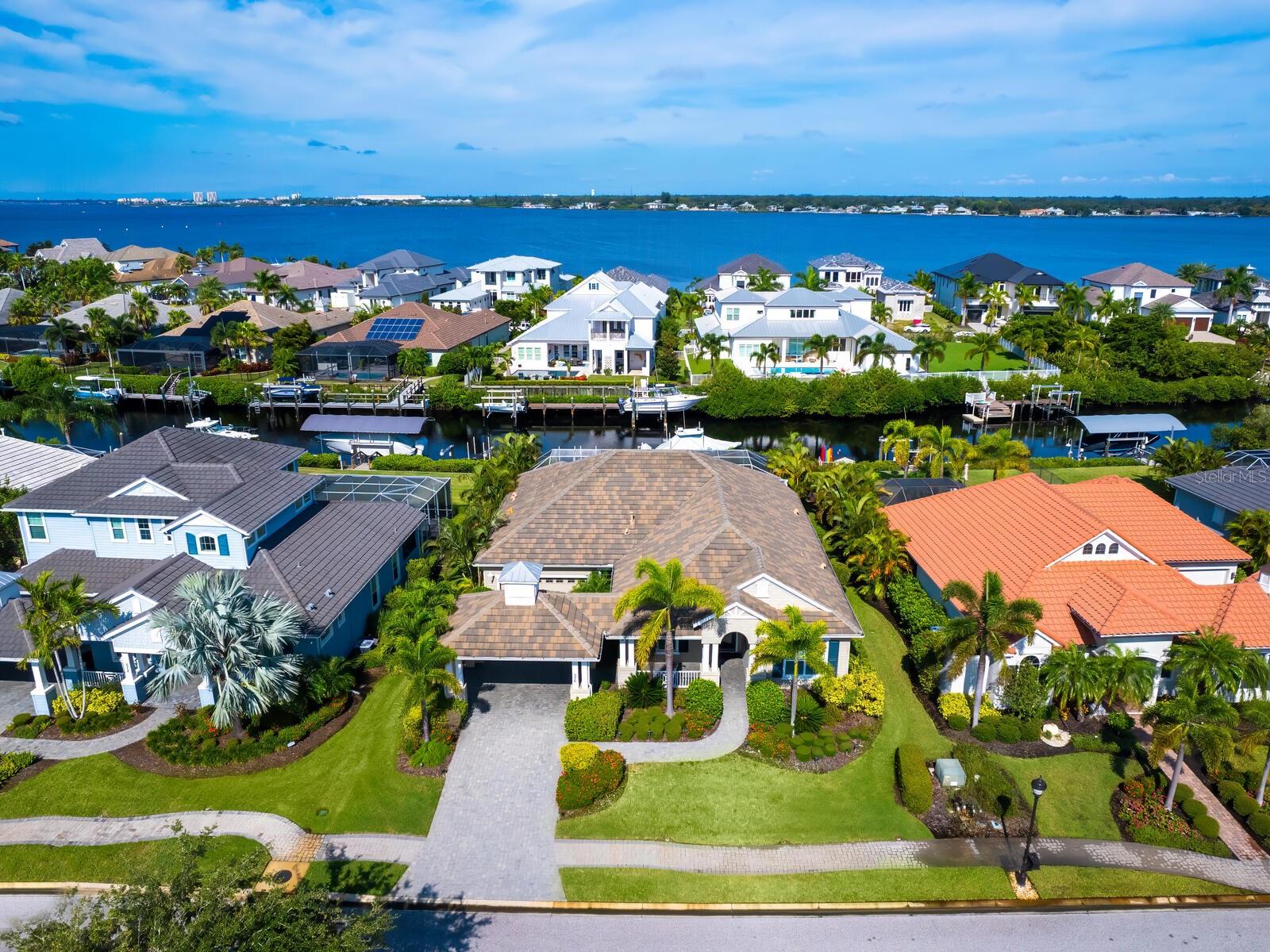 Harbour Walk is a captivating gated community perfectly located along a picturesque setting of the Manatee River with direct access to the Gulf of Mexico. This thoughtfully-planned community takes full advantage of the natural beauty where boaters, fishing enthusiasts and nature lovers will appreciate the many facets of waterfront living. Carefully constructed in 2015 by Neal Builders, this beautifully landscaped residence beckons further exploration, both inside and out. Offering 3 bedrooms, 3 baths, a den/office and a gorgeous 2,720 sq. ft. open floor plan, this delightfully charming home will become your tropical haven for rest and rejuvenation. A stunning portico entrance brings you into a magnificent foyer, through a gallery hallway and into an incredible great room with soaring coffered ceiling. Its triple pocket sliders open wide revealing a screen-enclosed outdoor relaxation and entertaining area with covered seating space and heated saltwater pool/spa. The stylish island kitchen is well-equipped with casual dining space, GE Monogram appliances including convection oven, 5-burner gas cooktop, granite counters, espresso cabinetry, and walk-in pantry with custom shelving. A den/office features a double-door entry. The primary suite is engaging with a sitting area, generously-sized shower, separate granite-topped vanities, water closet and skylight. The adjacent wardrobe room is enhanced with a full-length custom mirror, seated dressing area and customized shelving for maximized organization at your fingertips. This boater's dream home is nestled on a 120-ft. wide saltwater canal, offering an exceptional waterfront lifestyle. The private boat dock is equipped with a 16,000-lb. boat lift that accommodates vessels up to 34 feet and includes two jet ski lifts. For added convenience, the dock features a fish cleaning station and is fully outfitted with electric and water supply, making it perfect for all your boating needs. DIRECT ACCESS to Gulf of Mexico and the Intracoastal with NO bridges or lock system in this section. Other notable mentions include a 2-car garage with epoxy floor, hurricane shutters, diagonally placed tile floors in main living area and carpet in bedrooms, large laundry with built-in desk, crown molding, plantation shutters, gas water heater, brick paver pool deck and driveway, and cul-de-sac street with sidewalks and street lamps. This breathtaking community is highlighted by the natural beauty of the riverfront. Amenities within the community include kayak and canoe launches, fishing pier, tennis courts, nature-filled trails, observation spots, a picnic area with tables and benches and a children's playground. There something for everyone in The Inlets and for those who seek to enjoy the best of Southwest Florida. Access to I-75, The SRQ Sarasota-Bradenton International Airport is approximately 15 minutes, Tampa International Airport (TPA) is approximately 50 minutes, 130 golf courses, world-class shopping, dining, cultural venues, and of course the beautiful Gulf beaches are just outside the main gate or within a short commute from your front door. 576 Fore Drive offers the ultimate Florida lifestyle to be enjoyed and cherished for years to come. With LOW association fees and NO CDD fees, this solid concrete block construction home built by Neal offers exceptional value.