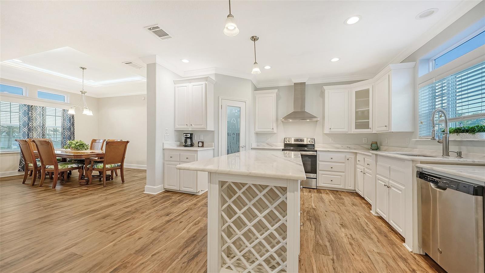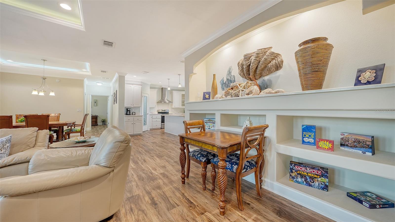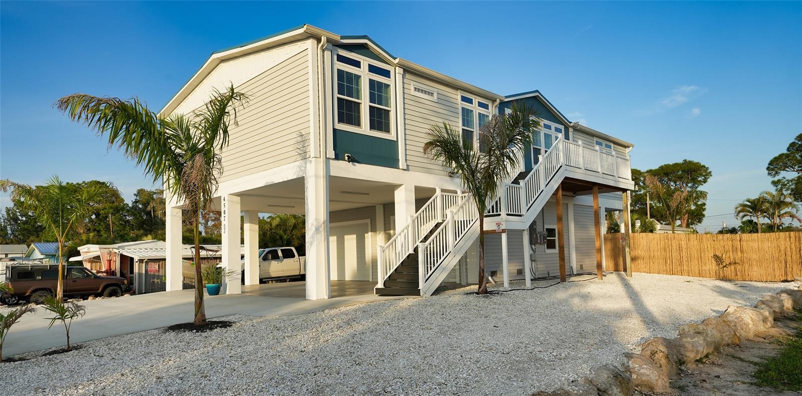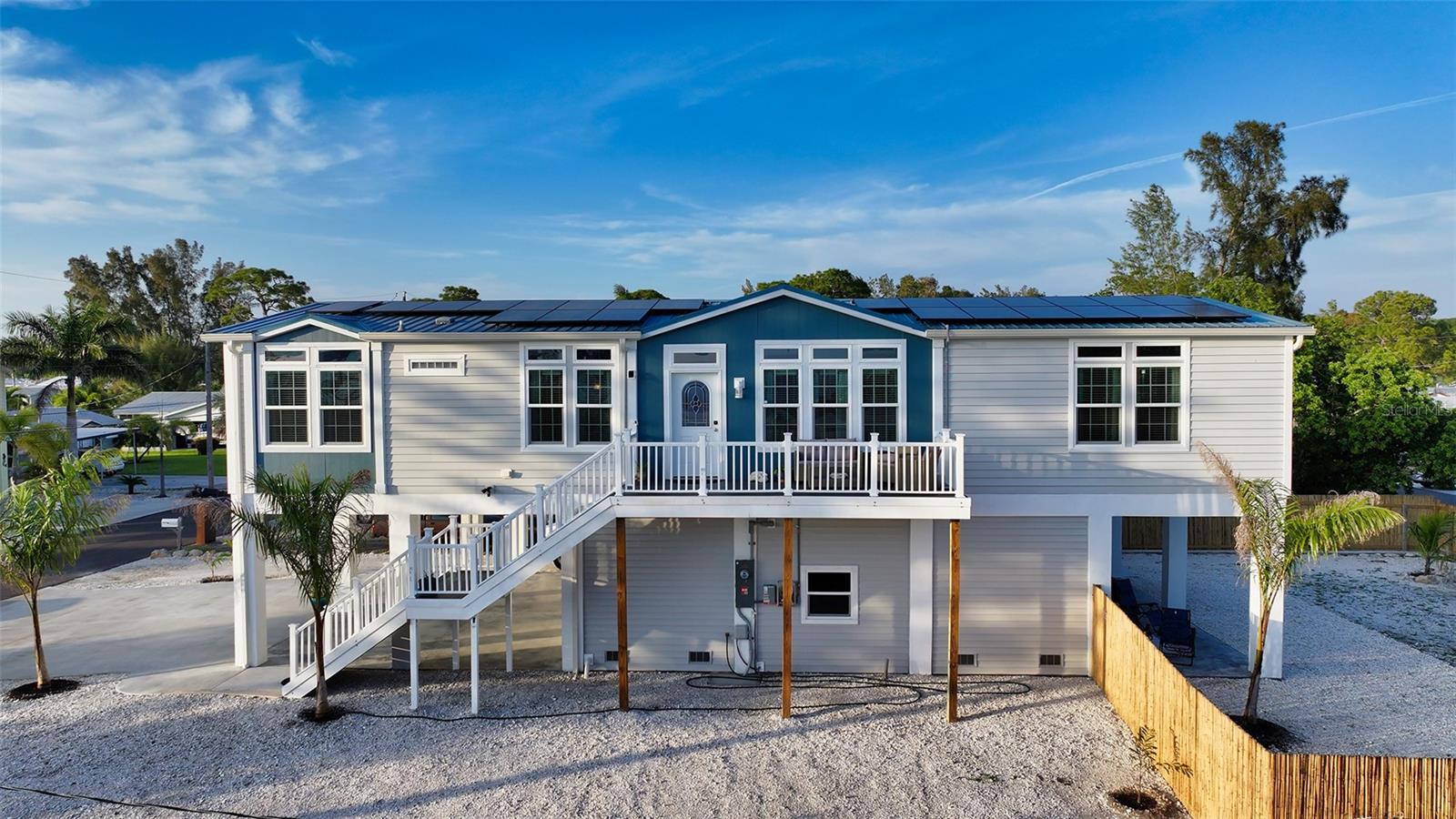 Discover the beauty of this exquisite masterpiece! This is one of the few homes on this street that did not experience damage or flooding from the last 2 storms! This elevated home features three bedrooms, two baths, and a generous 2,024 square feet of living space. Your convenience is ensured with a private four-car garage for ample parking. Step onto the front porch to savor your morning coffee or evening drinks in a serene setting. The spacious living room is equipped with a built-in entertainment center, tray ceiling, recessed and rope lighting, and a ceiling fan. The gourmet kitchen boasts sleek granite countertops, stainless-steel GE appliances, a chef’s island with ample storage, a walk-in pantry, butlers-pantry, and wine rack. The primary suite offers a large walk-in closet for your comfort. Luxury vinyl floors flow throughout the home. Situated just two miles from Anna Maria Island, near Sarasota Bay, this location is perfect for beach enthusiasts. Boaters will appreciate the deeded boat ramp access to Sarasota Bay. Say goodbye to HOA fees! This home is elevated on a lot with a comprehensive drainage system and underground utilities. The Pro Solar 9.8 kW solar system ensures low electric bills, with excess power sold back to FPL. Enjoy the large private backyard and covered patio for a tranquil escape. The expansive yard provides space for a pool, car parking, boat storage, RV parking, and more. Just minutes away from the Intracoastal waterway and the Gulf of Mexico. It would be a challenge to construct this home and all of it's features at this price point. This home would also be ideal for a vacation home or a rental property. Priced under appraised value. Close to everything!