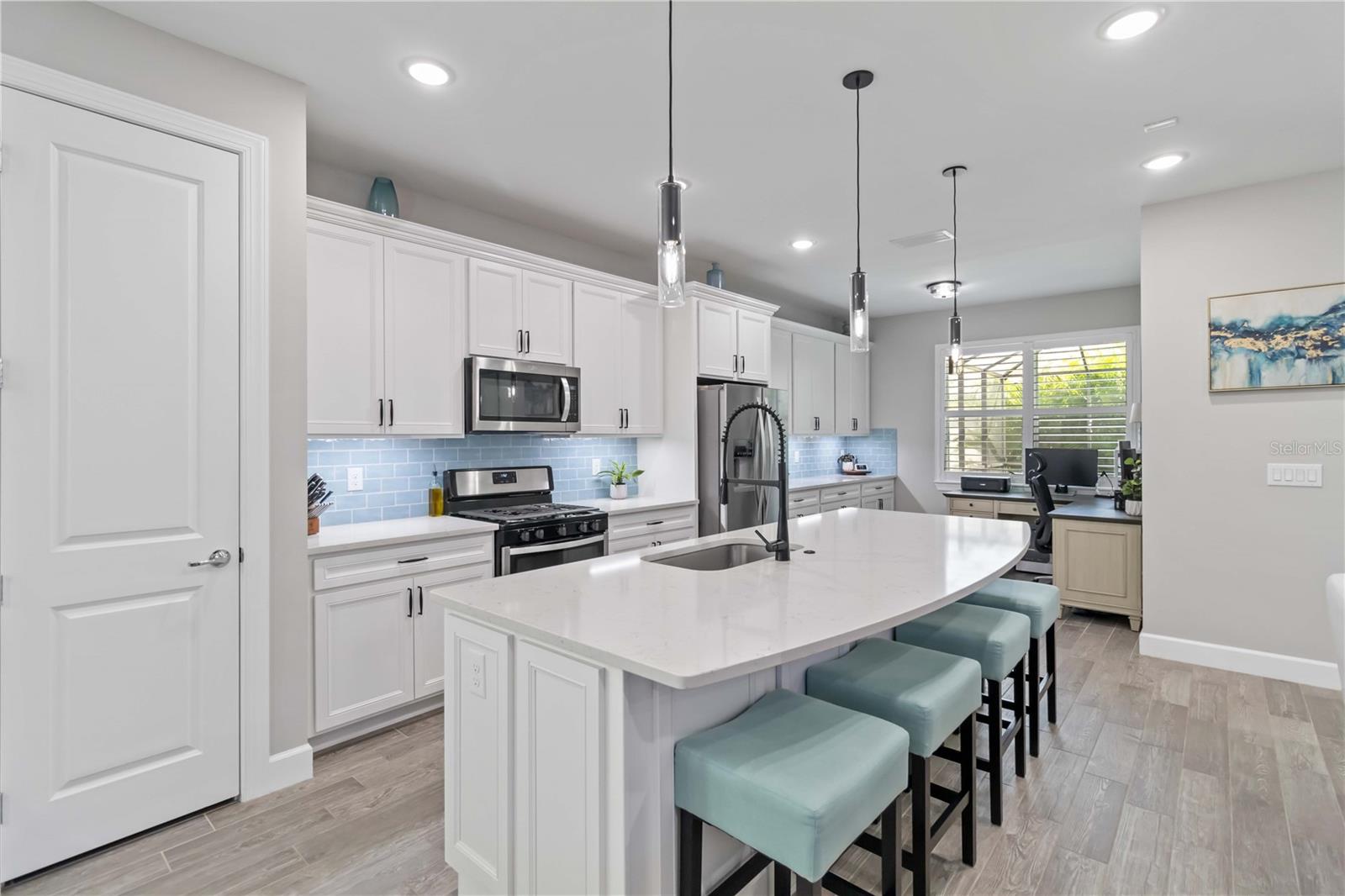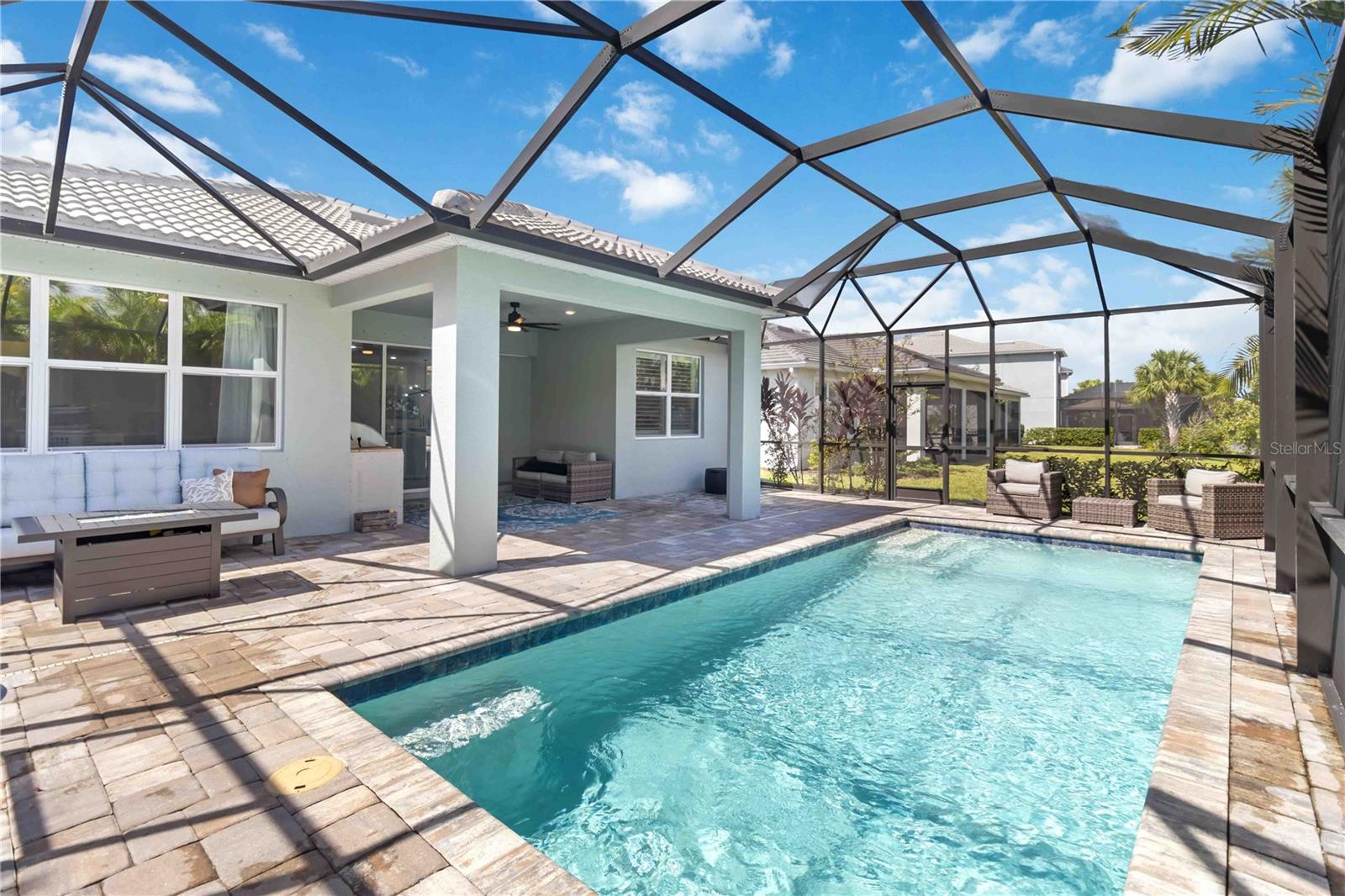 Welcome to your dream home in the heart of Lakewood Ranch’s Mallory Park community! This immaculate 3-bedroom, 2.5-bath residence is a one-owner gem, meticulously maintained and move-in ready. As you enter, you'll be greeted by an inviting foyer with tall ceilings and beautiful tile floors that lead to a bright, open-concept living space, perfect for entertaining family and friends. The main floor features a spacious primary suite with a large ensuite bathroom featuring dual vanities, a walk-in shower, and walk-in closet. Enjoy the seamless transition to your outdoor oasis through the sliding glass doors, where an outdoor grill and heated in-ground saltwater pool awaits. The private pool area is surrounded by lush landscaping and complimented with a pond view. Mallory Park offers fantastic amenities, including a resort-style pool, playground, pickleball, and basketball courts. Don’t miss your opportunity to own this beautiful home that truly has it all. Schedule your showing today!
