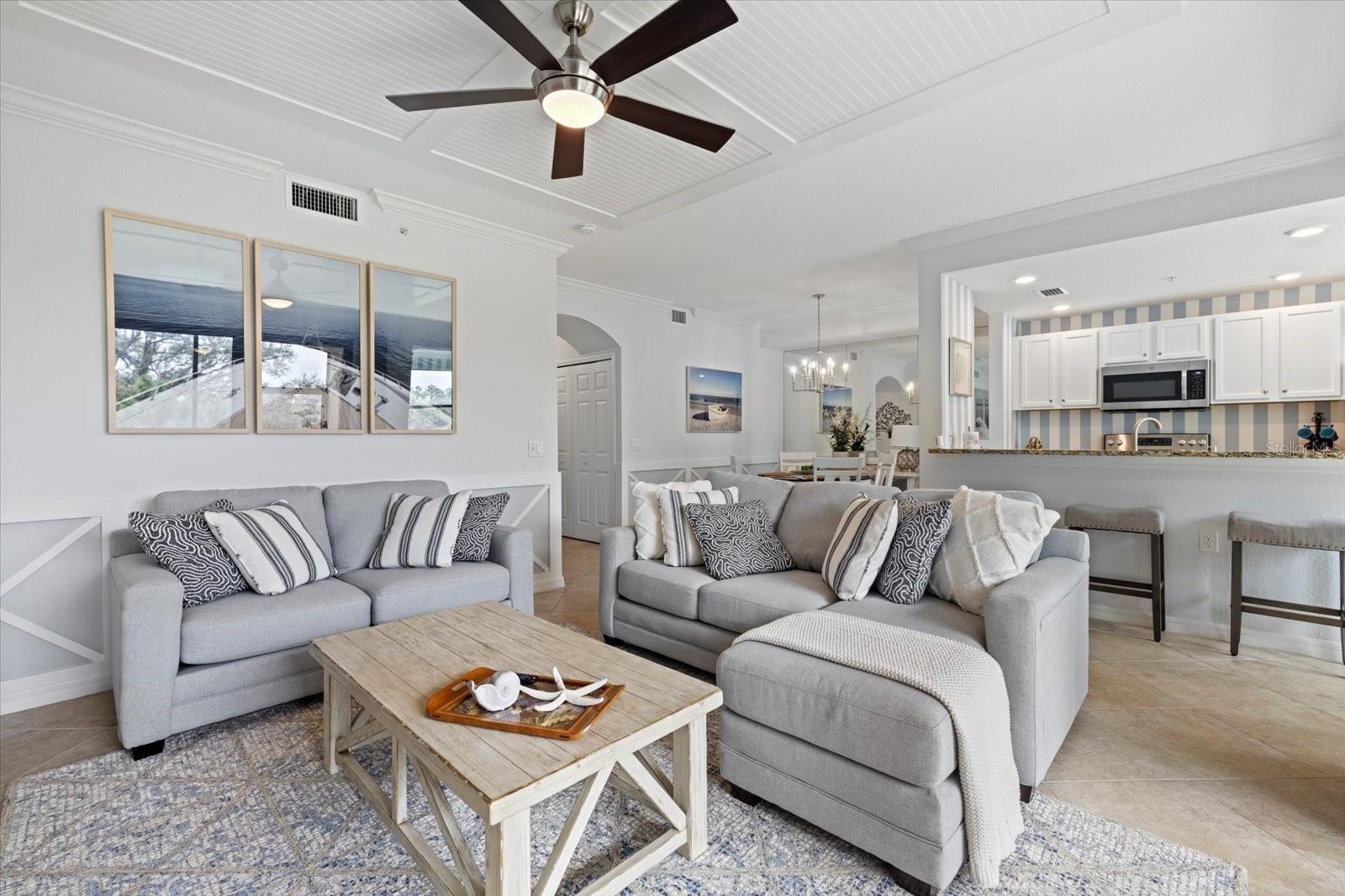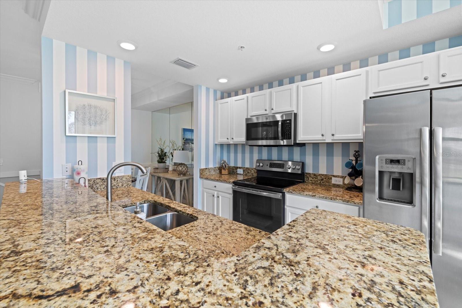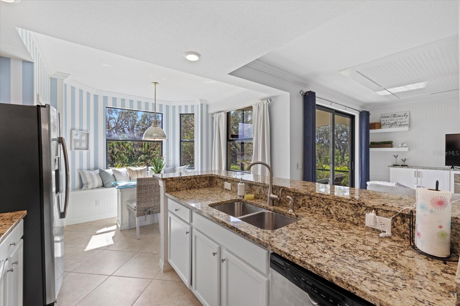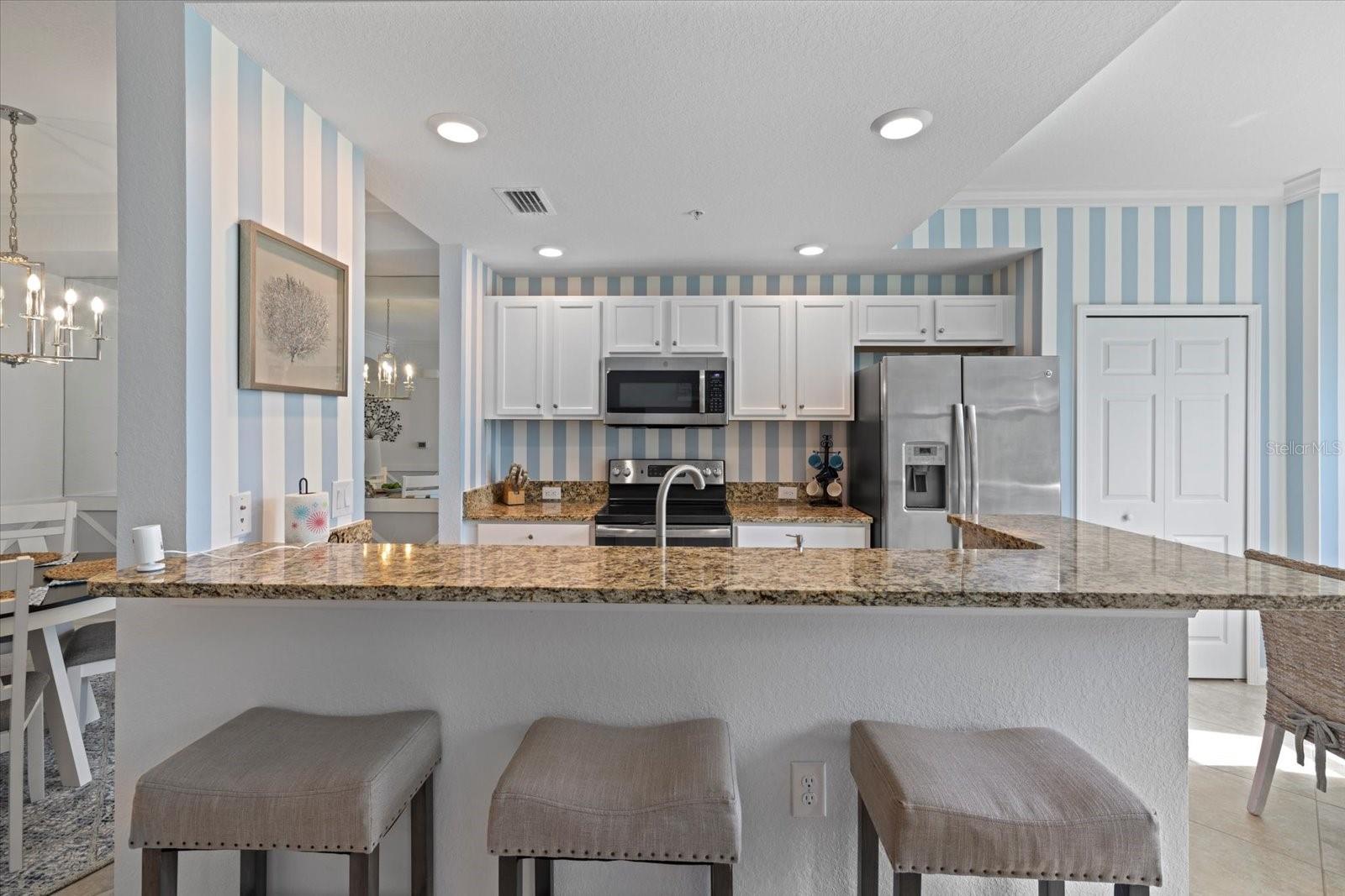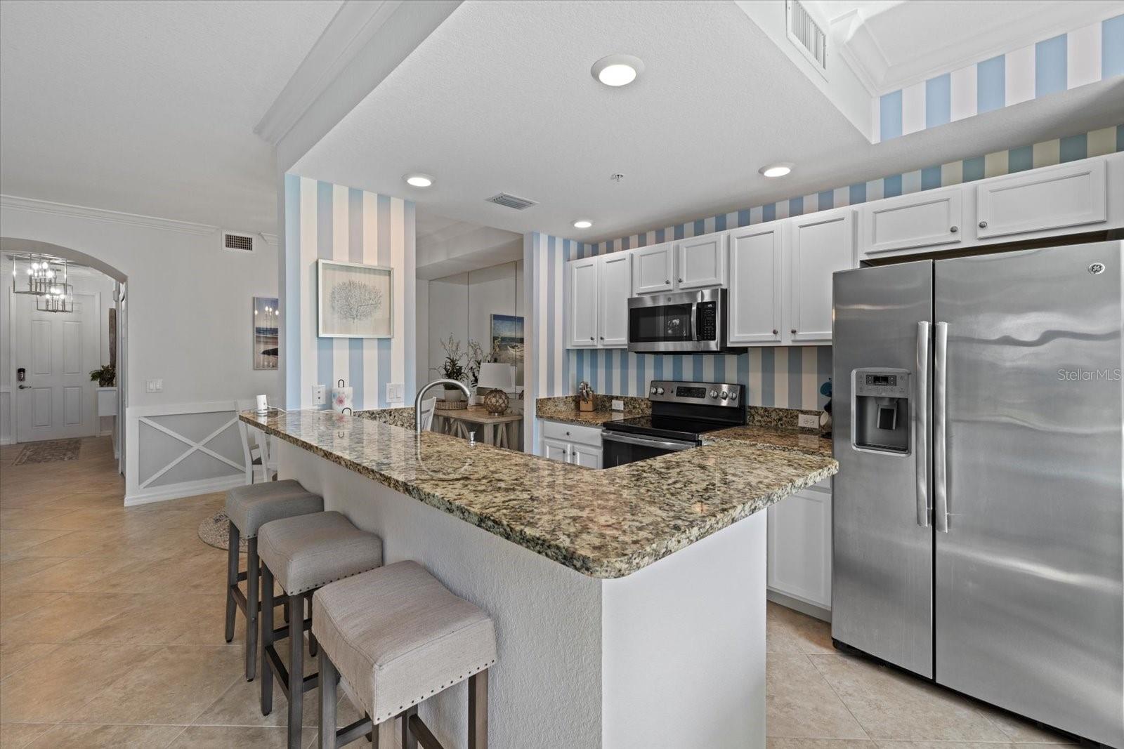 RENTAL INCOME in place for November through April! Investors Dream! Welcome to your new home in the highly sought-after Lakewood National Golf Club at Lakewood Ranch! This beautiful 2-bedroom, 2-bathroom first-floor condo is being sold turnkey—just bring your personal items and start enjoying the resort-style living from day one. Featuring a spacious open floor plan with tile flooring throughout the main living areas, this home is both stylish and easy to maintain. The kitchen is a chef's dream, boasting granite countertops, stainless steel appliances, and ample cabinetry for storage. The living room flows seamlessly into the screened-in lanai, perfect for relaxing and taking in the serene views. The primary suite offers a peaceful retreat with its own en-suite bathroom, complete with dual sinks, granite countertops, and a walk-in shower. The second bedroom is generously sized, ideal for guests or as a home office, with easy access to the second full bathroom, also finished with granite. New to the home is the A/C, Washer and Dryer, All Furniture and Linens. What are you waiting for? Living in Lakewood National means access to top-tier amenities including golf, tennis, a resort-style pool, fitness center, and more. Whether you're looking for a full-time residence, a vacation home, or an investment opportunity, this turnkey condo is a rare find. Don’t miss out—schedule your private showing today!