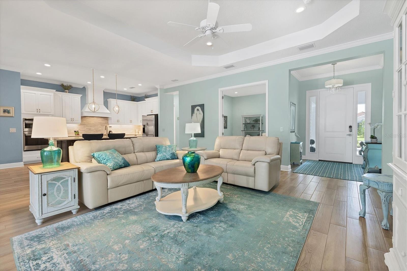 High and dry! Welcome to River Wind. A beautiful Neal Communities " Signature built" home located in Manatee County a few miles east of I75 off of SR64. This boutique neighborhood of only 62 homes features a gated entrance alongside the Manatee River yet approx. 30 ft above sea level. Newer home (2021), neighborhood complete, no construction site/noise to deal with, high-quality build, solid concrete construction with clay tile roofs offer wonderful security when in a high storm. This home is the coveted Carmel model featuring a spacious open floor plan, 3 bedrooms, 3 full baths,....all in their own wing of the home, an office and an additional bonus room large enough to furnish as a game room, music room, additional office or whatever your heart desires. The open floor plan features a kitchen with solid white wood cabinets with stone countertops with large island seating, an adjacent dining room, and an accommodating great room for everyone's entertaining pleasure! Separate laundry room and an attached 3 car garage complete the interior of this home. BUT, there's more,... this homes backyard covered screened lanai space is a dream. Dining area, living area as well as grilling area are all under the same roof plus a wonderful saltwater heated pool and plenty of lounge space is waiting for its new owners. Private, wooded backyard view makes you feel like you're always on vacation! Community amenities include 24/7 security monitored gated entrance, walking trails, tiki hut for entertaining, an overlook deck to view the river and a stairway to launch a kayak should you choose to enjoy. Also,...no CDD fees for this community! Convenient to all shopping,... the UTC Mall, Lakewood Ranch downtown village, Ellenton outlets and of course just down the street from supermarkets and local businesses. Nearby beaches are just a short drive away for day adventures. This is truly a hidden gem of a home and neighborhood that anyone moving or living in Florida would want to view and own!