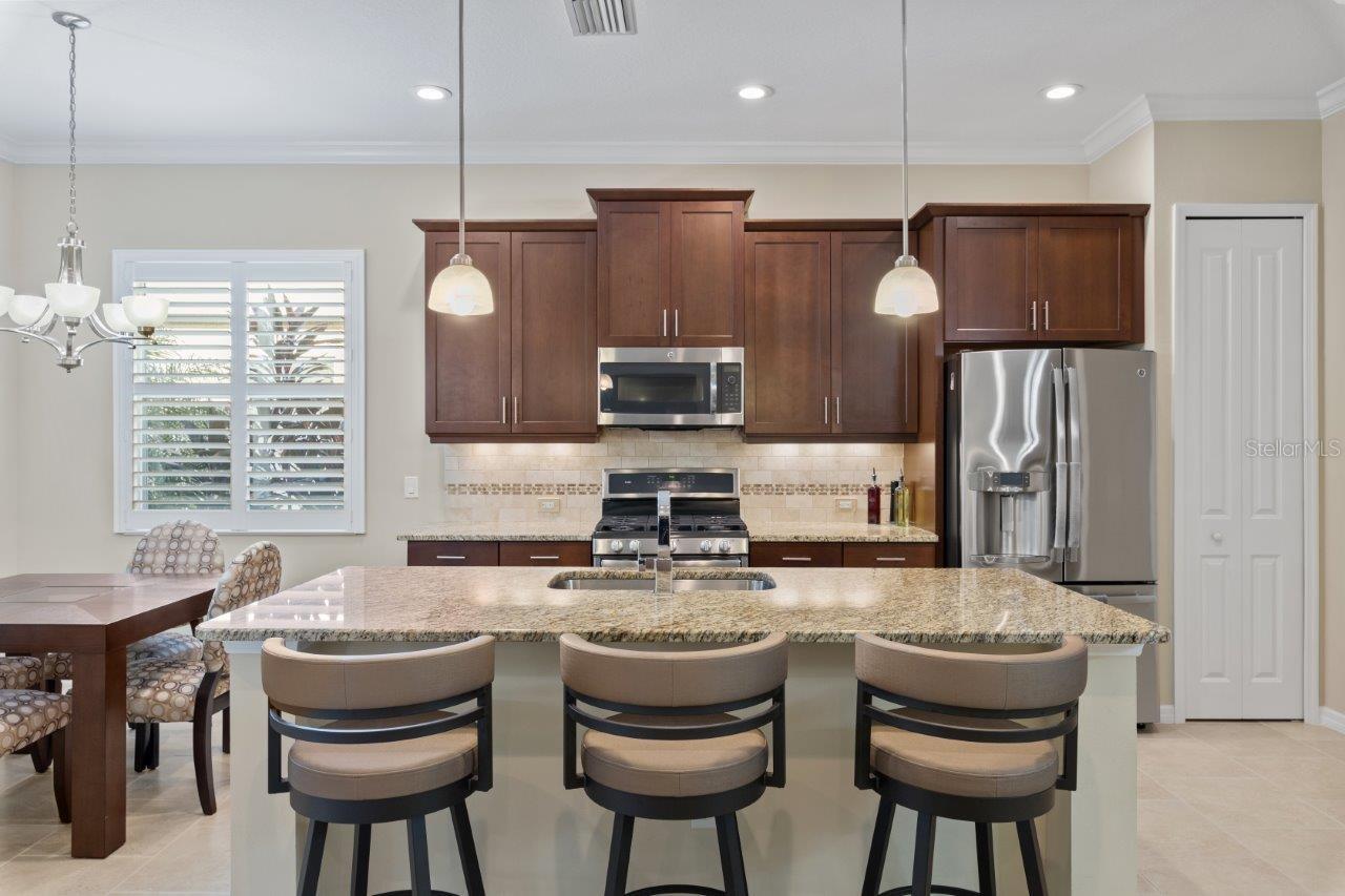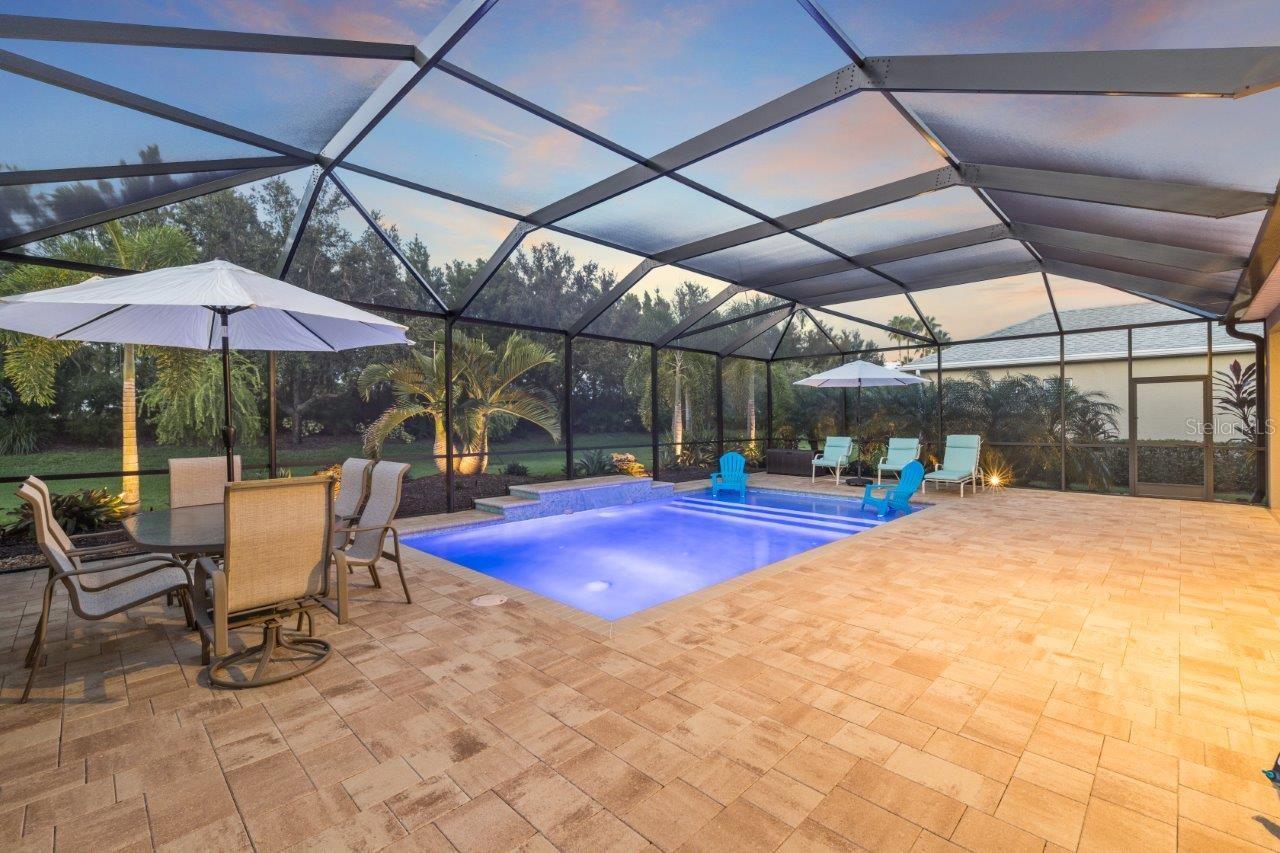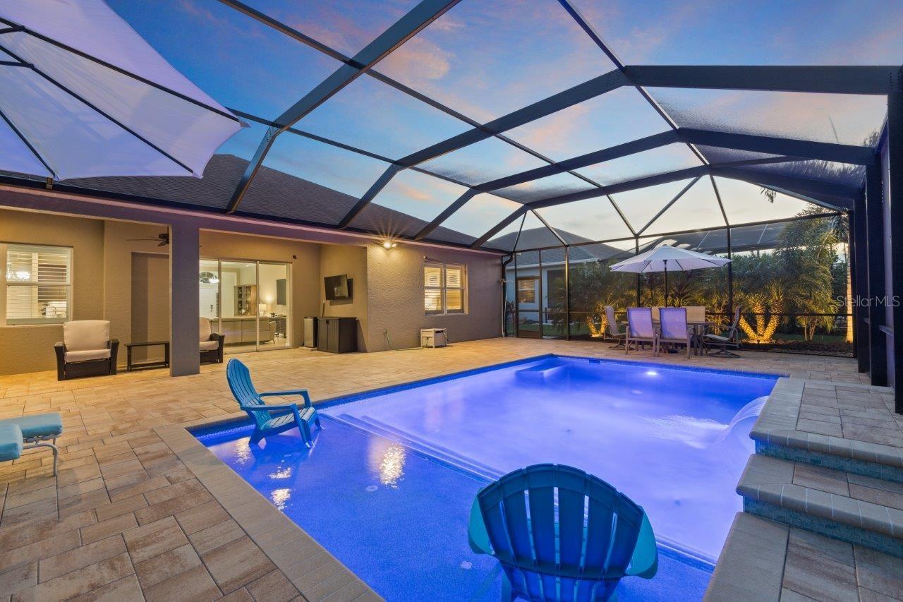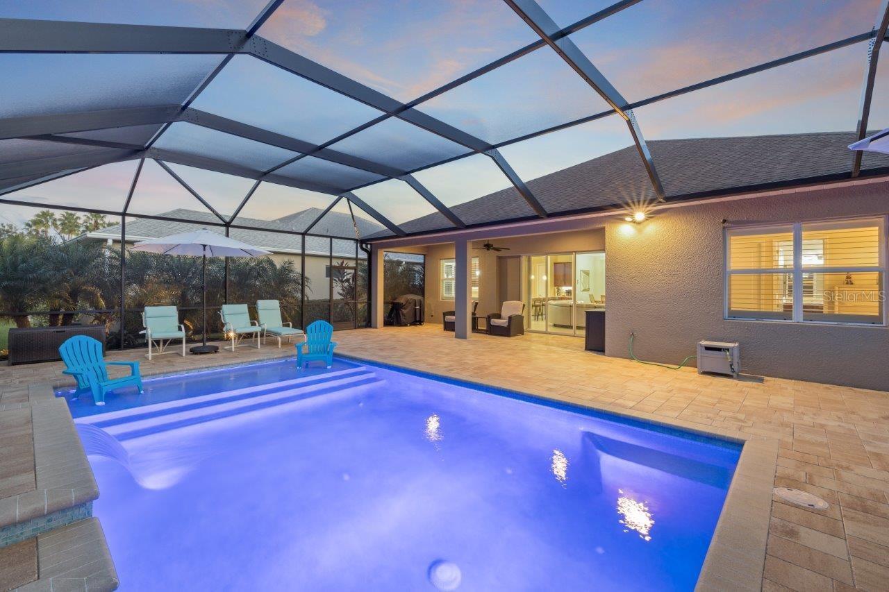 This breathtaking pool home is nestled in the private, gated section of Central Park, offering both elegance and tranquility. From the moment you arrive, the stunning curb appeal is evident with tropical landscaping, custom lighting, and beautiful elevation accents. This home is filled with upgrades, including custom plantation shutters, crown molding, tray ceilings, 8 foot doors, and modern tile throughout. The gallery-style kitchen is a chef's dream, featuring stainless steel appliances, granite countertops, wood cabinetry, a large island, and a cozy dinette. The great room seamlessly connects to a spacious outdoor entertainment area through pocketing sliding doors, where you’ll find a NEW self-cleaning heated pool (2022), lush tropical landscaping, and a covered seating area perfect for relaxation. The generous owner’s suite offers a walk-in closet, ensuite bathroom with double sinks and large walk-in shower. Additional updates to the home include a New Trane A/C (2024), new front windows, and a new garage door opener with springs. Residents of Claremont Park enjoy exclusive access to a private Fitness Center, Heated Pool, Spa, as well as all the amenities Central Park has to offer! Central Park features include dog parks, recreational areas, barbecue areas, playground, baseball field, water splash park, and tennis courts. Is this home your perfect match? Schedule a showing today!