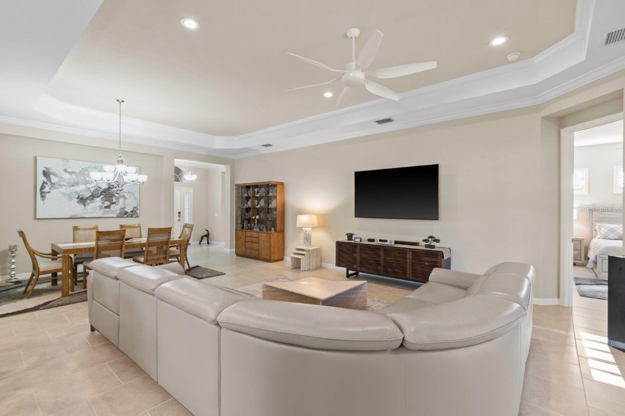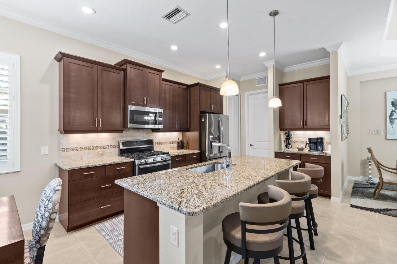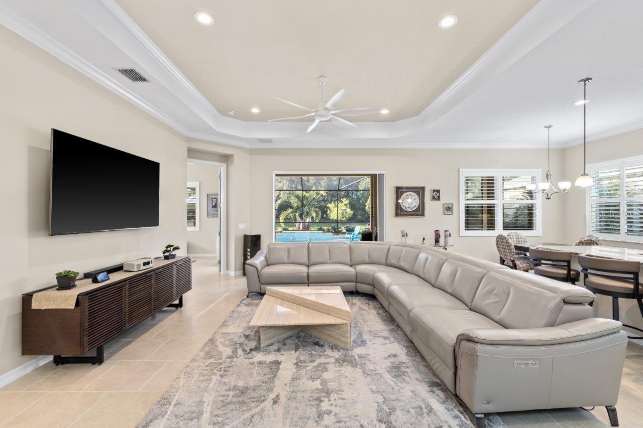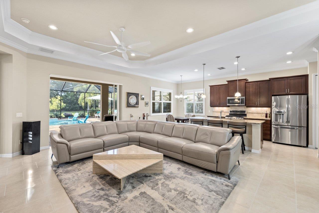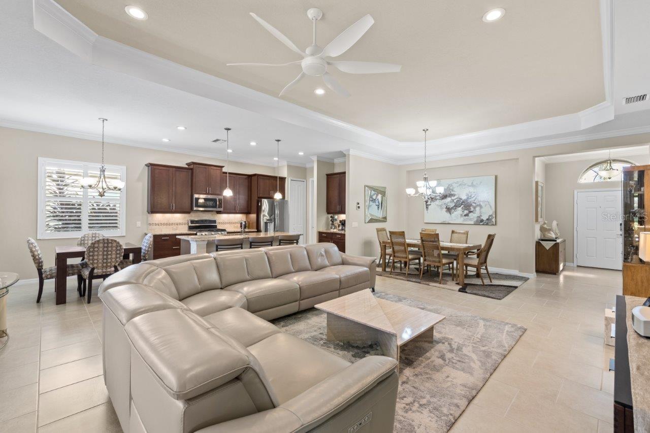 This breathtaking pool home is nestled in the private, gated section of Central Park, offering both elegance and tranquility. From the moment you arrive, the stunning curb appeal is evident with tropical landscaping, custom lighting, and beautiful elevation accents. This home is filled with upgrades, including custom plantation shutters, crown molding, tray ceilings, 8 foot doors, and modern tile throughout. The gallery-style kitchen is a chef's dream, featuring stainless steel appliances, granite countertops, wood cabinetry, a large island, and a cozy dinette. The great room seamlessly connects to a spacious outdoor entertainment area through pocketing sliding doors, where you’ll find a NEW self-cleaning heated pool (2022), lush tropical landscaping, and a covered seating area perfect for relaxation. The generous owner’s suite offers a walk-in closet, ensuite bathroom with double sinks and large walk-in shower. Additional updates to the home include a New Trane A/C (2024), new front windows, and a new garage door opener with springs. Residents of Claremont Park enjoy exclusive access to a private Fitness Center, Heated Pool, Spa, as well as all the amenities Central Park has to offer! Central Park features include dog parks, recreational areas, barbecue areas, playground, baseball field, water splash park, and tennis courts. Is this home your perfect match? Schedule a showing today!