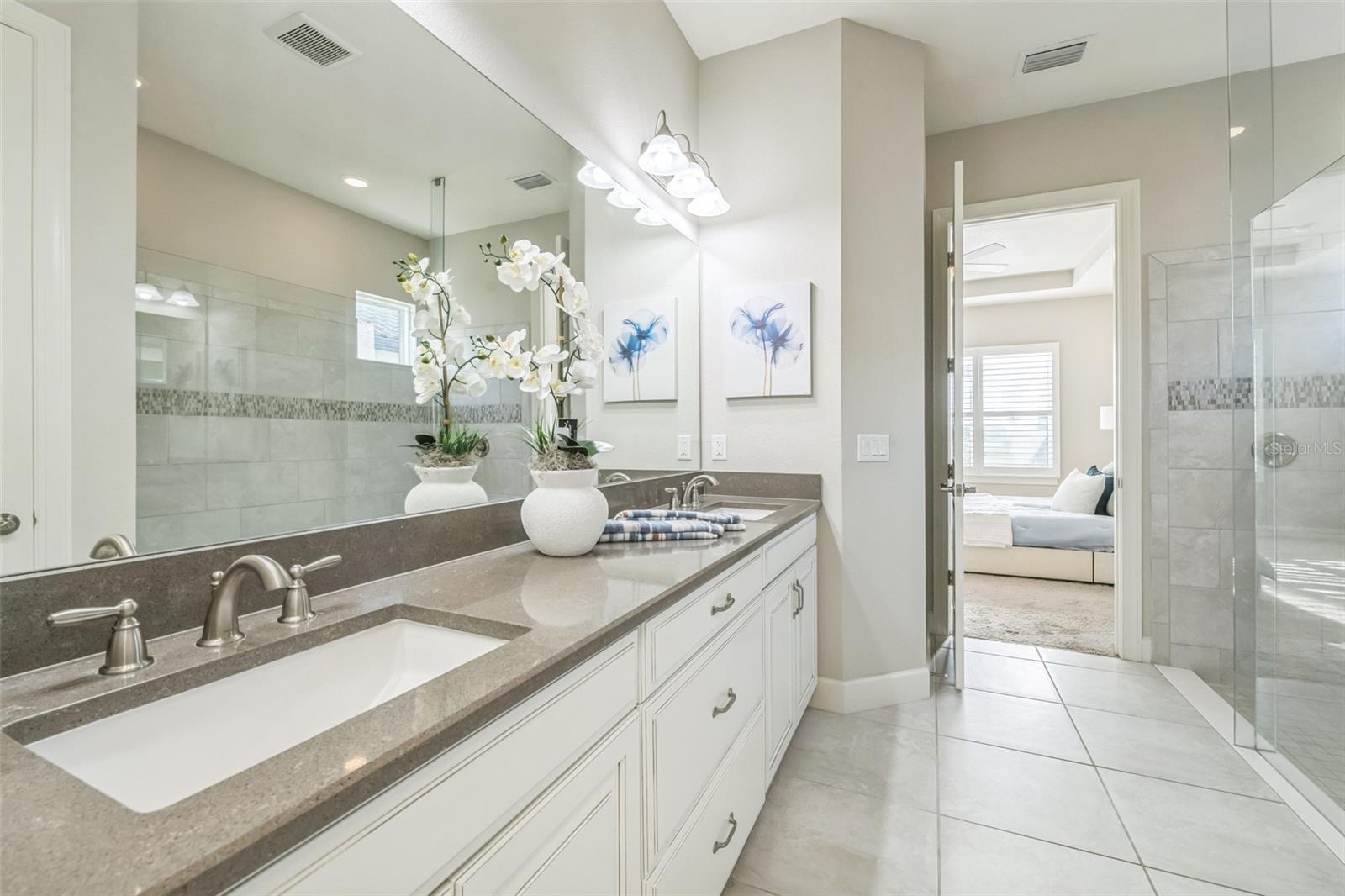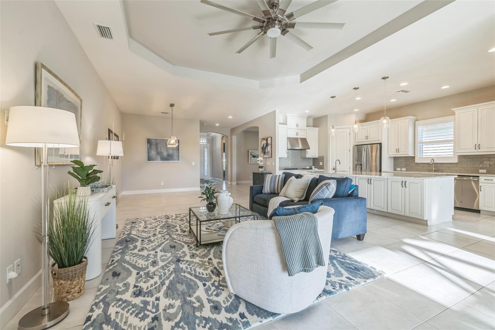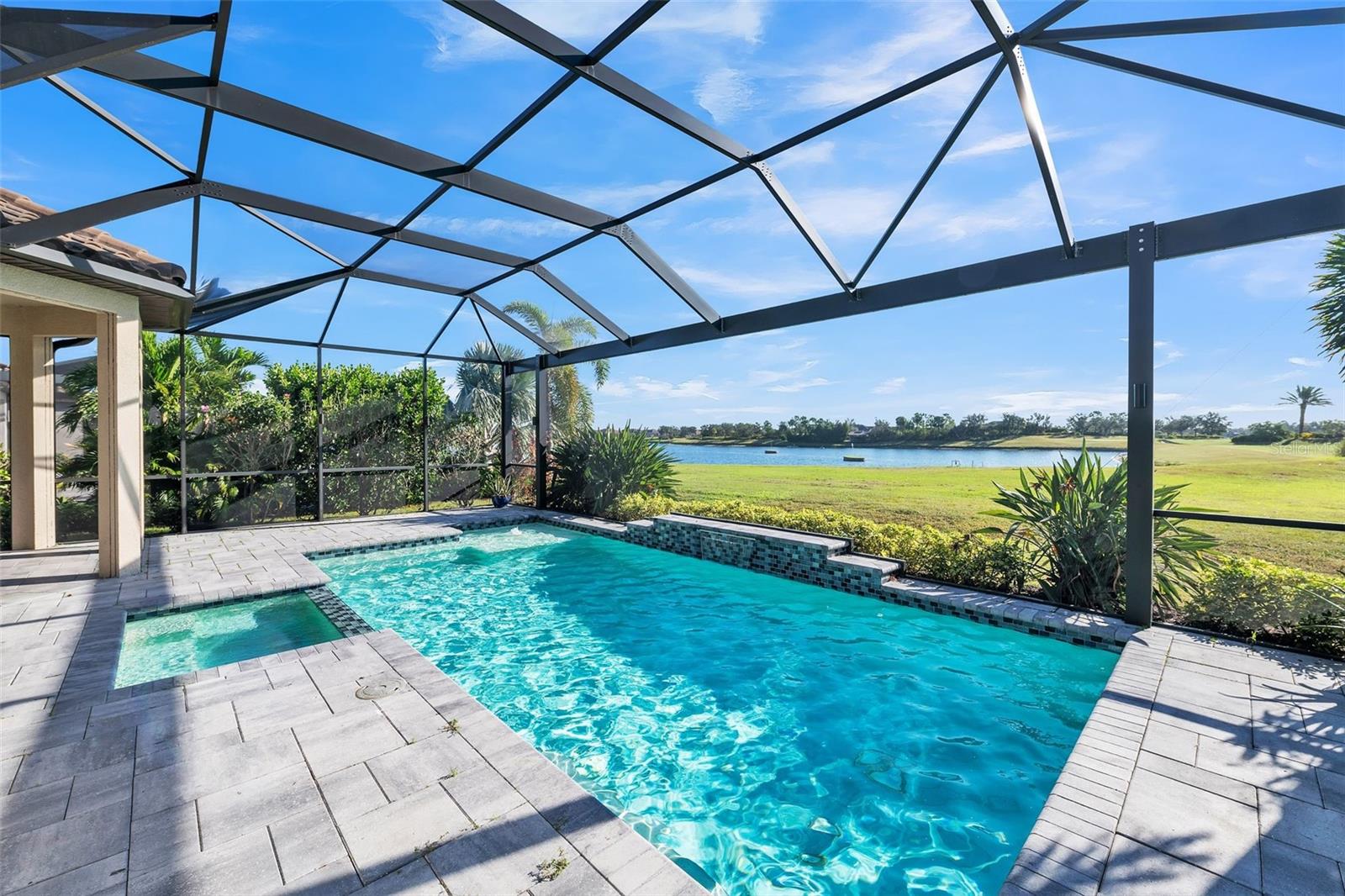 Welcome to this stunning Lazio model built in 2019 is now available in the highly sought-after Esplanade Golf and Country club of Lakewood Ranch, located behind the gates of this Taylor Morrison community. If you're looking for a true resort lifestyle that includes golf, tennis, two fitness centers, a resort style pool, culinary center, spa, tennis courts, pickle-ball courts, two dog parks, tiki bar, and a full-time lifestyle director, then look no further. Landscape maintenance is included in this community. This home features 3 bedrooms, 3 full baths, and a large den. The gourmet kitchen is a chefs dream that includes custom cabinets, quartz countertops, and upgraded SS appliances with gas cooktop. The two-car garage includes additional tandem parking for a golf cart or extra storage. Custom slats on wall for tools, and new epoxy floor. The lanai offers extended living area, a saltwater pool, and built-n-spa with gas heat. Brand new custom outdoor kitchen, with quartz countertops, and brick oven pizza maker. A natural gas stand-by whole house generator added in 2021. This home is on the best lot in the community with views of the lake and golf course. Community includes golf, tennis, a tiki bar, wellness center, and the culinary center. Full-service director that handles numerous events, and activities throughout the year. This home comes with a full deeded golf membership included in your HOA fees. Upon entry, you will be greeted by an open and airy floor plan, featuring high ceilings and plenty of natural light. The spacious living room is perfect for entertaining guests or enjoying quiet nights in with loved ones. The primary suite is a true retreat, offering a luxurious en-suite bathroom with dual sinks, a large soaking tub, and a separate shower. The two additional bedrooms are generously sized, both with well-appointed bathrooms. Right outside is the beautifully landscaped backyard, where you can enjoy the Florida sunshine on the covered patio or host summer barbecues on your new outdoor kitchen and brick oven pizza maker. The lot size of 8,494 square feet provides plenty of outdoor space for gardening or outdoor activities. This home offers convenient access to shopping, dining, entertainment, and top-rated schools. With easy access to major highways, commuting to nearby cities is a breeze. $10,000 upgraded landscaping. $8000 new outdoor kitchen. Don't miss your chance to own this immaculate home in Bradenton, FL.