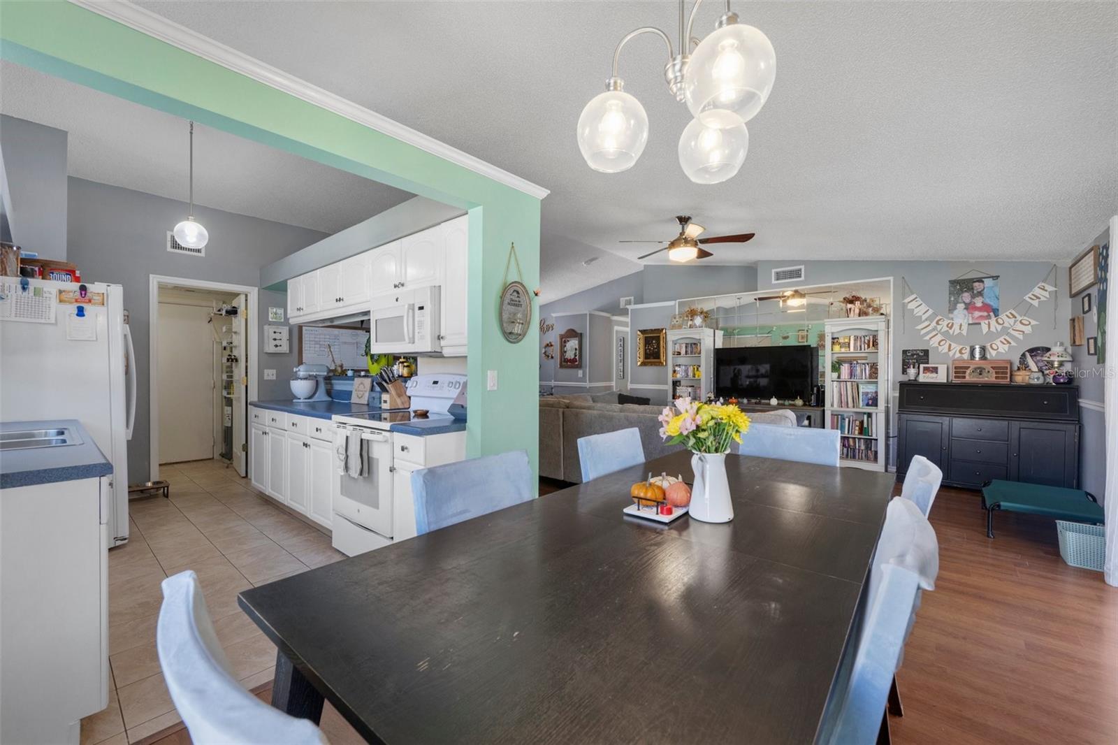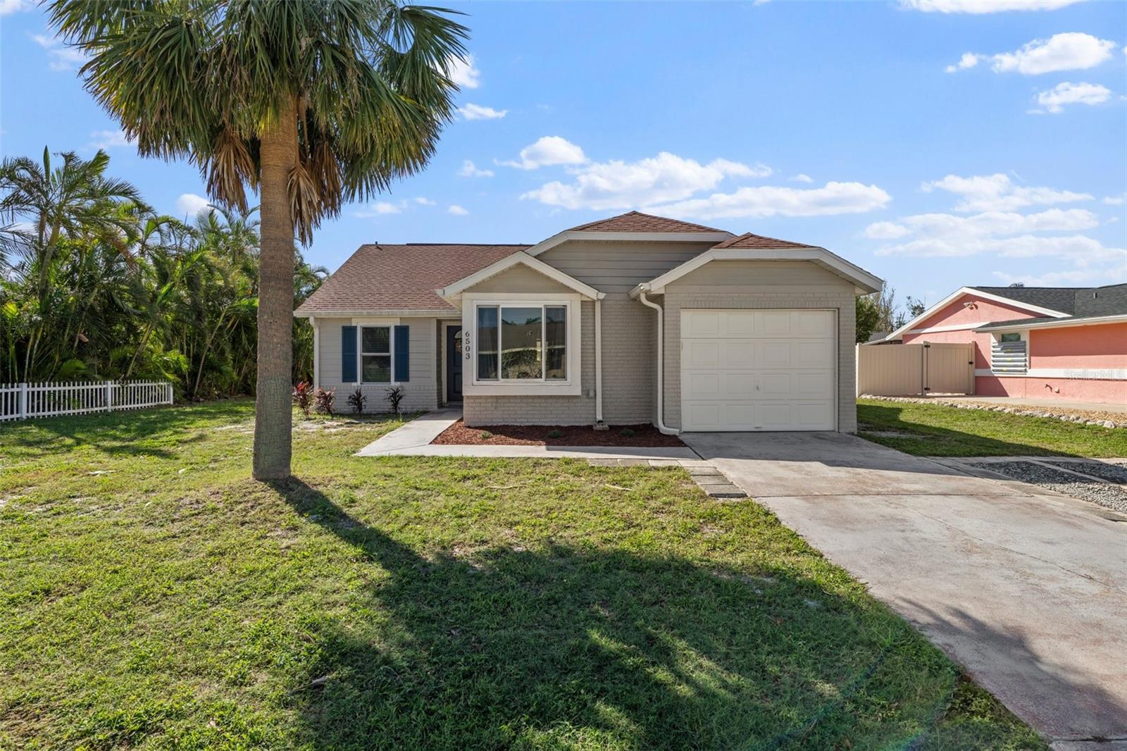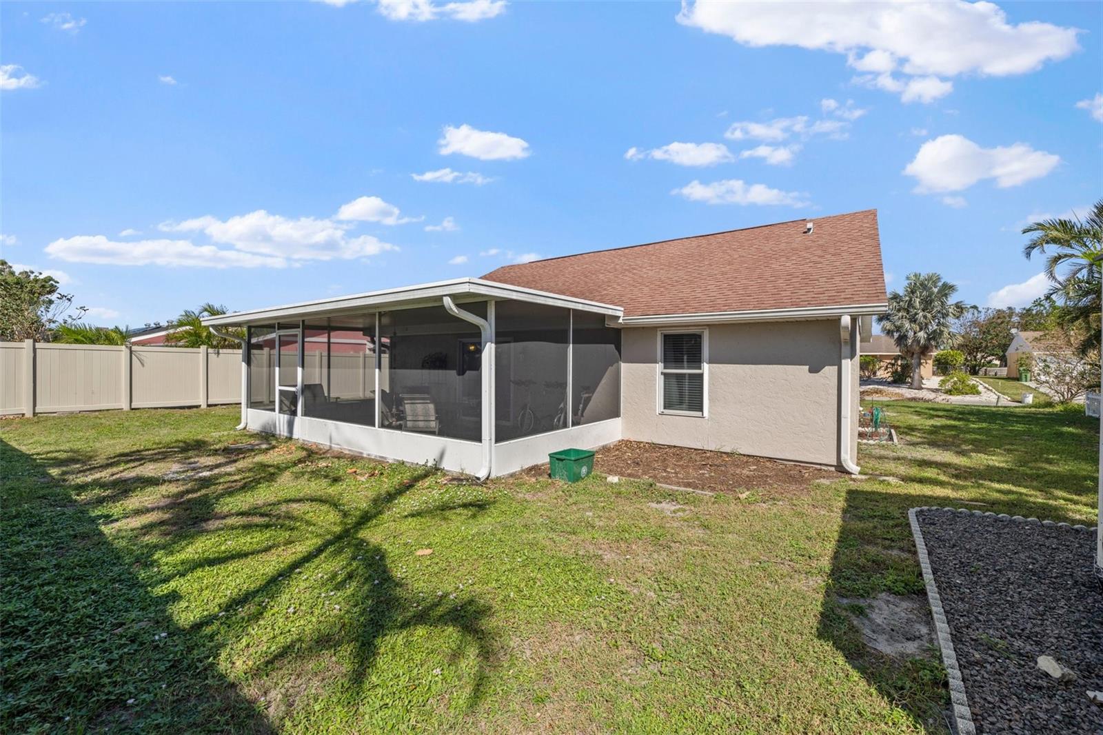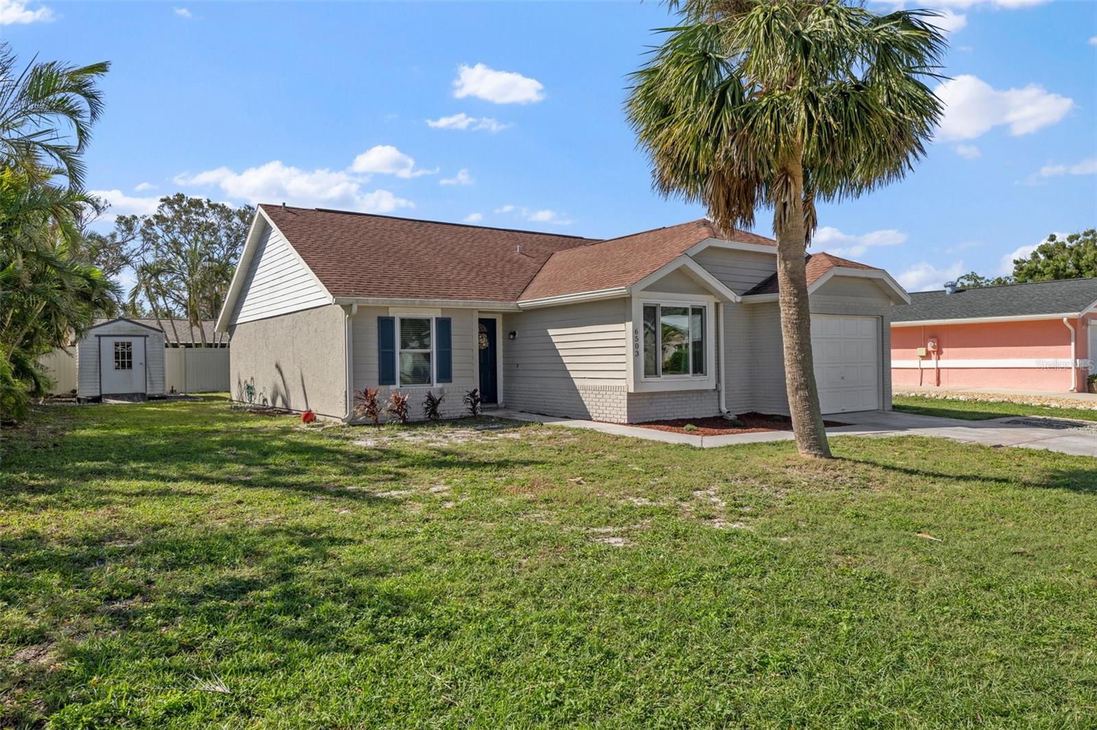 Welcome to this charming Cordova Lakes home featuring a desirable open floor plan and no limitations on leasing! The living room, dining room, and kitchen all boast vaulted ceilings and beautiful wood laminate floors, creating a spacious and inviting atmosphere. The eat-in kitchen, equipped with newer appliances, is the perfect setting for both everyday meals and memorable gatherings. The master bedroom offers plenty of space, with a vaulted ceiling and an updated ensuite bathroom for added comfort. Enjoy the convenience of a separate laundry room with washer and dryer included. Plus, peace of mind comes from impact-resistant windows installed in 2019 and the fact that the home sustained no damage from past hurricanes. The partially fenced backyard features a large screened porch, perfect for relaxing, and a detached shed for extra storage. Located just six miles from the stunning Anna Maria Island, five miles from Robinson Preserve, and less than two miles from Blake Hospital, this home offers both convenience and serenity. Don't miss your chance to make this oasis in West Bradenton your own!