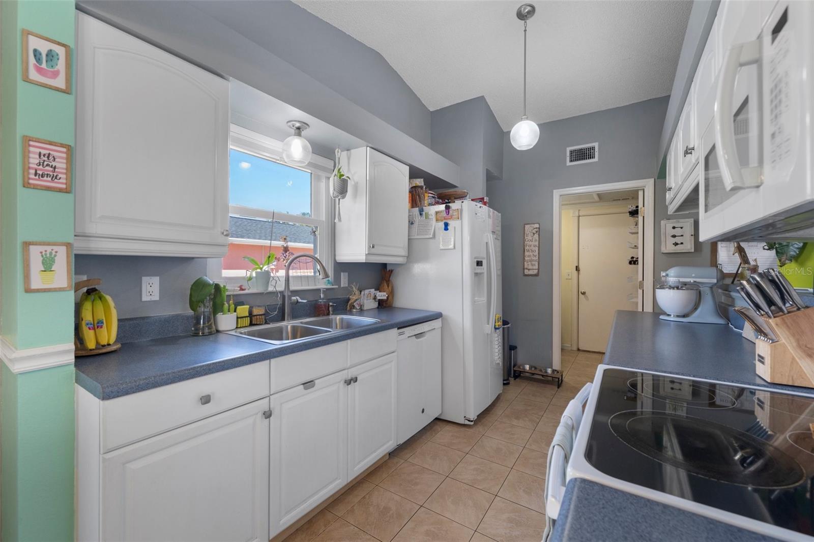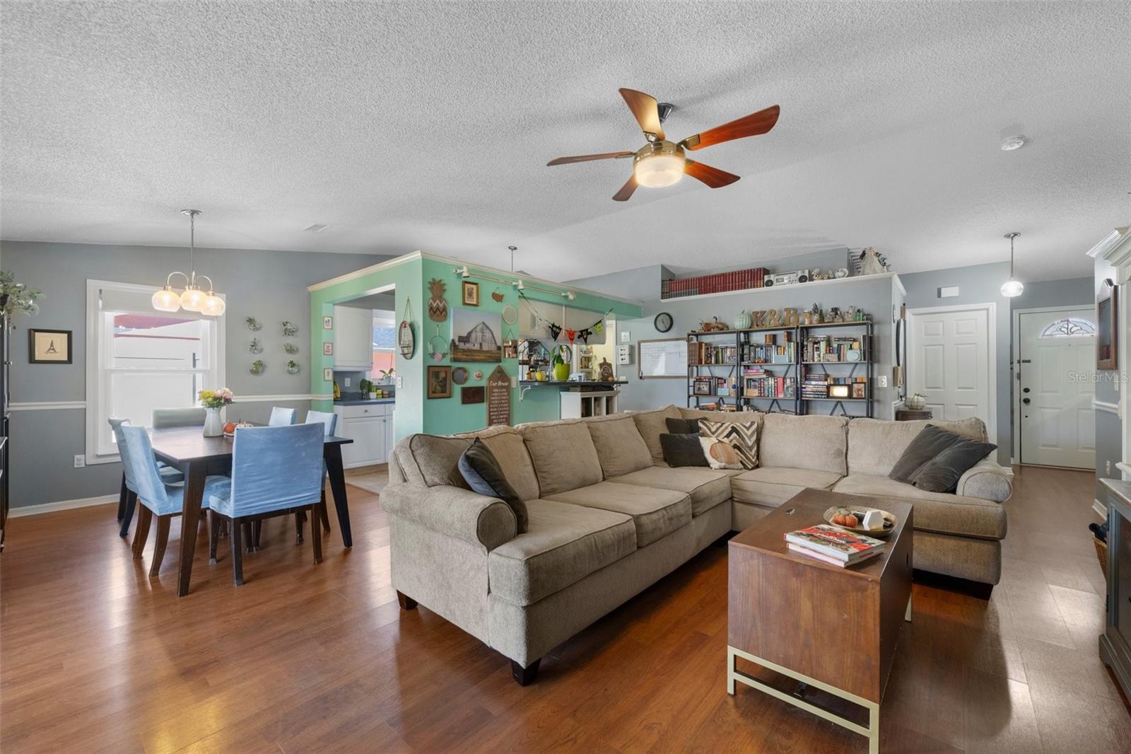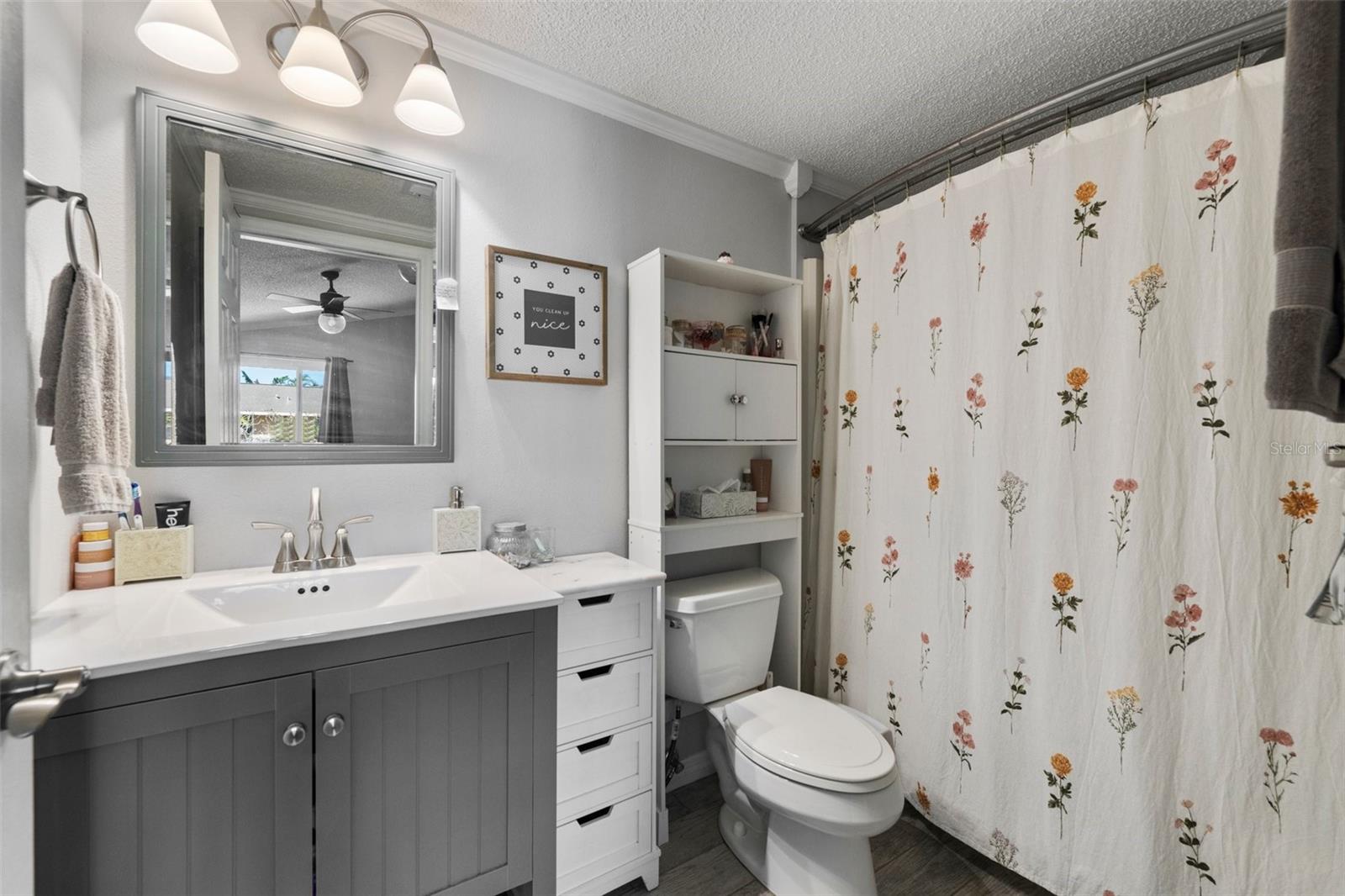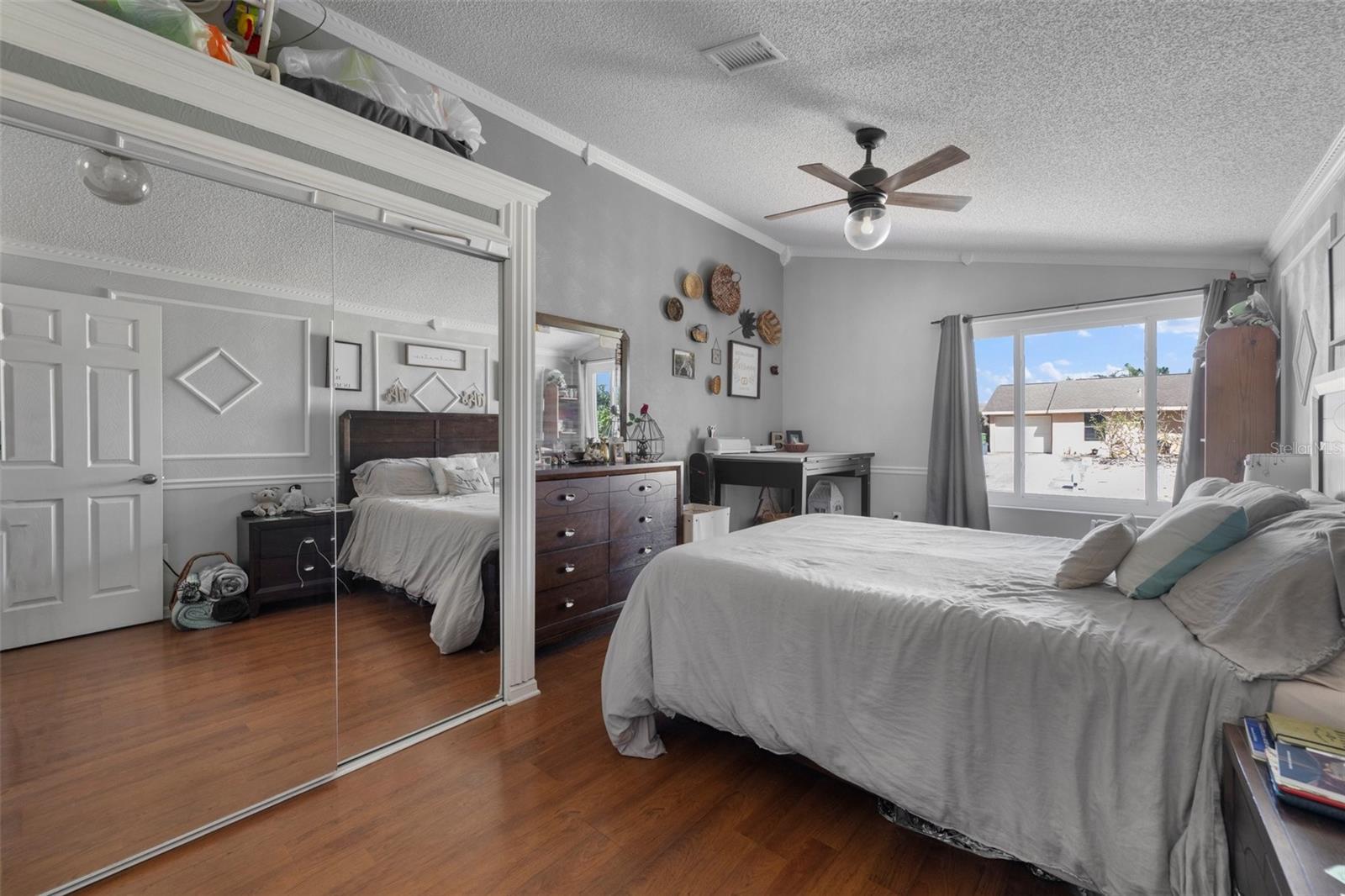 Welcome to this charming Cordova Lakes home featuring a desirable open floor plan and no limitations on leasing! The living room, dining room, and kitchen all boast vaulted ceilings and beautiful wood laminate floors, creating a spacious and inviting atmosphere. The eat-in kitchen, equipped with newer appliances, is the perfect setting for both everyday meals and memorable gatherings. The master bedroom offers plenty of space, with a vaulted ceiling and an updated ensuite bathroom for added comfort. Enjoy the convenience of a separate laundry room with washer and dryer included. Plus, peace of mind comes from impact-resistant windows installed in 2019 and the fact that the home sustained no damage from past hurricanes. The partially fenced backyard features a large screened porch, perfect for relaxing, and a detached shed for extra storage. Located just six miles from the stunning Anna Maria Island, five miles from Robinson Preserve, and less than two miles from Blake Hospital, this home offers both convenience and serenity. Don't miss your chance to make this oasis in West Bradenton your own!
