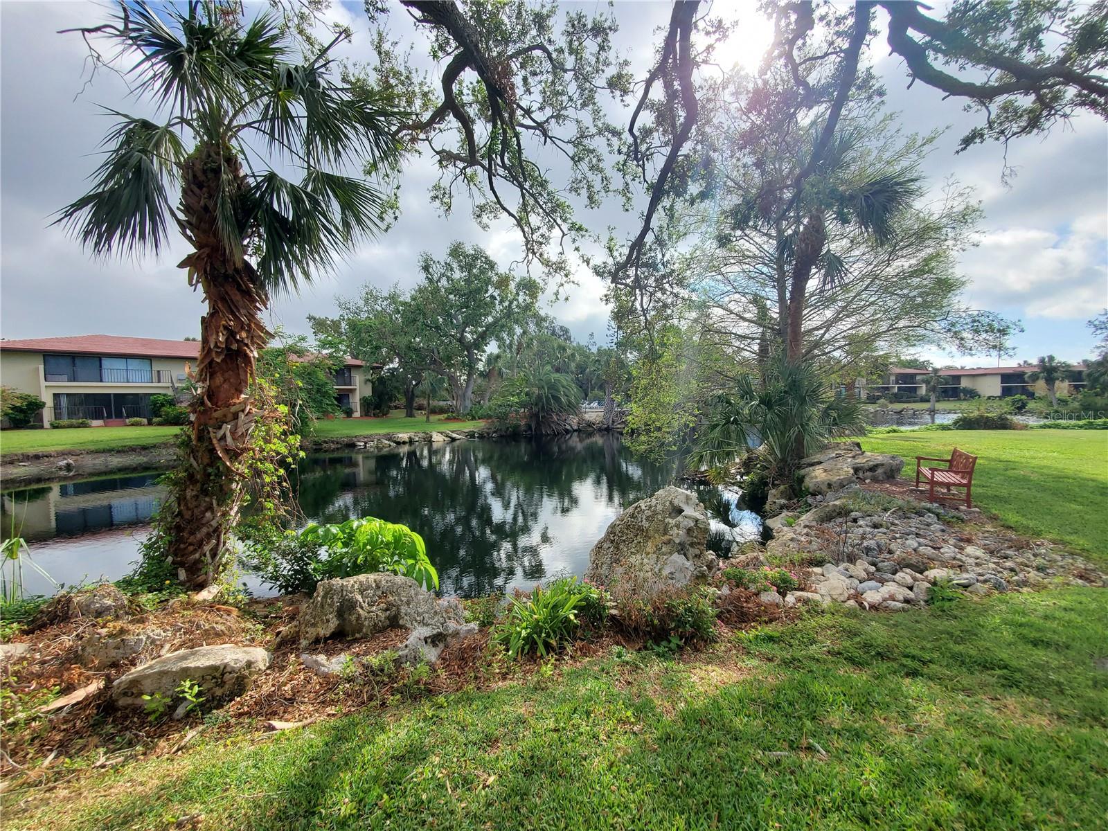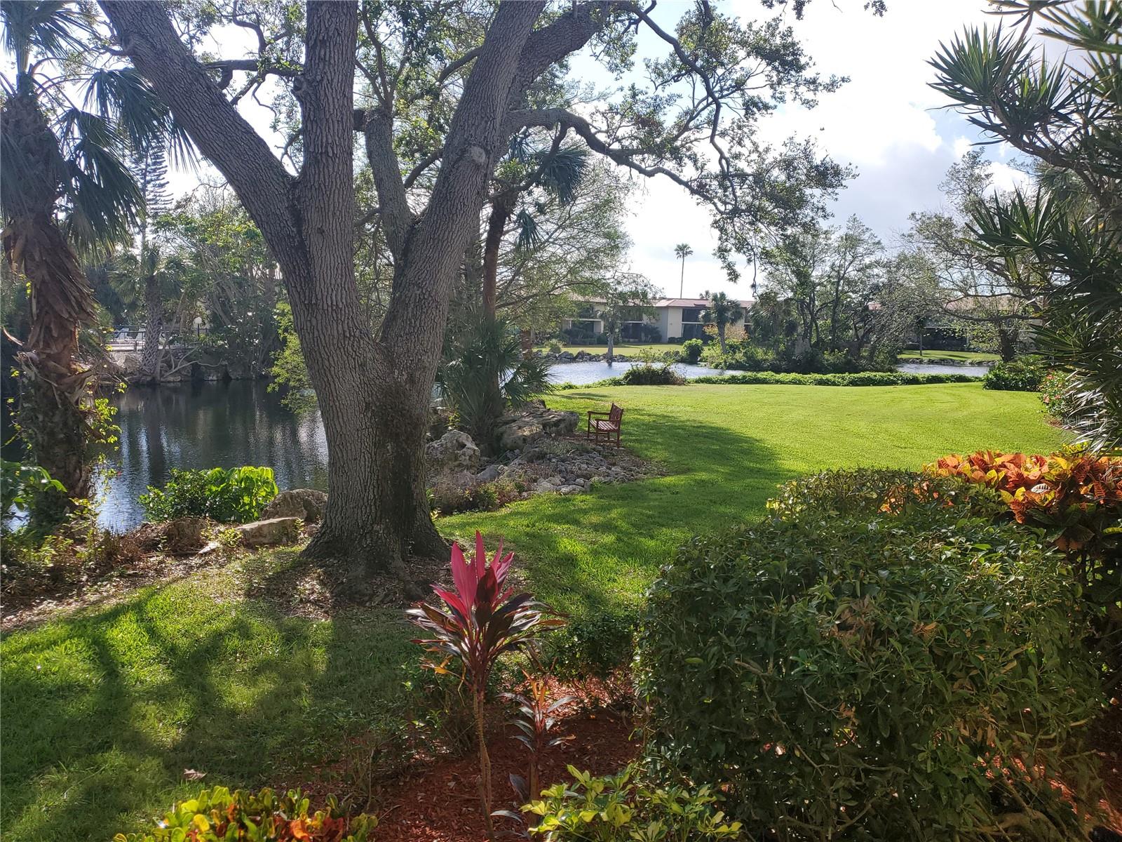 Very desirable first floor, end unit with one of the most beautiful botanical and lake views in the community. Capturing natural light with wonderful picturesque views and nestled in the most enchanting of tropical settings. This community is known to be one of the most beautiful in all of Manatee and Sarasota county hosting some of the most beautiful birds and wild life viewing right out your window. The floorplan expands out to additional square footage with the large glass enclosed lanai - just right for relaxing & casual dining while watching the many coastal sea bird and wild life. You will find herons, eagles, pink spoonbills, pelicans, storks, turtles, sea otters and so much more, truly paradise for you to enjoy. The pleasing, bright eat-in kitchen has triple windows and additional side windows in dining room and Livingroom. Both baths updated with vanities, lighting, mirrors & upgraded flooring. This Terrace Association has the preferred large, lakeside heated pool with spa for friendly gatherings with neighbors. Situated within the IMG Golf & Country Club community along Sarasota Bay. Tennis Club is also down the street. (Good to know that memberships are not mandatory so can play on your terms.) Ideally within 20 minutes of renown Gulf beaches & just as close to the cultural arts of downtown Sarasota. Pet friendly and with the lushness of Wild Oak Bay, you'll be beckoned for shady walks under the canopy of oaks and palms with your 4 legged "baby." Terrific for seasonal or full time living. Close to the IMG Sports Academy. Excellent for an Investor as there is no wait before it can be leased. This is the picture perfect Florida condo you've been hoping to find with unmatchable private view. CHILDREN AND LARGE DOG FRIENDLY AT TERRACES III WITH 1 MONTH MIN RENTAL AND NO WAIT TO RENT!