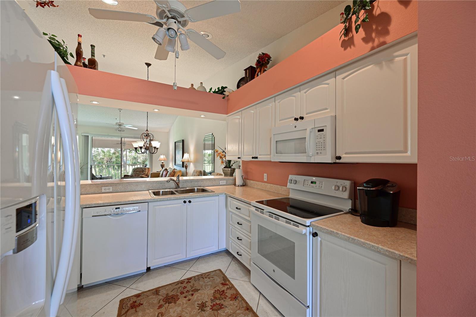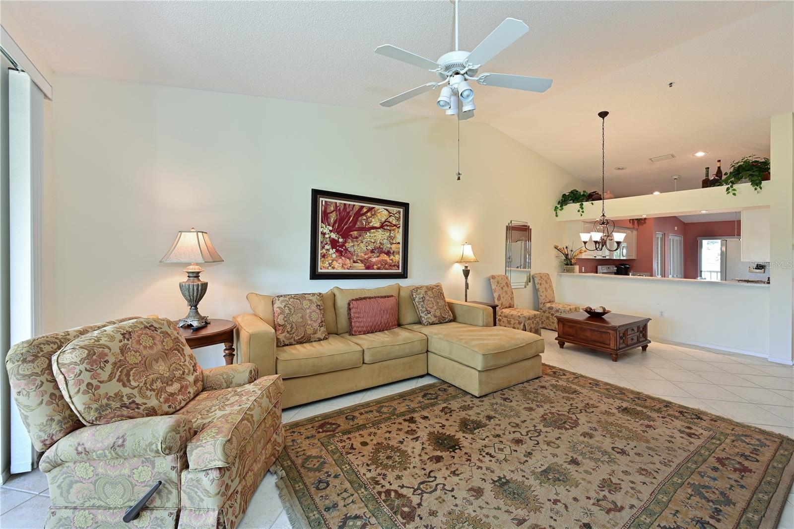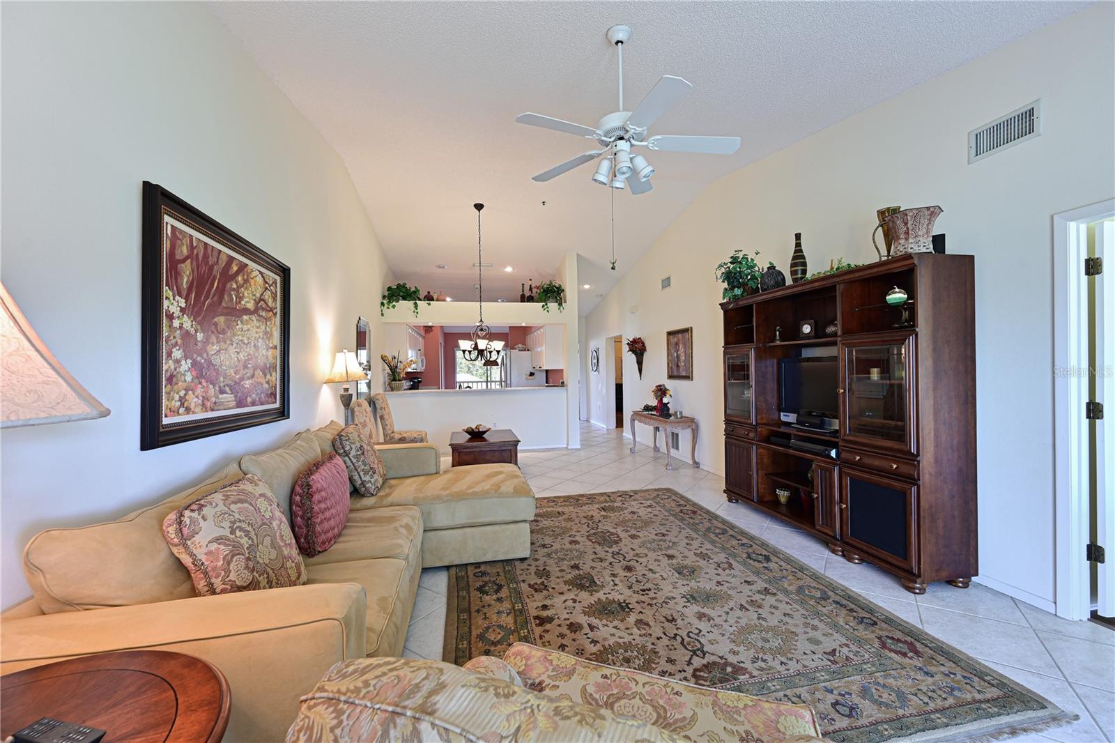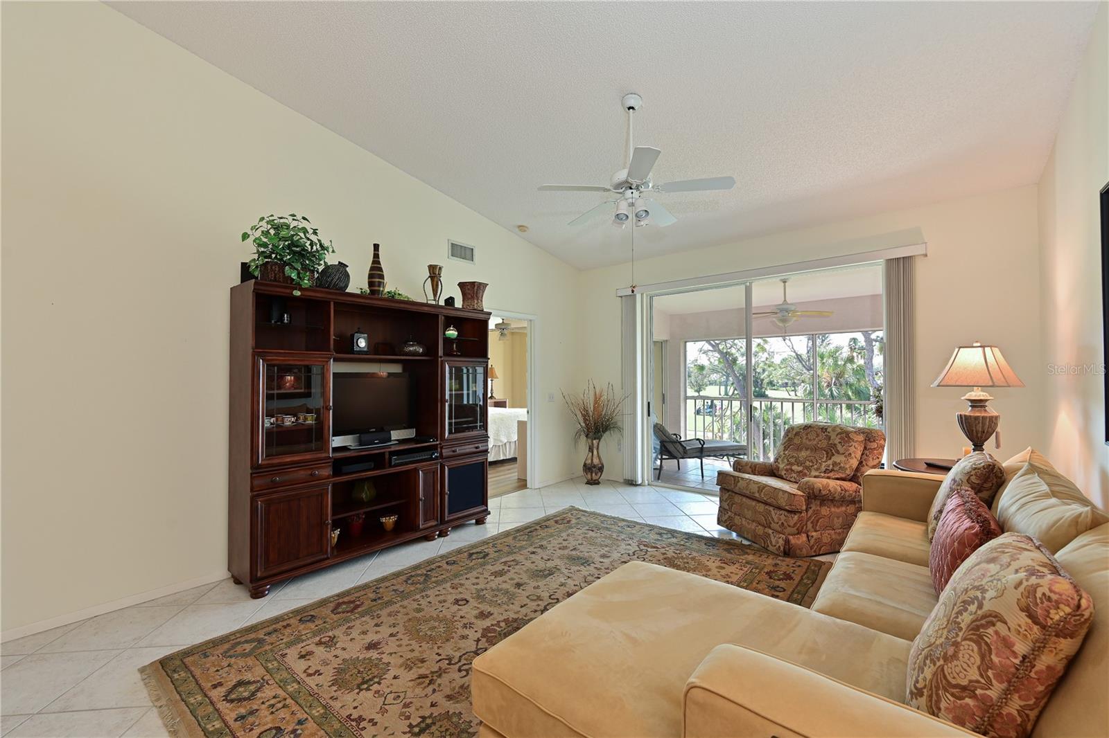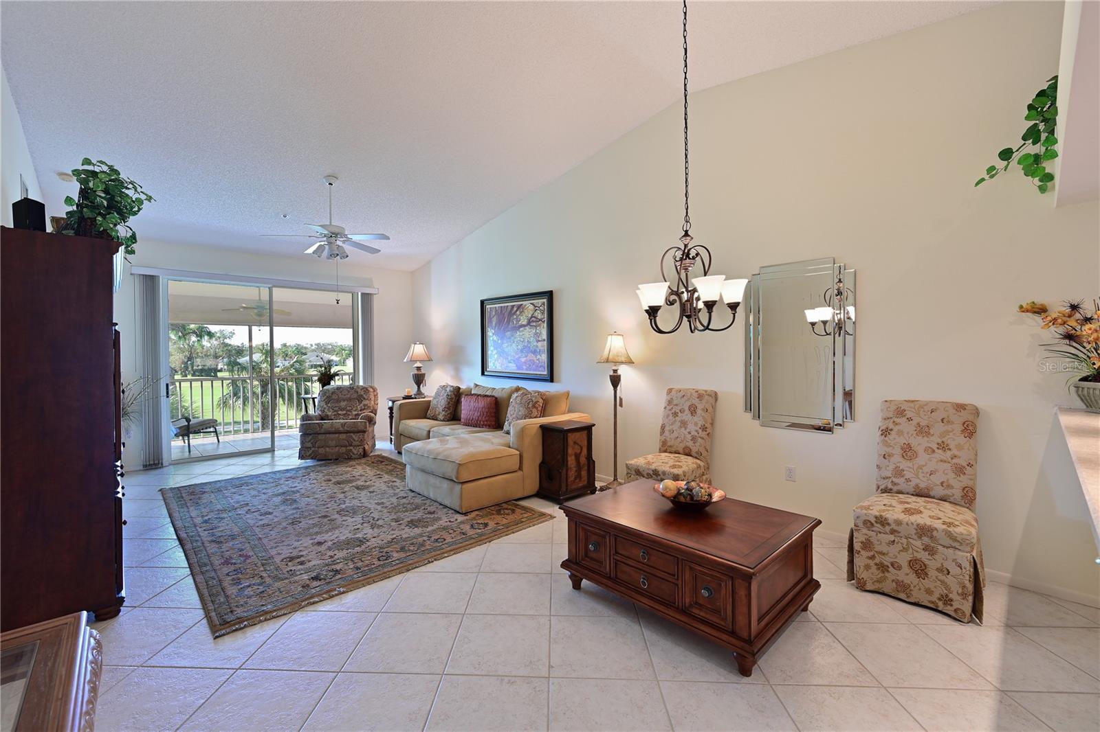 HUGE PRICE IMOROVMENT!!!OWNERS SAY SELL, SELL, SELL,Terrific second floor condo in the popular Village Condos of Tara Golf and Country Club. This well loved home has been in the same family since it was built! Used as a second home, 2 bedroom 2 bath , open floor plan home has high ceilings and fantastic views. Eat in Kitchen with sliders to a back screened lanai. Laundry room with extra storage closet. Primary bedroom has great views of the golf course, 2 walk-in closets and an updated bath. Spilt floorpan puts the second bedroom in its own private space. Tile floor through out the living areas. Very tastefully decorated with all furnishings conveying with the property. One car garage. Class A membership is deeded to the property. Golf, Tennis, Full Fitness Center, Bocce, new Pickleball center being built, with 5 new courts, but can still play on out 2 courts that are currently available, Clubhouse dining, Community Pool and loads of activities to give you the Florida lifestyle you have been looking for. The 18 hole championship golf course was renovated in 2023 with new tee boxes, new greens and new fairways with no assessments to the members! Voted the Best golf course in 2023 by Peoples Choice. Welcome to Taradise!!!!