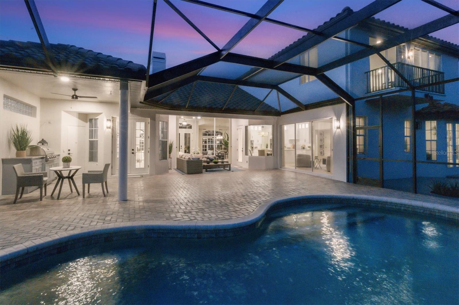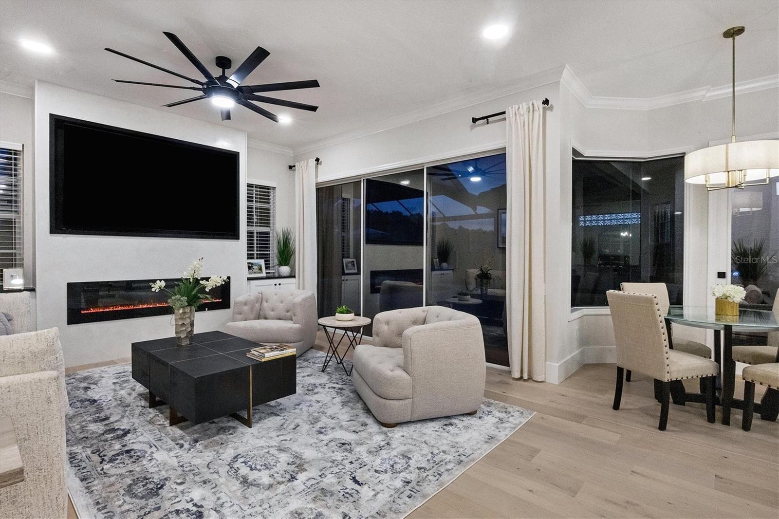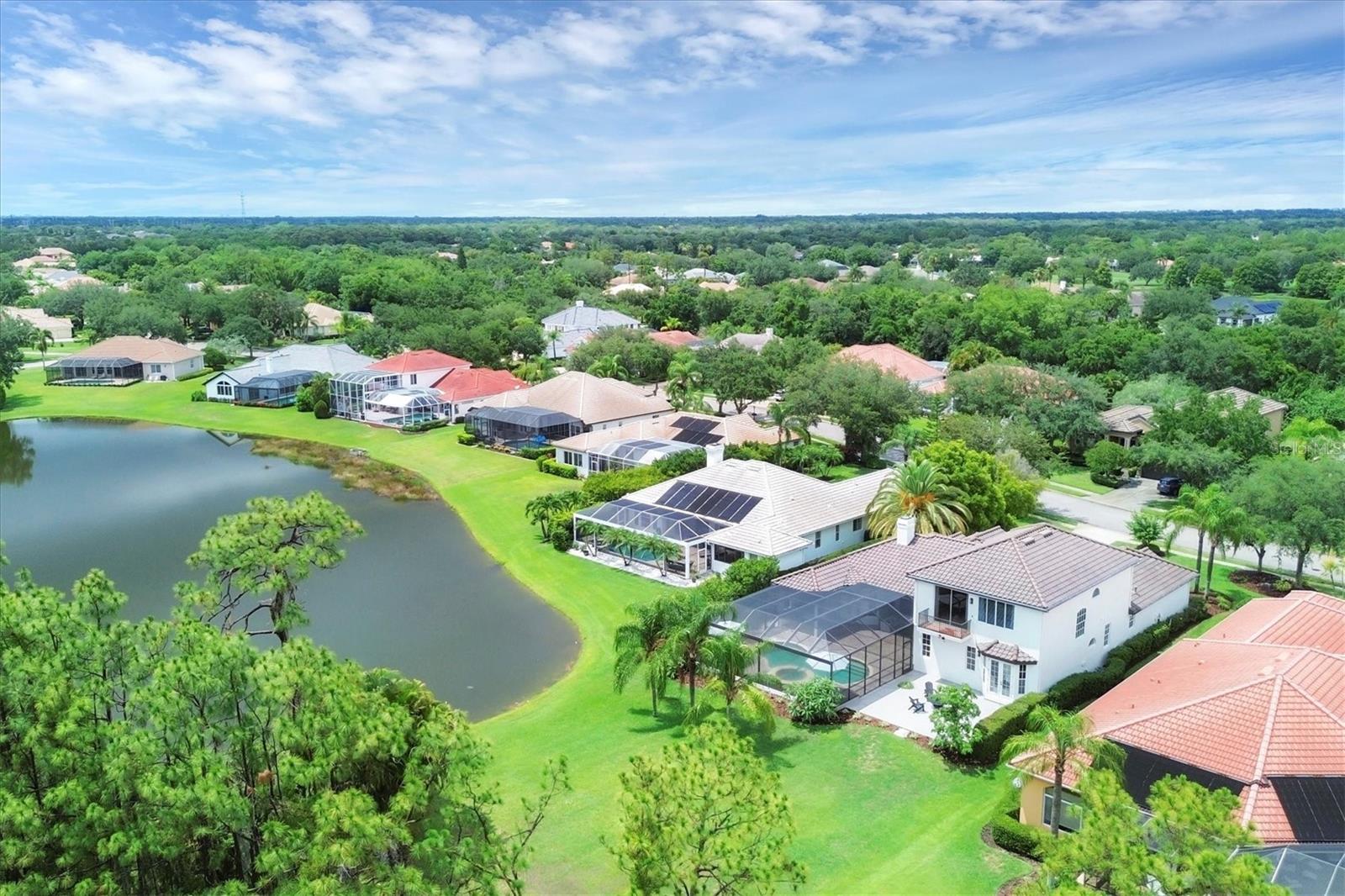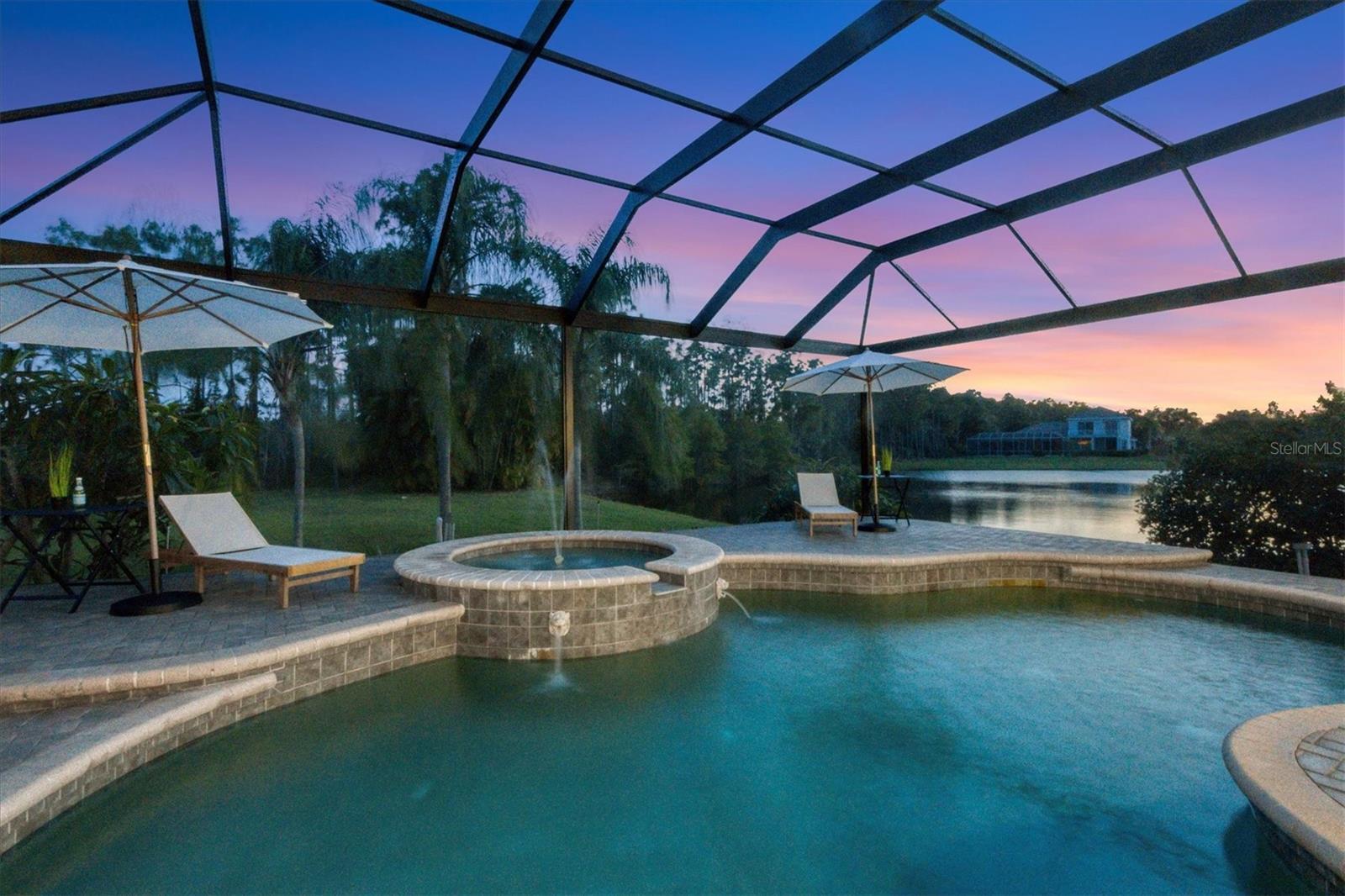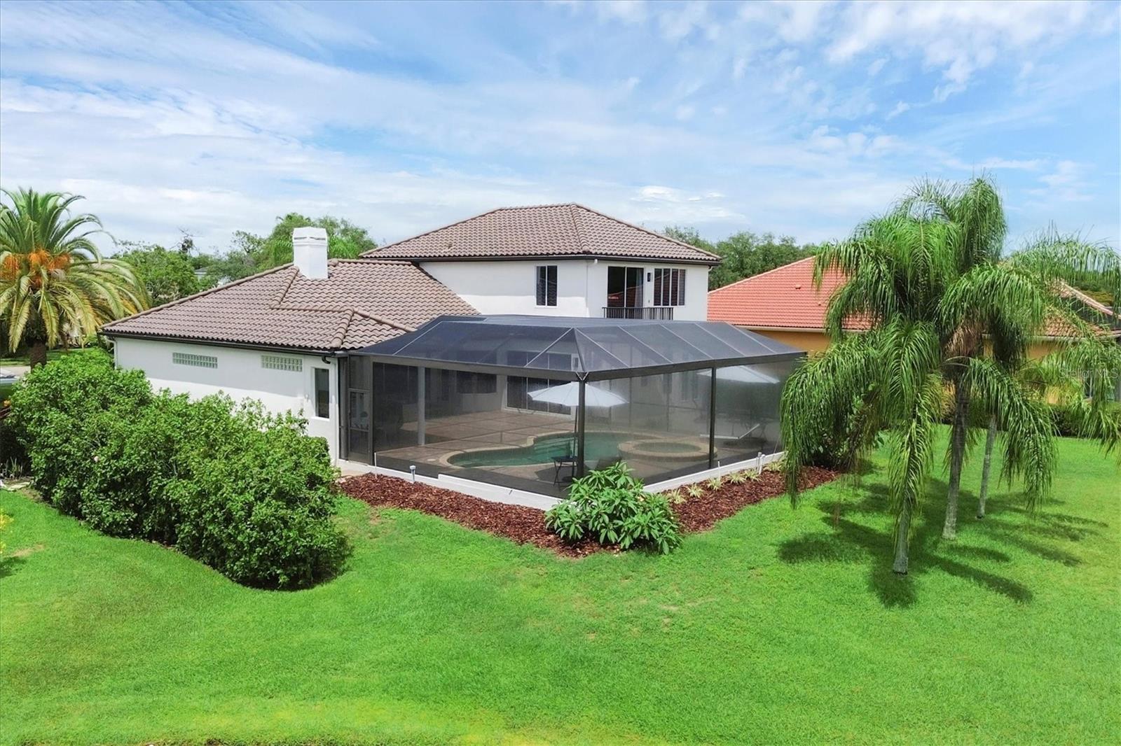 Totally remodeled Family Home with NEW TILE ROOF is now available in The Sanctuary of River Club! The is exquisite family home built by Todd Johnston offers 4 spacious bedrooms and 3 remodeled bathrooms! Located on a quiet cul-de-sac, this family home is loaded with upgrades and won’t last long! Step inside and be prepared to be amazed and the open floorplan with brand new kitchen! Don’t miss the gorgeous new cabinets, quartz countertops, beautiful backsplash and all new appliances and lighting! The first floor is adorned with gorgeous new engineered wood wide plank flooring! The living room overlooks the enormous lanai and spectacular saltwater pool and spa! The summer kitchen has a brand-new gas grill and plenty of outdoor cabinetry for all your entertaining needs. The pool cage is freshly painted with all new screens with panoramic views of the serene pond! Families will love the split floorplan with primary wing one side with fantastic primary bathroom with dual sinks, glamourous new shower with dual shower heads, free standing tub, new cabinets with quartz cabinets and separate water closet! The primary closet is fit for royalty with exceptional built-ins! The dining room has new wine wall and stunning new lighting that will impress the most discerning buyer! The family room opens to the outdoor space and allows for daily views of sunset skies! The generous size lot boats nearly a half-acre for furry friends and more! The generous size office is conveniently located in the rear of the home offering quiet space away from the heart of the home and private door to the exterior. A guest bedroom is located on the first floor adjacent to a remodeled full bath. Travel up the stairs to massive bonus room with a built-in workspace and viewing balcony for a breath of fresh air or taking in the sunset! Two additional guest rooms share a hall bath that has been remodeled with timeless choices! Buyers have peace of mind with two newer AC’s, freshly painted exterior and interior, new lighting inside and out and so much more! River Club is an optional golf community with NO CDD’s and minutes to Lakewood Ranch Main Street, Waterside and University Town Center! River Club has low HOA’s and located in between State Road 70 and University Parkway! The garage is an oversized 2 car, side load garage with room for a third car or extra storage space! This home has it all and ready for occupancy! Book your tour today and move in before the school year gets started!