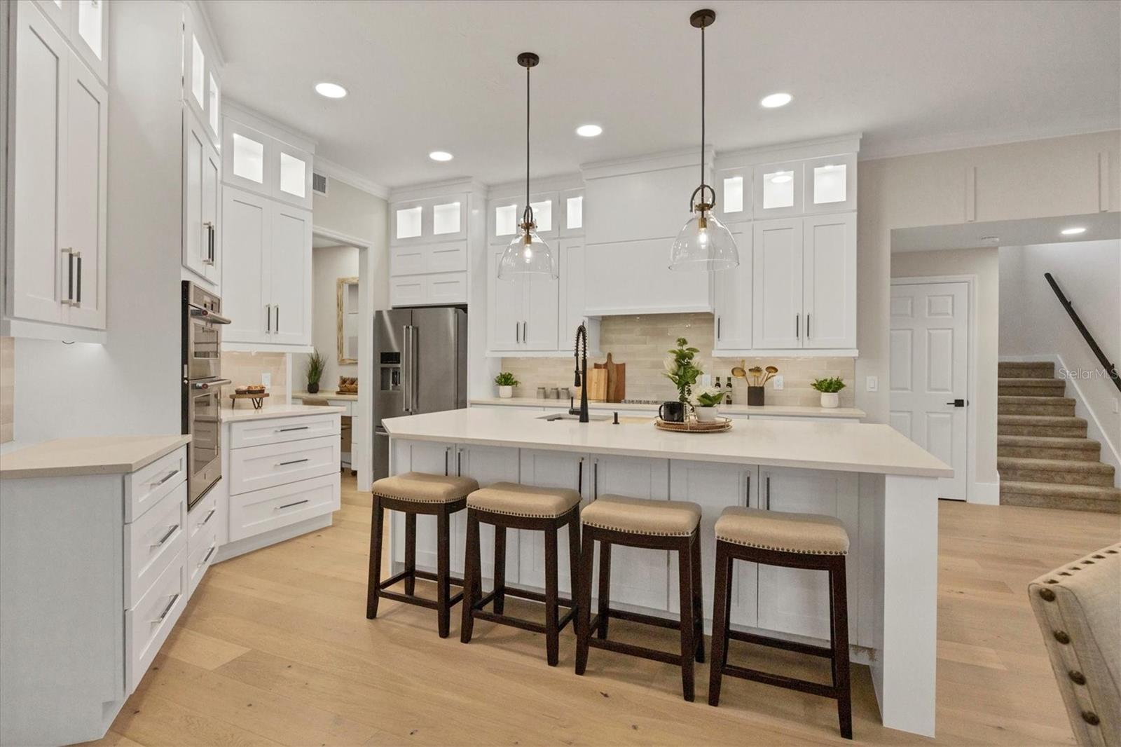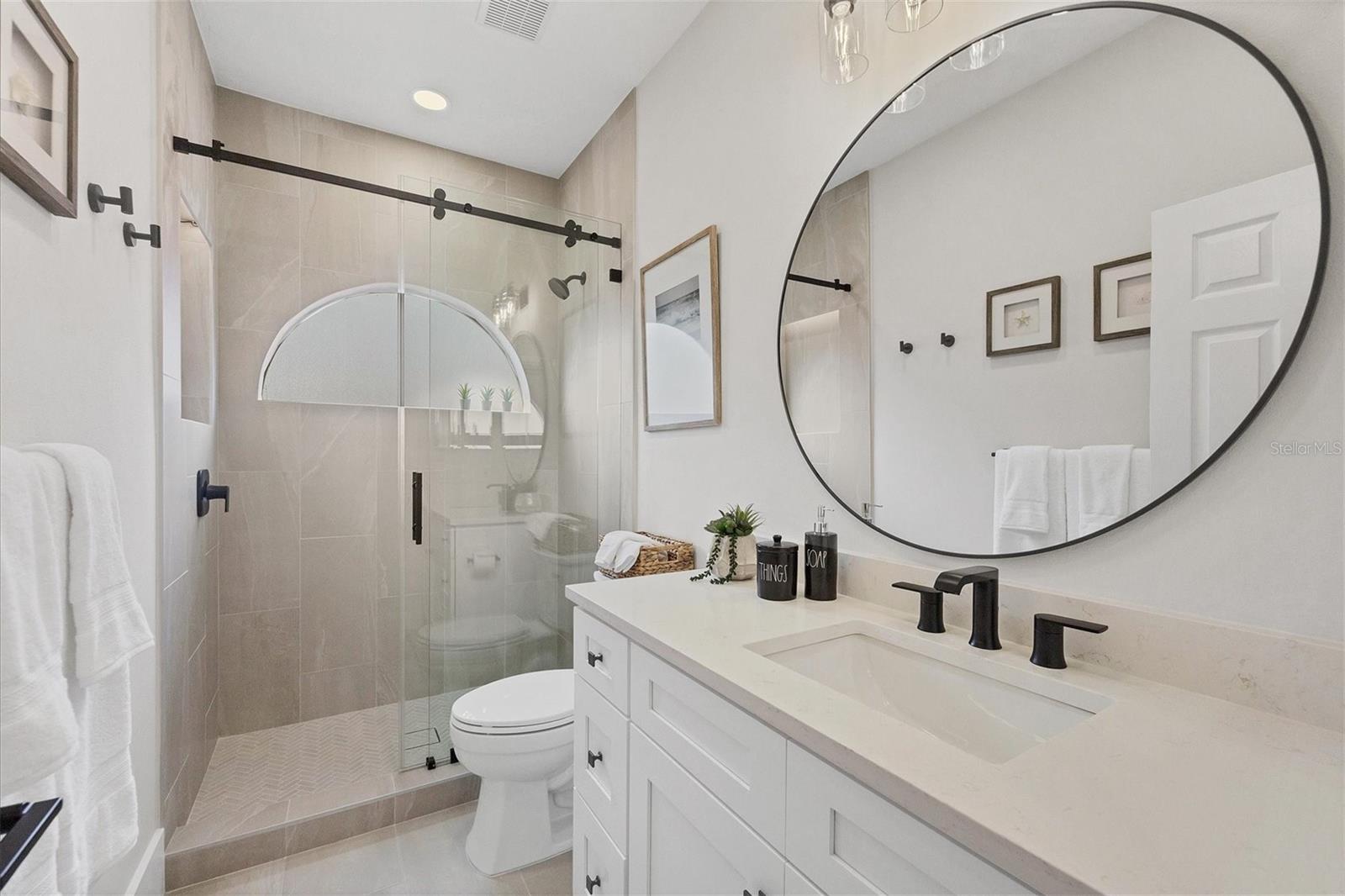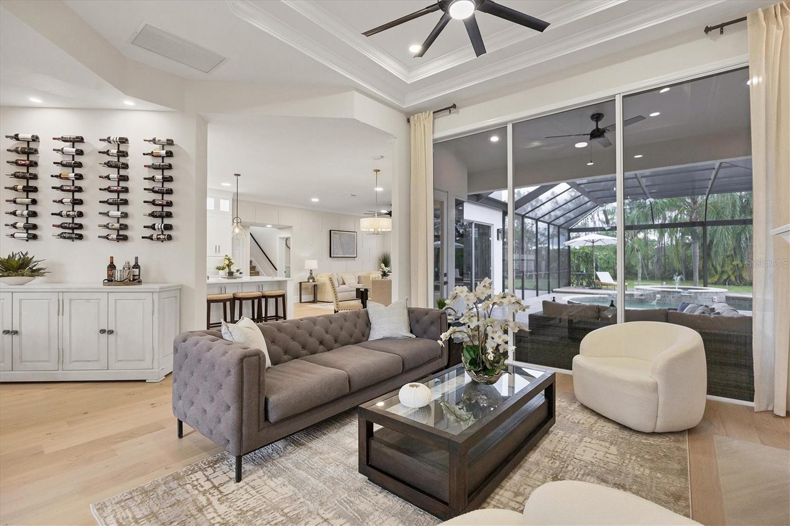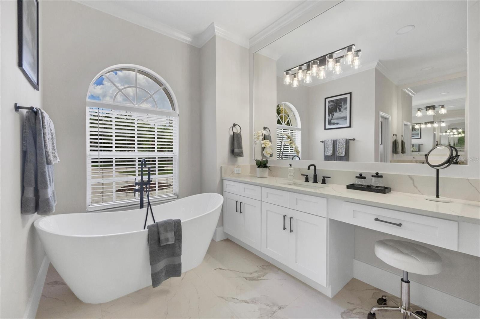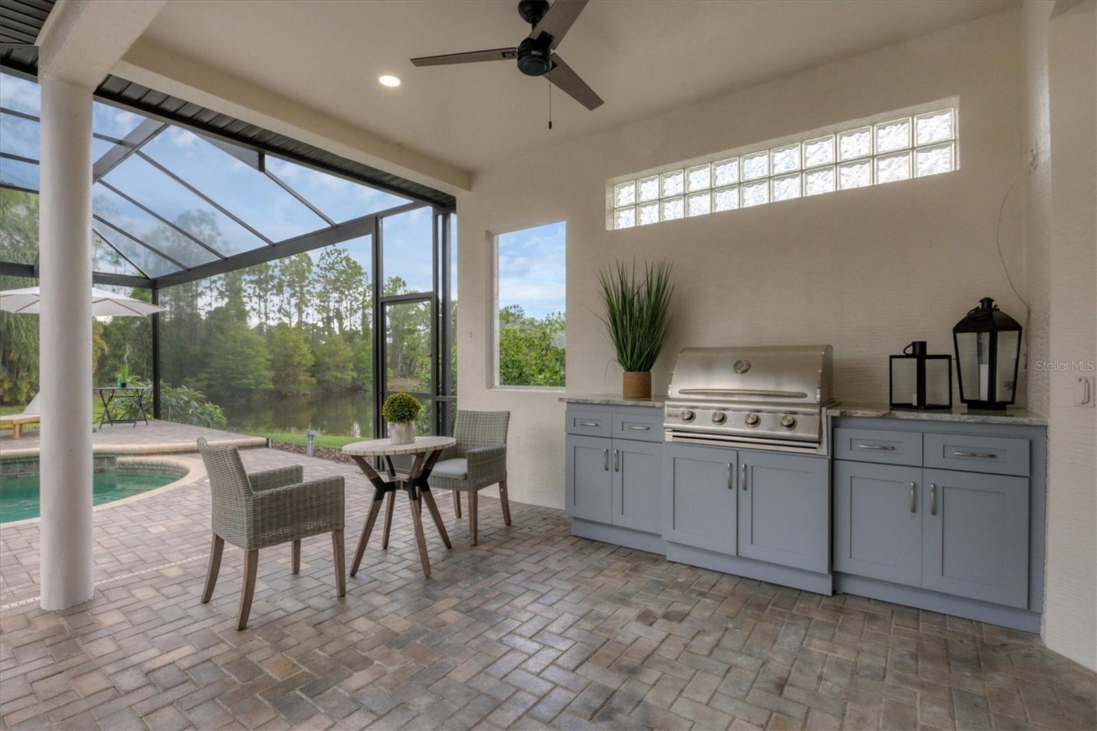 Totally remodeled Family Home with NEW TILE ROOF is now available in The Sanctuary of River Club! The is exquisite family home built by Todd Johnston offers 4 spacious bedrooms and 3 remodeled bathrooms! Located on a quiet cul-de-sac, this family home is loaded with upgrades and won’t last long! Step inside and be prepared to be amazed and the open floorplan with brand new kitchen! Don’t miss the gorgeous new cabinets, quartz countertops, beautiful backsplash and all new appliances and lighting! The first floor is adorned with gorgeous new engineered wood wide plank flooring! The living room overlooks the enormous lanai and spectacular saltwater pool and spa! The summer kitchen has a brand-new gas grill and plenty of outdoor cabinetry for all your entertaining needs. The pool cage is freshly painted with all new screens with panoramic views of the serene pond! Families will love the split floorplan with primary wing one side with fantastic primary bathroom with dual sinks, glamourous new shower with dual shower heads, free standing tub, new cabinets with quartz cabinets and separate water closet! The primary closet is fit for royalty with exceptional built-ins! The dining room has new wine wall and stunning new lighting that will impress the most discerning buyer! The family room opens to the outdoor space and allows for daily views of sunset skies! The generous size lot boats nearly a half-acre for furry friends and more! The generous size office is conveniently located in the rear of the home offering quiet space away from the heart of the home and private door to the exterior. A guest bedroom is located on the first floor adjacent to a remodeled full bath. Travel up the stairs to massive bonus room with a built-in workspace and viewing balcony for a breath of fresh air or taking in the sunset! Two additional guest rooms share a hall bath that has been remodeled with timeless choices! Buyers have peace of mind with two newer AC’s, freshly painted exterior and interior, new lighting inside and out and so much more! River Club is an optional golf community with NO CDD’s and minutes to Lakewood Ranch Main Street, Waterside and University Town Center! River Club has low HOA’s and located in between State Road 70 and University Parkway! The garage is an oversized 2 car, side load garage with room for a third car or extra storage space! This home has it all and ready for occupancy! Book your tour today and move in before the school year gets started!