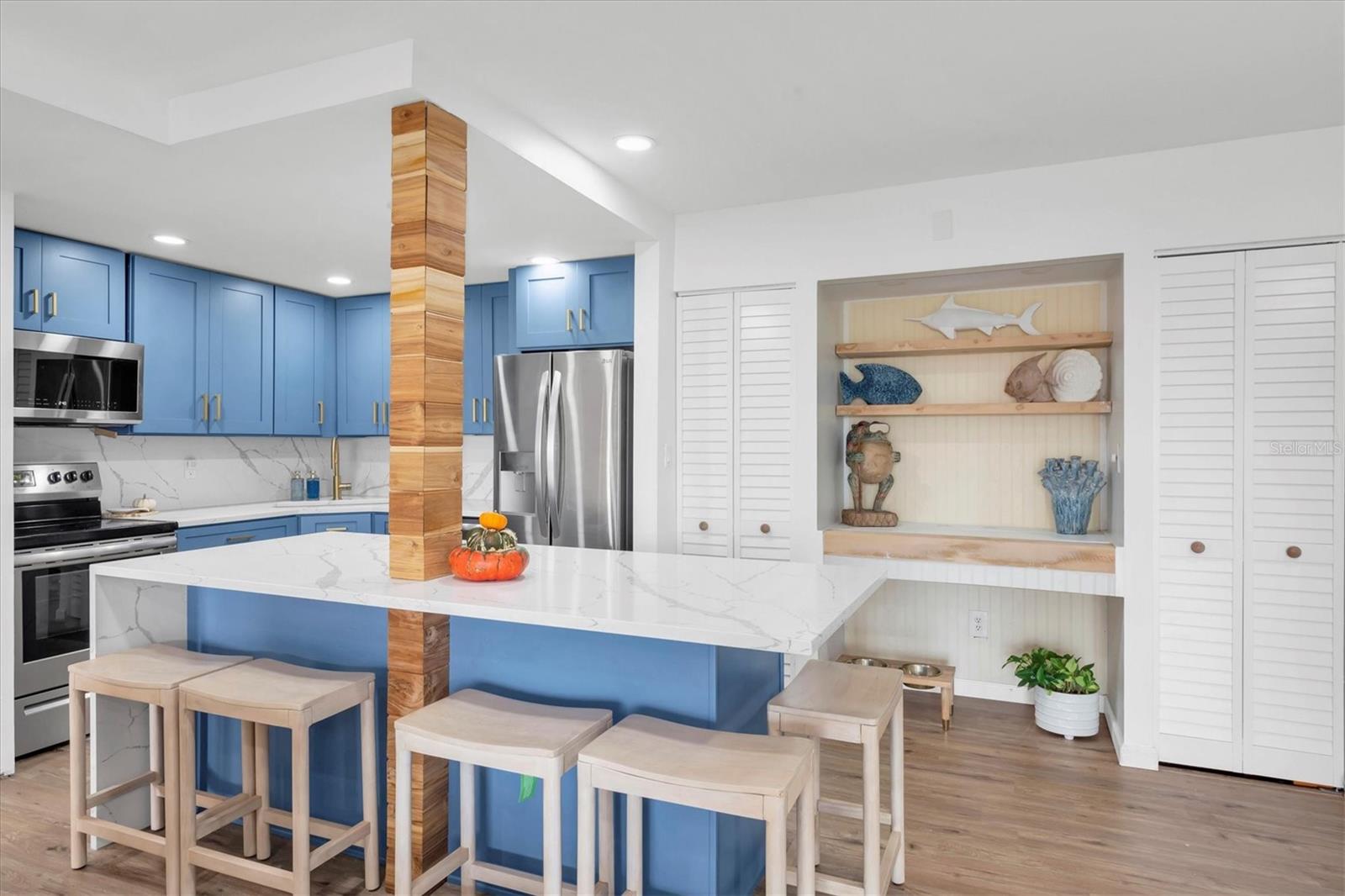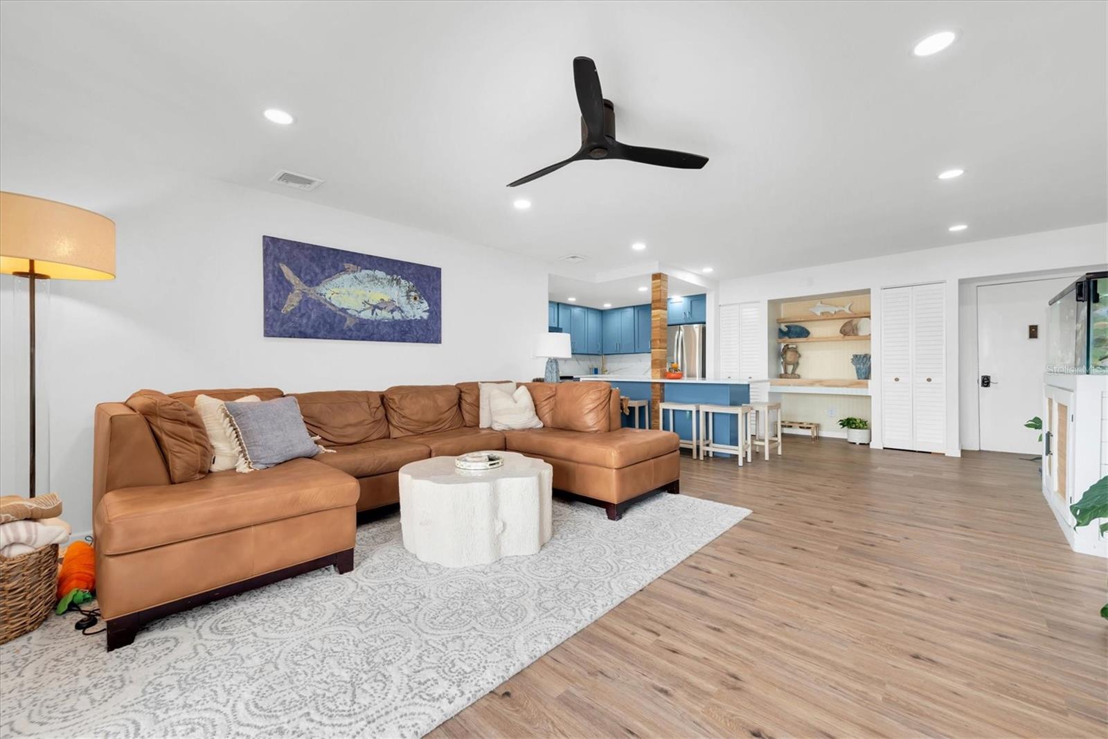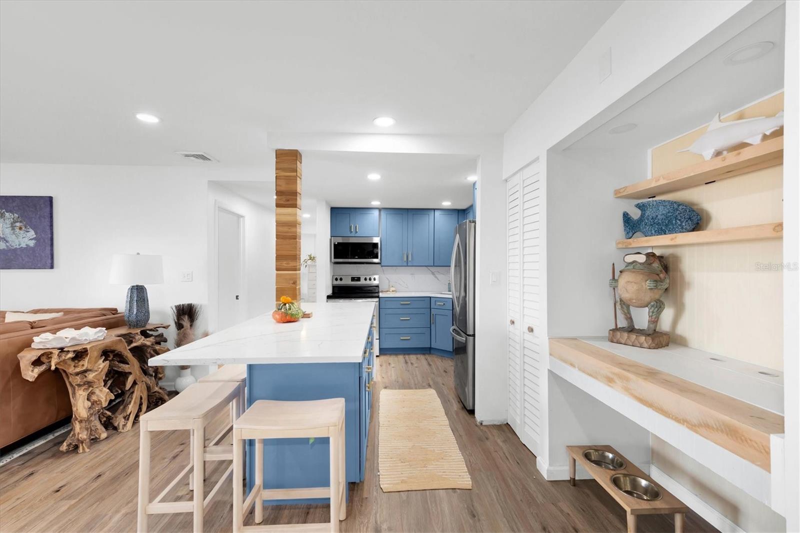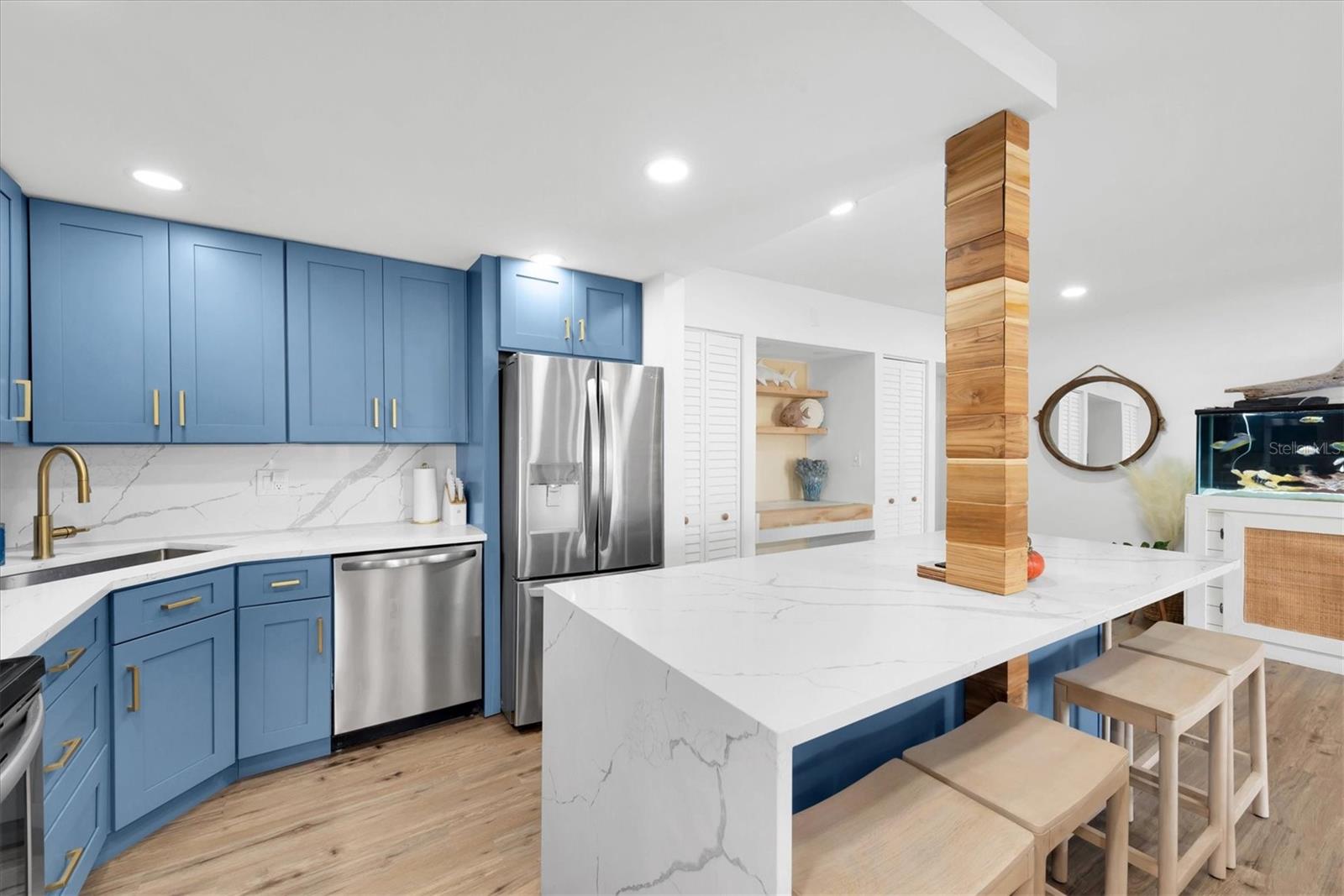 Price DROP!! Welcome to your dream home! This is a beautifully remodeled 2-bedroom, 2-bathroom condo located on the water, 5 minutes from the Sarasota Airport. Step inside to find an open-concept living space filled with natural light, featuring a newly updated kitchen. The kitchen boasts brand-new blue cabinets, sleek countertops with ample room and is perfect for entertaining or enjoying a quiet meal at home. The spacious master suite includes a luxurious en-suite bathroom. The second bedroom is versatile, ideal for guests or a home office. Enjoy your morning coffee on the private balcony, where you can soak in some Florida sunshine. This condo also includes on floor laundry, covered parking with fee, and access to community amenities such as a pool, grills and boat docks. Boat parking is $2 a foot. With easy access to local dining, shopping, and beautiful beaches, this property is a perfect blend of comfort and lifestyle. Don’t miss this rare opportunity to own a piece of paradise! Schedule your private showing today.