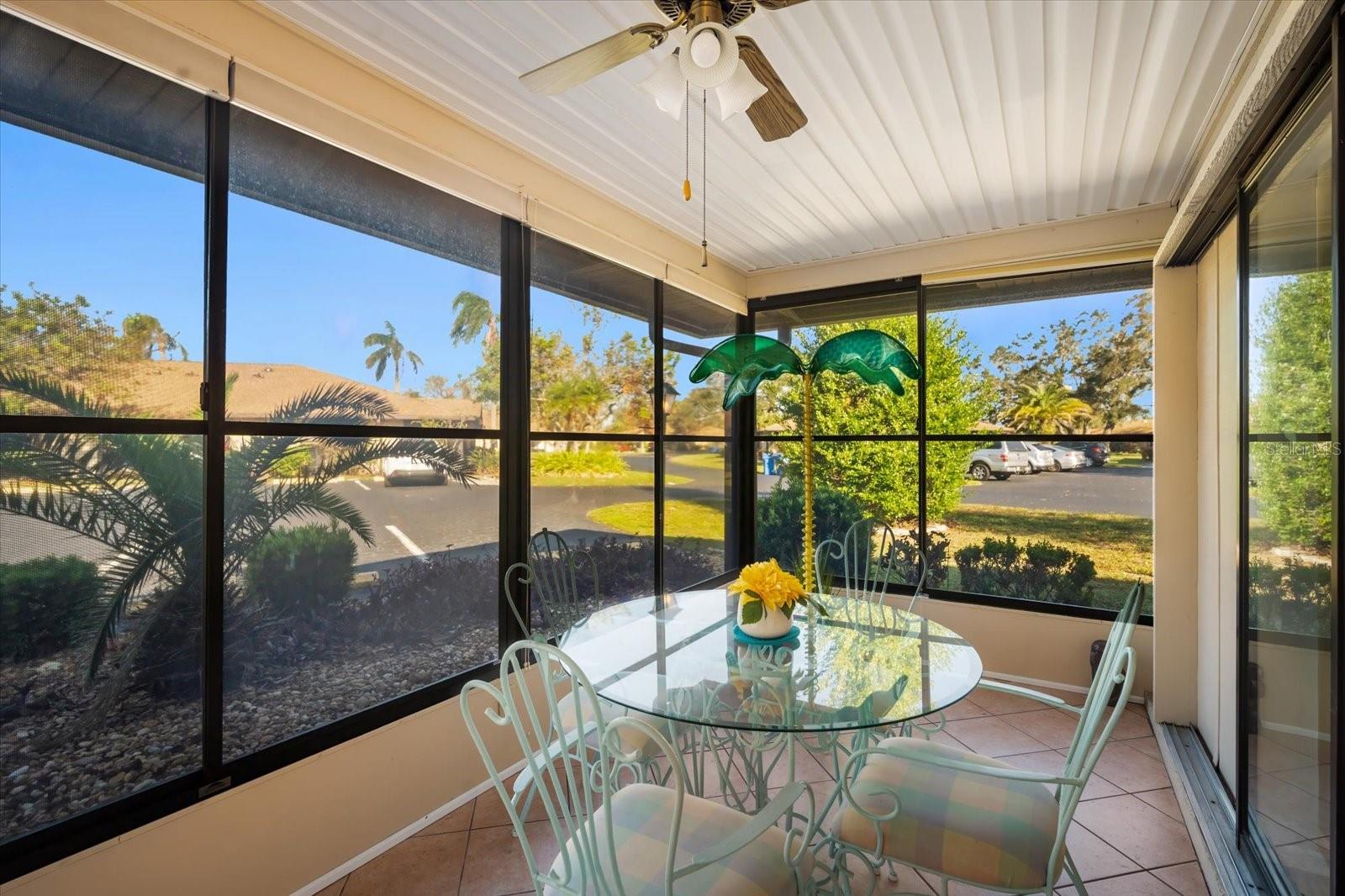 Welcome to this beautifully furnished, upgraded 2-bedroom, 2-bath villa in a desirable 55+ community near the Gulf of Mexico! This home offers an open floor plan perfect for entertaining and relaxation. The eat-in kitchen features attractive granite countertops, a stylish backsplash, and ample cabinetry. The spacious laundry room provides extra storage, adding convenience to your daily life. The master suite is a true retreat with built-in storage, a generous walk-in closet, and access to a screened lanai with a large storage room. The guest bedroom can easily be transformed into a flex space with a sliding divider that creates a cozy den and extends the living room area. Perfect for guests or multi-use living! This villa has impact windows, a new storm door, and luxury vinyl plank flooring throughout. The front lanai, with dual entrances from the living room and guest bedroom, offers a comfortable outdoor area and has vinyl windows & screens. The unit comes with two designated parking spots. Community Amenities include Club House with kitchen & Pool. Close to shopping, hospital, restaurants, and the Gulf of Mexico. No Pets except service animals approved by Association and must own two years before renting.