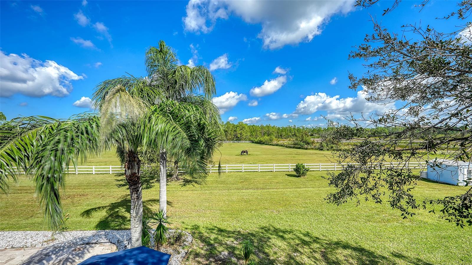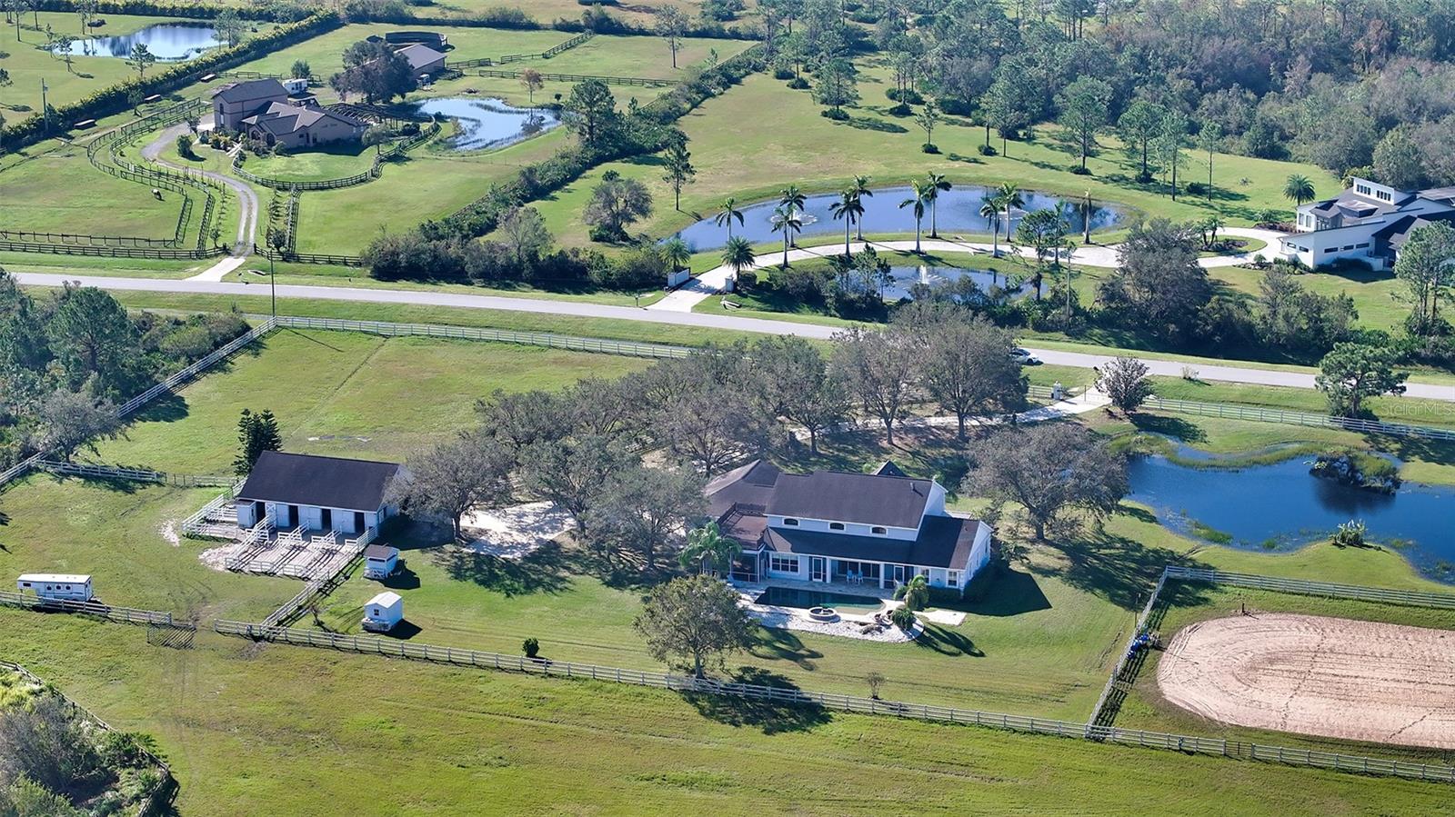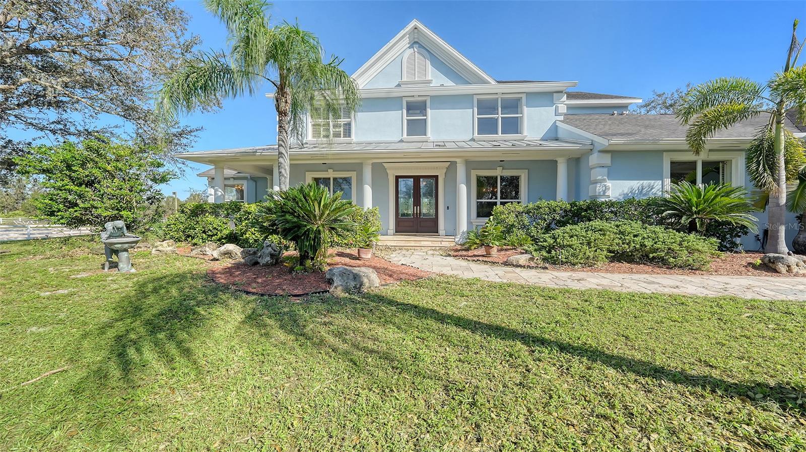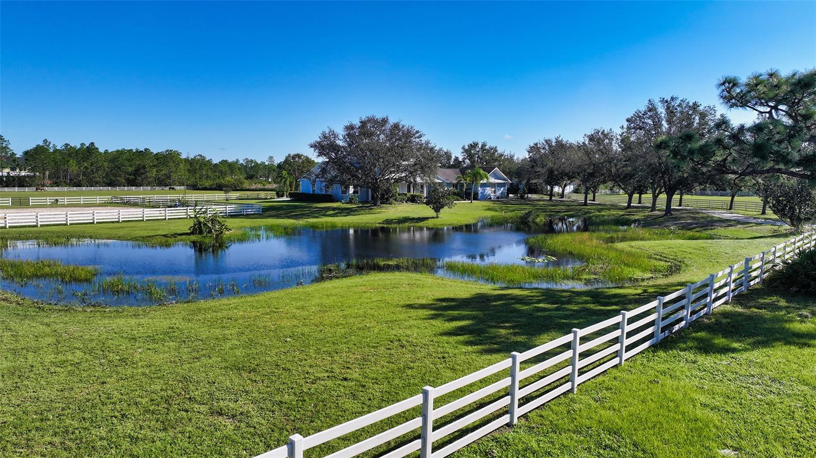 Discover 9+ acres of gated equestrian elegance in this storm-ready Panther Ridge estate, nestled in Foxwood—one of the most elite neighborhoods in this acreage enclave of Lakewood Ranch, America’s fastest-growing master-planned community. Here, luxury meets peace of mind, with Miami-Dade hurricane-rated windows, doors, and Martin garage doors throughout the home and barn, plus a 30 KW Generac generator powering essentials in both—ensuring comfort through any season. Even after three big hurricanes swept the area, this home stands strong in Zone X (no flood insurance required) at one of Manatee County’s highest elevations. Enter through the automatic gated entrance and wind past mature oaks and lush, fenced pastures to discover a masterpiece of style and function. The gourmet kitchen dazzles with handcrafted cherry cabinets, Cambria quartz counters, a 6-burner DACOR gas stove, Sub-Zero refrigerator, and Miele dishwasher—perfect for culinary enthusiasts who demand elegance and efficiency. The first-floor primary suite, with wood floors, gas fireplace, and surround sound, flows into a spa-inspired bath featuring travertine tile, a Mr. Steam shower, and a brass clawfoot tub, complemented by custom closets with locking cabinetry. The great room steals the show with 20-ft ceilings, polished marble floors, bespoke poplar built-ins, and a gas fireplace, opening to a lanai with an automatic screen for effortless indoor-outdoor living. Upstairs, a bonus room with a built-in bar spills onto a 1,000 sq ft TREX deck, offering stunning views of the barn, heated saltwater pool, and Jacuzzi. Two spacious bedrooms with walk-in closets and an equestrian-themed bath round out the upper level, all accented by solid cherry cabinetry and California shutters. Outside, entertain in style with a renovated summer kitchen on the second screened lanai, featuring granite counters, a Fire Magic grill, and a mini fridge. For equestrians and those seeking versatile space, the concrete barn offers four 12x12 stalls with an automatic fly system, RV outlets, potential for A/C with existing ductwork, and a mini bathroom. A tack room with marble floors, multiple wash racks, mats in all stalls, and a hurricane-rated automatic garage door complete this incredible space, which is also wired for internet, cable, and surround sound. The barn can also be converted into a workshop, guest residence, or parking for ATVs, cars, and more. Smart features like whole-home surround sound and a Control 4 system elevate the experience, while 15 miles of equestrian trails and proximity to Lakewood Ranch’s booming amenities—top schools, shopping, dining, and entertainment—make this location unbeatable. Just minutes from Lakewood Ranch’s vibrant town centers, this Foxwood gem offers the best of acreage living in a community that’s redefining growth in the USA. Best of all, it’s directly contiguous to The Concession Golf & Country Club, a prestigious Jack Nicklaus-designed championship course, where you can drive your own golf cart for a round of world-class golf. Watch the Panther Ridge Community video (https://pix360.com/vtour/9765/) to see why this estate blends storm-ready resilience with timeless elegance—a rare find ready to be your forever home.