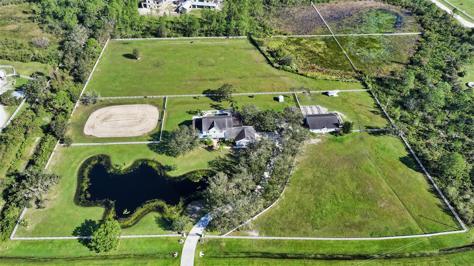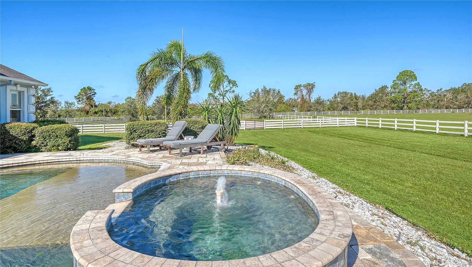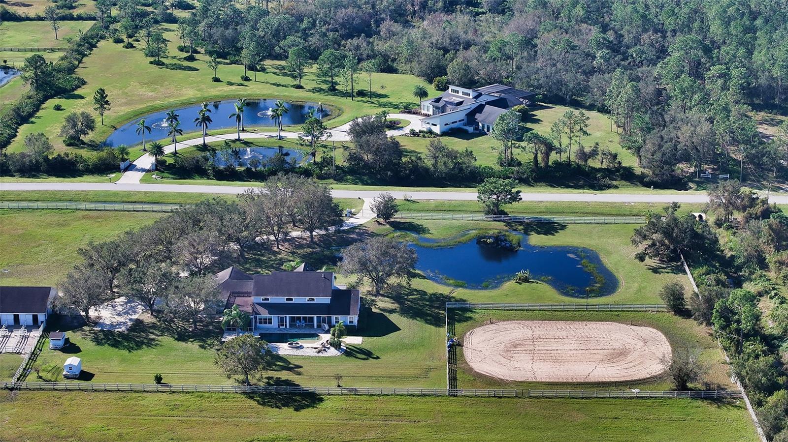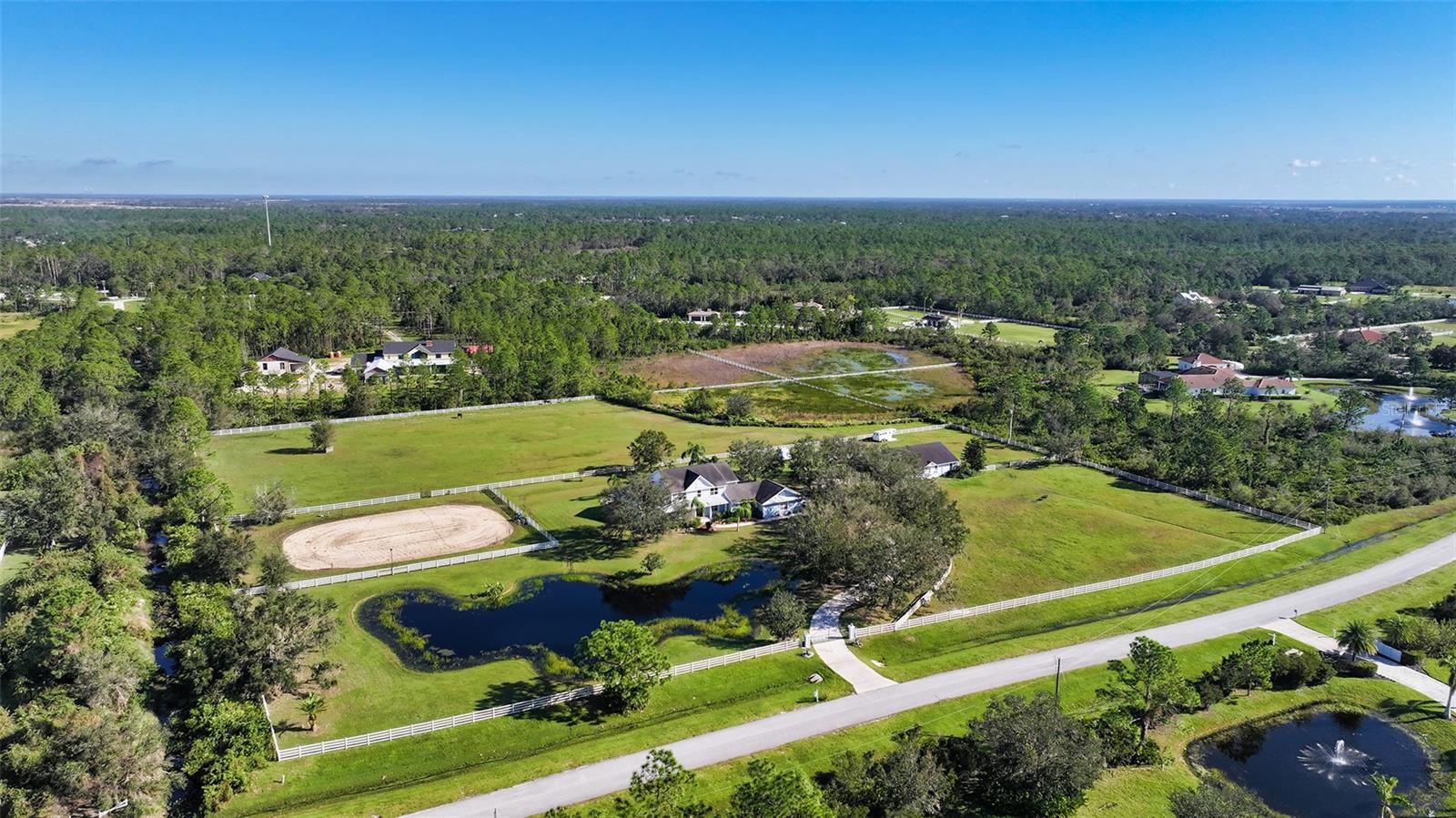 Discover 9+ acres of gated equestrian elegance in this storm-ready Panther Ridge estate, nestled in Foxwood—one of the most elite neighborhoods in this acreage enclave of Lakewood Ranch, America’s fastest-growing master-planned community. Here, luxury meets peace of mind, with Miami-Dade hurricane-rated windows, doors, and Martin garage doors throughout the home and barn, plus a 30 KW Generac generator powering essentials in both—ensuring comfort through any season. Even after three big hurricanes swept the area, this home stands strong in Zone X (no flood insurance required) at one of Manatee County’s highest elevations. Enter through the automatic gated entrance and wind past mature oaks and lush, fenced pastures to discover a masterpiece of style and function. The gourmet kitchen dazzles with handcrafted cherry cabinets, Cambria quartz counters, a 6-burner DACOR gas stove, Sub-Zero refrigerator, and Miele dishwasher—perfect for culinary enthusiasts who demand elegance and efficiency. The first-floor primary suite, with wood floors, gas fireplace, and surround sound, flows into a spa-inspired bath featuring travertine tile, a Mr. Steam shower, and a brass clawfoot tub, complemented by custom closets with locking cabinetry. The great room steals the show with 20-ft ceilings, polished marble floors, bespoke poplar built-ins, and a gas fireplace, opening to a lanai with an automatic screen for effortless indoor-outdoor living. Upstairs, a bonus room with a built-in bar spills onto a 1,000 sq ft TREX deck, offering stunning views of the barn, heated saltwater pool, and Jacuzzi. Two spacious bedrooms with walk-in closets and an equestrian-themed bath round out the upper level, all accented by solid cherry cabinetry and California shutters. Outside, entertain in style with a renovated summer kitchen on the second screened lanai, featuring granite counters, a Fire Magic grill, and a mini fridge. For equestrians and those seeking versatile space, the concrete barn offers four 12x12 stalls with an automatic fly system, RV outlets, potential for A/C with existing ductwork, and a mini bathroom. A tack room with marble floors, multiple wash racks, mats in all stalls, and a hurricane-rated automatic garage door complete this incredible space, which is also wired for internet, cable, and surround sound. The barn can also be converted into a workshop, guest residence, or parking for ATVs, cars, and more. Smart features like whole-home surround sound and a Control 4 system elevate the experience, while 15 miles of equestrian trails and proximity to Lakewood Ranch’s booming amenities—top schools, shopping, dining, and entertainment—make this location unbeatable. Just minutes from Lakewood Ranch’s vibrant town centers, this Foxwood gem offers the best of acreage living in a community that’s redefining growth in the USA. Best of all, it’s directly contiguous to The Concession Golf & Country Club, a prestigious Jack Nicklaus-designed championship course, where you can drive your own golf cart for a round of world-class golf. Watch the Panther Ridge Community video (https://pix360.com/vtour/9765/) to see why this estate blends storm-ready resilience with timeless elegance—a rare find ready to be your forever home.