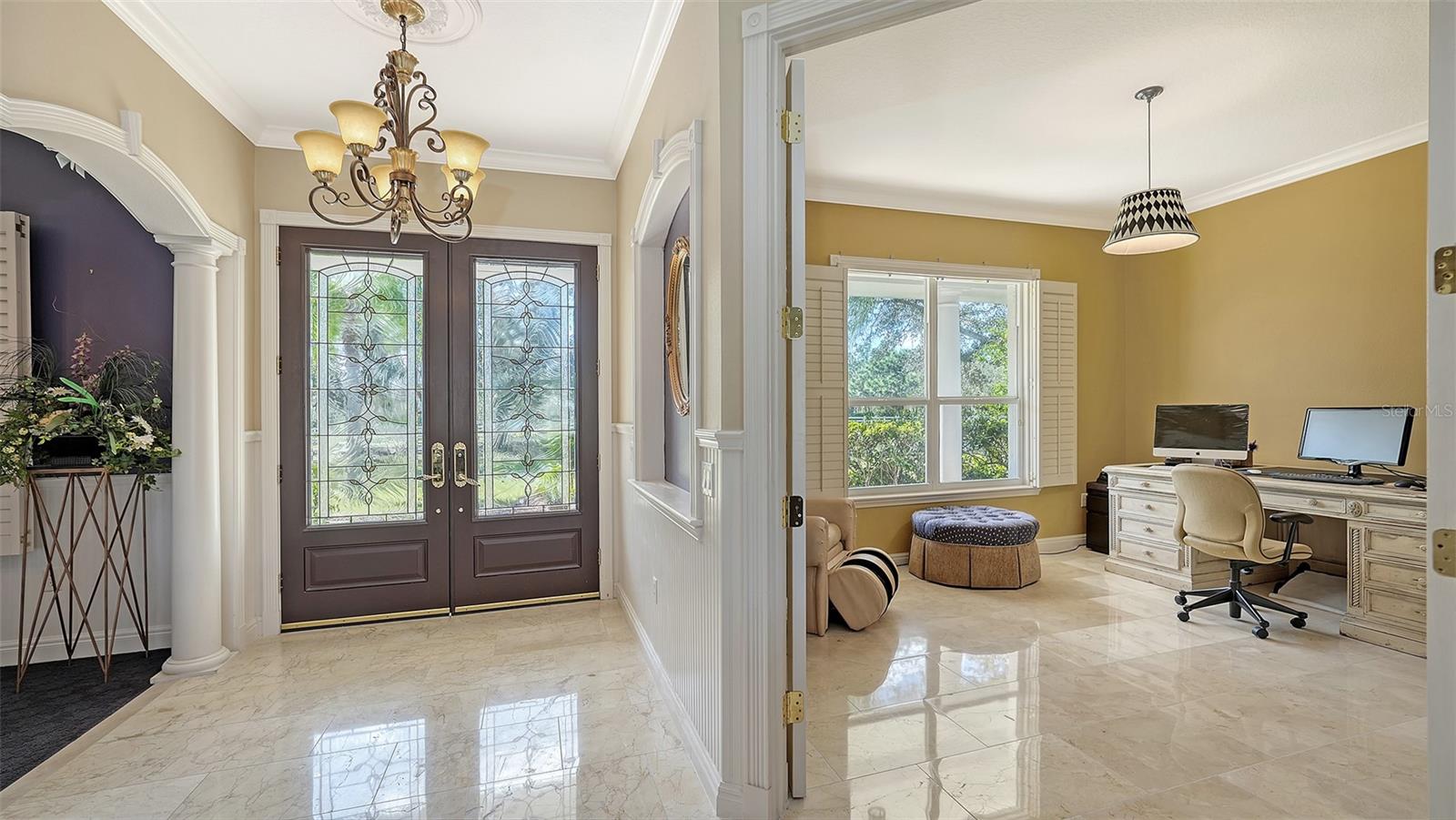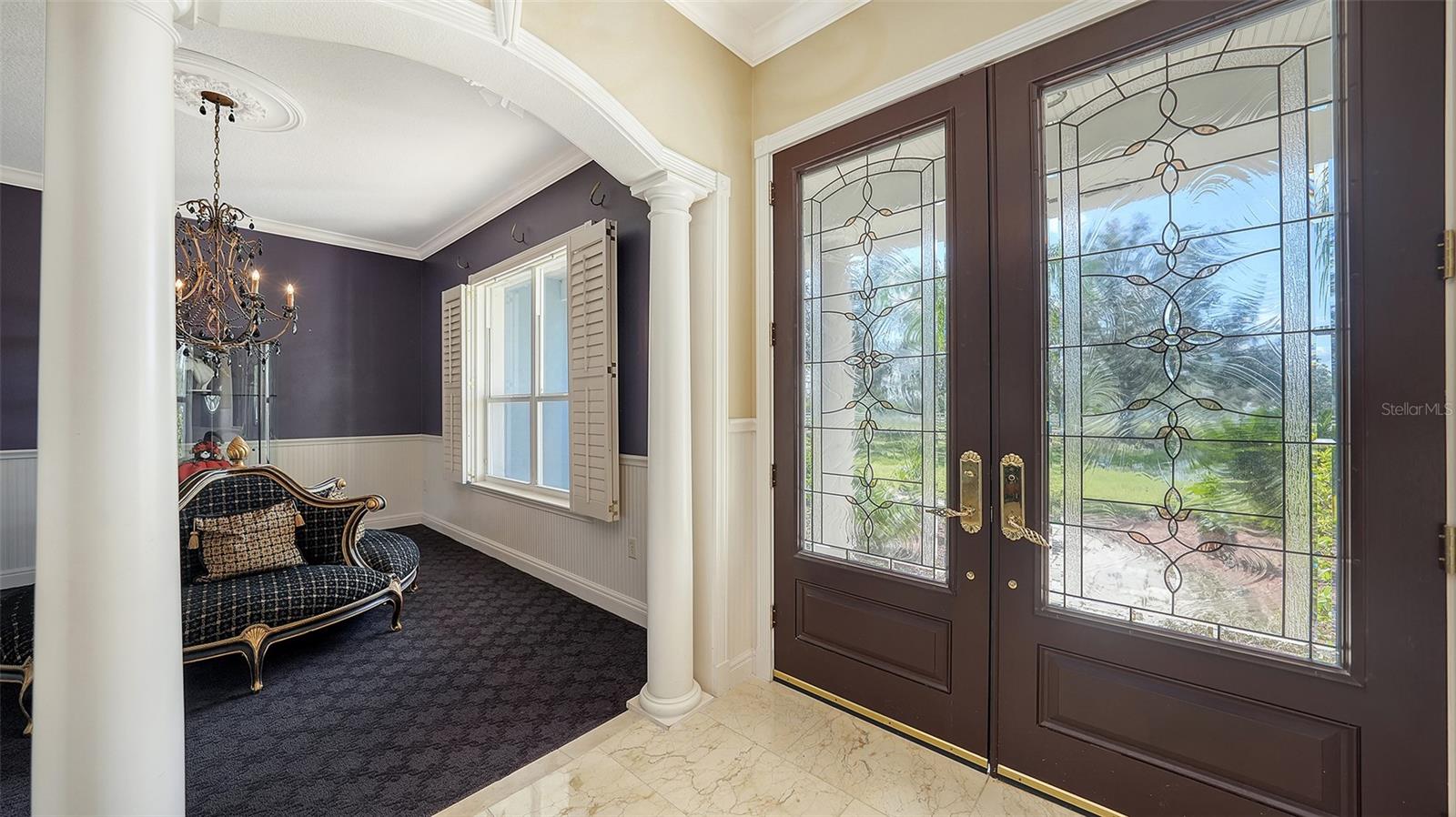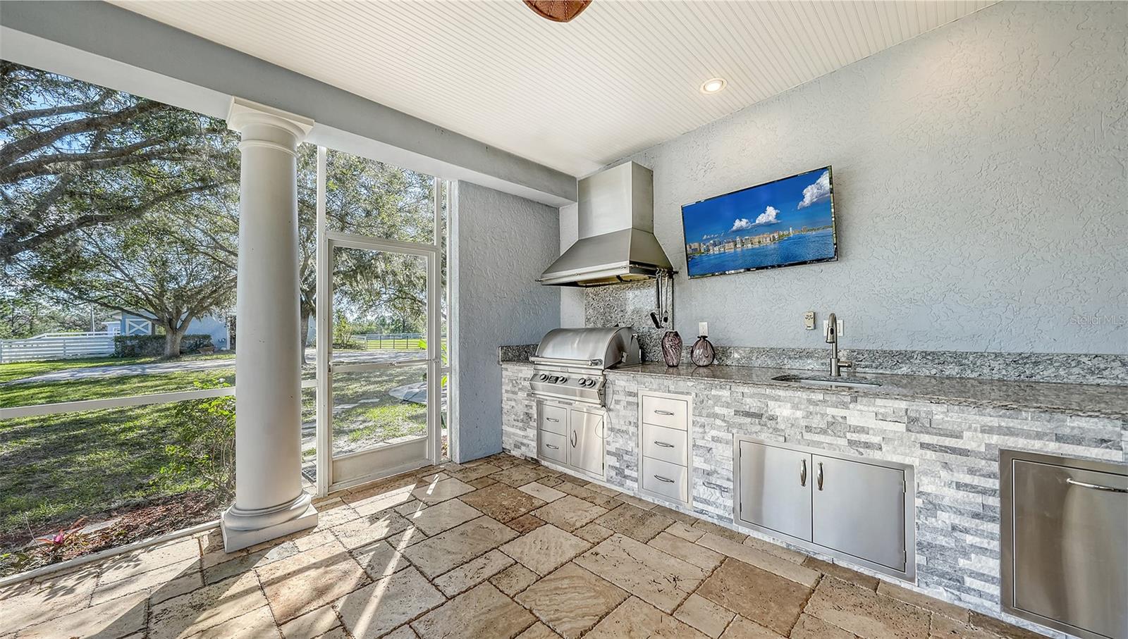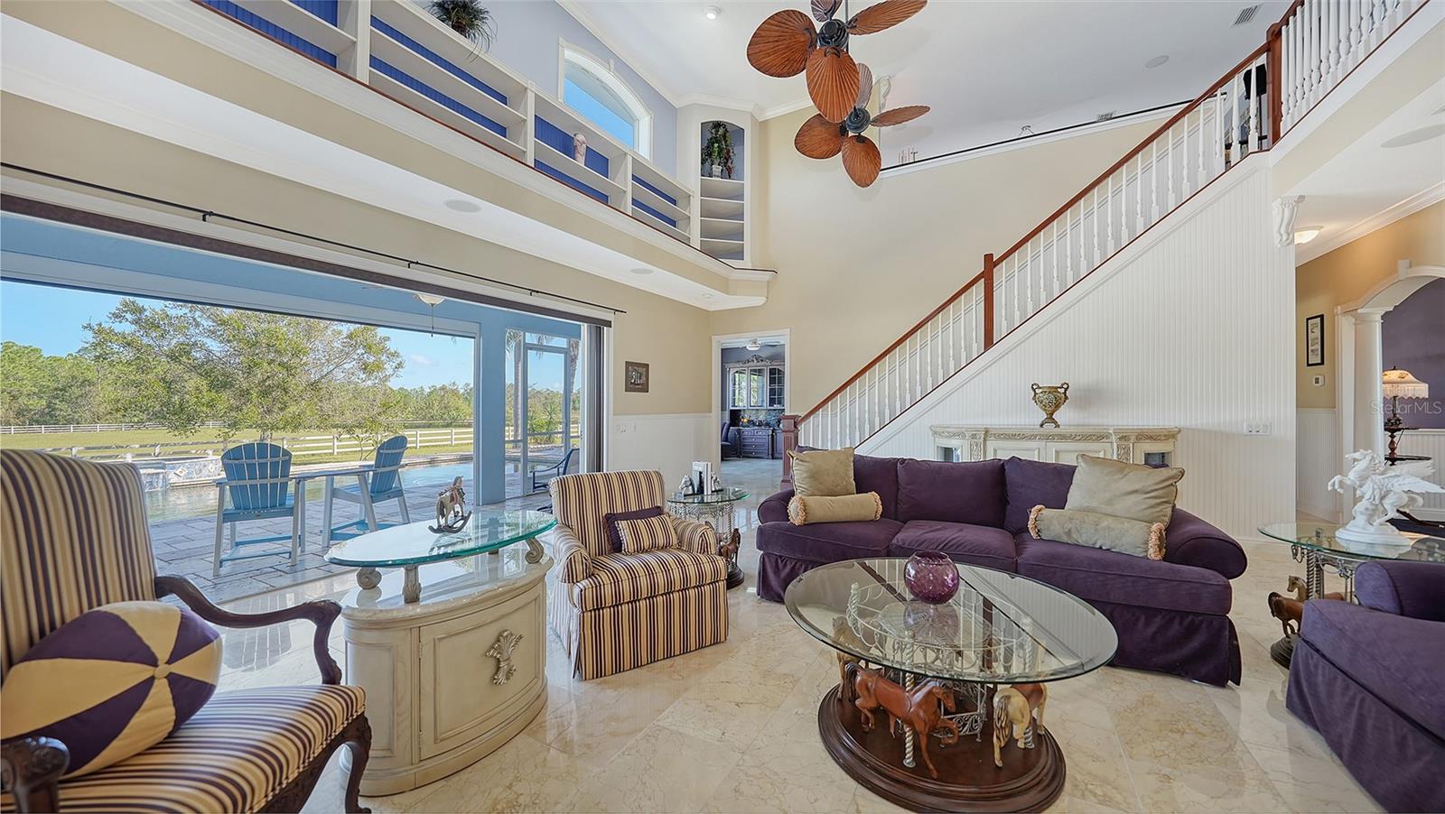 Discover 9+ acres of gated equestrian elegance in this storm-ready Panther Ridge estate, nestled in Foxwood—one of the most elite neighborhoods in this acreage enclave of Lakewood Ranch, America’s fastest-growing master-planned community. Here, luxury meets peace of mind, with Miami-Dade hurricane-rated windows, doors, and Martin garage doors throughout the home and barn, plus a 30 KW Generac generator powering essentials in both—ensuring comfort through any season. Even after three big hurricanes swept the area, this home stands strong in Zone X (no flood insurance required) at one of Manatee County’s highest elevations. Enter through the automatic gated entrance and wind past mature oaks and lush, fenced pastures to discover a masterpiece of style and function. The gourmet kitchen dazzles with handcrafted cherry cabinets, Cambria quartz counters, a 6-burner DACOR gas stove, Sub-Zero refrigerator, and Miele dishwasher—perfect for culinary enthusiasts who demand elegance and efficiency. The first-floor primary suite, with wood floors, gas fireplace, and surround sound, flows into a spa-inspired bath featuring travertine tile, a Mr. Steam shower, and a brass clawfoot tub, complemented by custom closets with locking cabinetry. The great room steals the show with 20-ft ceilings, polished marble floors, bespoke poplar built-ins, and a gas fireplace, opening to a lanai with an automatic screen for effortless indoor-outdoor living. Upstairs, a bonus room with a built-in bar spills onto a 1,000 sq ft TREX deck, offering stunning views of the barn, heated saltwater pool, and Jacuzzi. Two spacious bedrooms with walk-in closets and an equestrian-themed bath round out the upper level, all accented by solid cherry cabinetry and California shutters. Outside, entertain in style with a renovated summer kitchen on the second screened lanai, featuring granite counters, a Fire Magic grill, and a mini fridge. For equestrians and those seeking versatile space, the concrete barn offers four 12x12 stalls with an automatic fly system, RV outlets, potential for A/C with existing ductwork, and a mini bathroom. A tack room with marble floors, multiple wash racks, mats in all stalls, and a hurricane-rated automatic garage door complete this incredible space, which is also wired for internet, cable, and surround sound. The barn can also be converted into a workshop, guest residence, or parking for ATVs, cars, and more. Smart features like whole-home surround sound and a Control 4 system elevate the experience, while 15 miles of equestrian trails and proximity to Lakewood Ranch’s booming amenities—top schools, shopping, dining, and entertainment—make this location unbeatable. Just minutes from Lakewood Ranch’s vibrant town centers, this Foxwood gem offers the best of acreage living in a community that’s redefining growth in the USA. Best of all, it’s directly contiguous to The Concession Golf & Country Club, a prestigious Jack Nicklaus-designed championship course, where you can drive your own golf cart for a round of world-class golf. Watch the Panther Ridge Community video (https://pix360.com/vtour/9765/) to see why this estate blends storm-ready resilience with timeless elegance—a rare find ready to be your forever home.