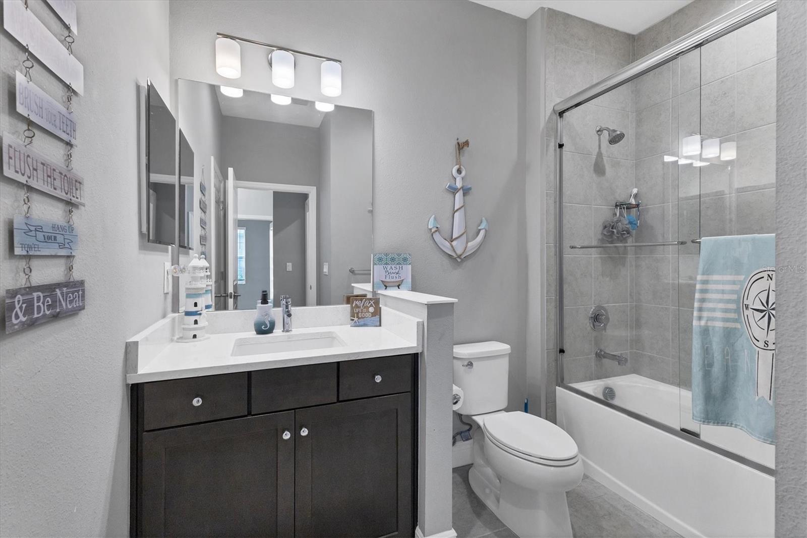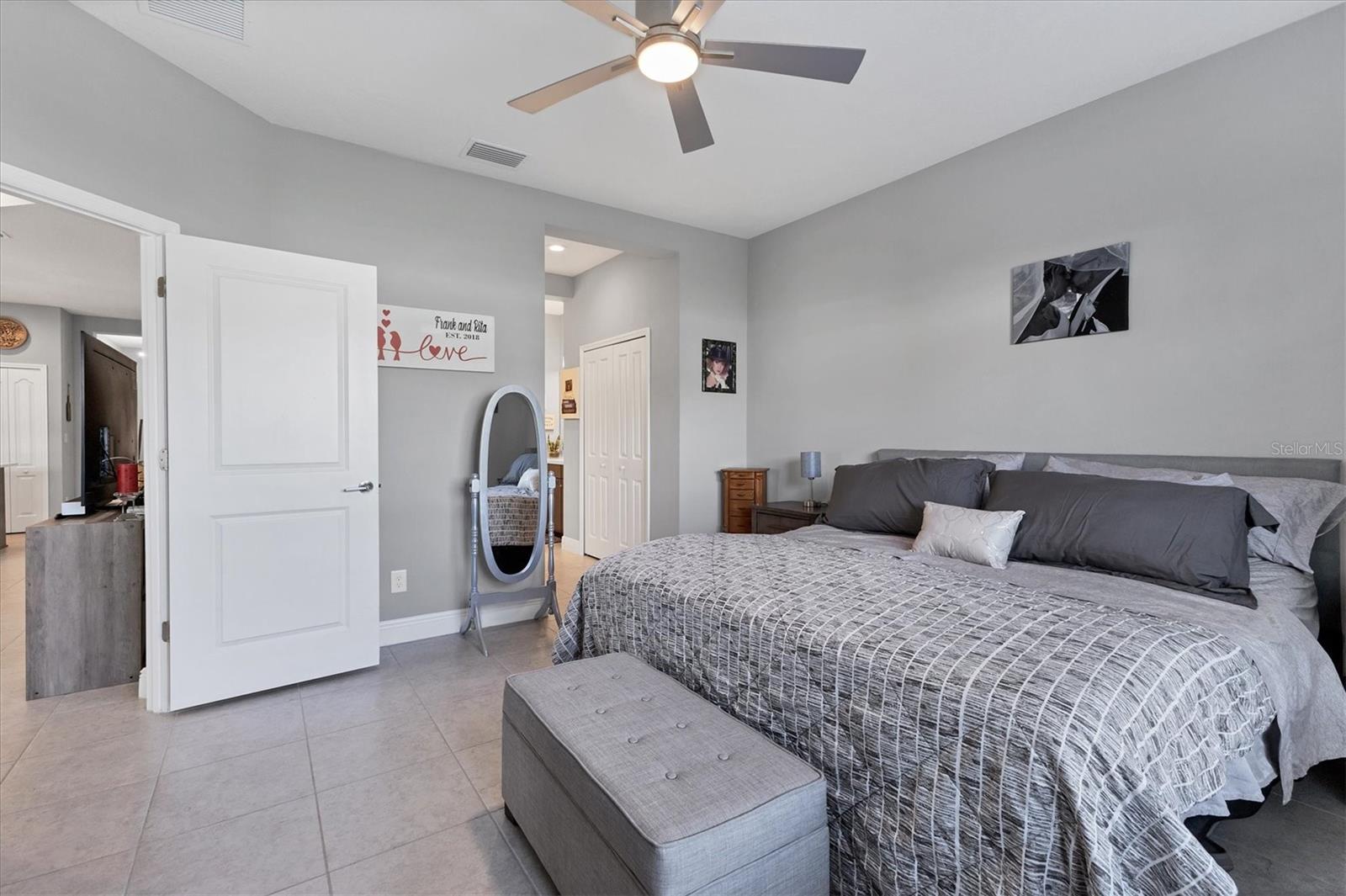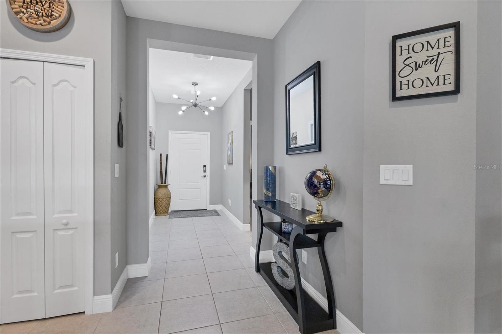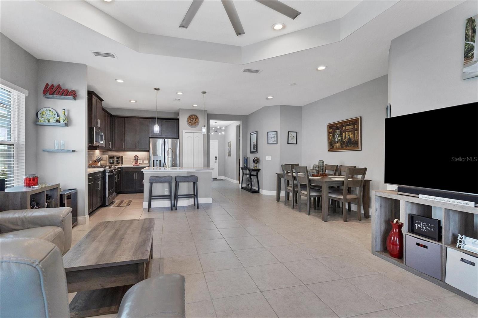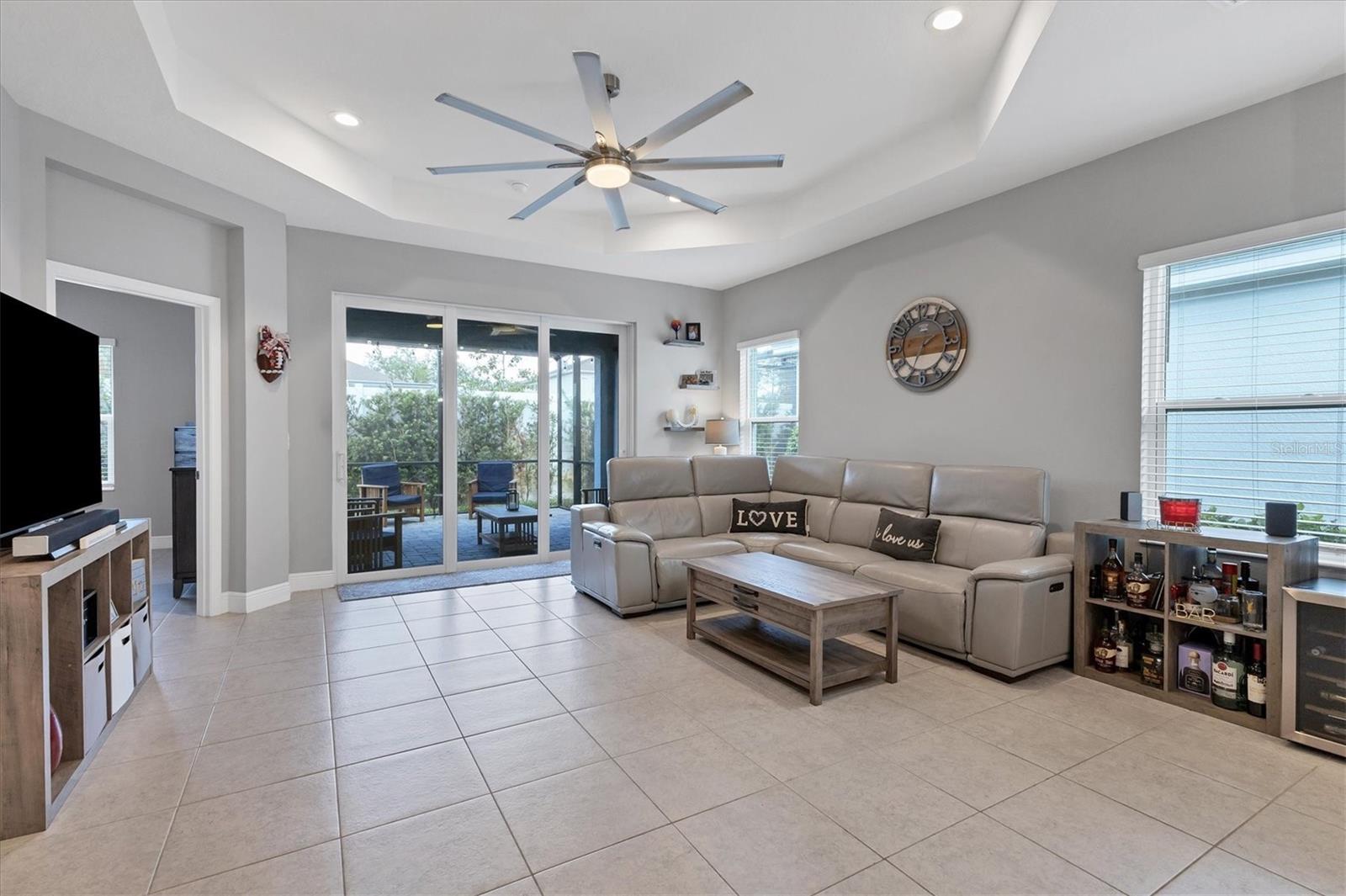 The recent PRICE IMPROVEMENT, makes this gorgeous home 2 years young home extremely affordable. Not only is it in a beautiful boutique development of only 88 homesites (Poinciana between University Parkway and State Road 70) it is in a cul-de-sac bordered by a pond, with no traffic noise from the busy street north of the subdivision. This villa offers 2 bedrooms with a den/office which is big enough to add a chifforobe if the 3rd bedroom is needed. This home sets on a premium lot with over $50,000.00 builder upgrades including impact windows and doors, upgraded gutters, an extended screen porch, tile floors throughout, gas appliances, (range, dryer, outdoor grill, and water heater) just to name a few. The entire list of thoughtful upgrades is attached to this listing in the many attachments. The kitchen has beautiful quartz countertops with a center island, tall shaker wood cabinets and stainless appliances. The great room has a tray ceiling adorned with a huge ceiling fan as it opens onto the extended screened in lanai. Soon after purchasing the owners added custom lighting and ceiling fans. The staggered build of the villas on each side provides extra privacy and quiet while cooking on the grill or enjoying morning or evening coffee. The primary bedroom and en-suite are appointed with two large walk-in closets, dual vanities, floor-to-ceiling tile in the expansive shower, and a private water closet. This home comes with the usual builders' warranties in addition to a complimentary 1-year Home-Tech warranty. Furnishings are negotiable.