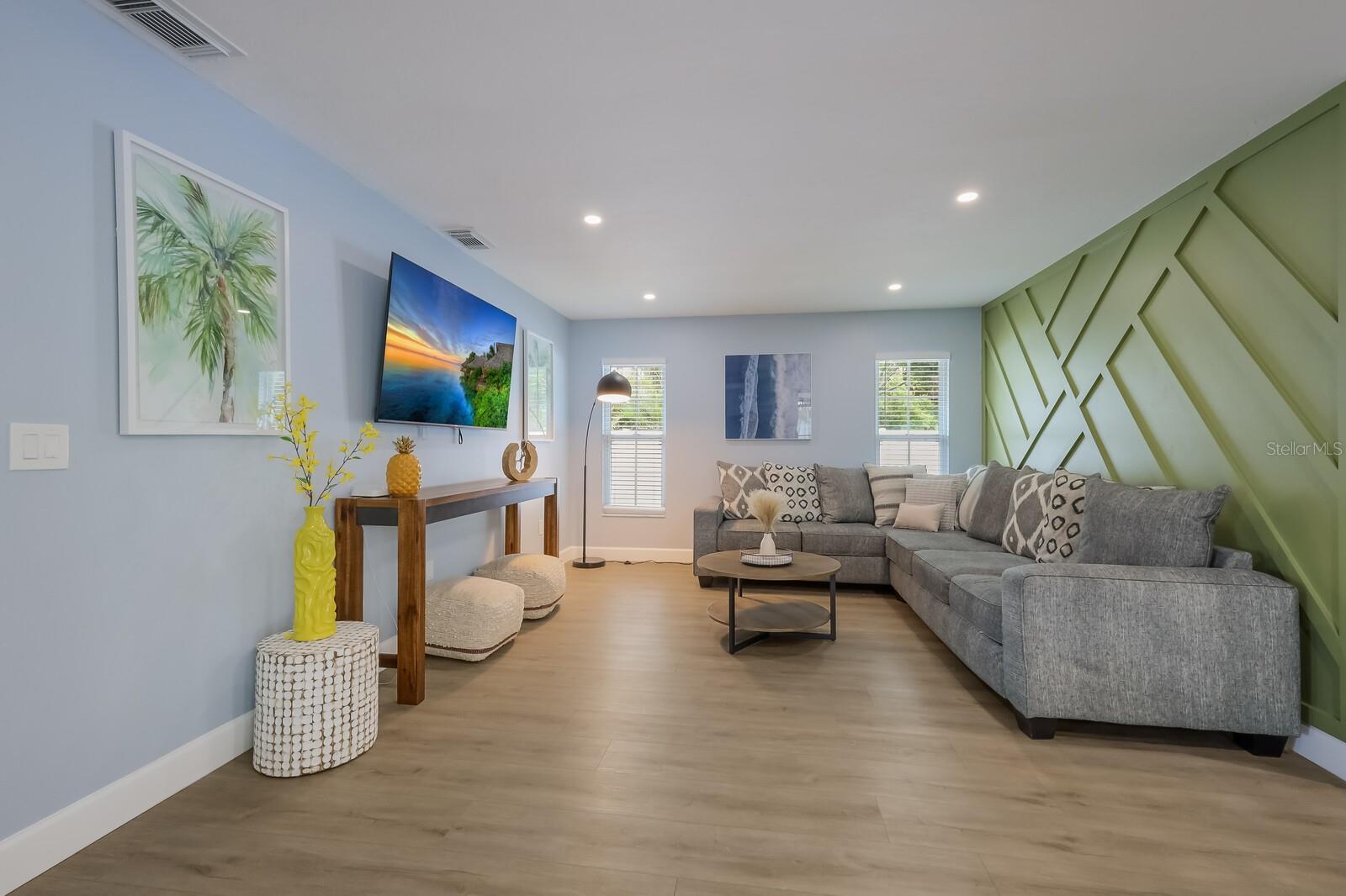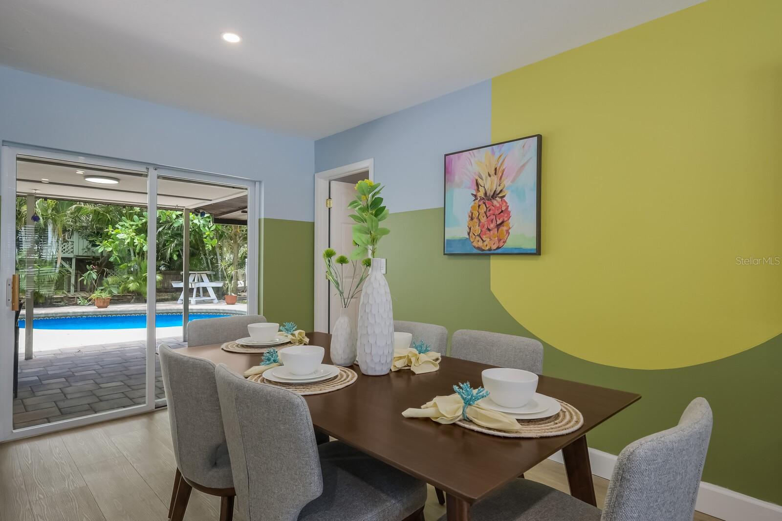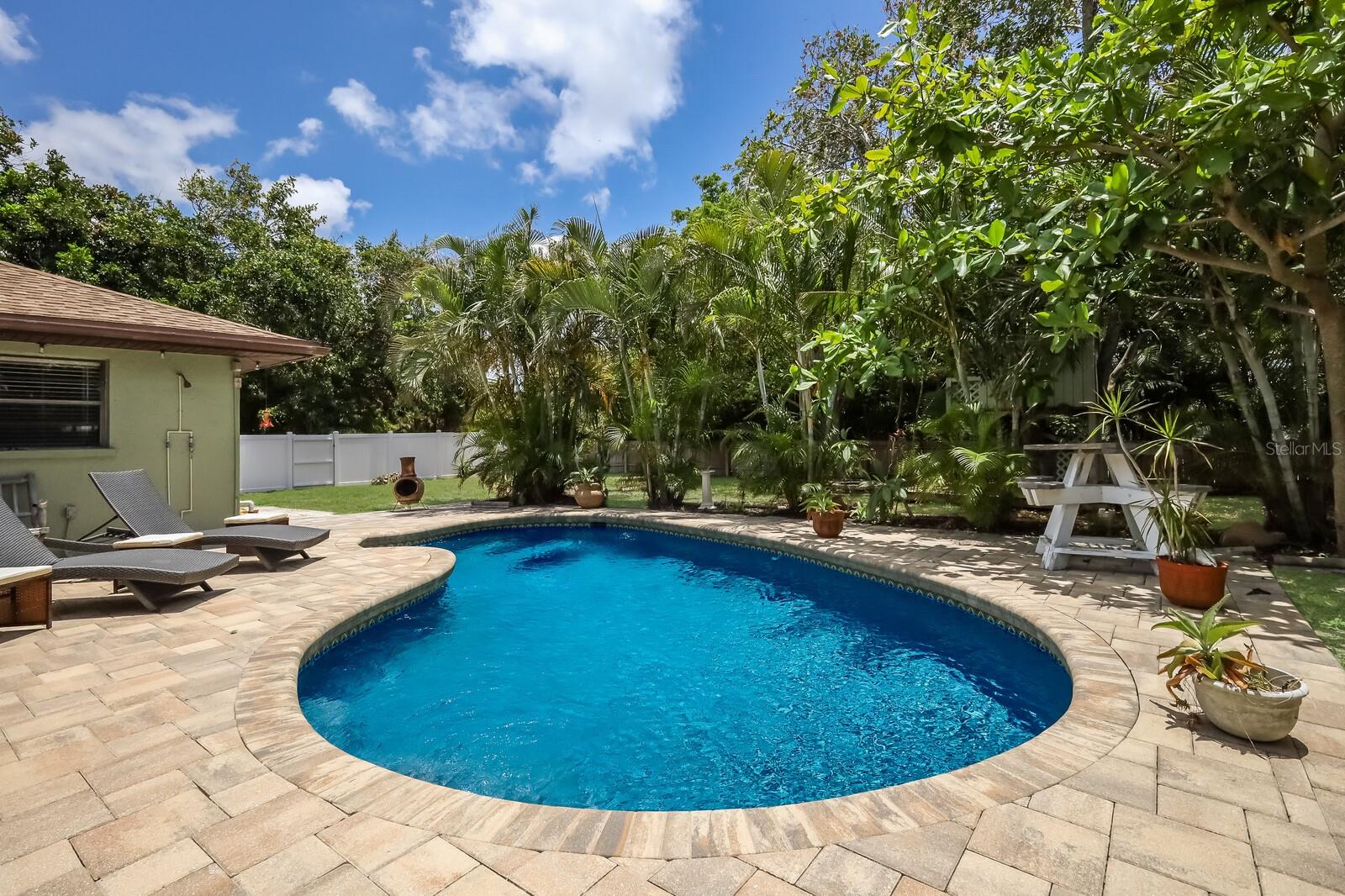 Located just five miles from our famous crystal sand beaches of Anna Maria Island you will find this stunning and newly renovated home in the sought-after neighborhood of Village Green. As you walk in the front door you will notice the wide-open split floor plan with the kitchen at the center of the home. With new cabinets, beautiful quartz countertops, and new sleek matte stainless-steel appliances, this is anybody's dream kitchen. You will find waterproof luxury vinyl flooring throughout, as well as a fresh coat of paint. As you step outside to the fully fenced backyard you will find yourself in your very own Florida oasis. Surrounding the newly resurfaced pool you will notice gorgeous pavers, and tons of lush greenery including a papaya tree, lemon tree, and an almond tree. You will also notice an adorable tree house! The roof was done in 2014, and there are no lease restrictions. Make this home your little slice of paradise before it gets snatched up! tree house has been removed due to the hurricane damage.