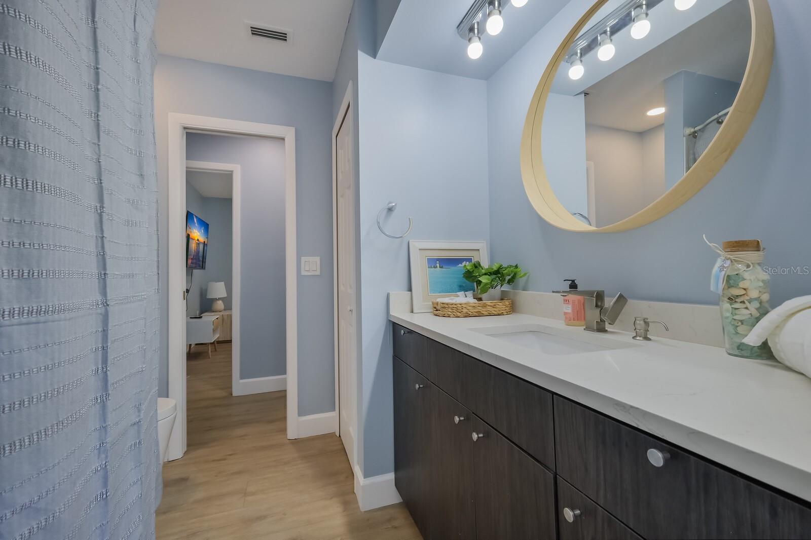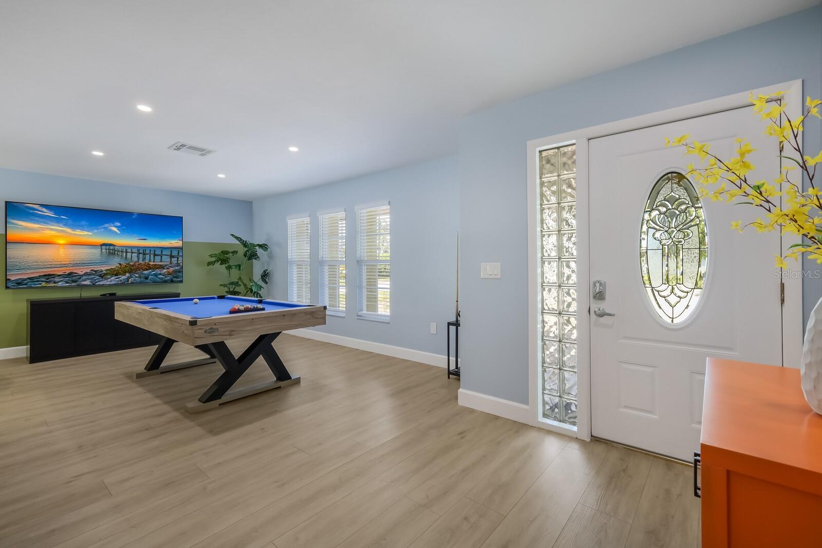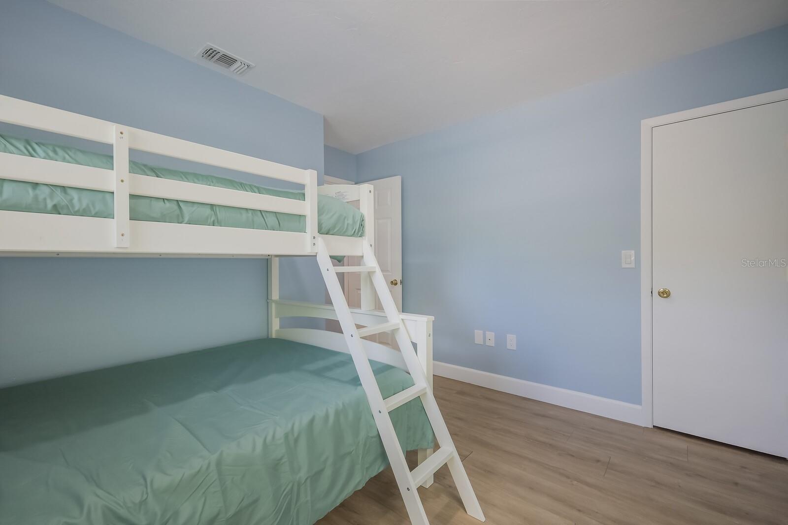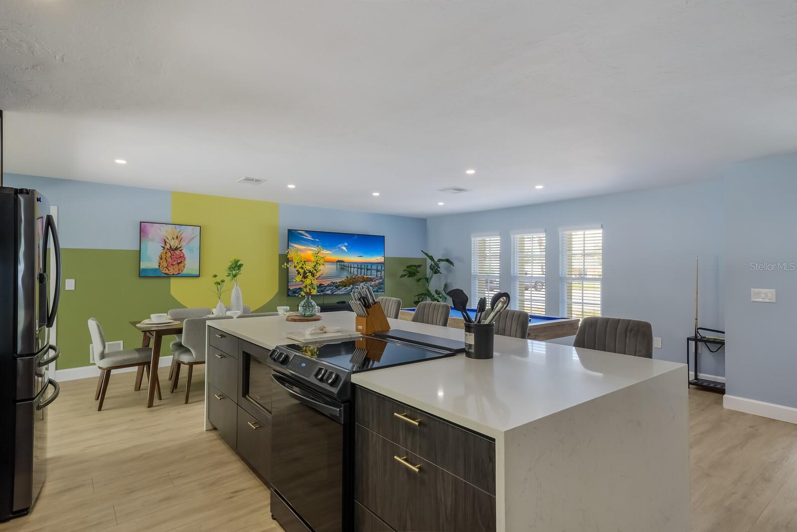Located just five miles from our famous crystal sand beaches of Anna Maria Island you will find this stunning and newly renovated home in the sought-after neighborhood of Village Green. As you walk in the front door you will notice the wide-open split floor plan with the kitchen at the center of the home. With new cabinets, beautiful quartz countertops, and new sleek matte stainless-steel appliances, this is anybody's dream kitchen. You will find waterproof luxury vinyl flooring throughout, as well as a fresh coat of paint. As you step outside to the fully fenced backyard you will find yourself in your very own Florida oasis. Surrounding the newly resurfaced pool you will notice gorgeous pavers, and tons of lush greenery including a papaya tree, lemon tree, and an almond tree. You will also notice an adorable tree house! The roof was done in 2014, and there are no lease restrictions. Make this home your little slice of paradise before it gets snatched up! tree house has been removed due to the hurricane damage.