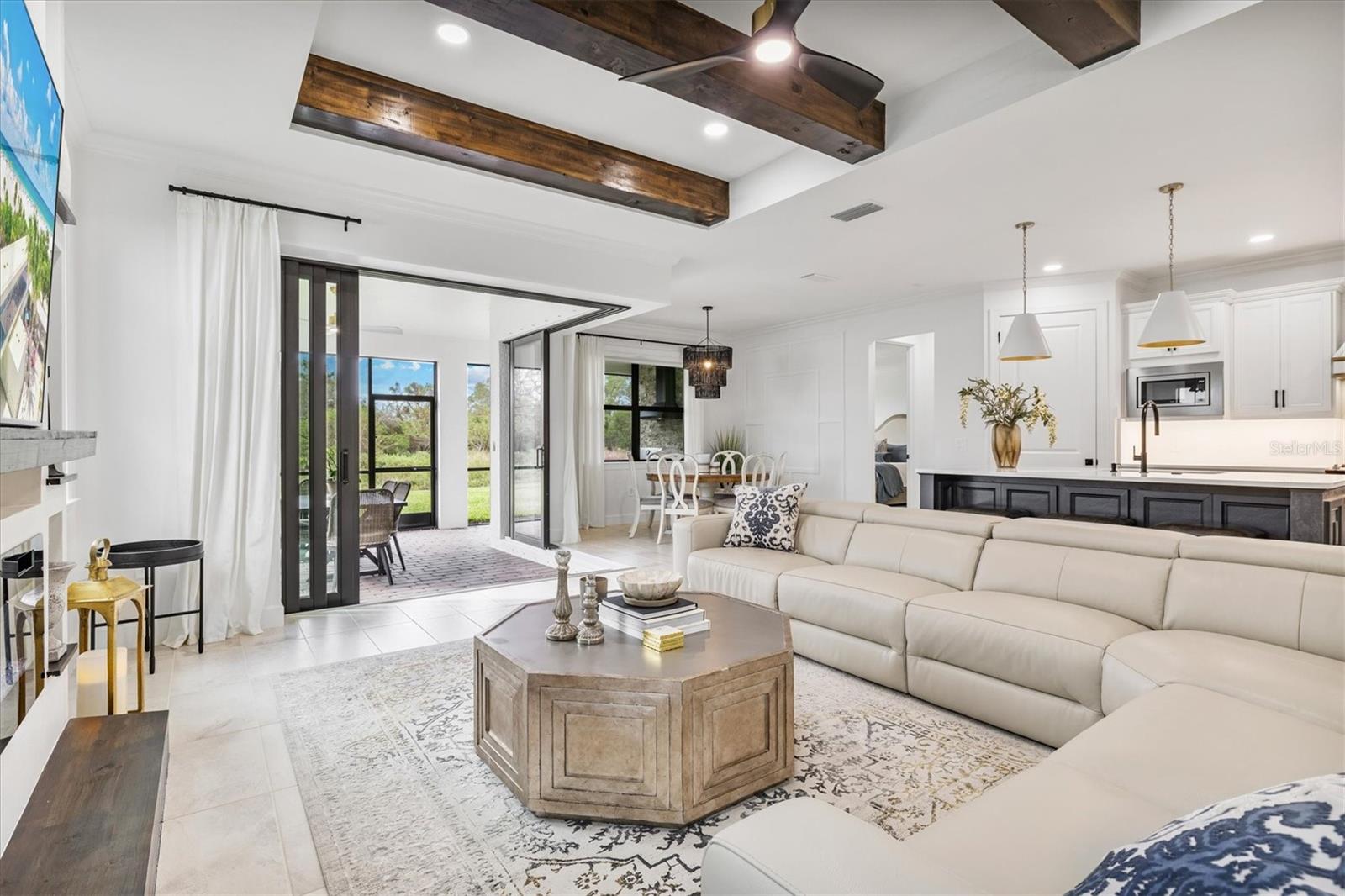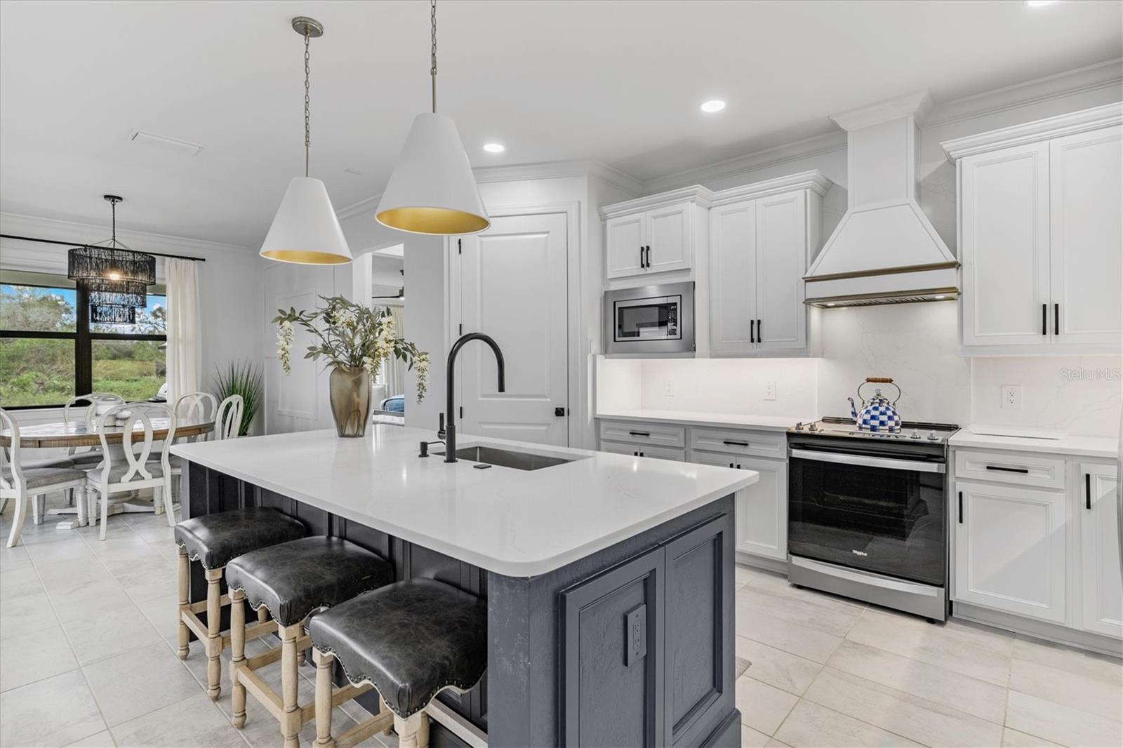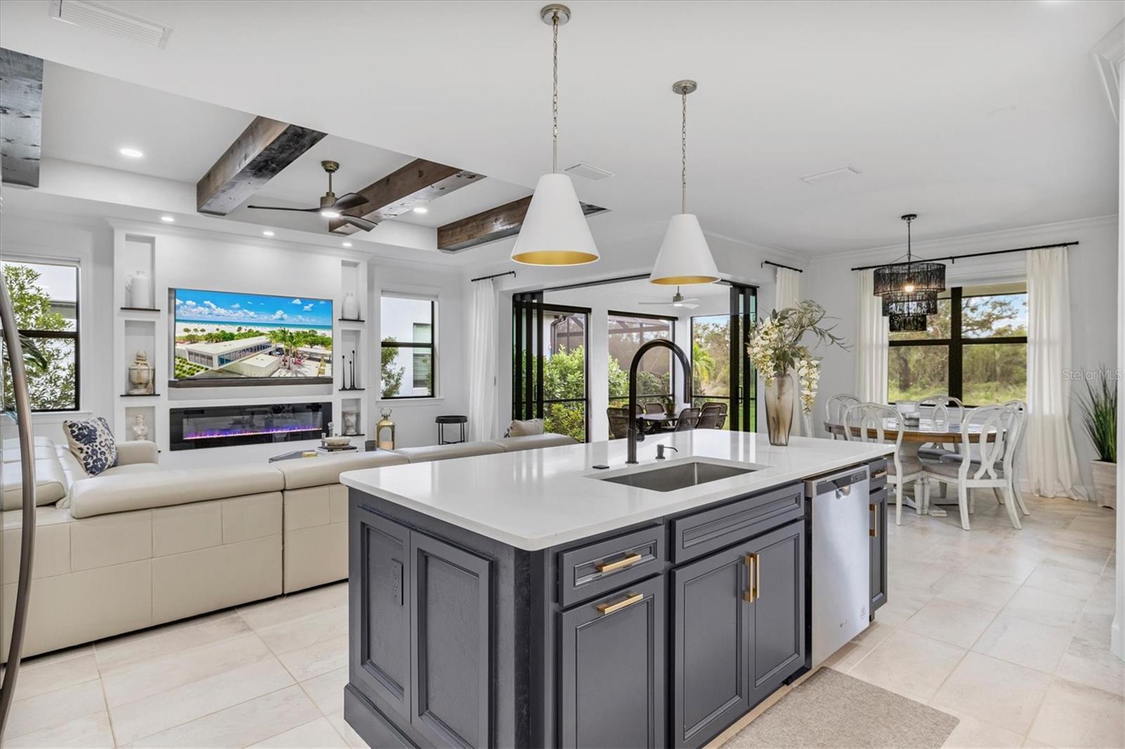 MASSIVE PRICE REDUCTION! VERY MOTIVATED SELLERS! SAPPHIRE POINT - LAKEWOOD RANCH ! A Custom Home Seeker’s Delight: Where Your Dream Home Comes to Life! Welcome to a one-of-a-kind opportunity to truly embrace living in custom crafted elegance in Sapphire Point! Boasting three bedrooms, two bathrooms, and bonus/flex room, this Mystique model by Pulte Homes, is a sanctuary of refined living, where every detail has been thoughtfully crafted to create a harmonious and elevated environment. From the versatile flex room—perfect for an office, gym, or guest retreat—to the stunning open-concept spaces, this home offers both functionality and luxury. Whether you seek quiet moments of solitude or spaces for entertainment, this home seamlessly adapts to your lifestyle, providing comfort and style at every turn. The attention to detail in this home is nothing short of extraordinary. From the moment you step inside, you'll be captivated by the bespoke elements that elevate every room. Custom wood beams grace the tray ceilings in the great room, while carefully crafted wood entertainment wall add warmth and character to the room. A cozy electric fireplace with an elegant mantle creates a welcoming focal point, while the chef-inspired kitchen features exquisite quartz countertops adorned with stunning slab backsplashes. The kitchen is a culinary enthusiast’s dream, outfitted with top-of-the-line appliances, ample counter space, and custom 42 ‘solid wood cabinetry designed for both beauty and function. The striking custom solid wood hood vent over the stove is a true statement piece, perfectly complementing the overall design. This home seamlessly combines luxurious finishes with thoughtful architectural details, making every corner a reflection of impeccable taste and vision. The primary suite is a serene retreat, offering a spacious layout and a spa-like ensuite bathroom complete with a walk-in shower, double vanities, and designer lighting fixtures. Separated from the primary suite are generously sized secondary bedrooms, each offering privacy and comfort for family members or guests. Embrace the best of indoor-outdoor living with the upgraded zero-corner slider doors that seamlessly open to a screened-in lanai. Indulging in delicious cuisine with your family and friends becomes a truly elevated experience when you have a home outdoor kitchen equipped with a grill, charbroiler, deep fryer, griddle, and exhaust hood. The true beauty of this setup lies in its combination of functionality and versatility, allowing you to cook a wide variety of dishes while providing a fantastic space for socializing, entertaining, and enjoying great food. Sapphire Point is a gated, maintenance-free community which offers residents a very active lifestyle with its large clubhouse, resort-style heated pool, state-of-the-art fitness center, playground, basketball courts, & picnic area. This is more than just a house; it’s the beginning of a new chapter. Your dream home awaits—call to schedule a showing of this one-of-a-kind home!