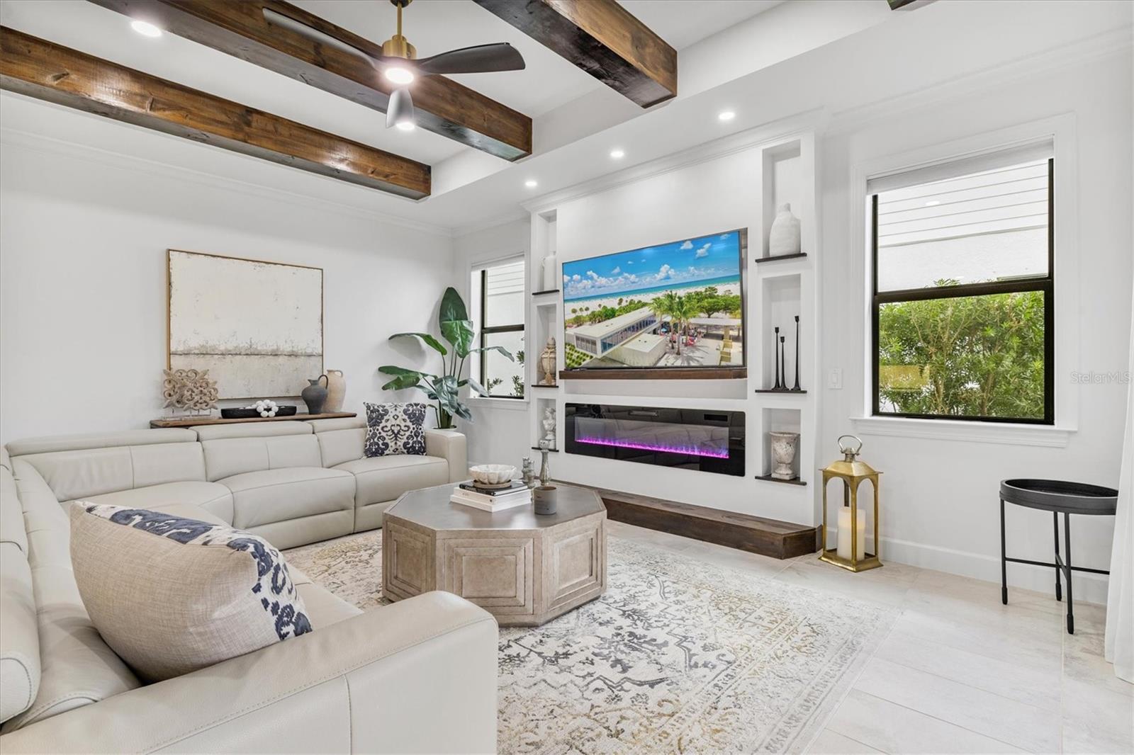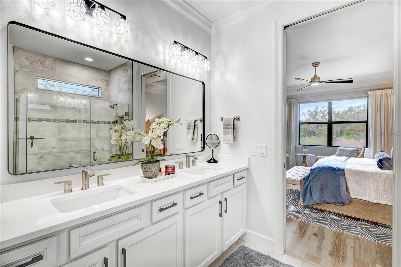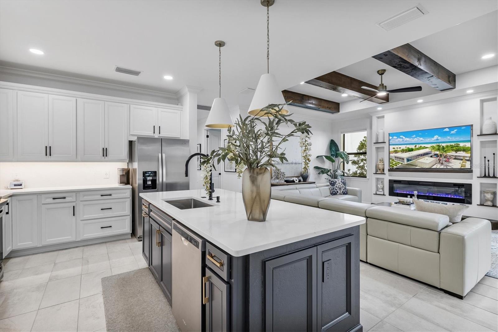 MASSIVE PRICE REDUCTION! VERY MOTIVATED SELLERS! SAPPHIRE POINT - LAKEWOOD RANCH ! A Custom Home Seeker’s Delight: Where Your Dream Home Comes to Life! Welcome to a one-of-a-kind opportunity to truly embrace living in custom crafted elegance in Sapphire Point! Boasting three bedrooms, two bathrooms, and bonus/flex room, this Mystique model by Pulte Homes, is a sanctuary of refined living, where every detail has been thoughtfully crafted to create a harmonious and elevated environment. From the versatile flex room—perfect for an office, gym, or guest retreat—to the stunning open-concept spaces, this home offers both functionality and luxury. Whether you seek quiet moments of solitude or spaces for entertainment, this home seamlessly adapts to your lifestyle, providing comfort and style at every turn. The attention to detail in this home is nothing short of extraordinary. From the moment you step inside, you'll be captivated by the bespoke elements that elevate every room. Custom wood beams grace the tray ceilings in the great room, while carefully crafted wood entertainment wall add warmth and character to the room. A cozy electric fireplace with an elegant mantle creates a welcoming focal point, while the chef-inspired kitchen features exquisite quartz countertops adorned with stunning slab backsplashes. The kitchen is a culinary enthusiast’s dream, outfitted with top-of-the-line appliances, ample counter space, and custom 42 ‘solid wood cabinetry designed for both beauty and function. The striking custom solid wood hood vent over the stove is a true statement piece, perfectly complementing the overall design. This home seamlessly combines luxurious finishes with thoughtful architectural details, making every corner a reflection of impeccable taste and vision. The primary suite is a serene retreat, offering a spacious layout and a spa-like ensuite bathroom complete with a walk-in shower, double vanities, and designer lighting fixtures. Separated from the primary suite are generously sized secondary bedrooms, each offering privacy and comfort for family members or guests. Embrace the best of indoor-outdoor living with the upgraded zero-corner slider doors that seamlessly open to a screened-in lanai. Indulging in delicious cuisine with your family and friends becomes a truly elevated experience when you have a home outdoor kitchen equipped with a grill, charbroiler, deep fryer, griddle, and exhaust hood. The true beauty of this setup lies in its combination of functionality and versatility, allowing you to cook a wide variety of dishes while providing a fantastic space for socializing, entertaining, and enjoying great food. Sapphire Point is a gated, maintenance-free community which offers residents a very active lifestyle with its large clubhouse, resort-style heated pool, state-of-the-art fitness center, playground, basketball courts, & picnic area. This is more than just a house; it’s the beginning of a new chapter. Your dream home awaits—call to schedule a showing of this one-of-a-kind home!
