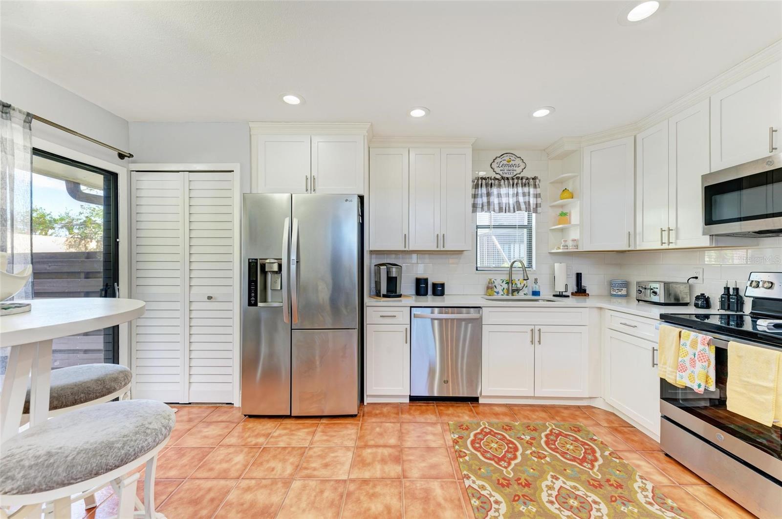 Welcome to this beautifully updated two-bedroom, two-bath condo located in West Bradenton being offered TURNKEY FURNISHED, where peace of mind meets modern living. Grab your toothbrush and clothes because everything else in this condo is staying. This condo is high and dry, ensuring you won’t have to worry about storms. Step inside to discover stunning luxury vinyl plank flooring that flows throughout, complemented by elegant quartz countertops, and white wood cabinets featuring soft-close doors. The kitchen is a chef's dream with a stylish tile backsplash and a farmhouse sink, along with all-new stainless steel appliances. The hot water heater is brand new, and the AC system is just a few years old, providing reliable comfort and efficiency. A NEW ROOF adds to the home's value and durability. Both large bedrooms are generously sized, and the beautifully updated bathrooms offer a touch of luxury. Enjoy your own private courtyard area, perfect for private and quiet dining and relaxation, surrounded by a very private backyard and Extended Lanai. This meticulously renovated condo is attractively priced and offers a fantastic opportunity to embrace the Florida lifestyle. Located just minutes from the most beautiful beaches, as well as a variety of shopping and dining options. This home is perfect for those looking to enjoy all that Florida has to offer. Don’t miss out on this incredible opportunity! An amazing 55+ Community!!!