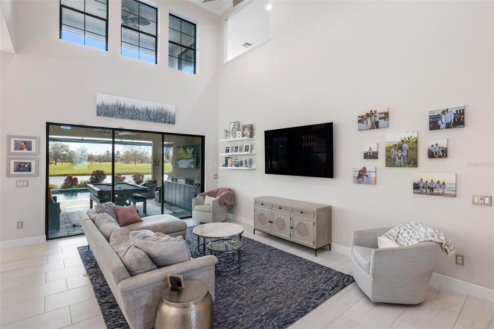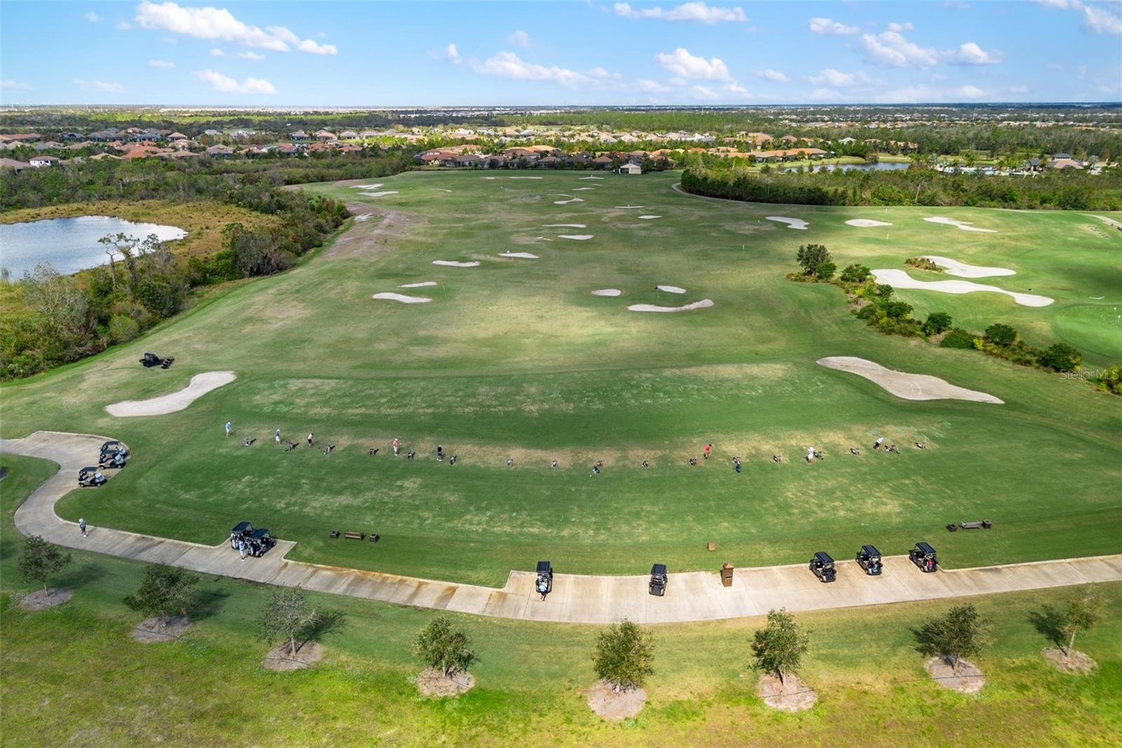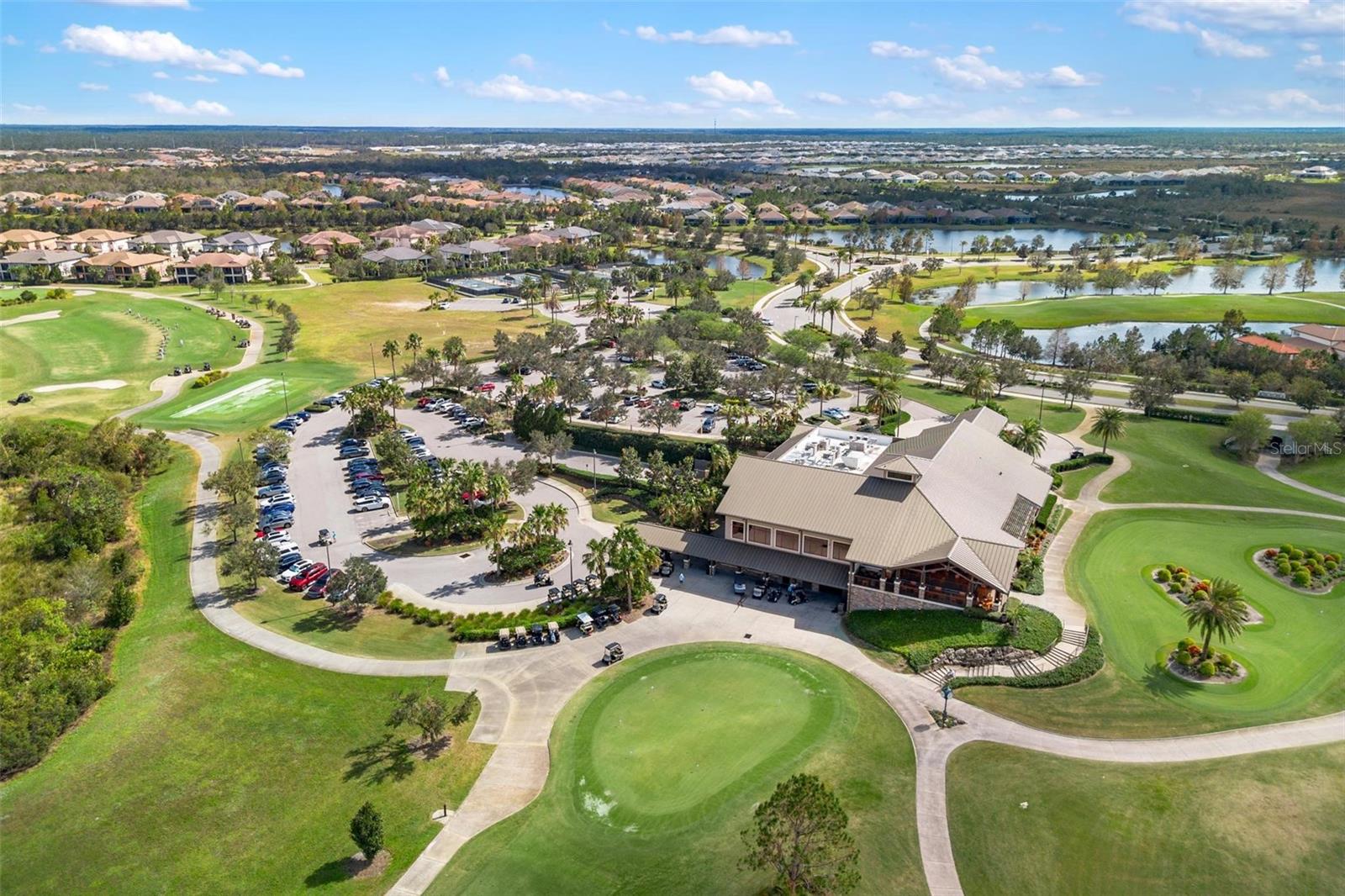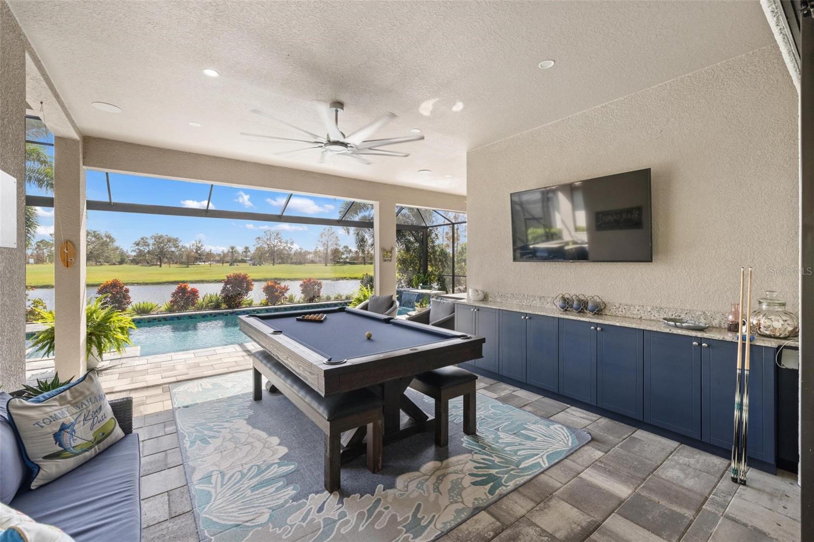 Discover an exceptional lifestyle in this breathtaking 5-bedroom, 3.5-bathroom estate located within the exclusive gated community of Lakewood Ranch Country Club East. Combining timeless elegance with modern comforts, this custom-built home is set on a breathtaking cul-de-sac lot with expansive lake and golf course views. Step inside and be welcomed by an open floor plan with soaring 20-foot ceilings in the family room, allowing natural light to flood the space. The gourmet kitchen is a chef’s paradise, complete with custom white cabinetry, extra-thick quartz countertops, high-end Wolf stainless steel appliances, and a massive walk-in pantry with coffee bar. A spacious island and extended breakfast bar provide ample seating and gathering space, while the large dining area offers an ideal spot for intimate meals with stunning views. Perfect for both entertaining and relaxation, the living area flows seamlessly to the extended covered lanai for true indoor - outdoor living. This oasis features a fully equipped grill, kitchen and bar, perfect for alfresco dining or summer gatherings. The saltwater pool and spa, set within a panoramic screened enclosure, overlook pristine lake and golf course views, creating a resort-style ambiance. The convenient pool bath and expansive outdoor area make it an entertainer’s dream. Lawn care and landscaping included in fees. The main level hosts the luxurious and spacious primary suite, a private retreat complete with wood flooring and serene lake views. The ensuite bath features dual vanities with center glam-station, a large walk-in shower, and dual walk-in closets with custom built-ins, providing a spa-like experience at home. A guest suite and spacious home office/formal dining, both with wood floors, round out the main floor. Upstairs, an oversized bonus room offers endless possibilities for a media room, gym, or playroom, adding versatility to the floor plan, with a wet bar and balcony offering additional entertainment options. Three additional guest bedrooms with walk-in closets provide ample accommodation for family or visitors, with one featuring a private front balcony. Additional highlights include a split garage, 2-car and a single, with ample storage, a tankless water heater, gas appliances for energy efficiency, and elegant tile flooring throughout the common areas. The wood floors in the primary bedroom, guest suite, and office add warmth and elegance, underscoring the home’s attention to detail. Countless options and upgrades are included in this 2020 Cardel-built Palazo floor plan. Living in Lakewood Ranch Country Club East offers a wealth of amenities beyond your doorstep. Residents enjoy exclusive access to amenities including The Retreat, with a resort-style pool, clubhouse and fitness center. Club members enjoy easy access to The Lodge just steps away by cart path, known for its rustic-ranch style architecture and casual yet sleek bar and dining scene. It houses an open concept kitchen, a private dining room, second pro shop, and an outdoor patio with a view of the Royal Lakes Golf Course.Country Club East’s prime location within Lakewood Ranch provides convenient access to Main Street and Waterside shopping, dining, and entertainment options. Sarasota’s award-winning beaches, cultural venues, and attractions offer even more to explore.
