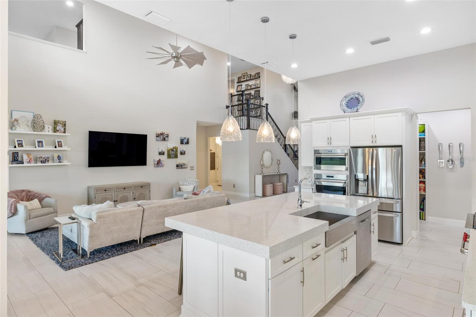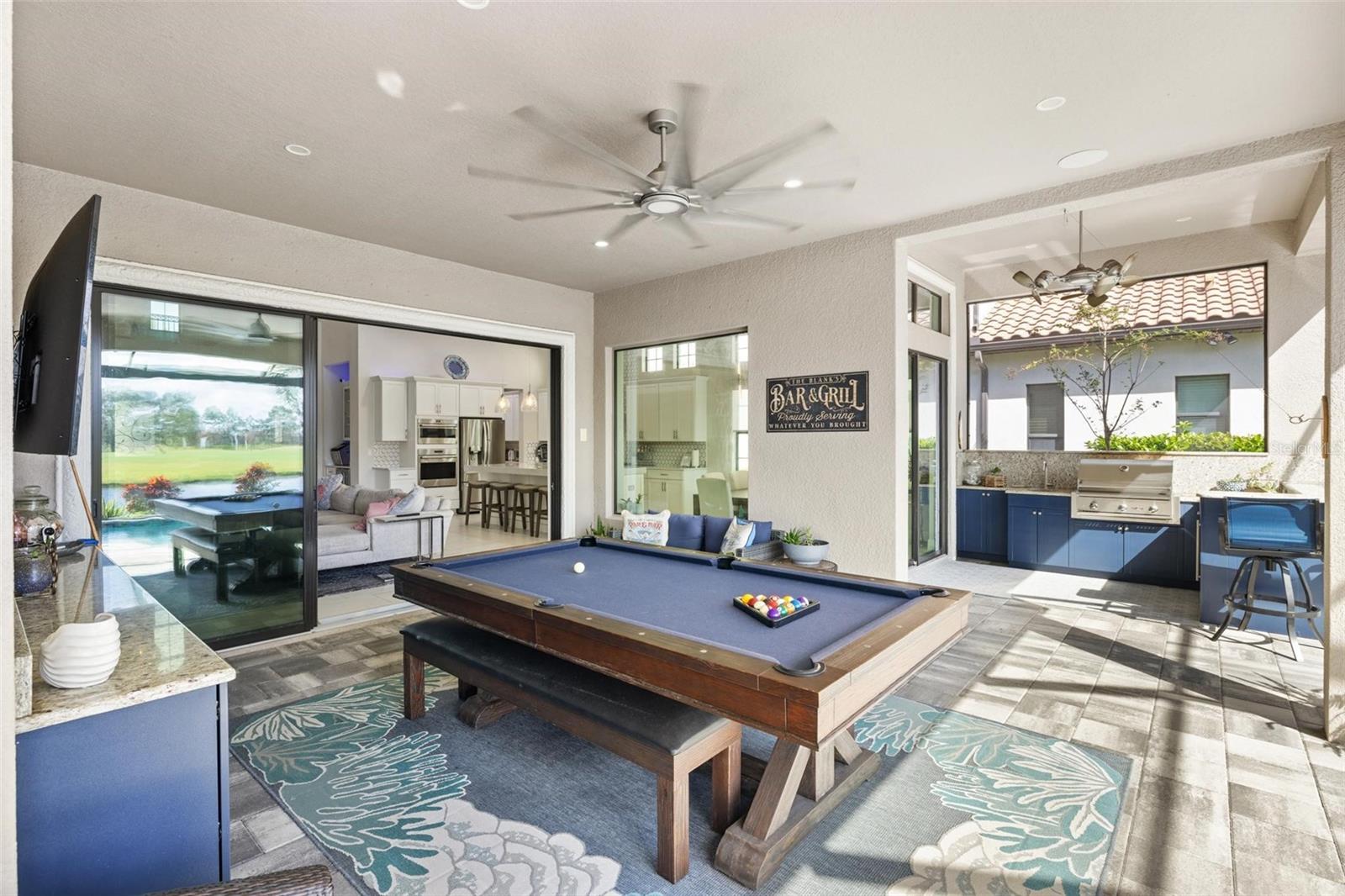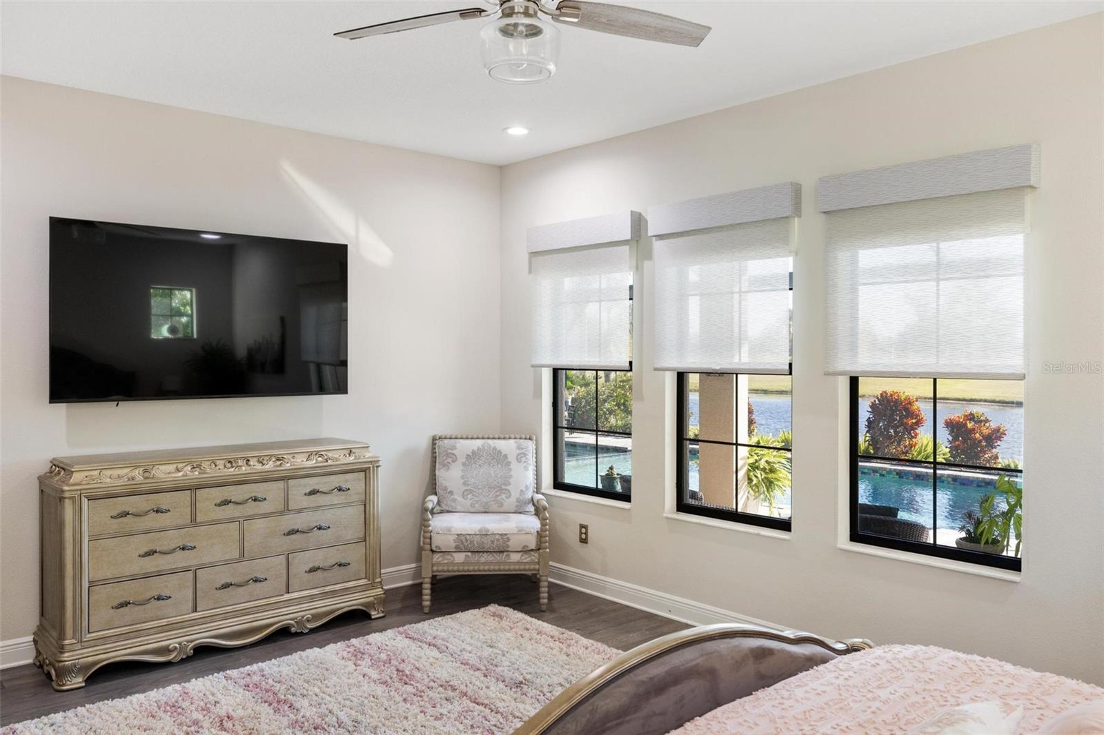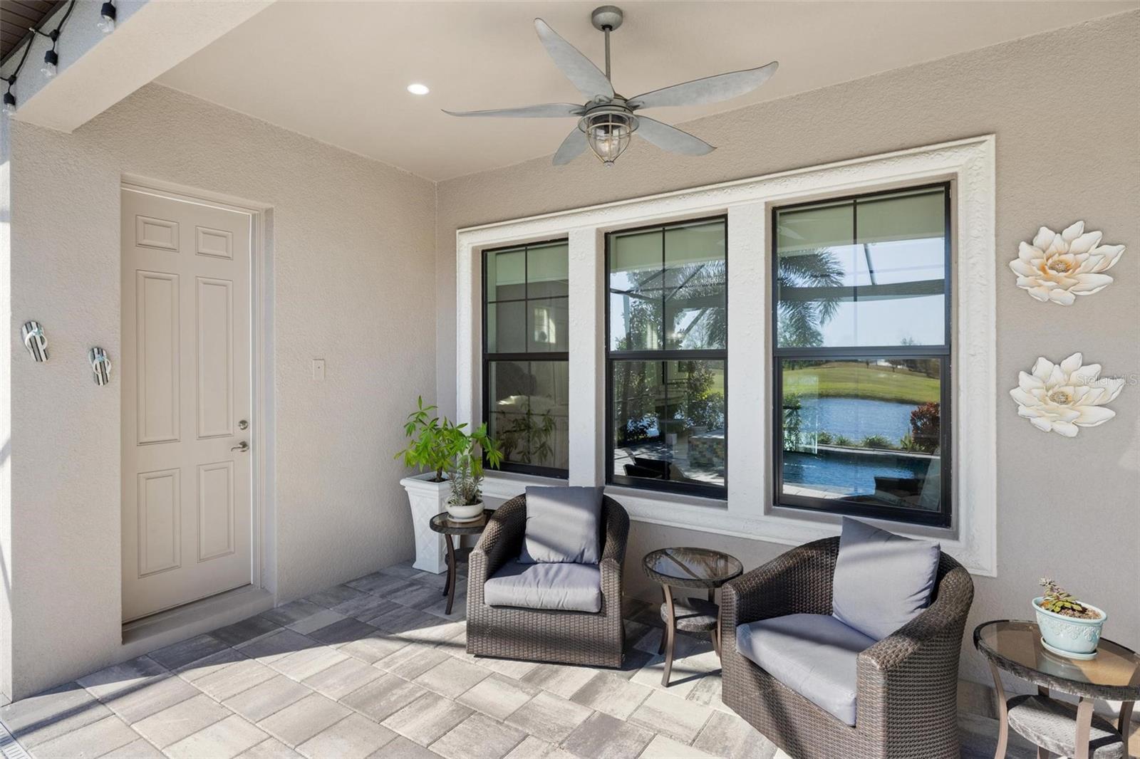 Discover an exceptional lifestyle in this breathtaking 5-bedroom, 3.5-bathroom estate located within the exclusive gated community of Lakewood Ranch Country Club East. Combining timeless elegance with modern comforts, this custom-built home is set on a breathtaking cul-de-sac lot with expansive lake and golf course views. Step inside and be welcomed by an open floor plan with soaring 20-foot ceilings in the family room, allowing natural light to flood the space. The gourmet kitchen is a chef’s paradise, complete with custom white cabinetry, extra-thick quartz countertops, high-end Wolf stainless steel appliances, and a massive walk-in pantry with coffee bar. A spacious island and extended breakfast bar provide ample seating and gathering space, while the large dining area offers an ideal spot for intimate meals with stunning views. Perfect for both entertaining and relaxation, the living area flows seamlessly to the extended covered lanai for true indoor - outdoor living. This oasis features a fully equipped grill, kitchen and bar, perfect for alfresco dining or summer gatherings. The saltwater pool and spa, set within a panoramic screened enclosure, overlook pristine lake and golf course views, creating a resort-style ambiance. The convenient pool bath and expansive outdoor area make it an entertainer’s dream. Lawn care and landscaping included in fees. The main level hosts the luxurious and spacious primary suite, a private retreat complete with wood flooring and serene lake views. The ensuite bath features dual vanities with center glam-station, a large walk-in shower, and dual walk-in closets with custom built-ins, providing a spa-like experience at home. A guest suite and spacious home office/formal dining, both with wood floors, round out the main floor. Upstairs, an oversized bonus room offers endless possibilities for a media room, gym, or playroom, adding versatility to the floor plan, with a wet bar and balcony offering additional entertainment options. Three additional guest bedrooms with walk-in closets provide ample accommodation for family or visitors, with one featuring a private front balcony. Additional highlights include a split garage, 2-car and a single, with ample storage, a tankless water heater, gas appliances for energy efficiency, and elegant tile flooring throughout the common areas. The wood floors in the primary bedroom, guest suite, and office add warmth and elegance, underscoring the home’s attention to detail. Countless options and upgrades are included in this 2020 Cardel-built Palazo floor plan. Living in Lakewood Ranch Country Club East offers a wealth of amenities beyond your doorstep. Residents enjoy exclusive access to amenities including The Retreat, with a resort-style pool, clubhouse and fitness center. Club members enjoy easy access to The Lodge just steps away by cart path, known for its rustic-ranch style architecture and casual yet sleek bar and dining scene. It houses an open concept kitchen, a private dining room, second pro shop, and an outdoor patio with a view of the Royal Lakes Golf Course.Country Club East’s prime location within Lakewood Ranch provides convenient access to Main Street and Waterside shopping, dining, and entertainment options. Sarasota’s award-winning beaches, cultural venues, and attractions offer even more to explore.