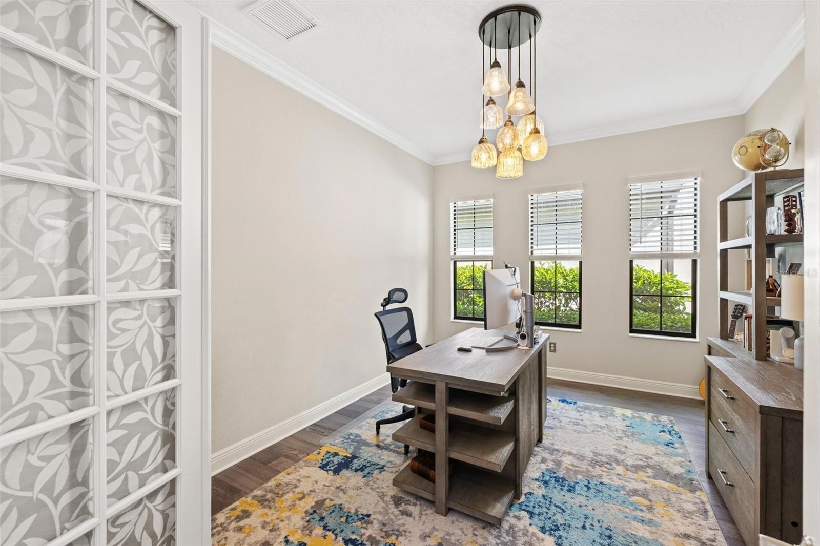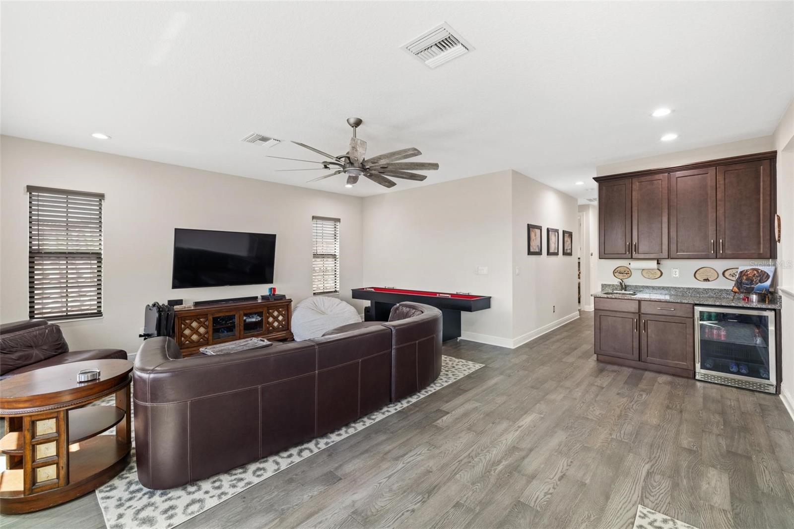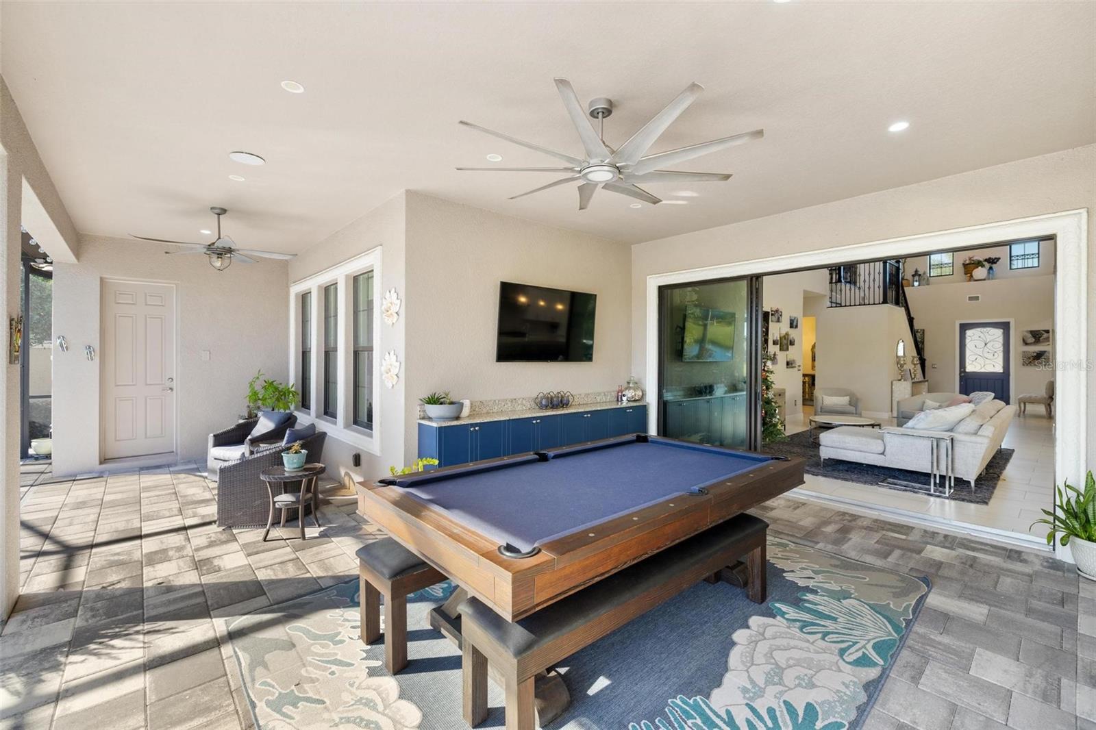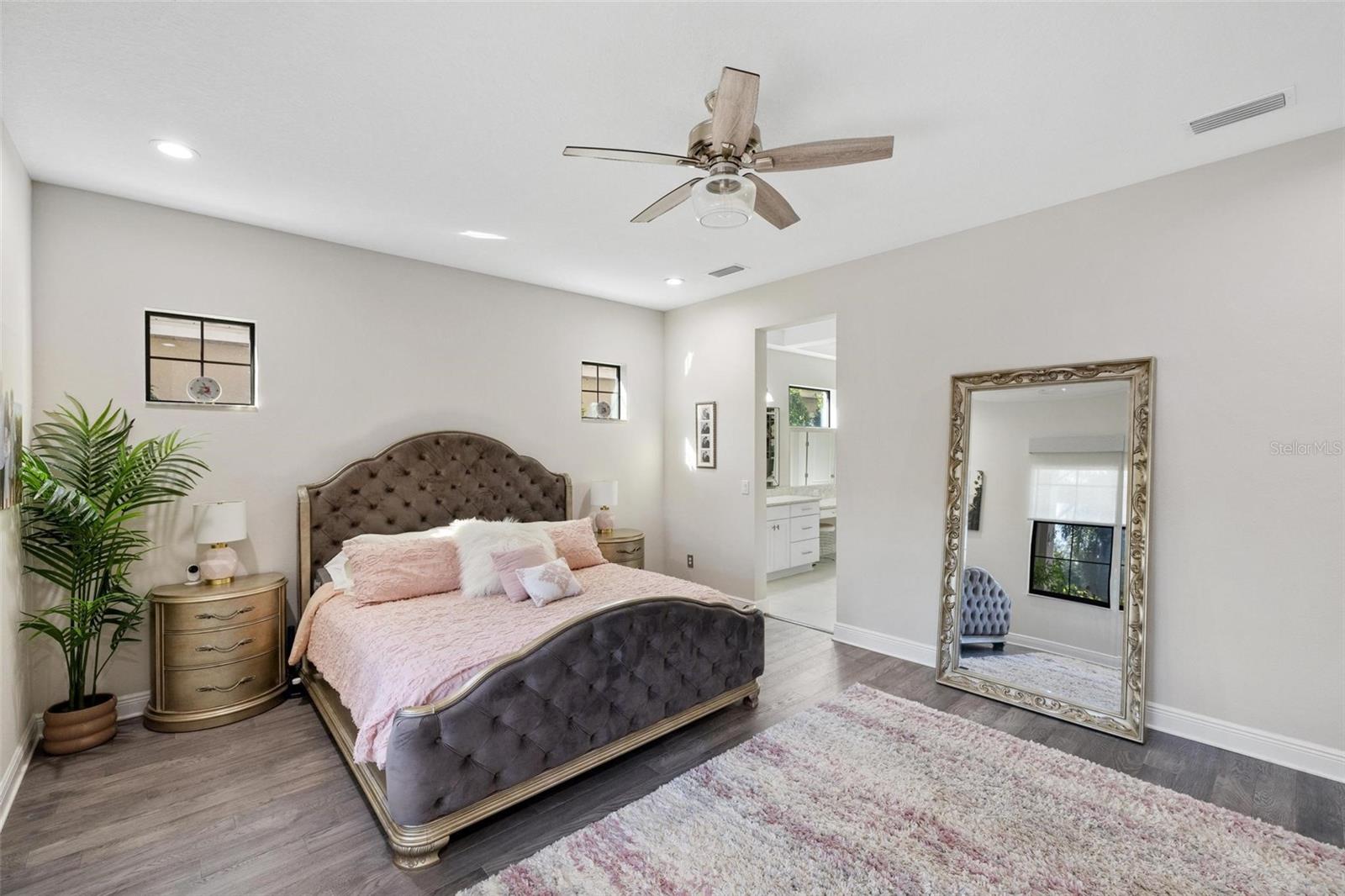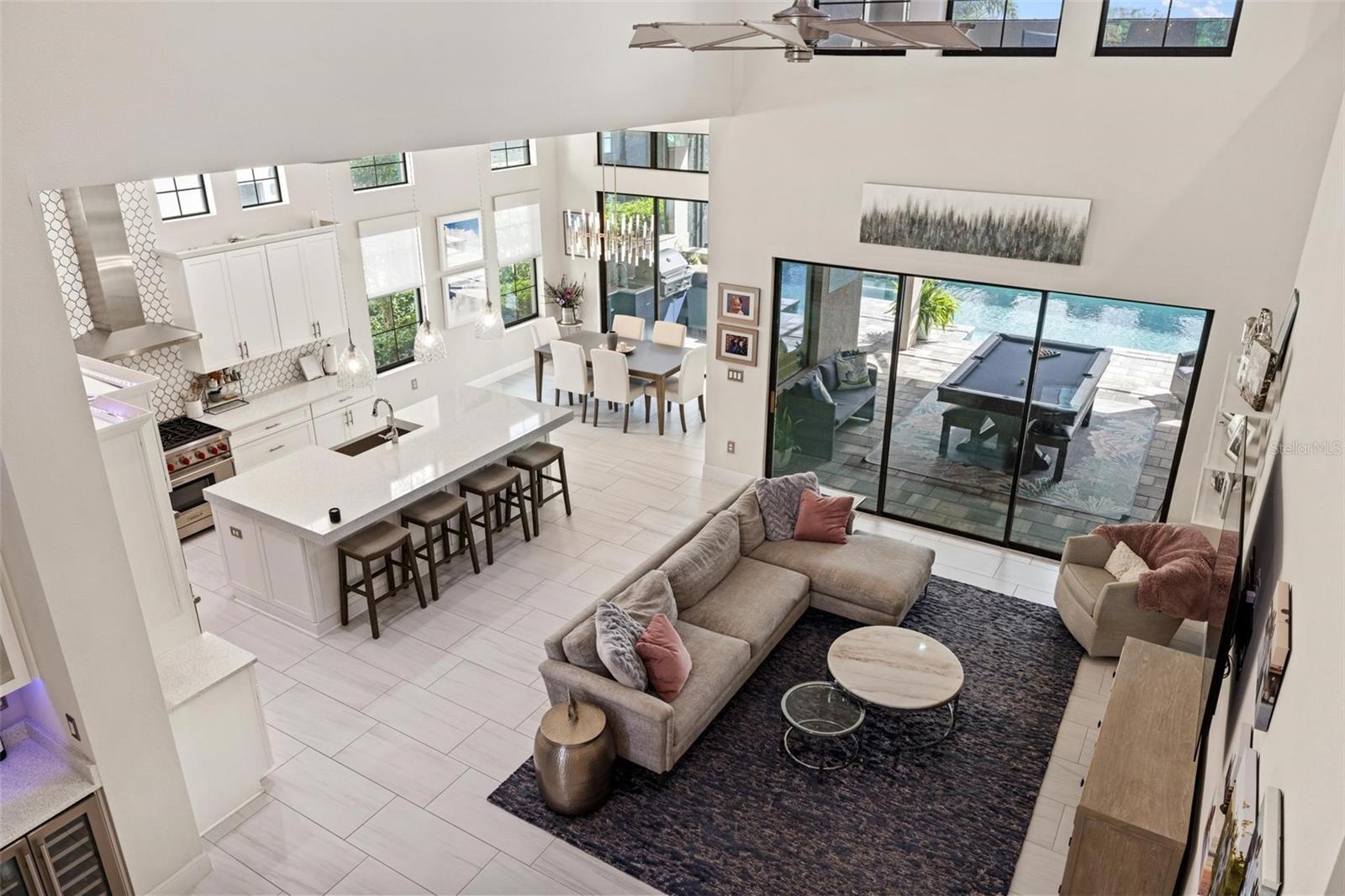 Discover an exceptional lifestyle in this breathtaking 5-bedroom, 3.5-bathroom estate located within the exclusive gated community of Lakewood Ranch Country Club East. Combining timeless elegance with modern comforts, this custom-built home is set on a breathtaking cul-de-sac lot with expansive lake and golf course views. Step inside and be welcomed by an open floor plan with soaring 20-foot ceilings in the family room, allowing natural light to flood the space. The gourmet kitchen is a chef’s paradise, complete with custom white cabinetry, extra-thick quartz countertops, high-end Wolf stainless steel appliances, and a massive walk-in pantry with coffee bar. A spacious island and extended breakfast bar provide ample seating and gathering space, while the large dining area offers an ideal spot for intimate meals with stunning views. Perfect for both entertaining and relaxation, the living area flows seamlessly to the extended covered lanai for true indoor - outdoor living. This oasis features a fully equipped grill, kitchen and bar, perfect for alfresco dining or summer gatherings. The saltwater pool and spa, set within a panoramic screened enclosure, overlook pristine lake and golf course views, creating a resort-style ambiance. The convenient pool bath and expansive outdoor area make it an entertainer’s dream. Lawn care and landscaping included in fees. The main level hosts the luxurious and spacious primary suite, a private retreat complete with wood flooring and serene lake views. The ensuite bath features dual vanities with center glam-station, a large walk-in shower, and dual walk-in closets with custom built-ins, providing a spa-like experience at home. A guest suite and spacious home office/formal dining, both with wood floors, round out the main floor. Upstairs, an oversized bonus room offers endless possibilities for a media room, gym, or playroom, adding versatility to the floor plan, with a wet bar and balcony offering additional entertainment options. Three additional guest bedrooms with walk-in closets provide ample accommodation for family or visitors, with one featuring a private front balcony. Additional highlights include a split garage, 2-car and a single, with ample storage, a tankless water heater, gas appliances for energy efficiency, and elegant tile flooring throughout the common areas. The wood floors in the primary bedroom, guest suite, and office add warmth and elegance, underscoring the home’s attention to detail. Countless options and upgrades are included in this 2020 Cardel-built Palazo floor plan. Living in Lakewood Ranch Country Club East offers a wealth of amenities beyond your doorstep. Residents enjoy exclusive access to amenities including The Retreat, with a resort-style pool, clubhouse and fitness center. Club members enjoy easy access to The Lodge just steps away by cart path, known for its rustic-ranch style architecture and casual yet sleek bar and dining scene. It houses an open concept kitchen, a private dining room, second pro shop, and an outdoor patio with a view of the Royal Lakes Golf Course.Country Club East’s prime location within Lakewood Ranch provides convenient access to Main Street and Waterside shopping, dining, and entertainment options. Sarasota’s award-winning beaches, cultural venues, and attractions offer even more to explore.