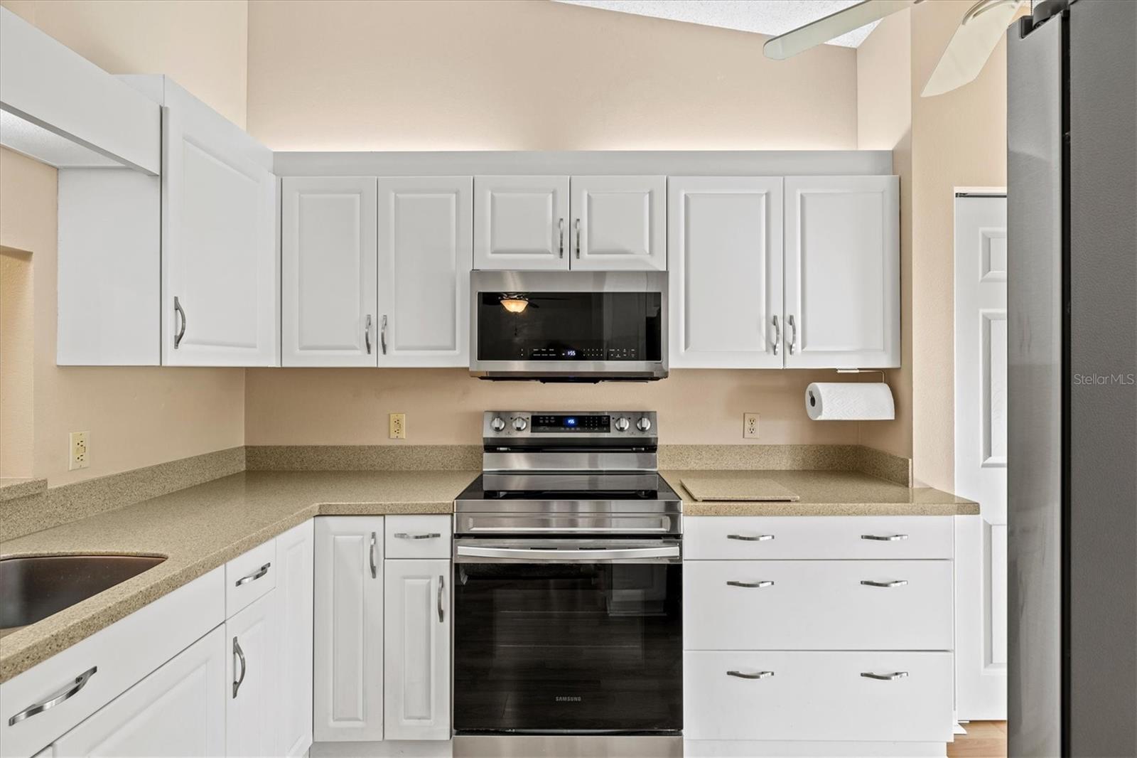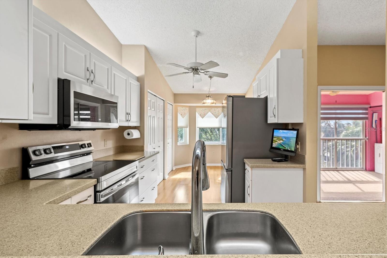 PRICE REDUCED- Welcome to your coastal retreat in the sought-after Country Village! A sought-after 3rd-floor unit which have high vaulted ceilings, which provides a more spacious feel in this 1123 sq ft updated condominium. It is beautifully maintained and combines convenience with quality, making it ideal for those eager to enjoy relaxed Florida living just minutes away from so many amenities, including the beaches of Anna Maria Island. Take the elevator to the top floor, where unit 306 awaits. Inside, you'll discover a functional floor plan offering two spacious bedrooms, two full baths, ample closet space, and of course vaulted ceilings unique to third-floor units. Recent upgrades include new windows that bathe the interior of the home in natural light and an efficient newer A/C system will help keep those energy costs low. The kitchen truly shines, featuring brand-new stainless steel appliances that add a modern flair and make cooking enjoyable. Both bedrooms and the lanai showcase new window treatments that enhance privacy and style. Country Village is a 55+ community with a delightful atmosphere and wonderful amenities to keep you busy. Grill at one of the outdoor barbecue spots, and enjoy casual gatherings in the clubhouse or pool. An abundance of guest parking is available for visiting friends and family to experience your new lifestyle in Country Village.