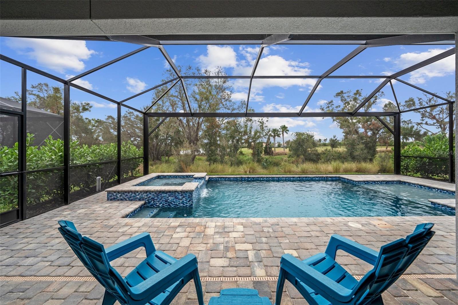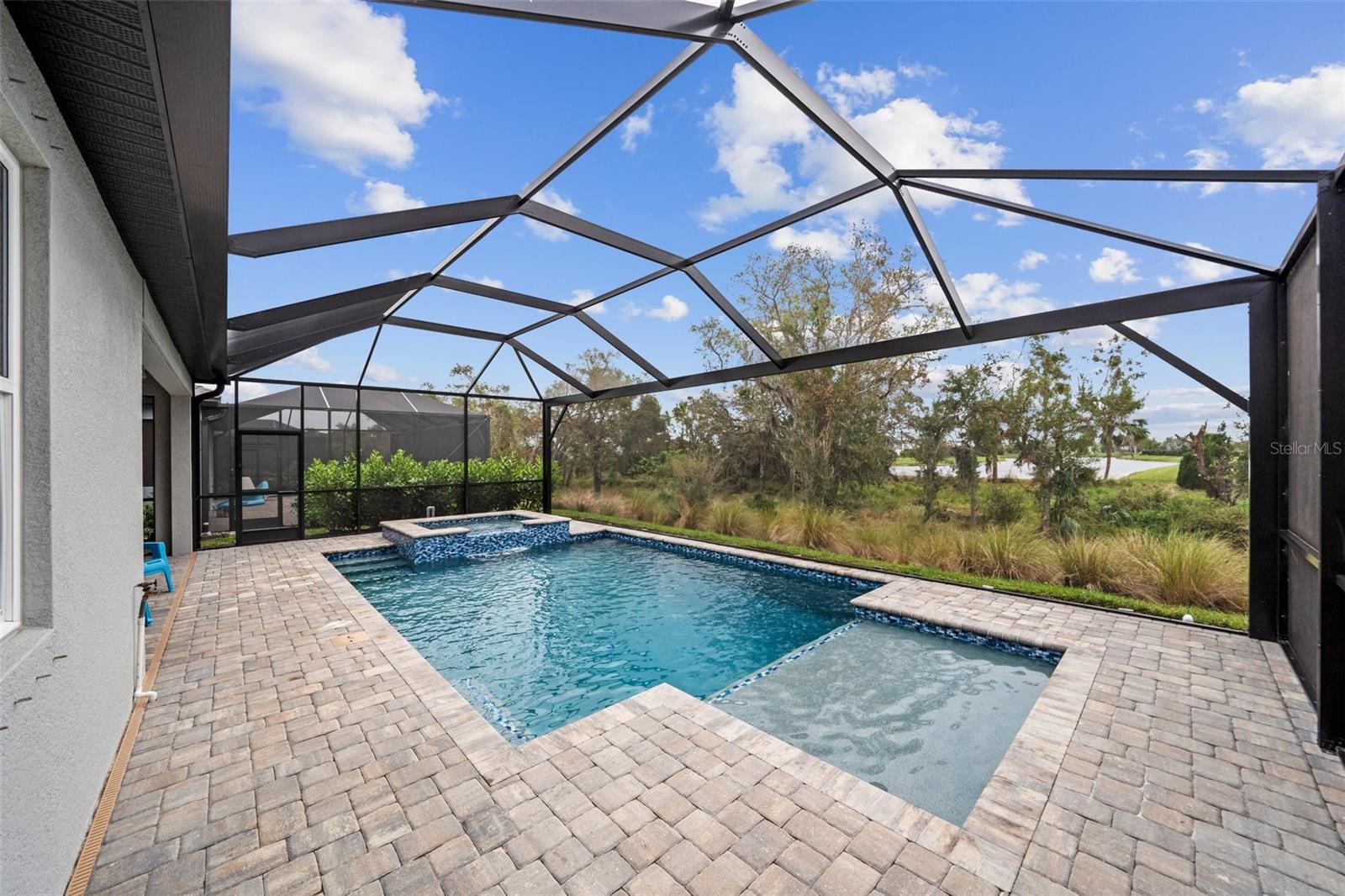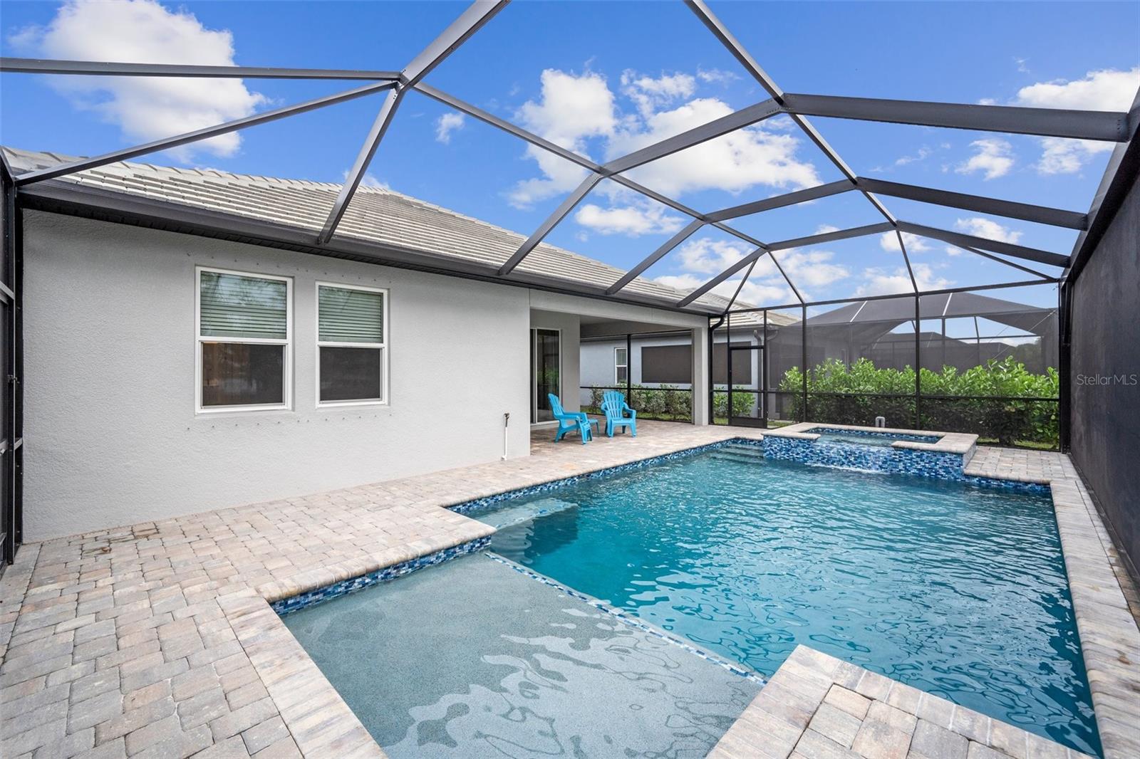 Discover elevated living at Sweetwater in Lakewood Ranch with this uniquely customized 3-bedroom Amelia model by M/I Homes, featuring a dedicated den, 2.5 baths, and an inviting private pool—your own slice of resort-style life. This home is a true standout, with tailored upgrades from both the builder and owner that enhance its timeless charm and practical beauty. The exterior showcases robust block construction, an elegant paver driveway, and thoughtful design throughout. Step through the extended foyer and into an open layout, where 9-foot, wood-lined tray ceilings and sleek porcelain tile floors invite you further in. The heart of this home has a grand quartz island in the upgraded kitchen and is ideal for cooking, gathering, or making memories. Designed with flexibility in mind, the home offers two spacious guest rooms and a large den, making it perfect for hosting family, friends, or creating a productive home office space. Outside, your private oasis awaits: a newly finished, heated pool and spa surrounded by a screened enclosure and a large sized brick paver sun deck overlooking serene preserve views. It’s the ultimate backdrop for outdoor dining, relaxation, or lively gatherings. Sweetwater’s amenities are a seamless extension of this resort lifestyle, with a swimming pool, clubhouse, fitness center, and more—pickleball and basketball courts, a bike pump track, a festival lawn, and an amphitheater to keep you and your family and guests entertained. Outfitted from top to bottom with premium selections, this home stands ready for its next owner. Schedule your private showing today to experience Sweetwater’s finest in person—don’t miss the chance to make it yours.