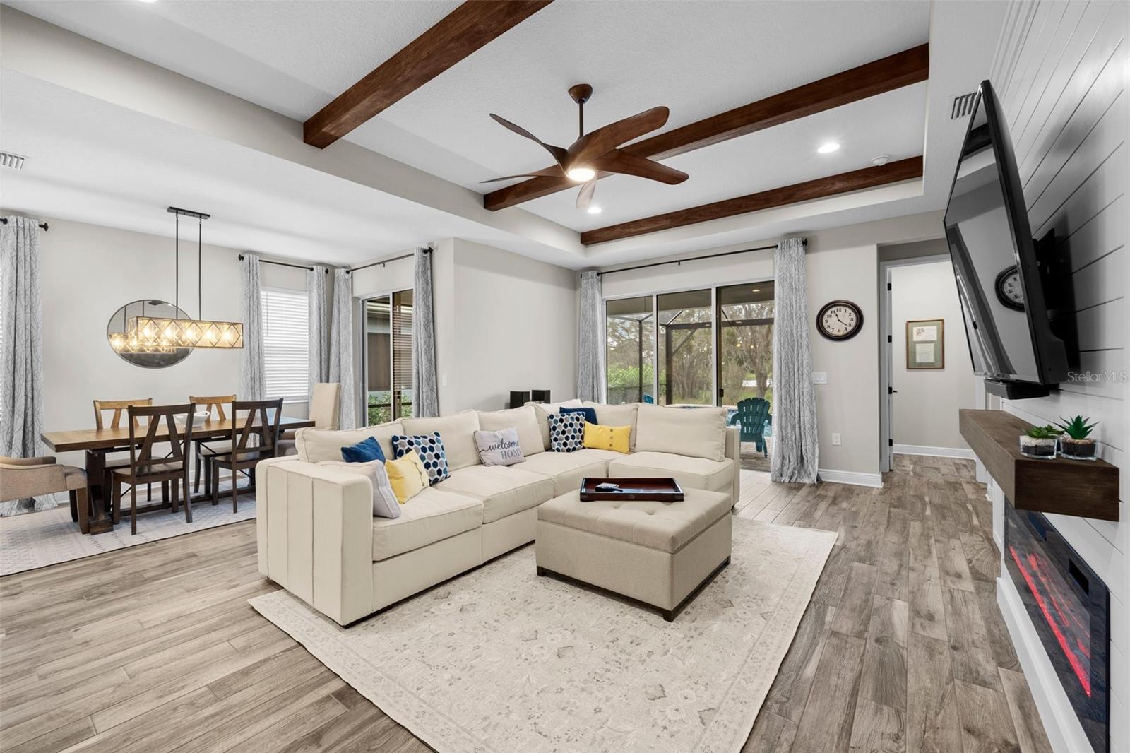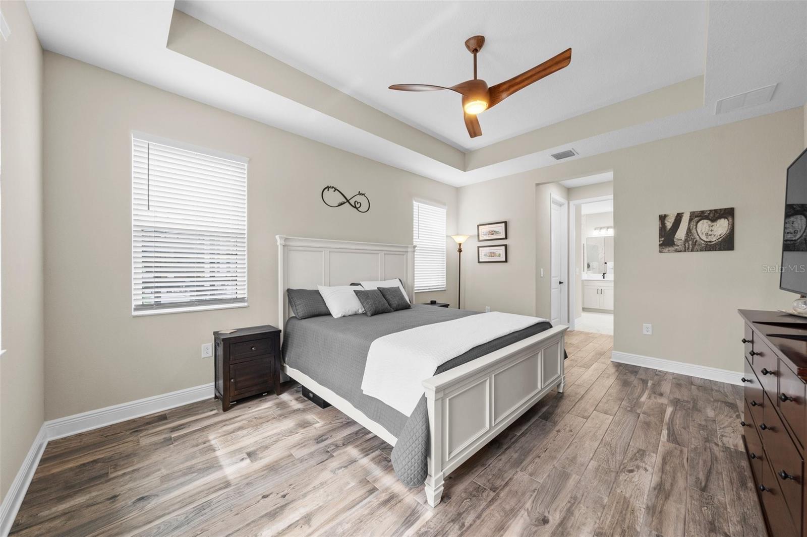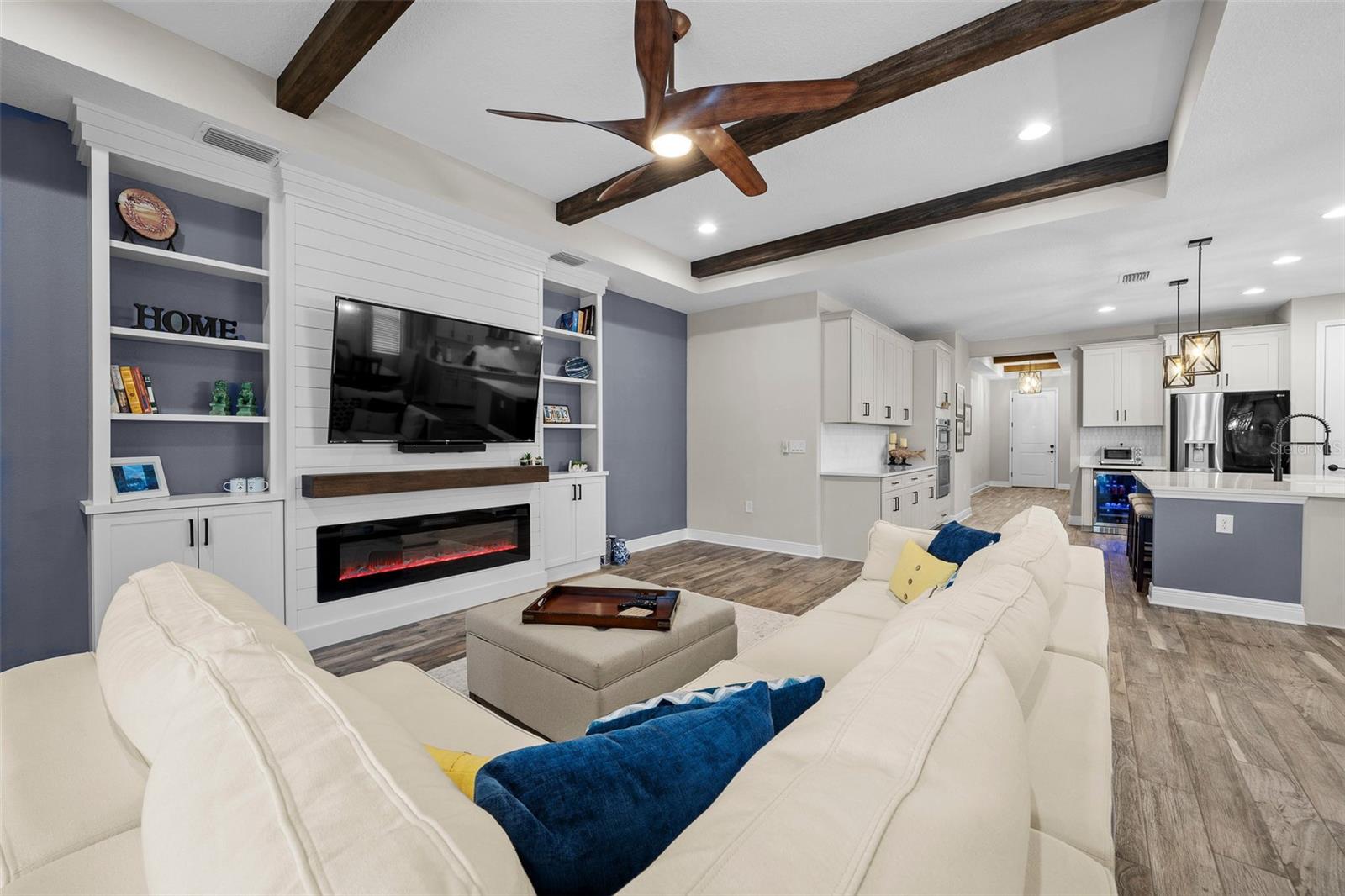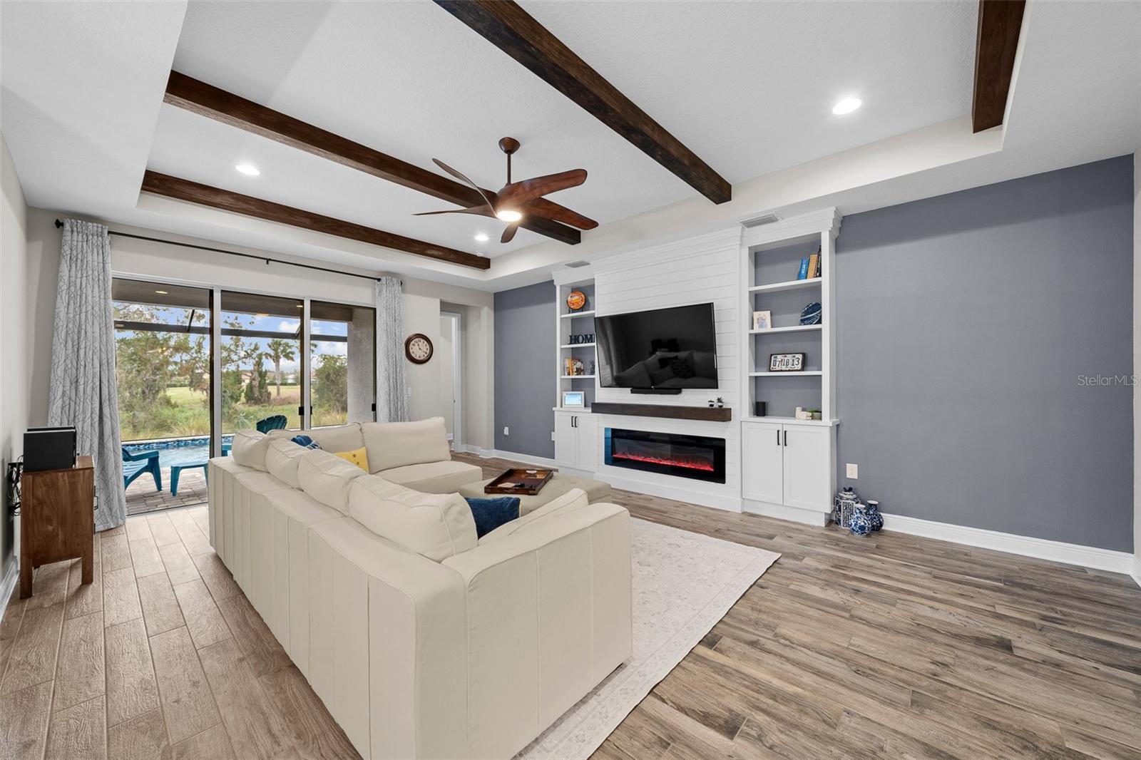 Discover elevated living at Sweetwater in Lakewood Ranch with this uniquely customized 3-bedroom Amelia model by M/I Homes, featuring a dedicated den, 2.5 baths, and an inviting private pool—your own slice of resort-style life. This home is a true standout, with tailored upgrades from both the builder and owner that enhance its timeless charm and practical beauty. The exterior showcases robust block construction, an elegant paver driveway, and thoughtful design throughout. Step through the extended foyer and into an open layout, where 9-foot, wood-lined tray ceilings and sleek porcelain tile floors invite you further in. The heart of this home has a grand quartz island in the upgraded kitchen and is ideal for cooking, gathering, or making memories. Designed with flexibility in mind, the home offers two spacious guest rooms and a large den, making it perfect for hosting family, friends, or creating a productive home office space. Outside, your private oasis awaits: a newly finished, heated pool and spa surrounded by a screened enclosure and a large sized brick paver sun deck overlooking serene preserve views. It’s the ultimate backdrop for outdoor dining, relaxation, or lively gatherings. Sweetwater’s amenities are a seamless extension of this resort lifestyle, with a swimming pool, clubhouse, fitness center, and more—pickleball and basketball courts, a bike pump track, a festival lawn, and an amphitheater to keep you and your family and guests entertained. Outfitted from top to bottom with premium selections, this home stands ready for its next owner. Schedule your private showing today to experience Sweetwater’s finest in person—don’t miss the chance to make it yours.
