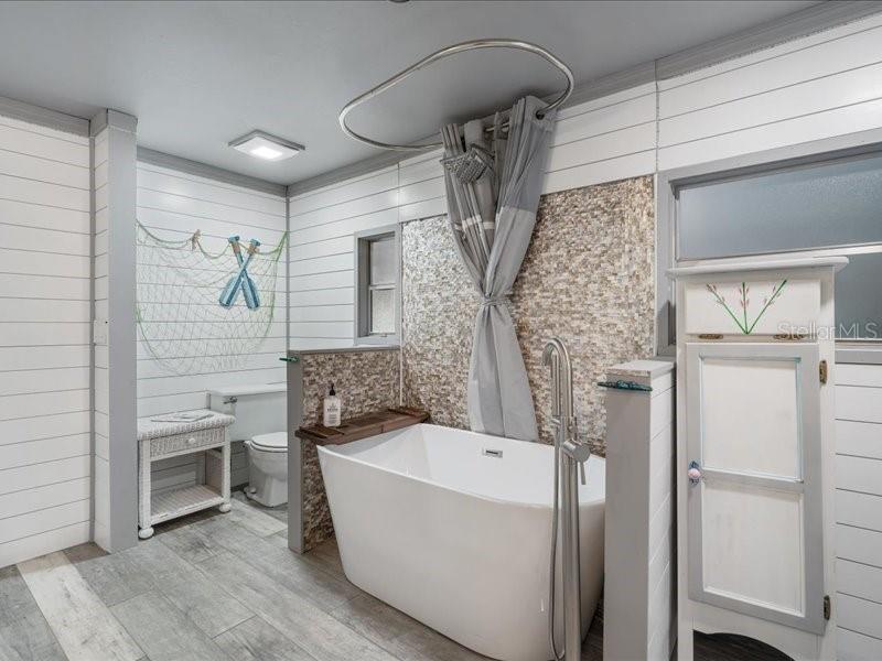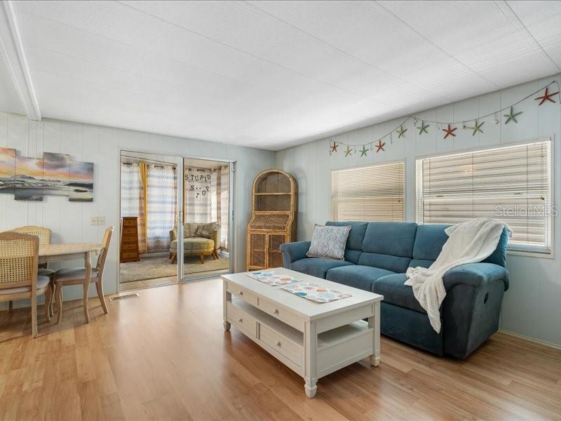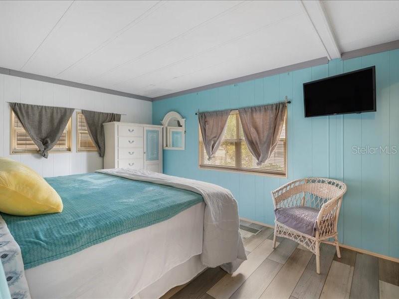 PRICED TO SELL AS IS AND TURNKEY READY! Only seconds away from Palma Sola Bay, this fun, boho inspired home sits with views of Palma Sola Bay from its Florida room and its back patio, part of the much sought after 55+ community of Palma Sola Shores Condominium Association. LAND OWNED, this is a community of 101 homes nestled on Palma Sola Boulevard, a hidden gem and neighbor to the many beautiful large estates along the bay. She is unique in her own beauty though. The carport is extra large and screened in with an entrance door wall, great for those winter evenings when you just want to stay outside. The seller enjoyed entertaining so much, there are 2 refrigerators to accommodate the appetites of her many friends and neighbors. The large galley kitchen has plenty of counter space and cupboards with pull out drawers leading into an open dining and living room space. The Florida room has separate AC window unit, and is the perfect place to start your day as you catch up on emails and enjoy the view of Palma Sola Bay. The guest bedroom has 2 twin beds with brand new mattresses and a built-in closet. The primary suite is extra-large, easily accommodating a king bed and armoire as well as night stands. Then, there is the luxury bathroom! Owner spared no expense in this update with double vessel sinks and the soaker free-standing tub with rain shower. The “He-Shed/She-Shed has work benches waiting for you to start your next project, be it crafting, sewing, painting, or woodworking. The back patio and west side have been updated with pavers. The private community dock is a gathering place for monthly ‘dock parties’; for fishing or quiet meditation as you watch Florida’s exotic birds, dancing dolphins, and jumping fish. The sunsets. . . so beautiful words cannot do them justice. The HOA is low at $275/month. This covers Spectrum cable and internet. Also, water, trash and recycle, maintenance of the pool, clubhouse and grounds! The clubhouse and pool were updated this summer. PRICED TO SELL.