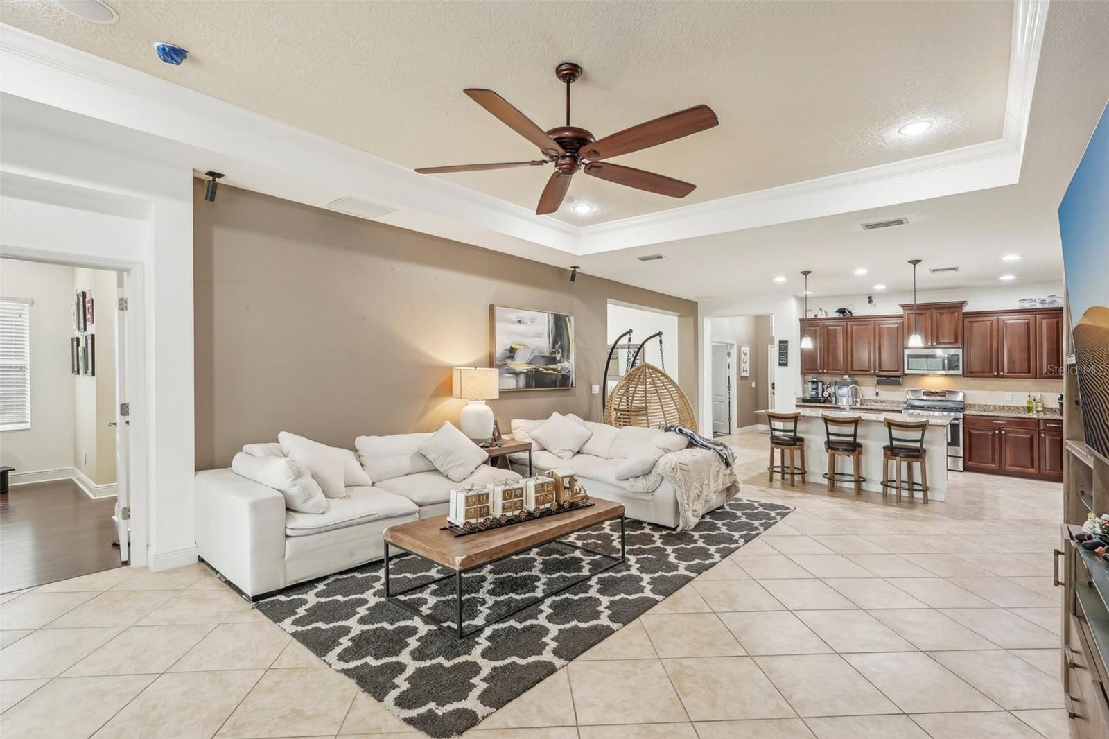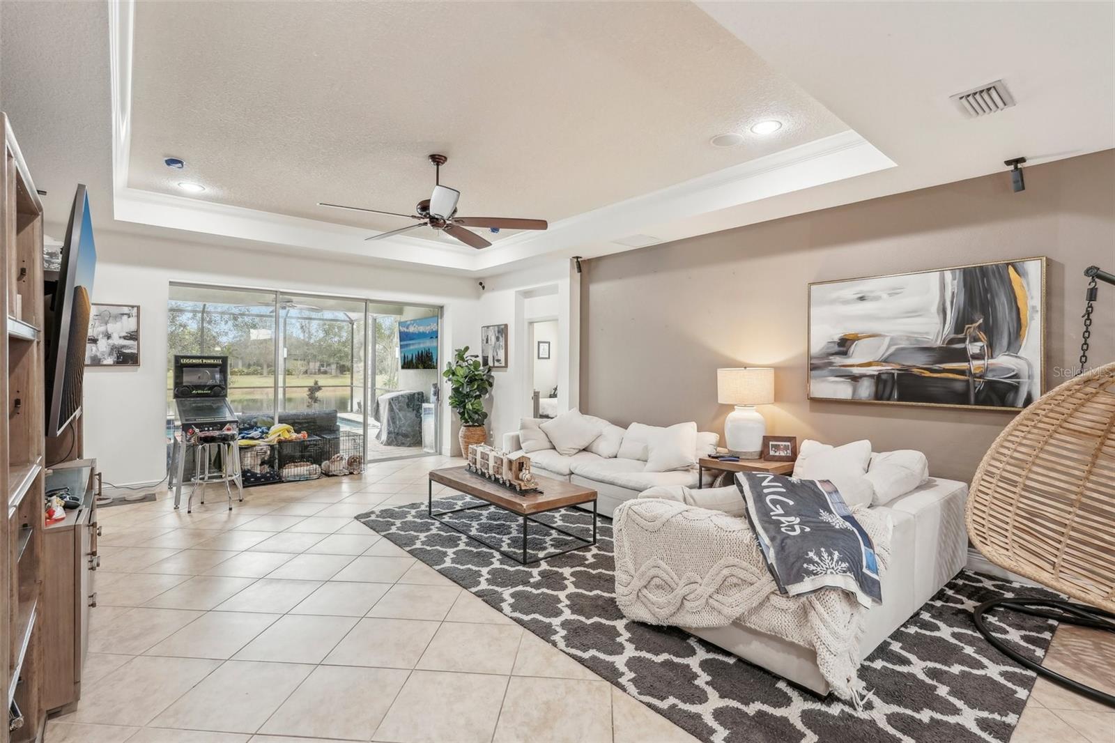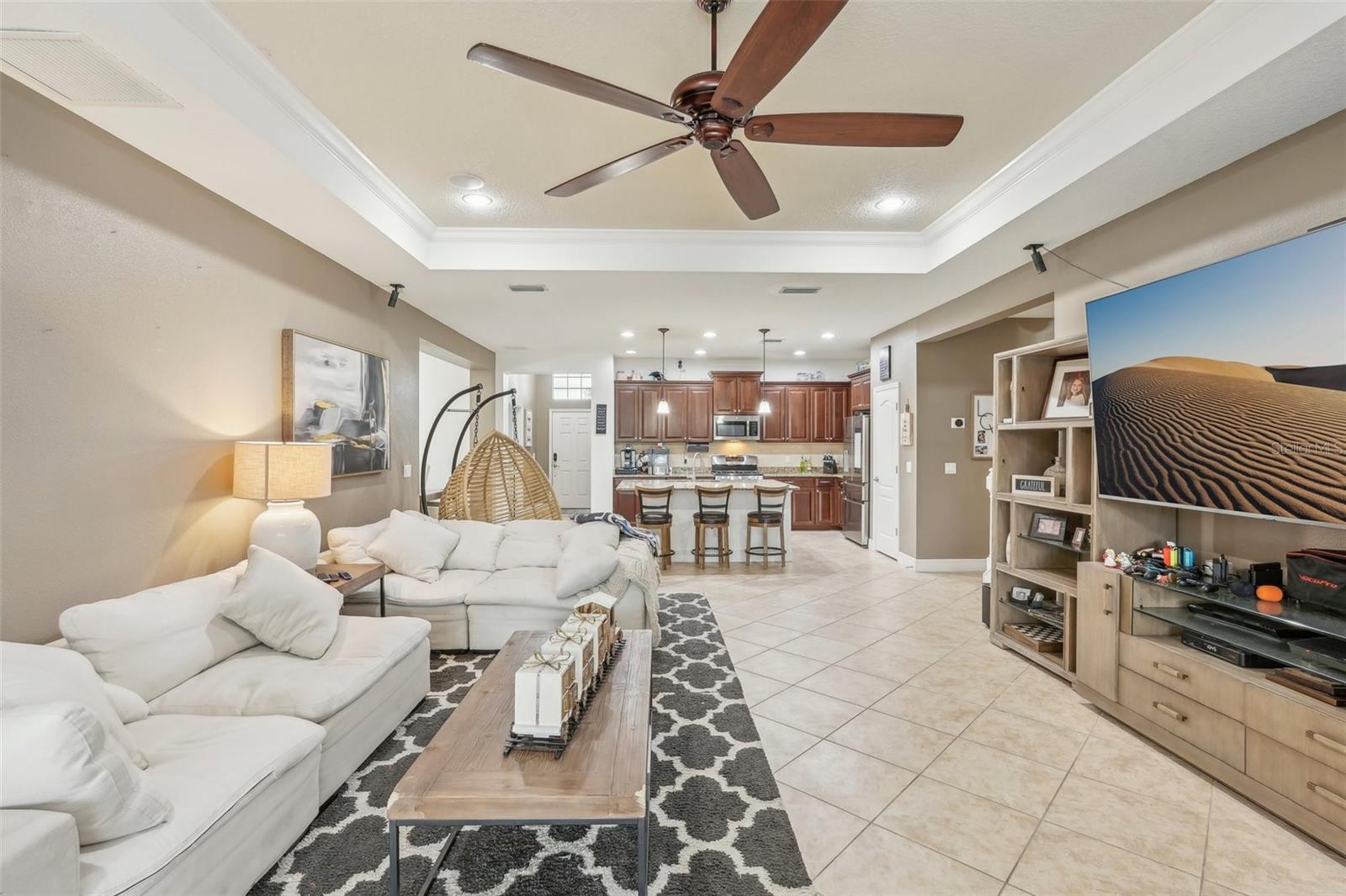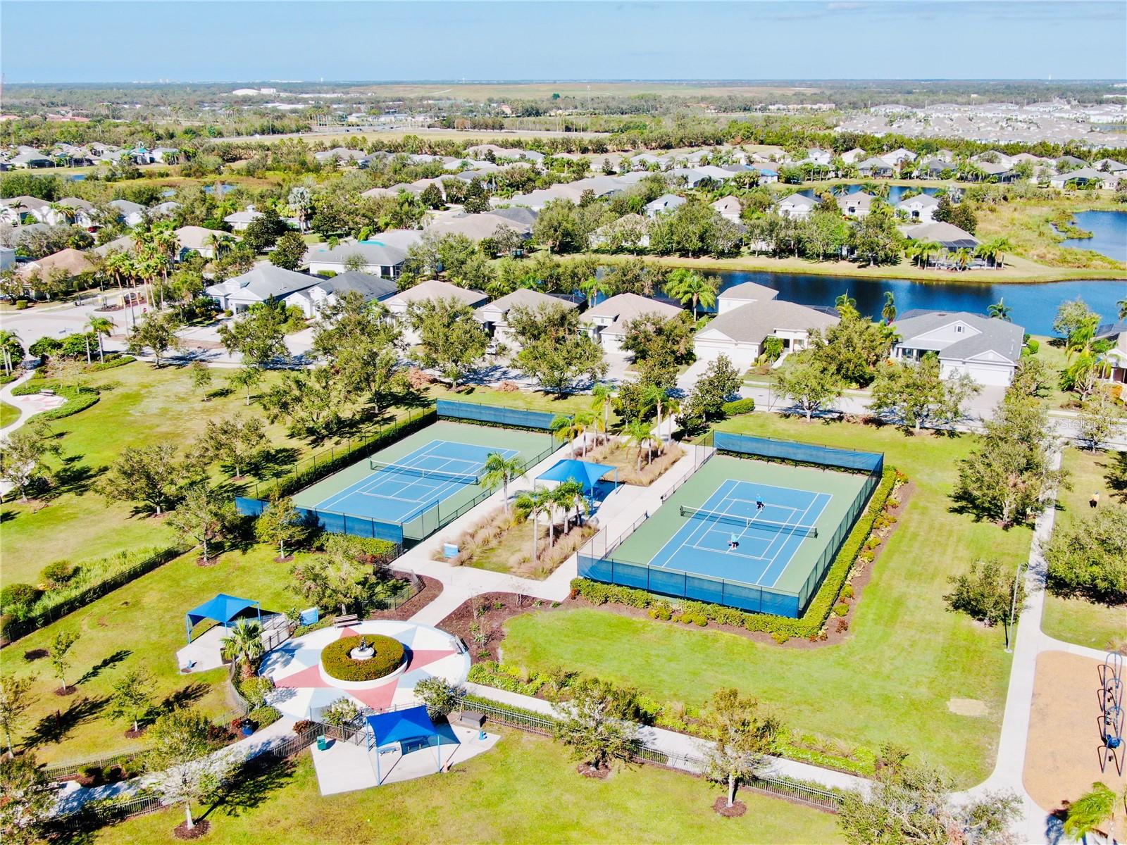 Discover this stunning Lakewood Ranch home with captivating views and the perfect balance of space and sophistication. An impressive layout featuring 5 total bedrooms plus a den/office, complemented by a spacious upstairs suite serving as a second primary bedroom—ideal for hosting guests or creating a private oasis. With 4 full baths and a spacious 3-car garage, this home effortlessly combines style and functionality. The open-concept design centers around a chef’s kitchen that will surely delight culinary lovers. Anchored by a grand breakfast island, the kitchen boasts elegant Cherry Spice cabinetry, gleaming stainless-steel appliances, and stunning Santa Cecilia granite countertops. Stylish 18”x18” tile flooring flows throughout the main living areas, while pocket sliders extend the indoor living space to a beautiful outdoor haven with serene pond views. Nestled within the award-winning Central Park community at Lakewood Ranch, residents experience a vibrant, nature-inspired lifestyle with lush green spaces, nature preserves, and a neighborhood park featuring tennis courts, two dog parks, picnic pavilions, and a splash park. New AC units 2021, New water heater 2024, New pool heater 2024. Located just east of I-75, this community provides easy access to premier golf courses, shopping, dining, medical facilities, and highly rated schools. Experience the extraordinary lifestyle waiting for you at Central Park at Lakewood Ranch.
