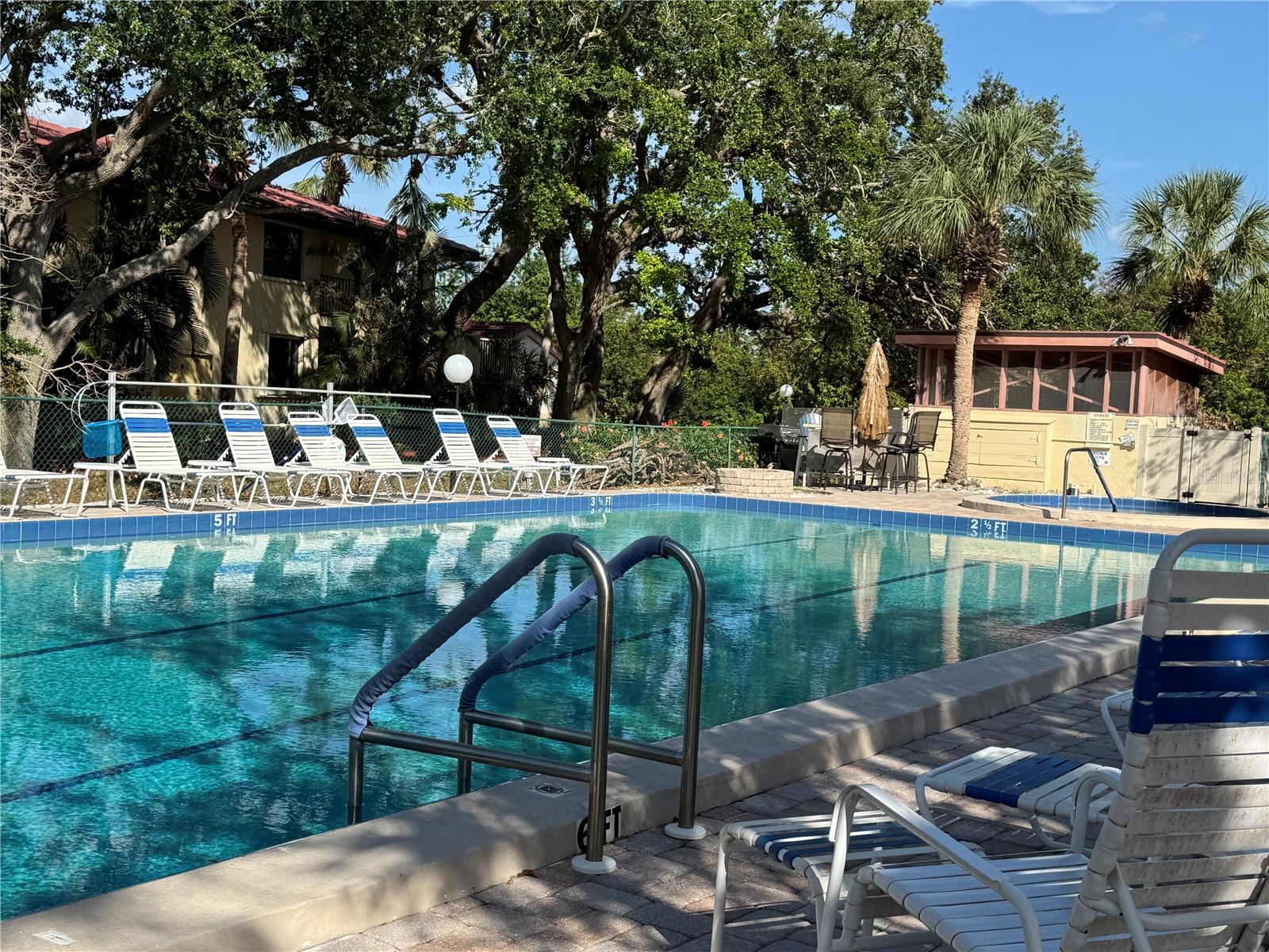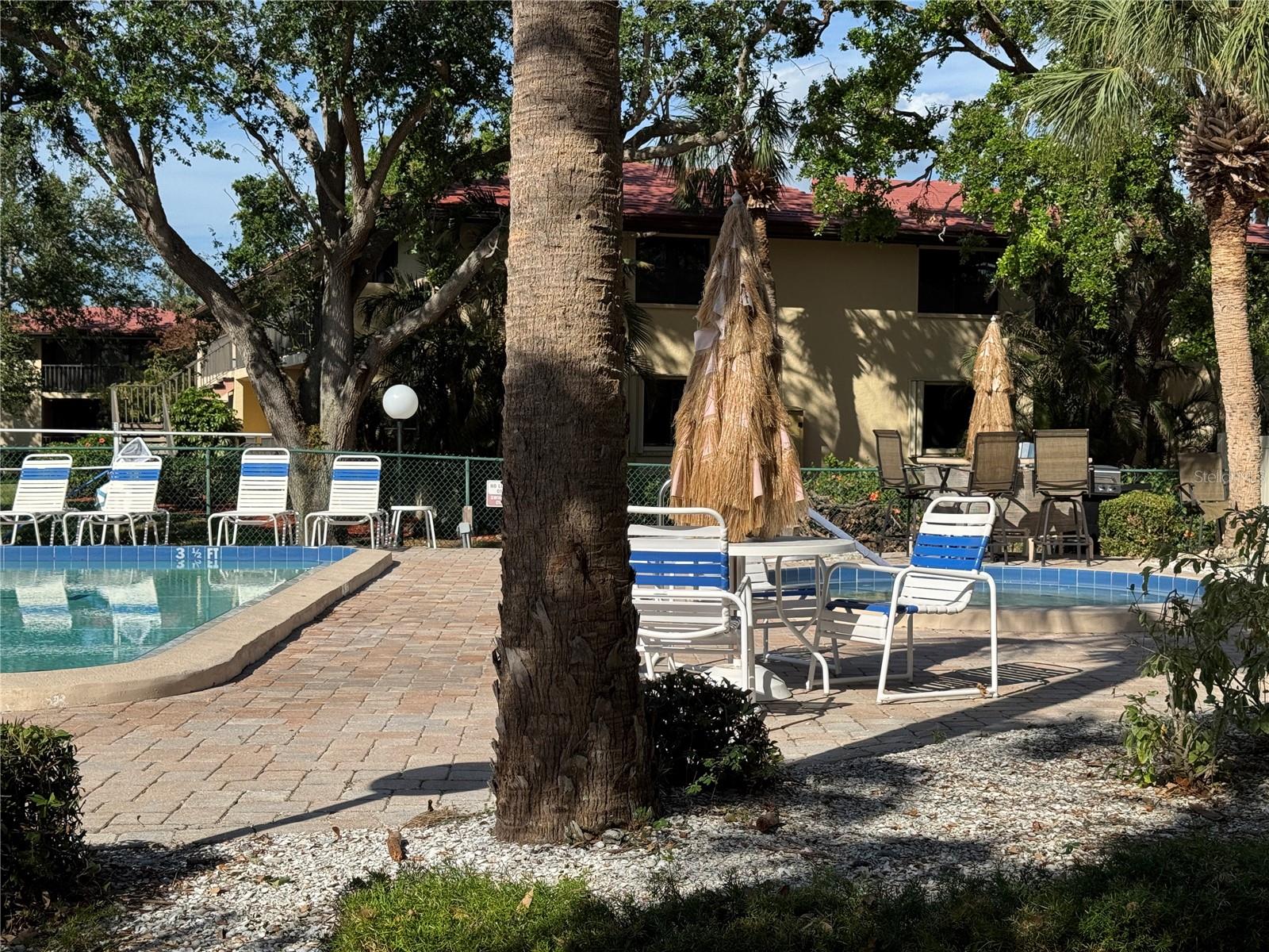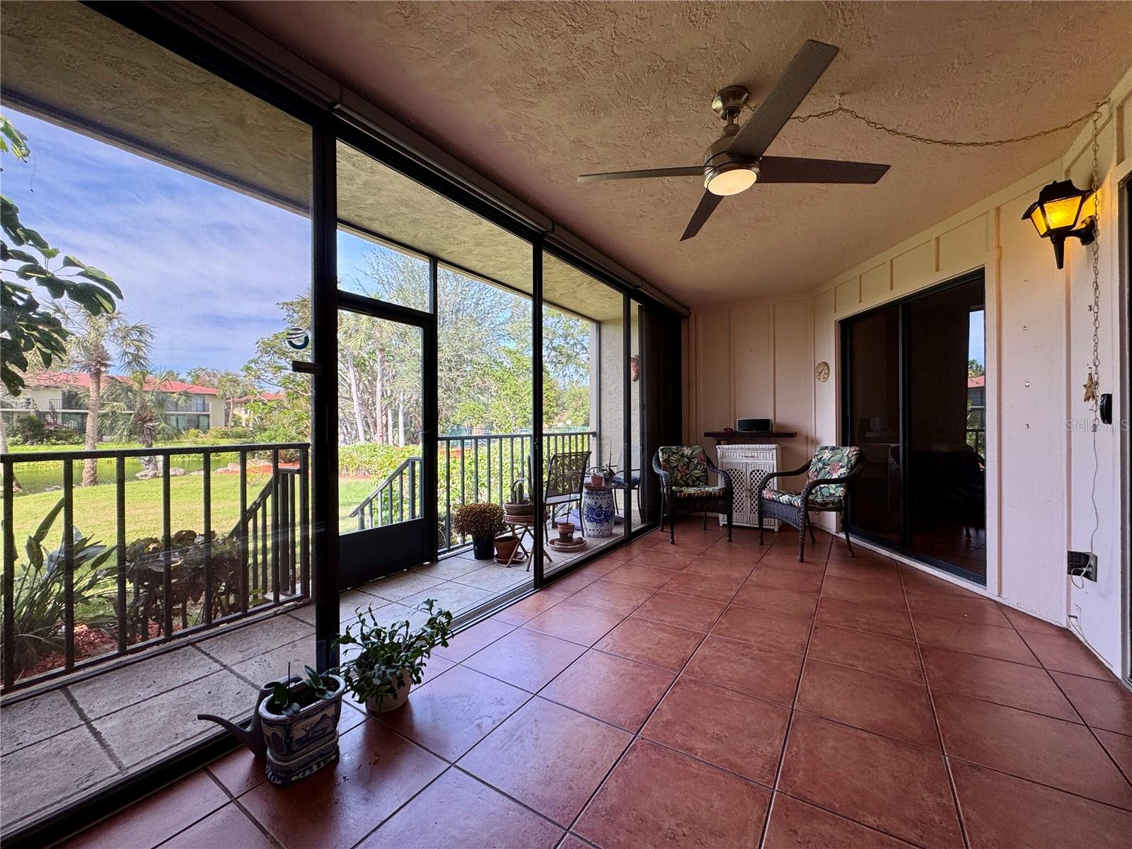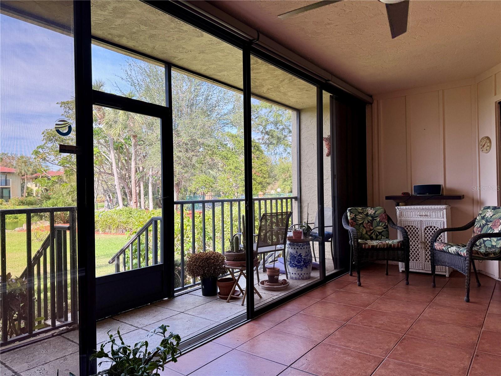 One or more photo(s) has been virtually staged. 3 BR/2 BA condo in the Wild Oak Bay Terraces, a pet-friendly, all-age complex. The condo has an amazing location next to the pool, spa, and firepit, with one of the complex's prettiest views of the pond and pool. Upgrades and changes include a new refrigerator in 2023, a new AC in 2021, a new washer/dryer in 2021, baths updated in 2020, new ceiling fans in 2020, and Impact windows installed in 2017/18. The lanai has an electric shade with a remote, making it a great spot to relax even when very sunny. The balcony also has screens so you can enjoy the outdoors and not be pestered with bugs!