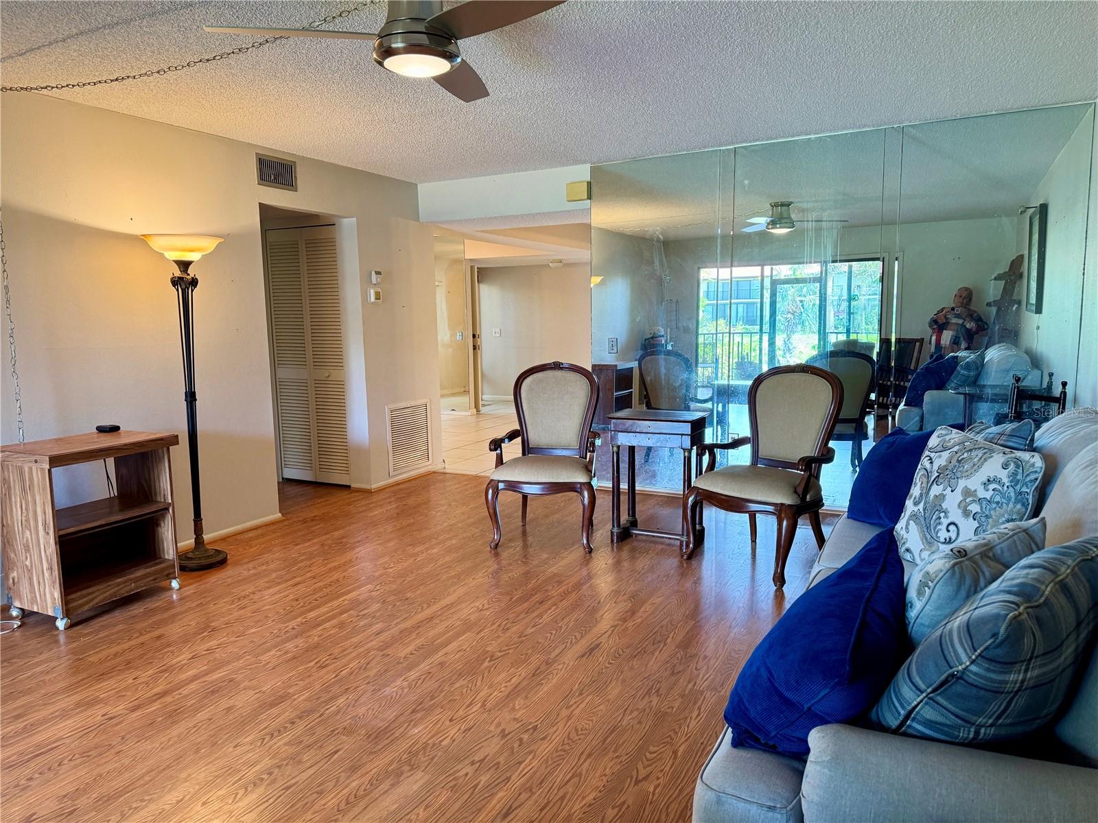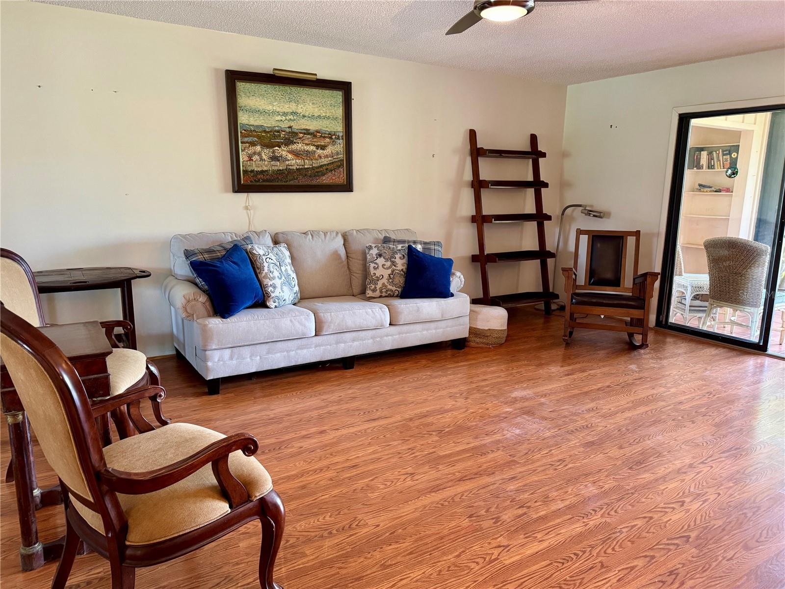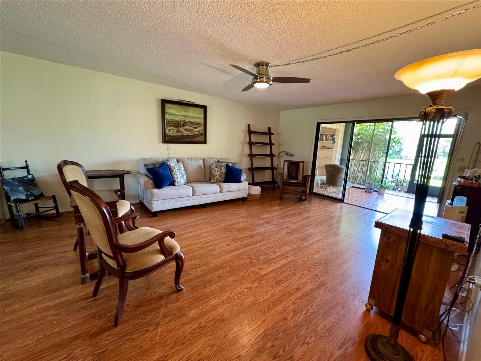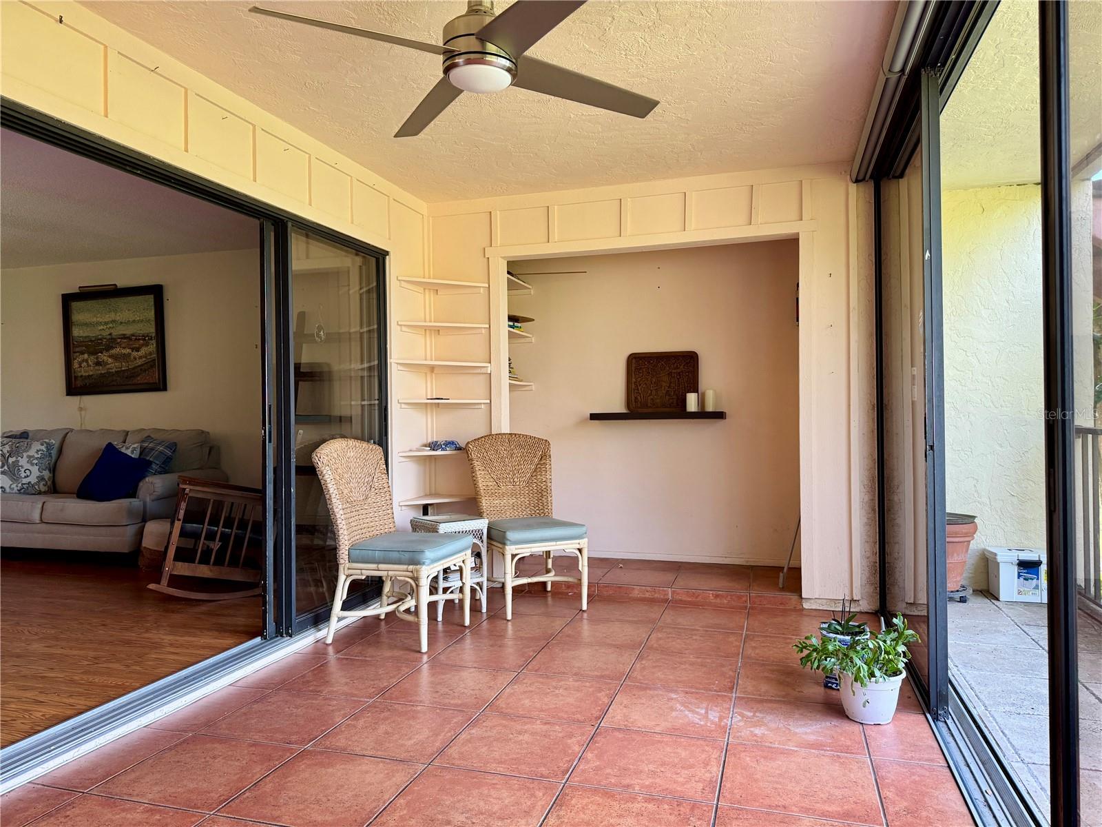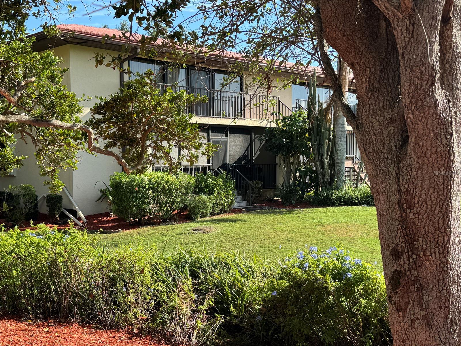 One or more photo(s) has been virtually staged. 3 BR/2 BA condo in the Wild Oak Bay Terraces, a pet-friendly, all-age complex. The condo has an amazing location next to the pool, spa, and firepit, with one of the complex's prettiest views of the pond and pool. Upgrades and changes include a new refrigerator in 2023, a new AC in 2021, a new washer/dryer in 2021, baths updated in 2020, new ceiling fans in 2020, and Impact windows installed in 2017/18. The lanai has an electric shade with a remote, making it a great spot to relax even when very sunny. The balcony also has screens so you can enjoy the outdoors and not be pestered with bugs!